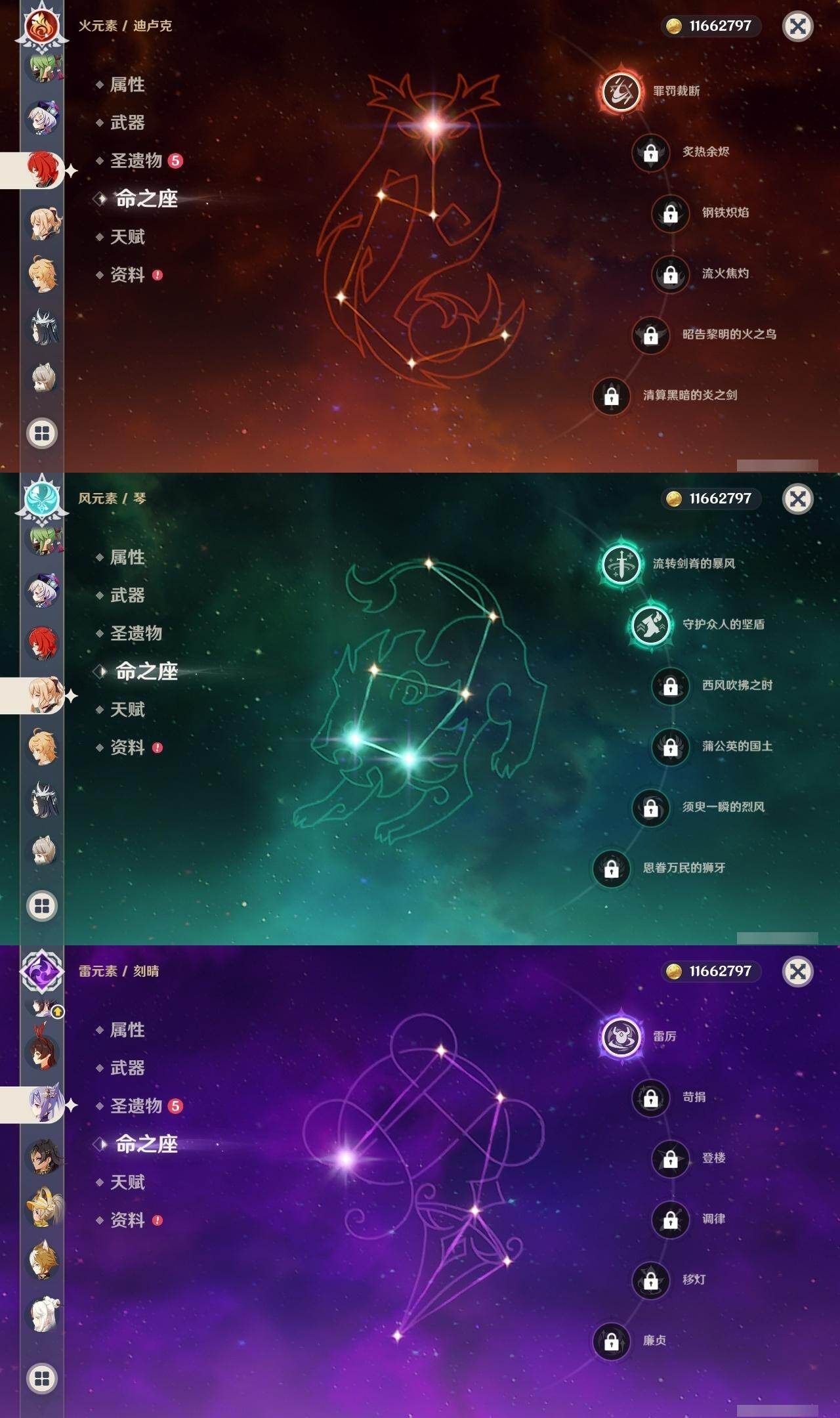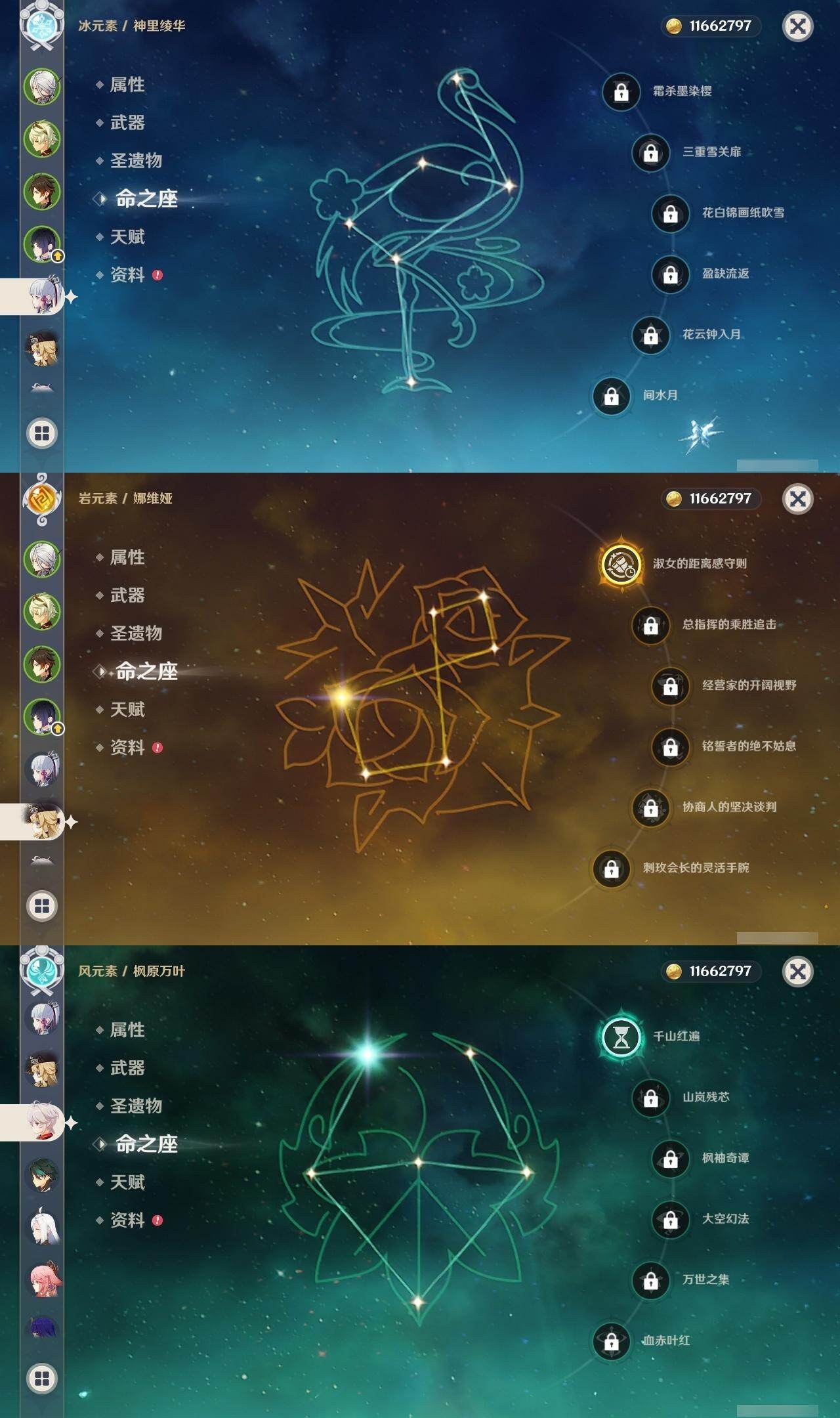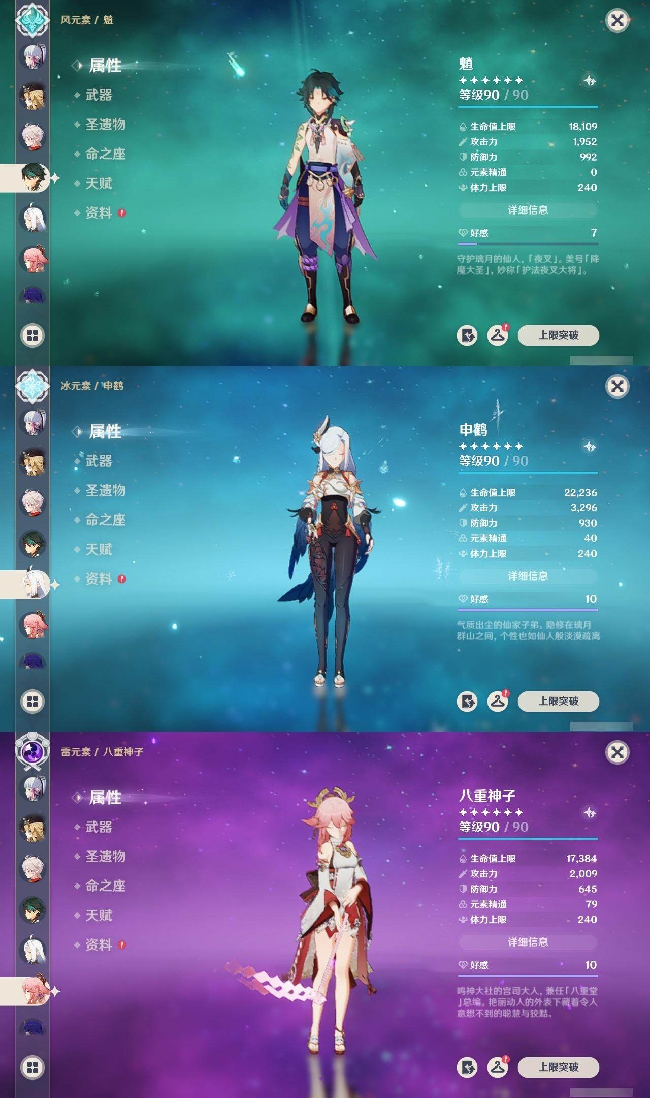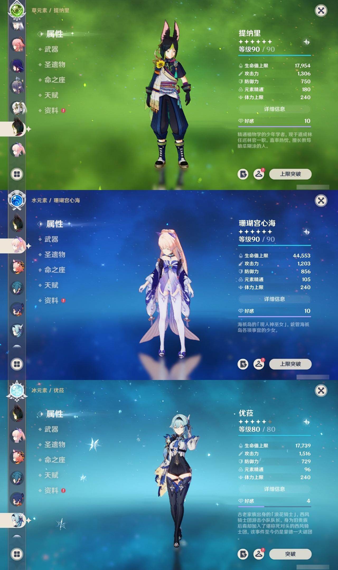 60级/51黄/男主/25个五星角色/10个五星武器 2命阿蕾奇诺1命娜维娅0命迪希雅0命纳西妲2命提纳里1命夜兰0命神里绫人0命八重神子0命申鹤0命优菈0命雷电将军1命枫原万叶0命神里绫华0命钟离0命魈0命可莉0命珊瑚宫心海1命刻晴1命七七2命琴3命莫娜1命迪卢克0命希诺宁1命菈乌玛0命奈芙尔精1有乐御簾切精1波乱月白经津精1神乐之真意精1雾切之回光精1护摩之杖精1天空之脊精1天空之翼精1阿莫斯之弓精1风鹰剑精1狼的末路