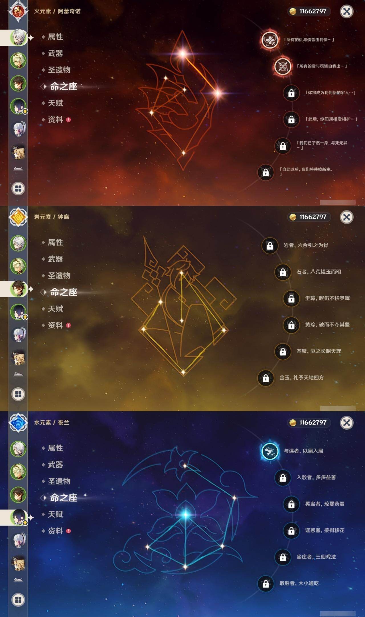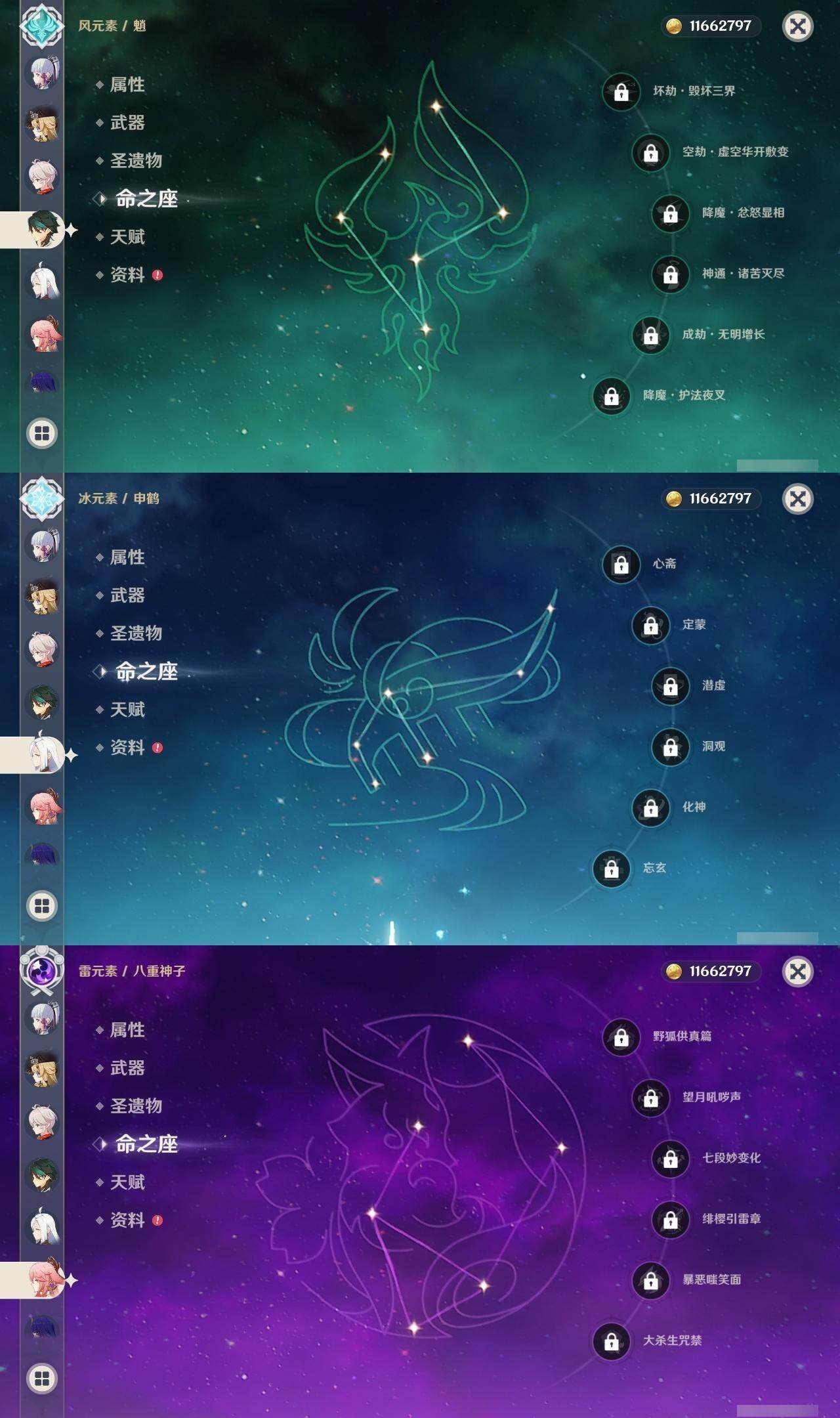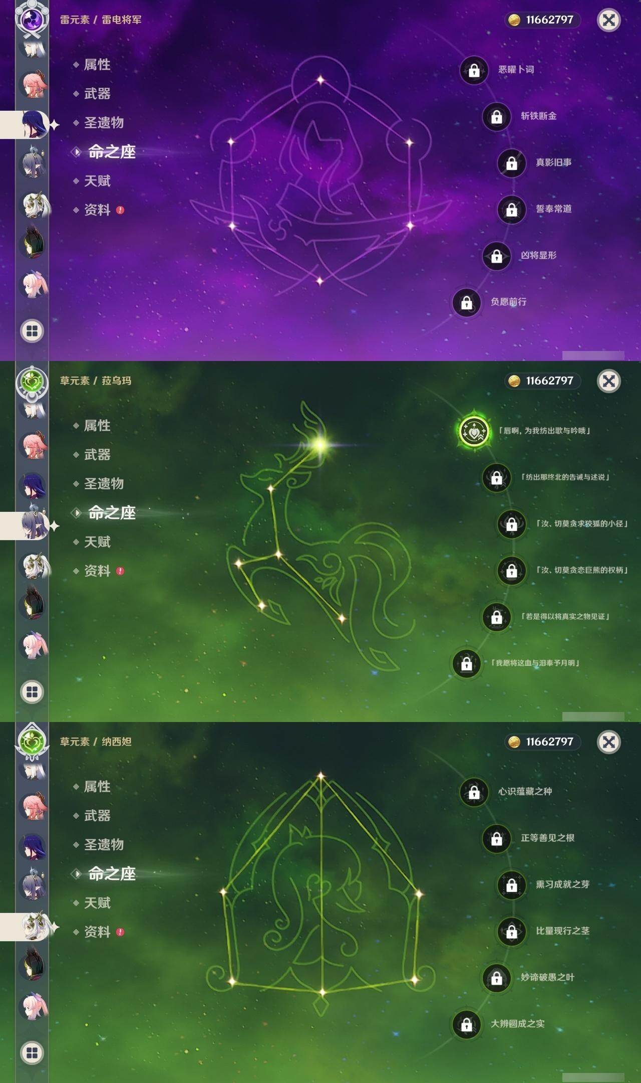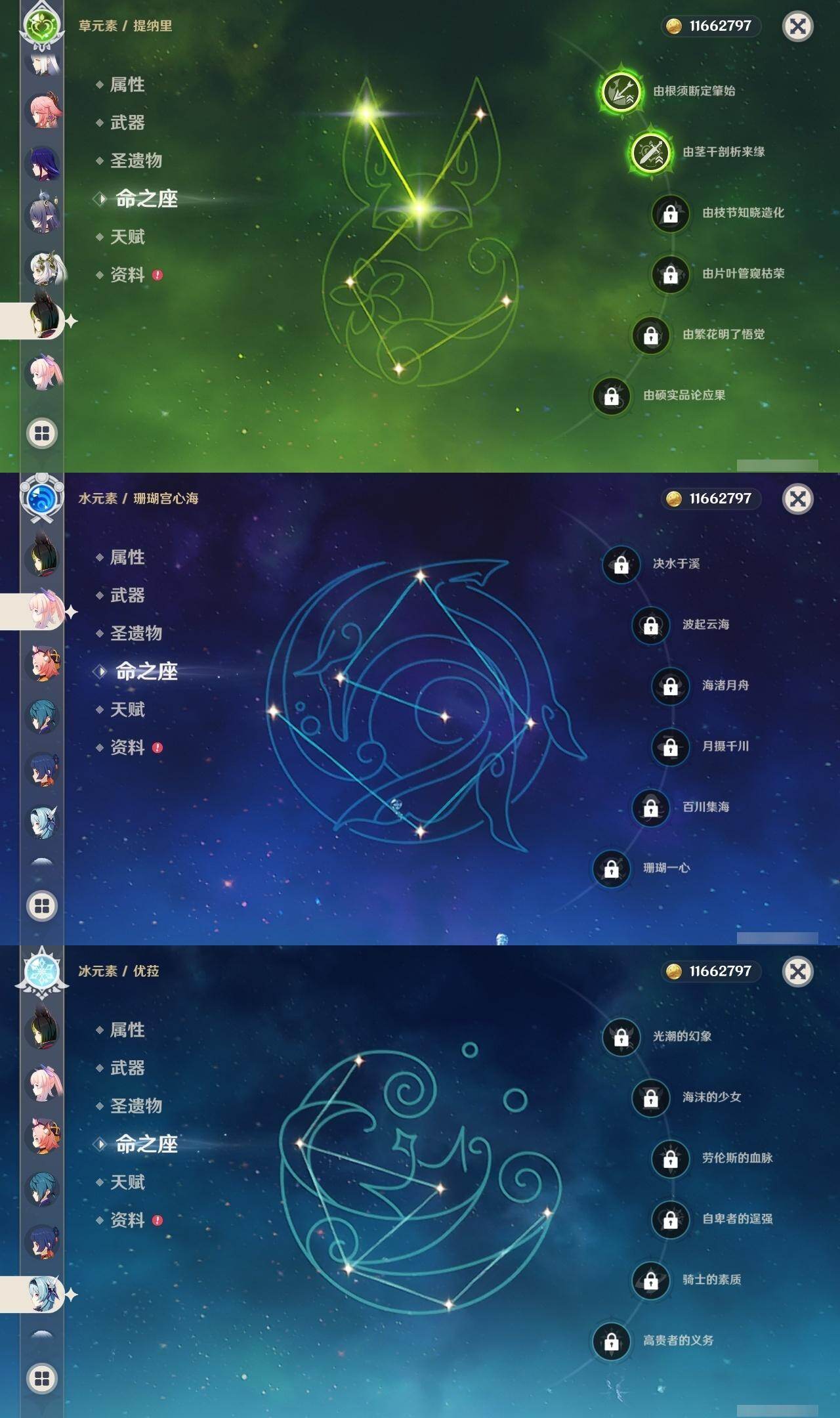 60级/51黄/男主/25个五星角色/10个五星武器 2命阿蕾奇诺1命娜维娅0命迪希雅0命纳西妲2命提纳里1命夜兰0命神里绫人0命八重神子0命申鹤0命优菈0命雷电将军1命枫原万叶0命神里绫华0命钟离0命魈0命可莉0命珊瑚宫心海1命刻晴1命七七2命琴3命莫娜1命迪卢克0命希诺宁1命菈乌玛0命奈芙尔精1有乐御簾切精1波乱月白经津精1神乐之真意精1雾切之回光精1护摩之杖精1天空之脊精1天空之翼精1阿莫斯之弓精1风鹰剑精1狼的末路