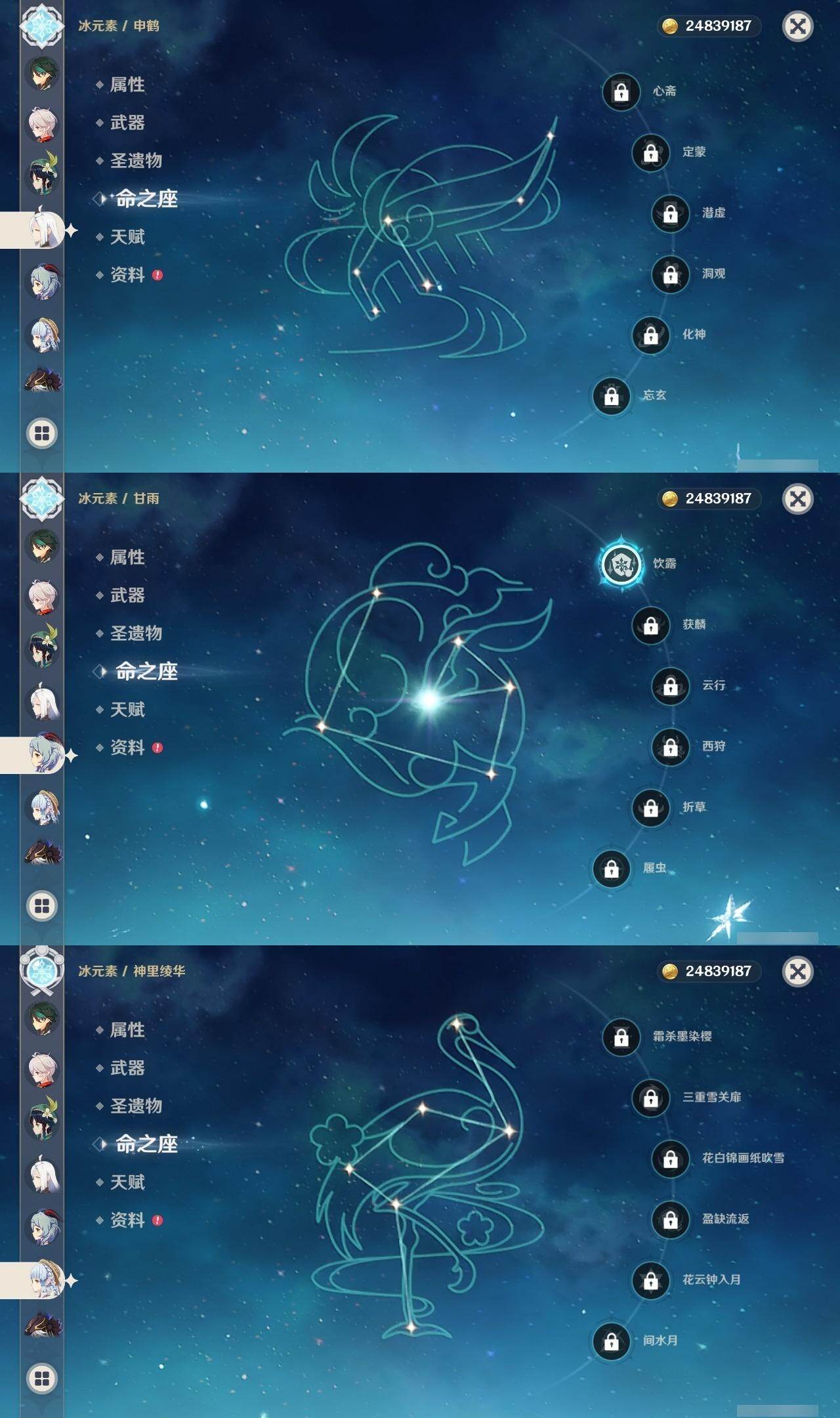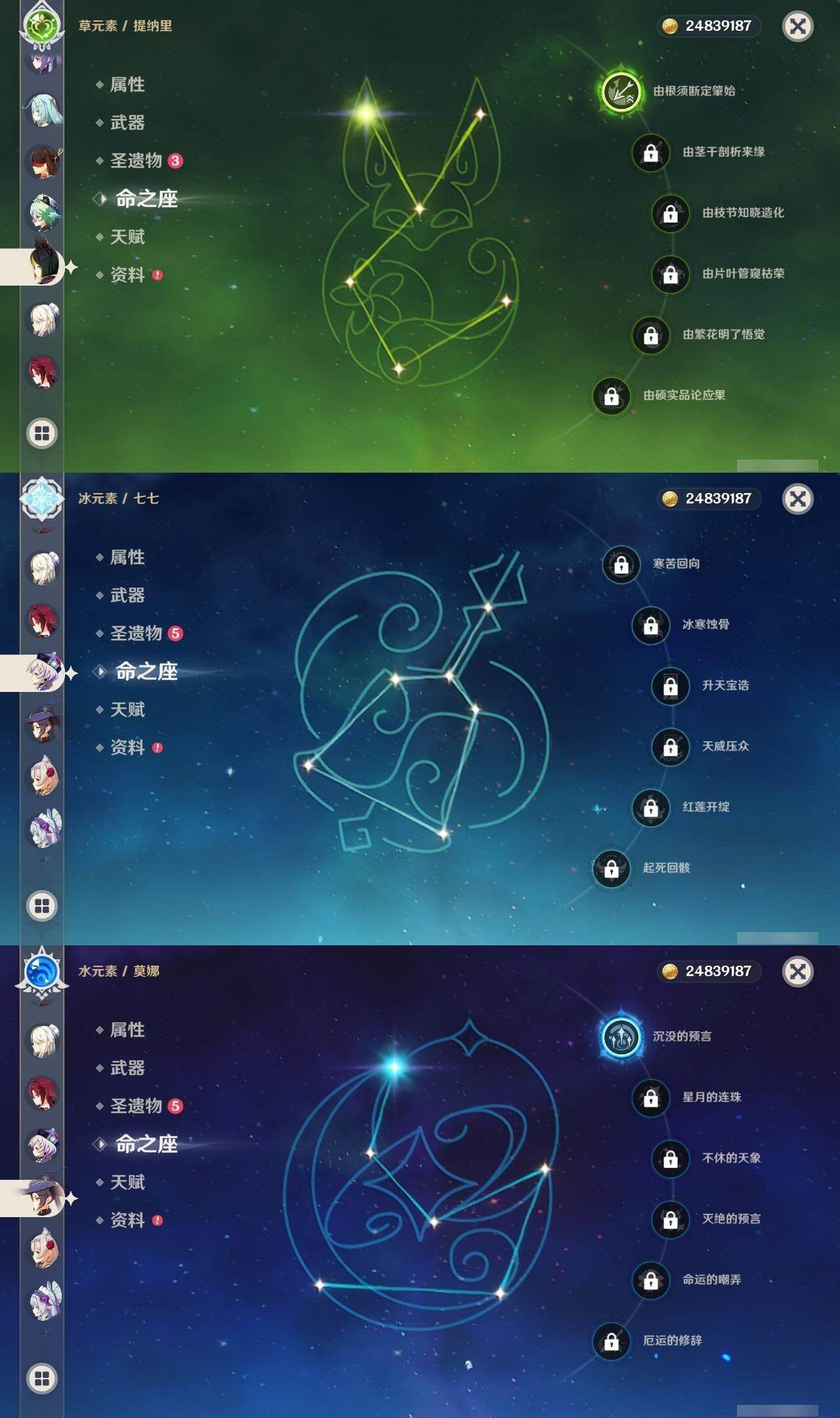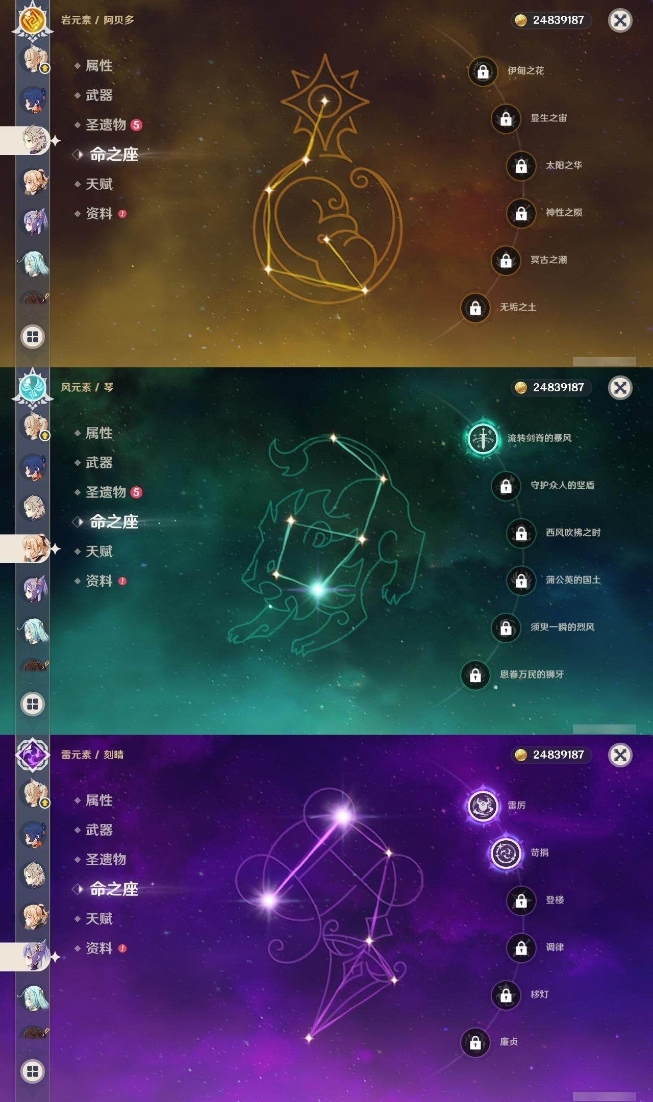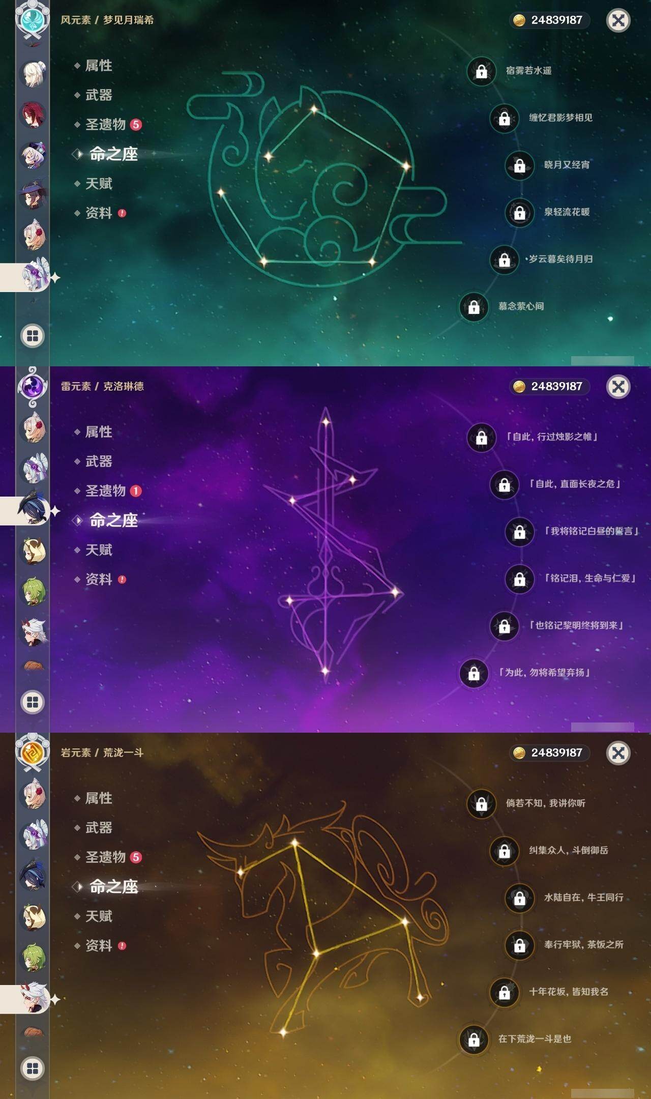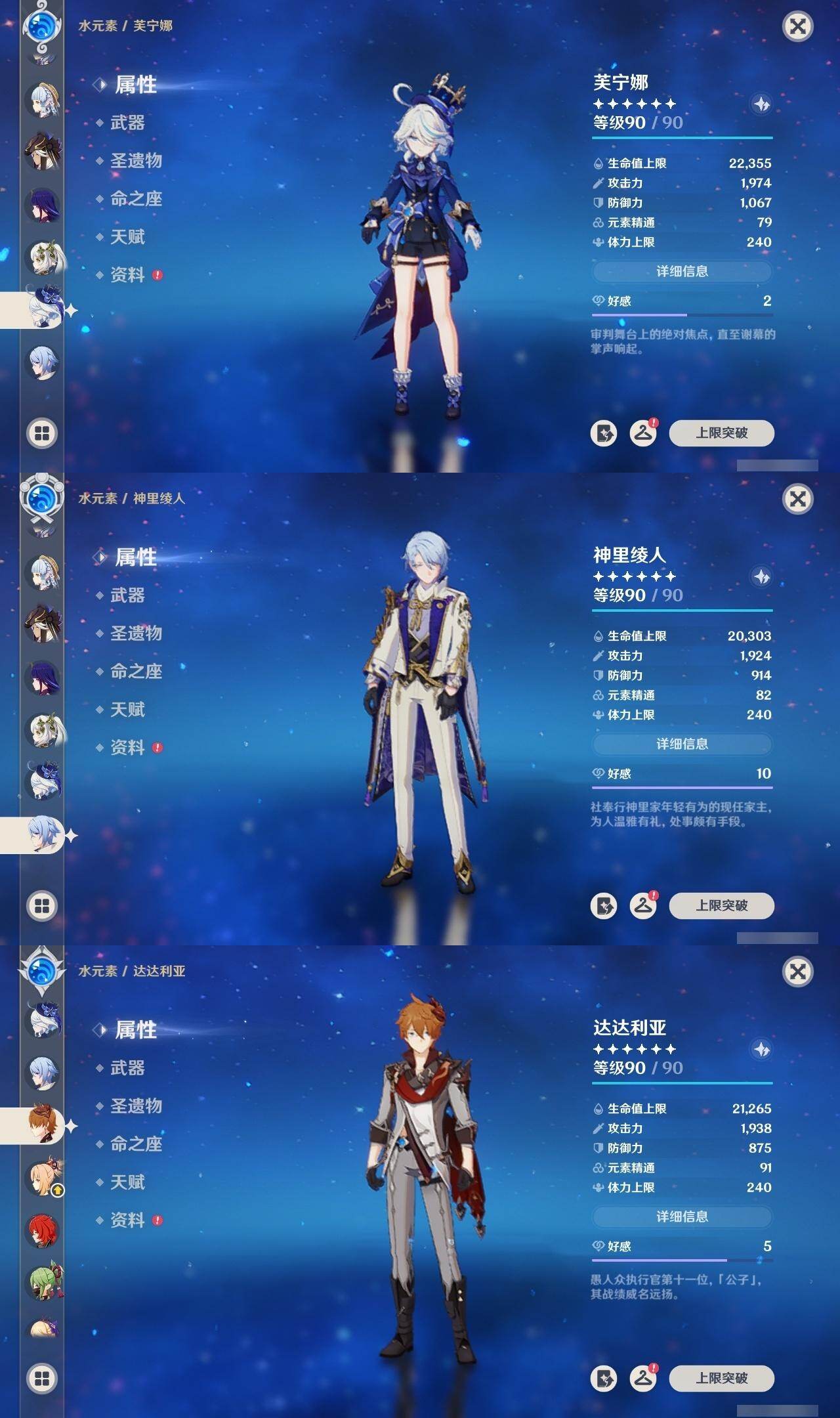 60级/62黄/女主/28个五星角色/20个五星武器 0命克洛琳德0命芙宁娜1命迪希雅0命纳西妲0命赛诺1命提纳里1命夜兰1命神里绫人0命申鹤0命荒泷一斗0命雷电将军0命枫原万叶0命神里绫华1命钟离1命胡桃1命甘雨0命魈0命宵宫0命温迪0命达达利亚0命阿贝多0命珊瑚宫心海2命刻晴0命七七1命琴1命莫娜3命迪卢克0命梦见月瑞希精1静水流涌之辉精1碧落之珑精1赤沙之杖精1终末嗟叹之诗精1冬极白星精1飞雷之弦振精1护摩之杖精1四风原典精1和璞鸢精1阿莫斯之弓精1尘世之锁精1风鹰剑精1狼的末路精1天空之傲
