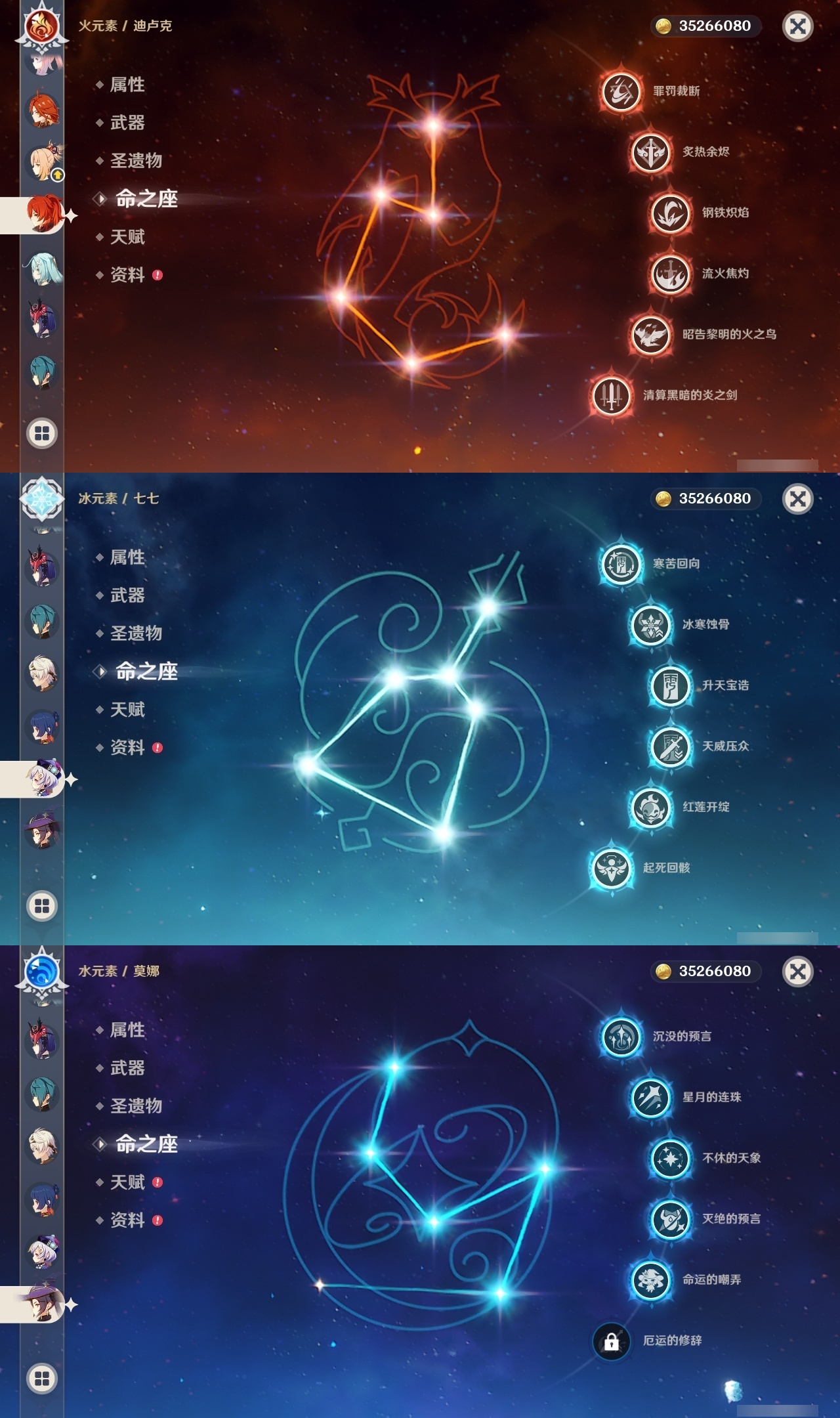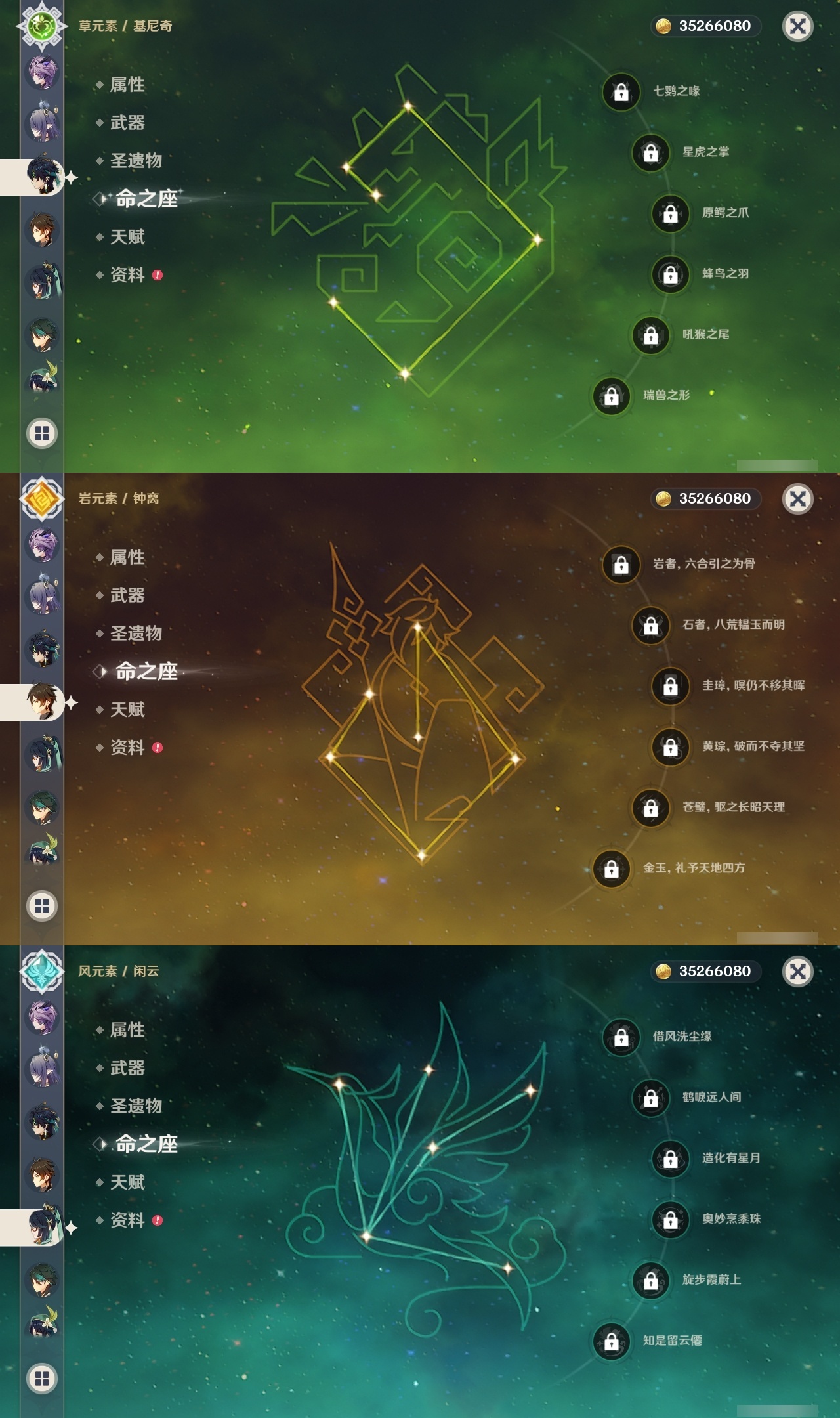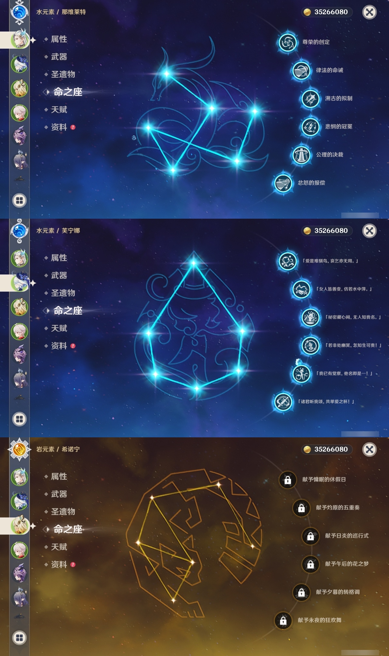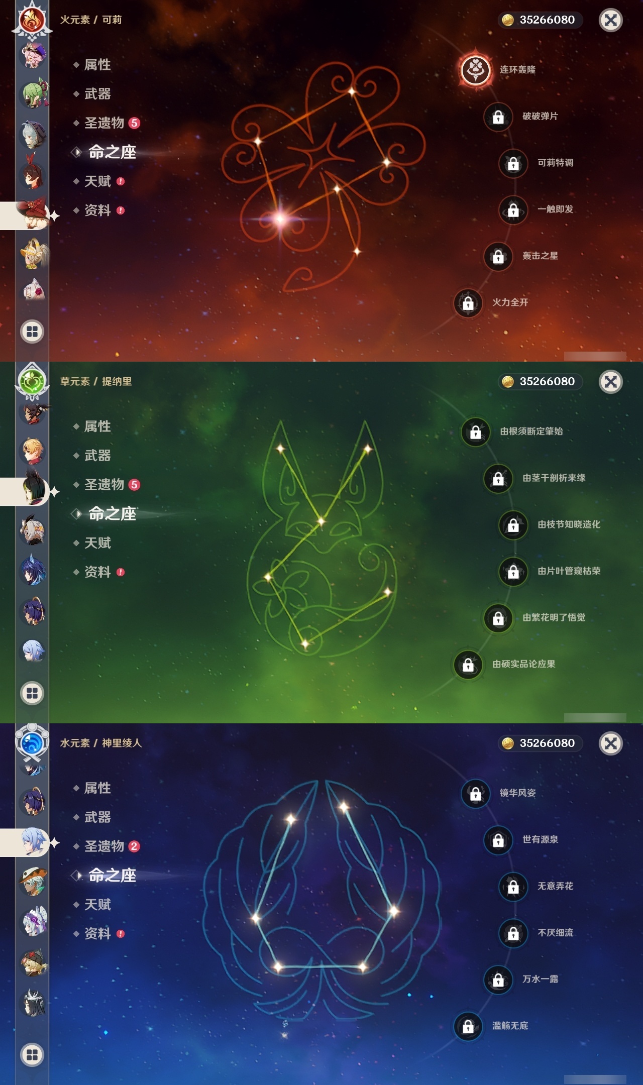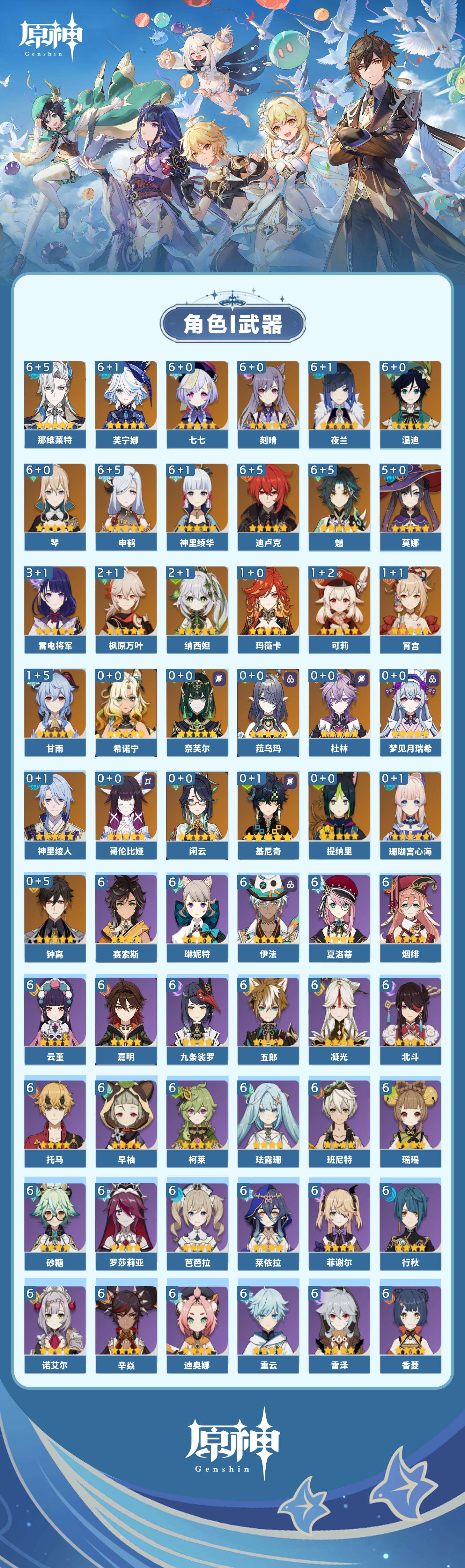 【原神】1满命,冒险等级:60,五星数量:57,五星角色:那维莱特 6命芙宁娜 6命迪卢克 6命魈 6命刻晴 6命七七 6命琴 6命神里绫华 6命温迪 6命申鹤 6命夜兰 6命莫娜 5命雷电将军 3命枫原万叶 2命纳西妲 2命玛薇卡 1命甘雨 1命可莉 1命宵宫 1命基尼奇珊瑚宫心海希诺宁钟离梦见月瑞希神里绫人提纳里闲云菈乌玛奈芙尔杜林哥伦比娅__五星武器:万世流涌大典 5精阿莫斯之弓 5精和璞鸢 5精狼的末路 5精息灾 5精贯虹之槊 5精天空之傲 3精风鹰剑 2精四风原典 2精山王长牙碧落之珑静水流涌之辉黎明破晓之史不灭月华苍古自由之誓飞雷之弦振护摩之杖天空之卷天空之刃天空之翼雾切之回光薙草之稻光波乱月白经津若水赤沙之杖千夜浮梦__四星角色:班尼特 6命行秋 6命九条裟罗 6命香菱 6命鹿野院平藏 6命珐露珊 6命凝光 6命迪奥娜 6命砂糖 6命瑶瑶 6命莱依拉 6命柯莱 6命芭芭拉 6命云堇 6命早柚 6命托马 6命五郎 6命烟绯 6命重云 6命辛焱 6命诺艾尔 6命罗莎莉亚 6命雷泽 6命菲谢尔 6命北斗 6命琳妮特 6命夏洛蒂 6命嘉明 6命伊法 6命赛索斯 6命久岐忍 5命绮良良 4命欧洛伦 3命卡齐娜 2命多莉 2命爱诺 2命米卡 1命坎蒂丝 1命菲米尼 1命伊安珊 1命蓝砚塔利雅