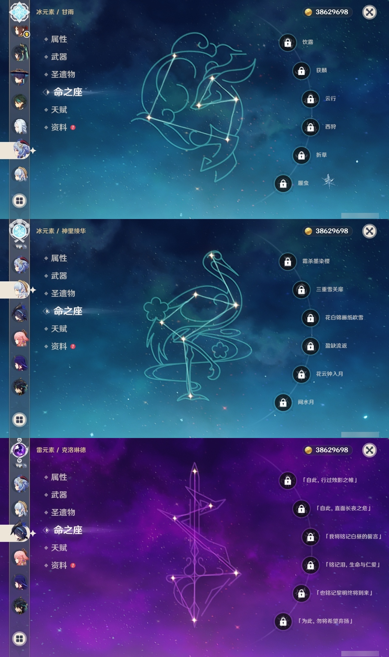 【原神】【lyys11433】冒险等级:60,五星数量:42,五星角色:莫娜 3命提纳里 3命迪卢克 2命刻晴 2命七七 2命钟离 2命那维莱特 1命雷电将军 1命琴基尼奇白术神里绫华恰斯卡玛薇卡宵宫迪希雅达达利亚申鹤八重神子夜兰芙宁娜娜维娅闲云千织阿蕾奇诺纳西妲流浪者枫原万叶甘雨魈克洛琳德__五星武器:碧落之珑静水流涌之辉阿莫斯之弓飞雷之弦振风鹰剑和璞鸢天空之脊天空之卷雾切之回光息灾千夜浮梦__四星角色:班尼特 6命行秋 6命九条裟罗 6命香菱 6命久岐忍 6命鹿野院平藏 6命凝光 6命迪奥娜 6命砂糖 6命莱依拉 6命坎蒂丝 6命多莉 6命柯莱 6命云堇 6命托马 6命五郎 6命辛焱 6命诺艾尔 6命罗莎莉亚 6命雷泽 6命菲谢尔 6命北斗 6命菲米尼 6命琳妮特 6命卡齐娜 5命米卡 4命卡维 4命早柚 4命夏沃蕾 4命珐露珊 3命绮良良 3命芭芭拉 3命烟绯 3命夏洛蒂 3命赛索斯 2命瑶瑶 1命欧洛伦 1命嘉明 1命伊安珊 1命重云