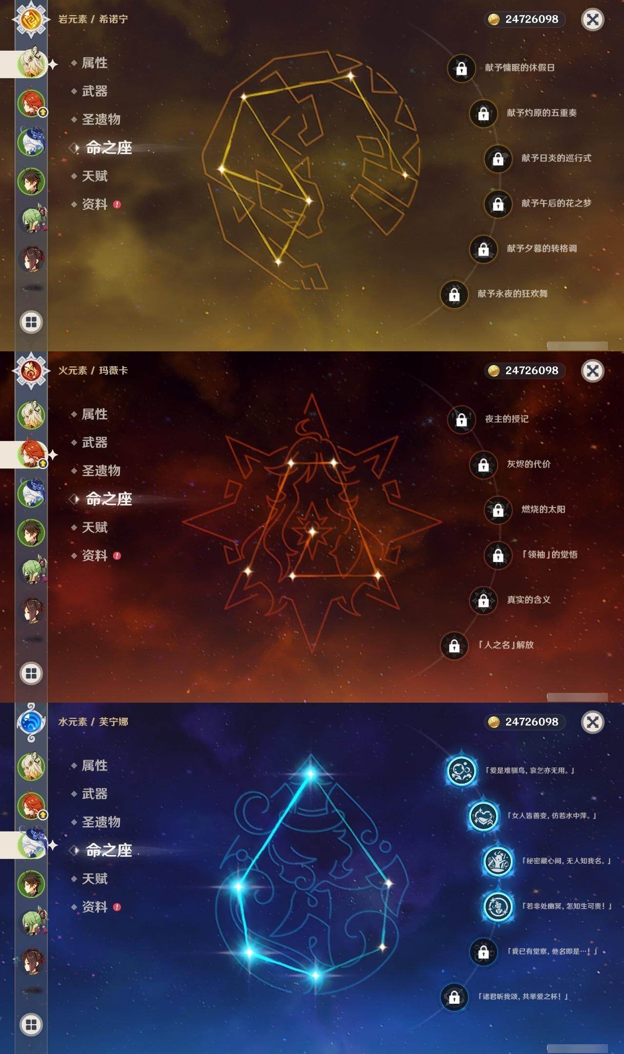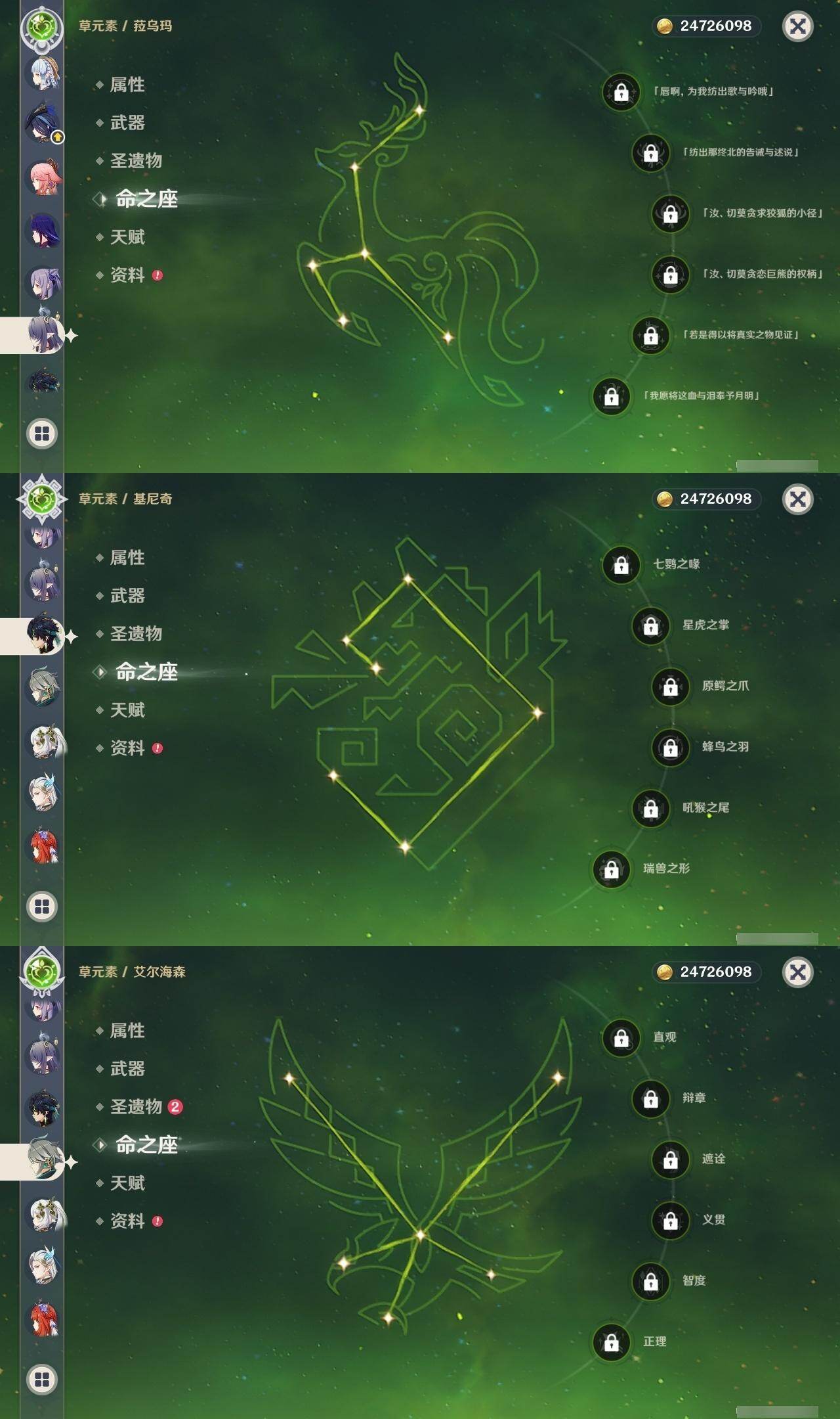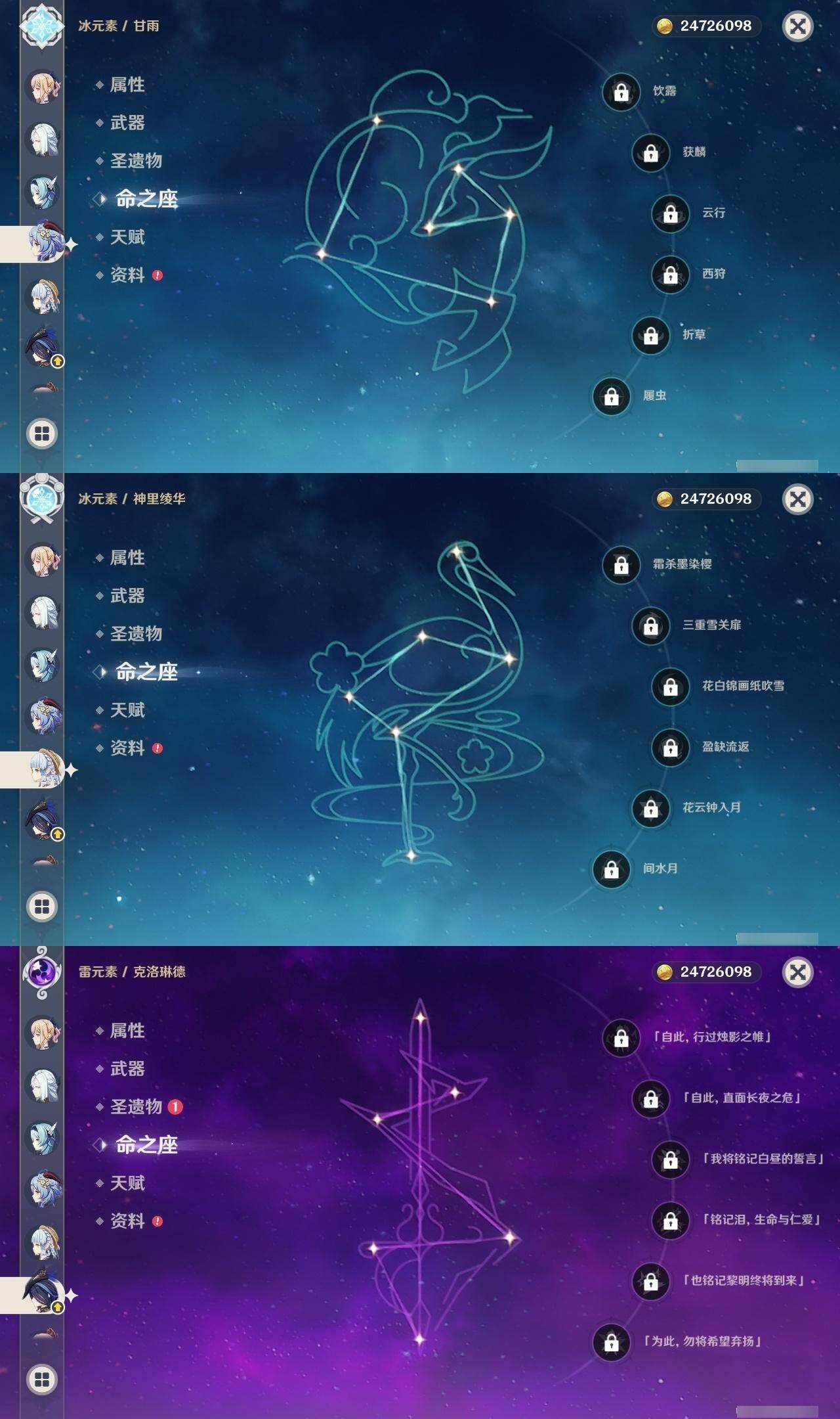 [15457388]60级/95黄/女主/40个五星角色/22个五星武器 0命克洛琳德0命千织0命闲云0命娜维娅4命芙宁娜0命那维莱特2命迪希雅0命艾尔海森0命流浪者0命纳西妲0命妮露1命提纳里0命夜兰0命八重神子1命申鹤0命荒泷一斗0命优菈0命雷电将军0命枫原万叶0命神里绫华2命钟离0命胡桃0命甘雨0命魈0命宵宫0命温迪0命可莉0命达达利亚0命阿贝多0命珊瑚宫心海满命刻晴2命七七1命琴2命莫娜5命迪卢克0命基尼奇0命希诺宁0命玛薇卡0命丝柯克0命菈乌玛精1白雨心弦精1静水流涌之辉精1万世流涌大典精1最初的大魔术精1裁叶萃光精2图莱杜拉的回忆精1圣显之钥精1猎人之径精1若水精1波乱月白经津精1冬极白星精1苍古自由之誓精1护摩之杖精1四风原典精2和璞鸢精2天空之翼精1天空之卷精2风鹰剑精3狼的末路精2天空之傲精1祭星者之望精1真语秘匣