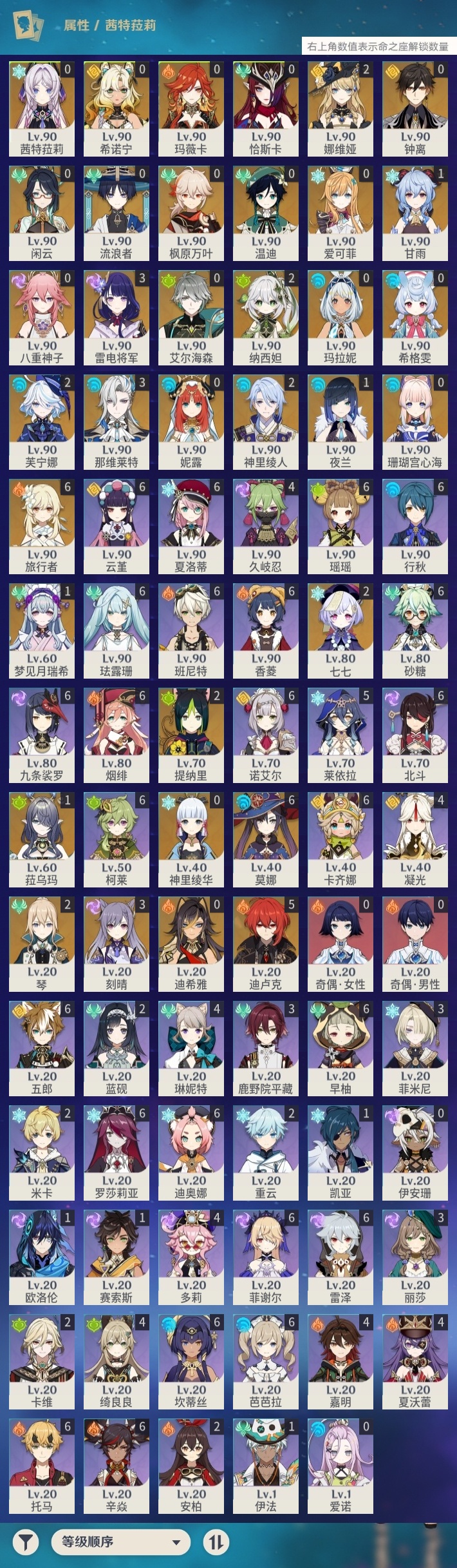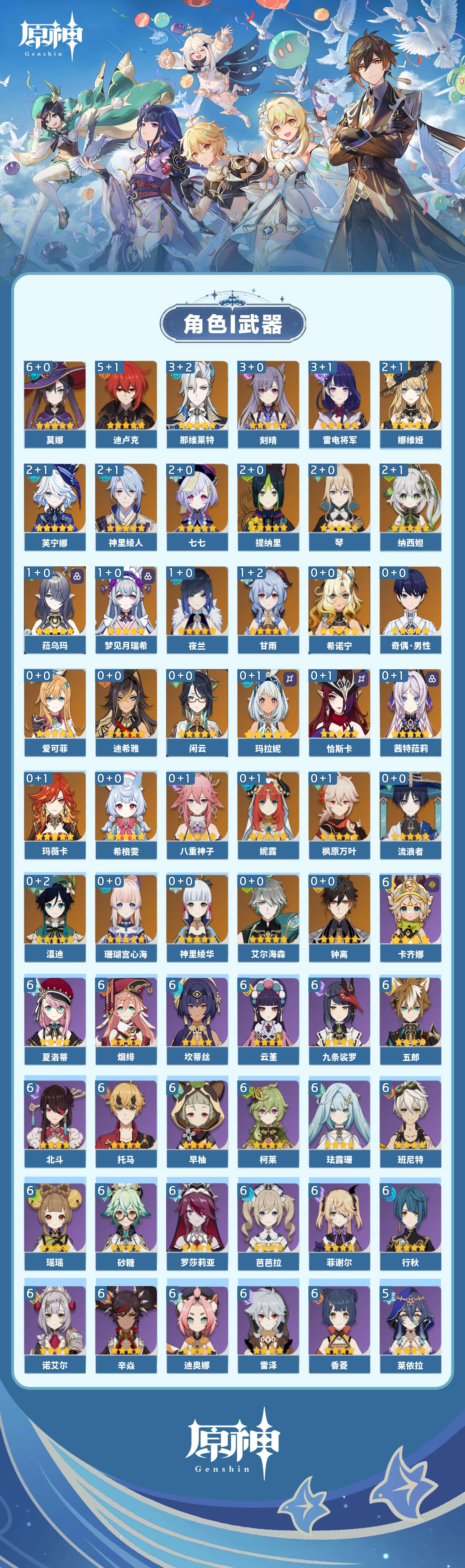 【原神】【lyys11452】冒险等级:60,五星数量:60,五星角色:莫娜 6命迪卢克 5命那维莱特 3命刻晴 3命雷电将军 3命芙宁娜 2命娜维娅 2命七七 2命琴 2命神里绫人 2命提纳里 2命纳西妲 2命梦见月瑞希 1命菈乌玛 1命甘雨 1命夜兰 1命玛拉妮珊瑚宫心海希诺宁神里绫华温迪恰斯卡玛薇卡茜特菈莉迪希雅钟离八重神子闲云爱可菲妮露艾尔海森流浪者枫原万叶希格雯__五星武器:四风原典 3精万世流涌大典 2精阿莫斯之弓 2精风鹰剑 2精终末嗟叹之诗 2精冲浪时光星鹫赤羽祭星者之望焚曜千阳静水流涌之辉裁断苍古自由之誓护摩之杖狼的末路天空之脊天空之卷天空之翼无工之剑薙草之稻光赤角石溃杵神乐之真意波乱月白经津圣显之钥千夜浮梦__四星角色:卡齐娜 6命班尼特 6命行秋 6命九条裟罗 6命香菱 6命珐露珊 6命迪奥娜 6命砂糖 6命瑶瑶 6命坎蒂丝 6命柯莱 6命芭芭拉 6命云堇 6命早柚 6命托马 6命五郎 6命烟绯 6命辛焱 6命诺艾尔 6命罗莎莉亚 6命雷泽 6命菲谢尔 6命北斗 6命夏洛蒂 6命莱依拉 5命久岐忍 4命凝光 4命绮良良 4命多莉 4命琳妮特 4命夏沃蕾 4命嘉明 4命鹿野院平藏 3命菲米尼 3命米卡 2命卡维 2命蓝砚 2命重云 2命欧洛伦 1命伊法 1命赛索斯 1命奇偶·女性奇偶·男性伊安珊爱诺
