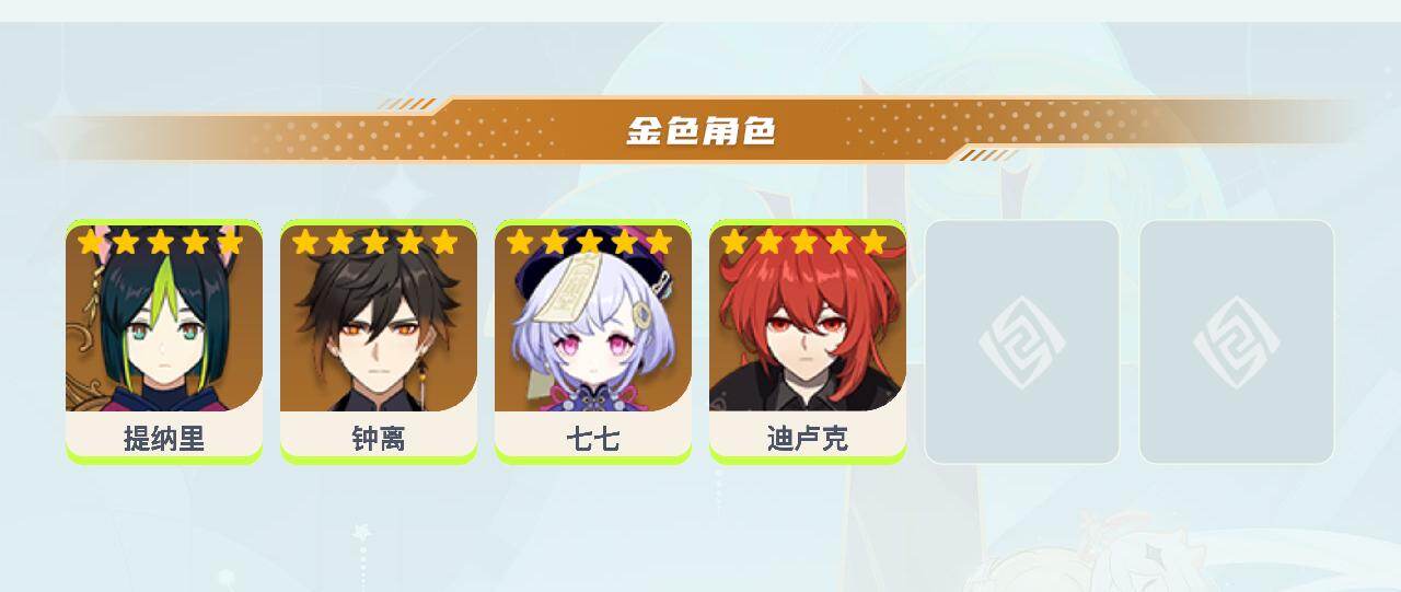 【ys1052】28级/4黄/女主/4个五星角色/0命钟离/0命迪卢克/0命提纳里/0命七七