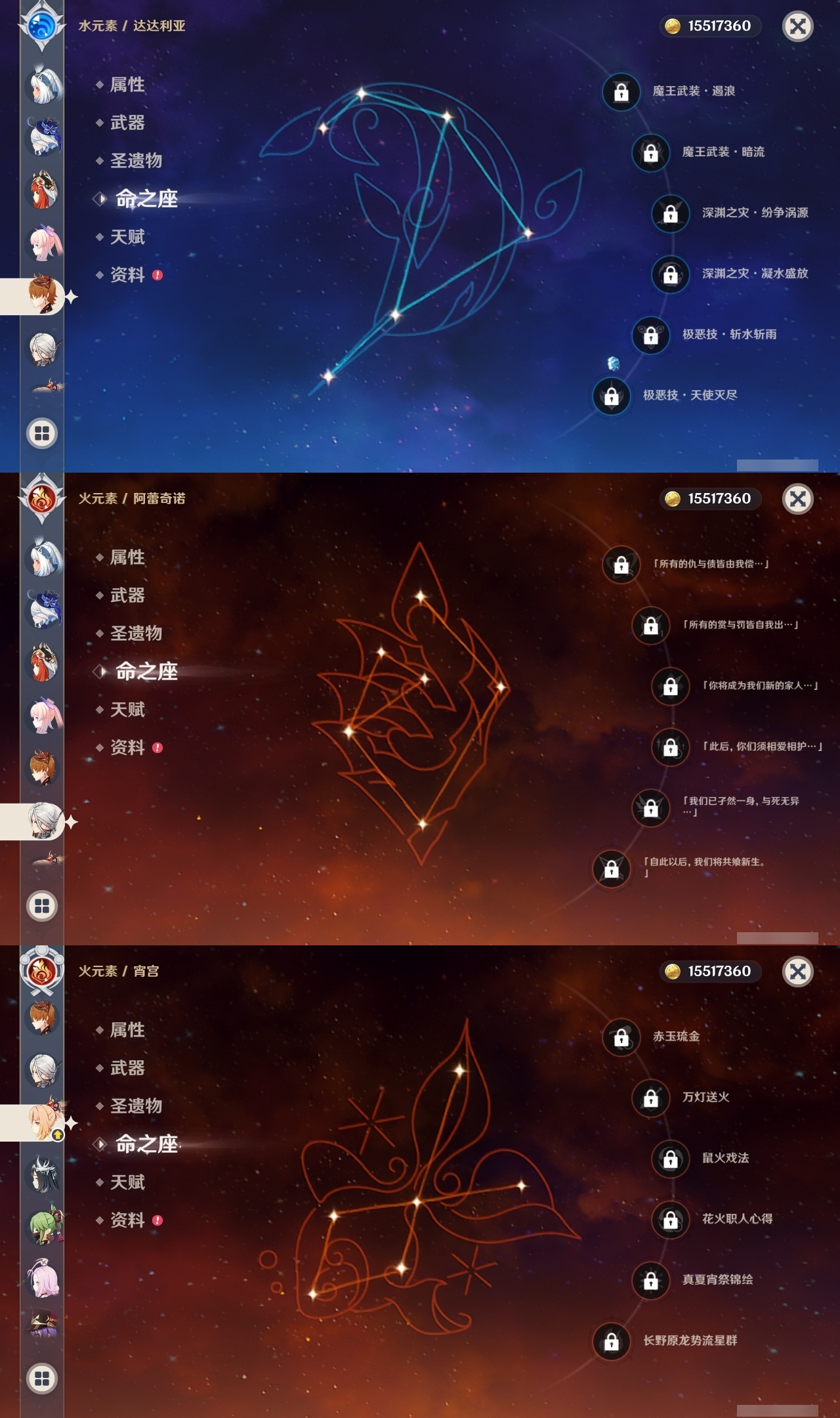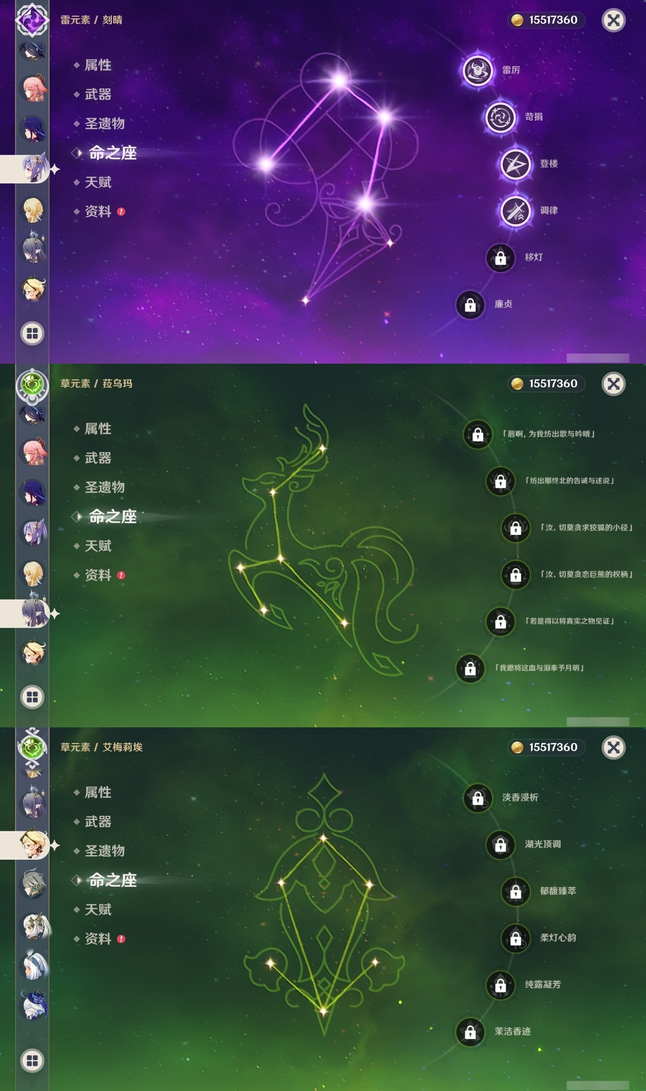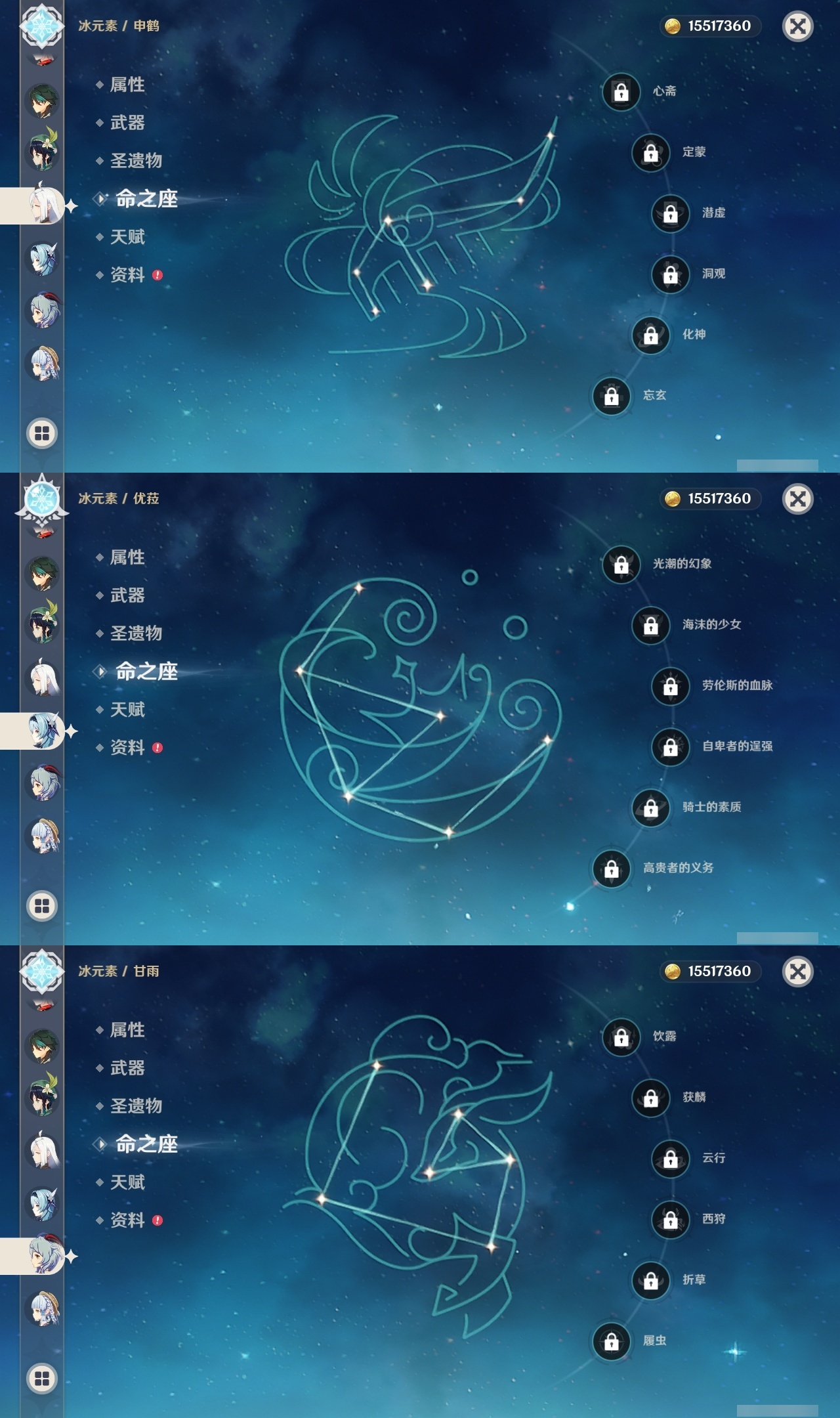 【原神】【lyys11485】冒险等级:60,五星数量:63,五星角色:刻晴 4命莫娜 3命菲林斯 2命七七 2命琴 2命迪卢克 1命八重神子 1命夜兰 1命提纳里 1命艾梅莉埃玛拉妮珊瑚宫心海希诺宁神里绫华温迪恰斯卡宵宫优菈钟离荒泷一斗达达利亚梦见月瑞希申鹤瓦雷莎芙宁娜赛诺阿蕾奇诺妮露纳西妲菈乌玛艾尔海森流浪者杜林枫原万叶甘雨魈胡桃克洛琳德雷电将军__五星武器:柔灯挽歌碧落之珑苇海信标最初的大魔术静水流涌之辉血染荒城裁叶萃光阿莫斯之弓苍古自由之誓飞雷之弦振风鹰剑和璞鸢护摩之杖狼的末路天空之脊天空之刃天空之翼无工之剑雾切之回光薙草之稻光斫峰之刃息灾__四星角色:班尼特 6命行秋 6命九条裟罗 6命香菱 6命久岐忍 6命鹿野院平藏 6命珐露珊 6命凝光 6命迪奥娜 6命砂糖 6命瑶瑶 6命莱依拉 6命坎蒂丝 6命多莉 6命柯莱 6命卡维 6命芭芭拉 6命云堇 6命早柚 6命托马 6命五郎 6命烟绯 6命重云 6命辛焱 6命诺艾尔 6命罗莎莉亚 6命雷泽 6命菲谢尔 6命北斗 6命爱诺 6命欧洛伦 5命卡齐娜 3命米卡 3命赛索斯 3命菲米尼 2命琳妮特 2命嘉明 2命伊安珊 2命绮良良 1命夏洛蒂 1命夏沃蕾 1命伊法 1命埃洛伊奇偶·女性蓝砚塔利雅