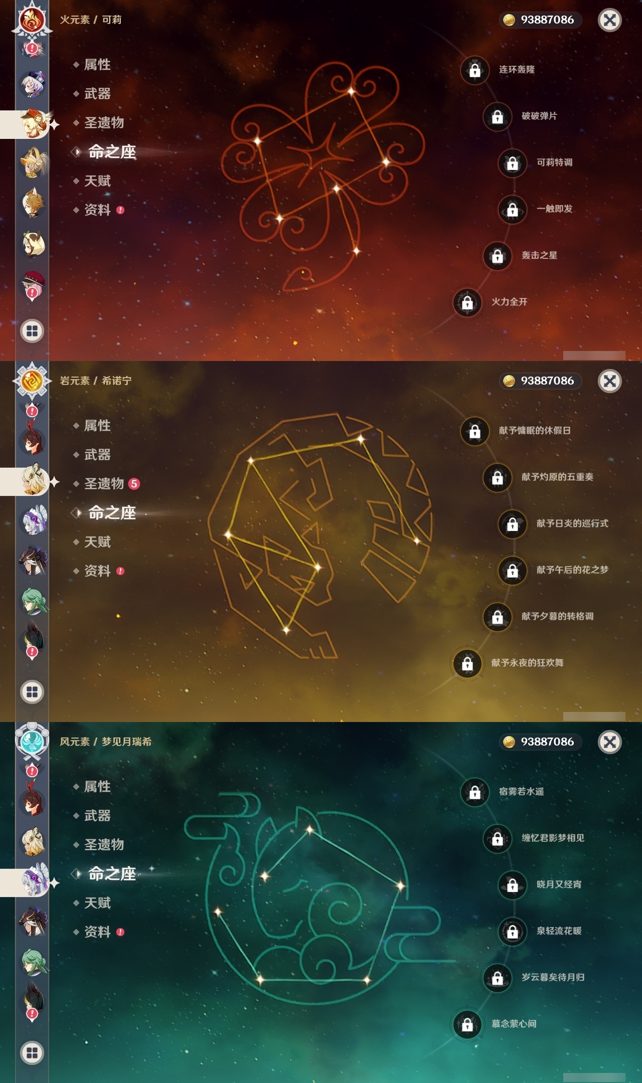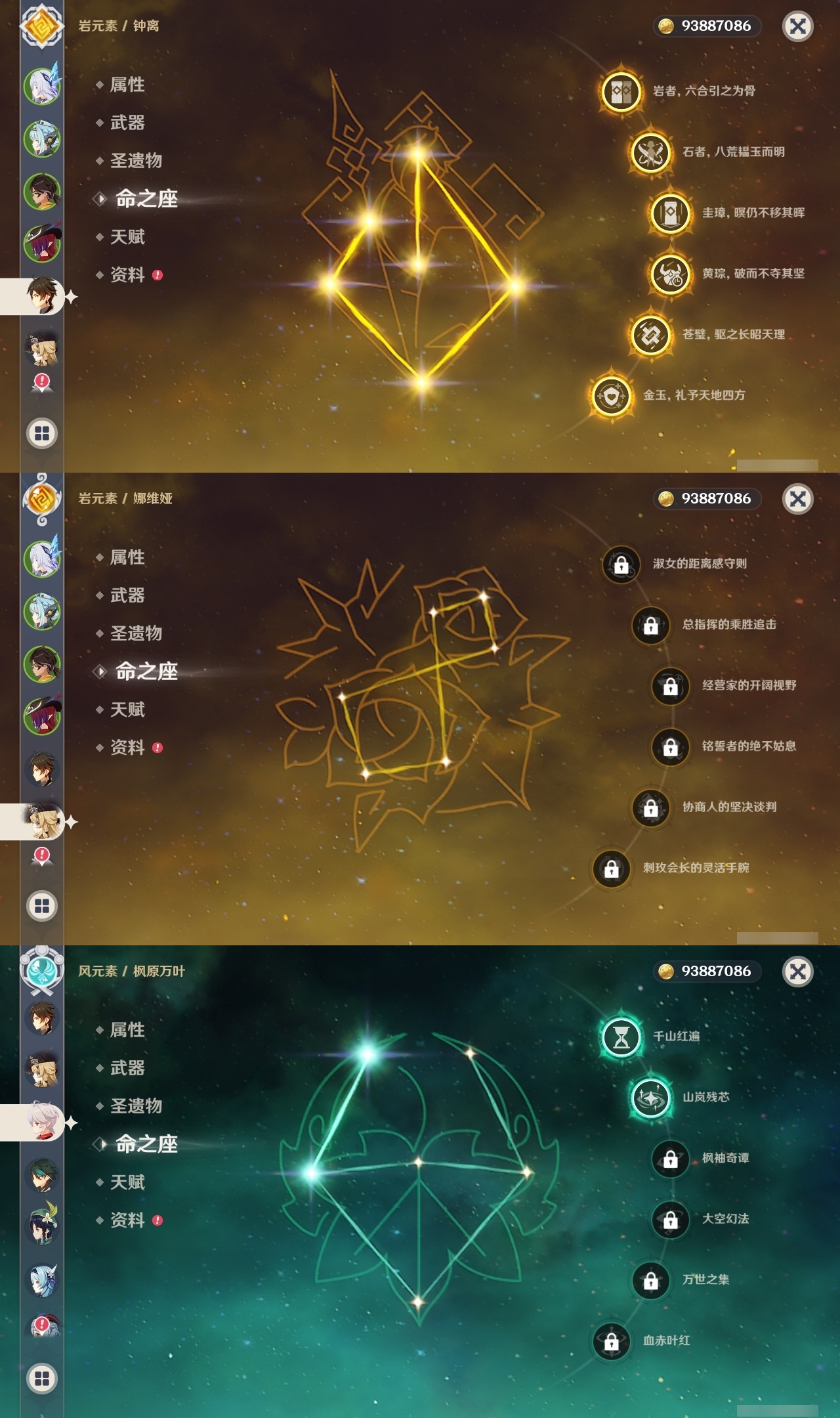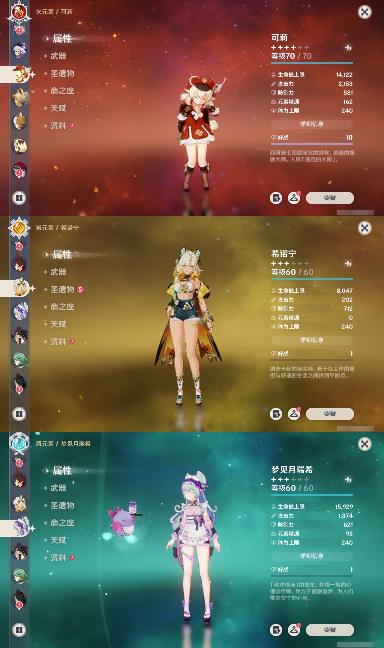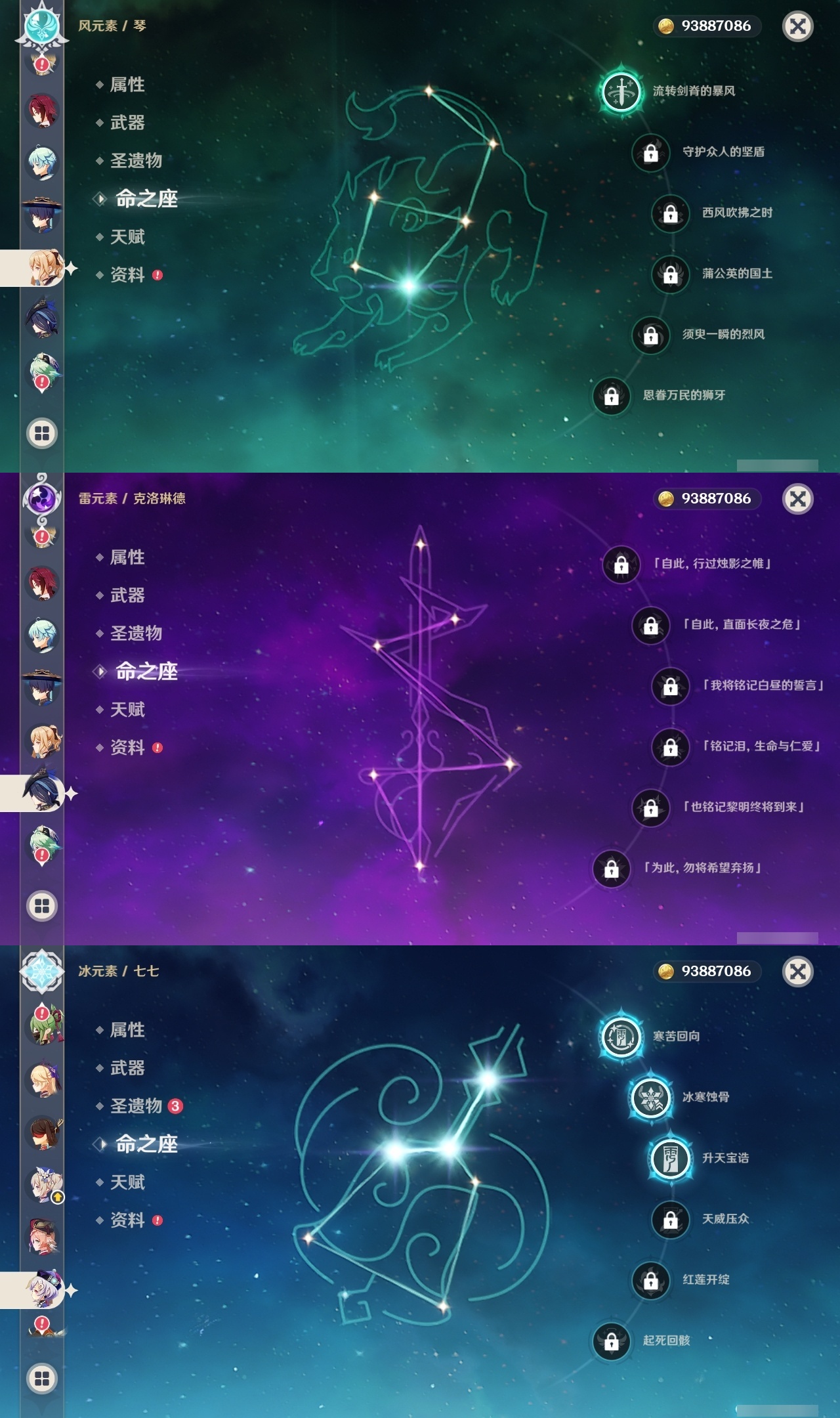 【原神】满命,冒险等级:60,五星数量:71,五星角色:那维莱特 6命迪卢克 6命刻晴 6命钟离 6命莫娜 4命迪希雅 3命七七 3命枫原万叶 2命胡桃 1命琴 1命提纳里 1命纳西妲 1命流浪者 1命玛拉妮珊瑚宫心海希诺宁白术神里绫华温迪恰斯卡玛薇卡优菈达达利亚梦见月瑞希八重神子神里绫人夜兰芙宁娜娜维娅闲云千织赛诺阿蕾奇诺丝柯克妮露伊涅芙菈乌玛艾尔海森甘雨魈克洛琳德可莉雷电将军__五星武器:风鹰剑 3精护摩之杖 3精狼的末路 3精天空之翼 3精星鹫赤羽 2精阿莫斯之弓 2精苍古自由之誓 2精天空之傲 2精天空之卷 2精若水 2精冲浪时光焚曜千阳万世流涌大典裁断图莱杜拉的回忆和璞鸢磐岩结绿松籁响起之时天空之脊天空之刃雾切之回光终末嗟叹之诗冬极白星息灾神乐之真意贯虹之槊赦罪__四星角色:卡齐娜 6命行秋 6命九条裟罗 6命香菱 6命久岐忍 6命鹿野院平藏 6命珐露珊 6命凝光 6命迪奥娜 6命砂糖 6命莱依拉 6命坎蒂丝 6命多莉 6命柯莱 6命芭芭拉 6命云堇 6命托马 6命五郎 6命烟绯 6命重云 6命辛焱 6命诺艾尔 6命罗莎莉亚 6命雷泽 6命菲谢尔 6命北斗 6命夏沃蕾 6命赛索斯 6命班尼特 5命菲米尼 5命瑶瑶 4命欧洛伦 4命早柚 4命嘉明 4命卡维 3命夏洛蒂 3命伊法 3命绮良良 2命米卡 2命蓝砚 2命琳妮特 2命伊安珊 1命塔利雅 1命埃洛伊爱诺