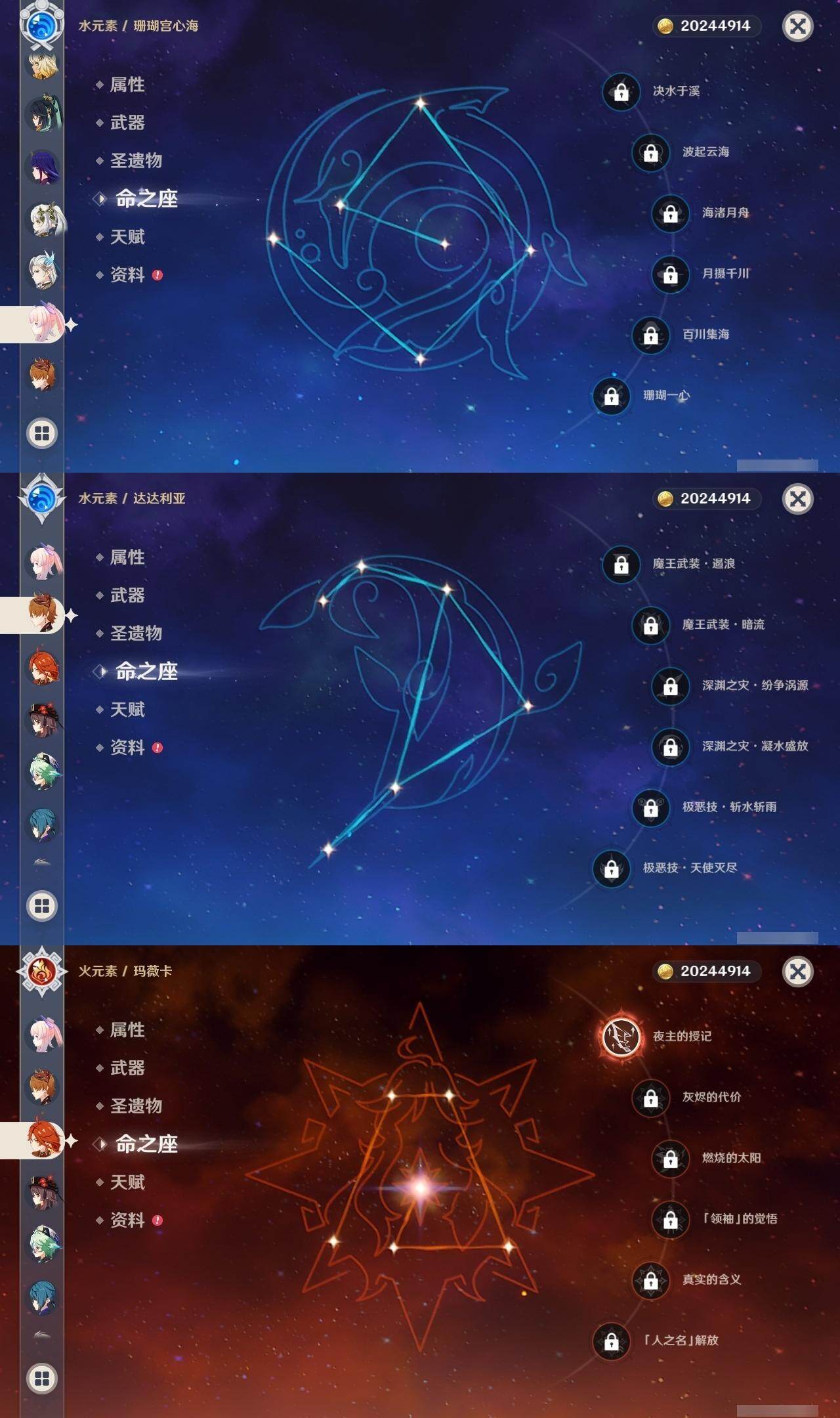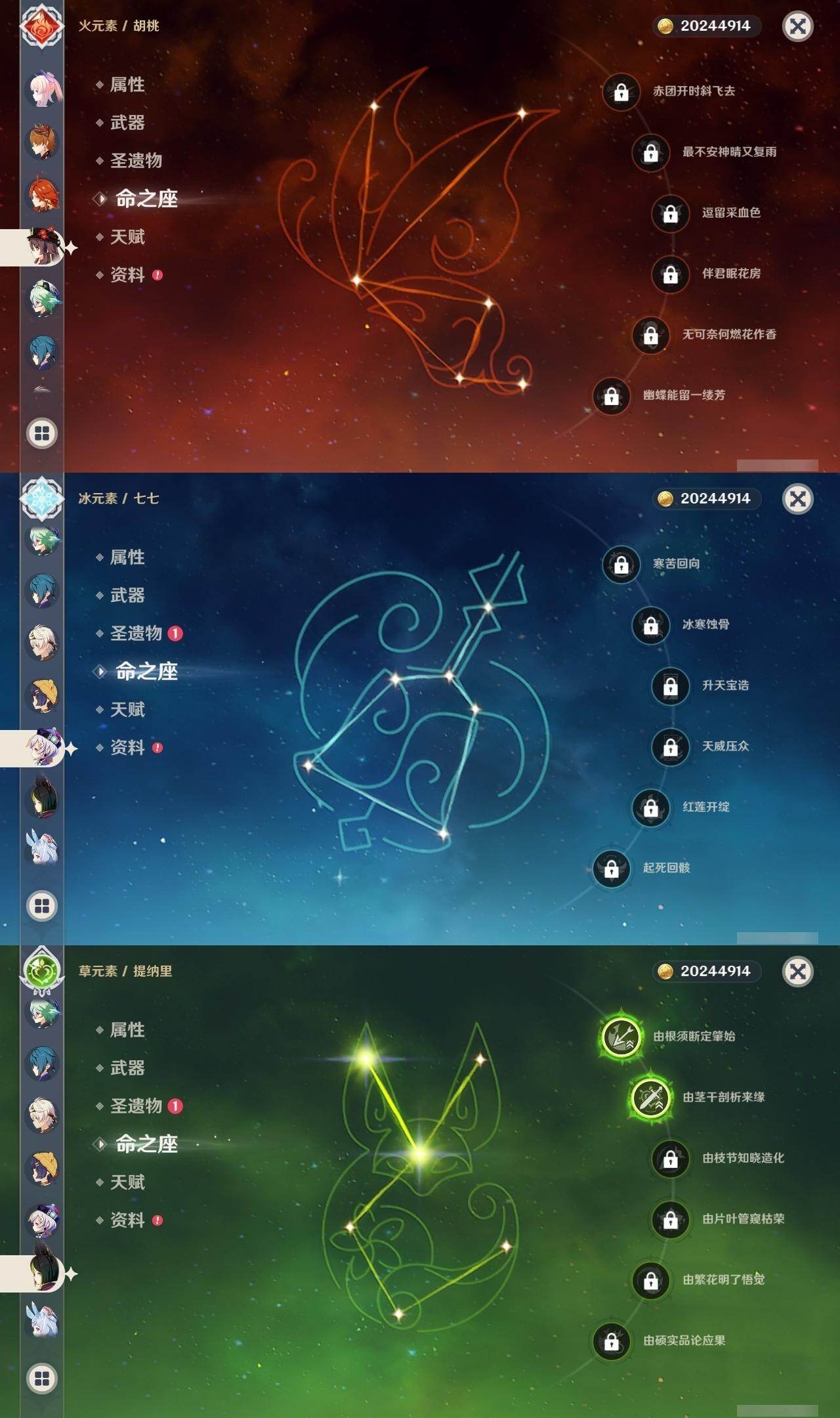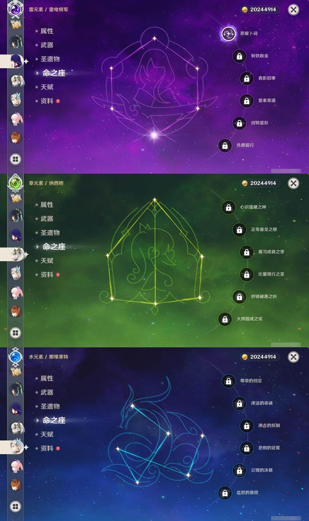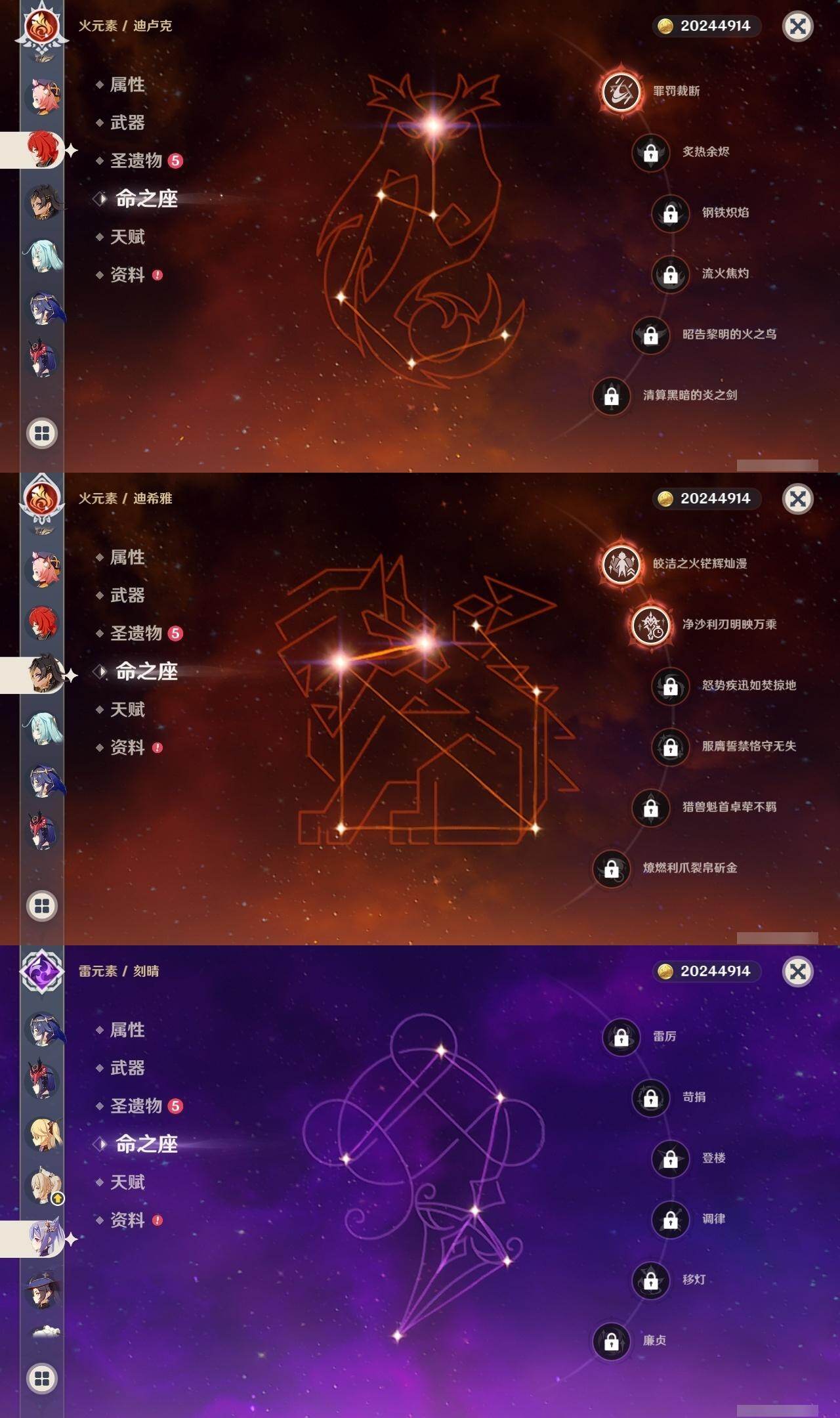 [16422512]59级/37黄/男主/22个五星角色/5个五星武器 0命希格雯0命闲云0命娜维娅0命芙宁娜0命莱欧斯利0命那维莱特2命迪希雅0命纳西妲2命提纳里1命雷电将军0命枫原万叶0命钟离0命胡桃0命达达利亚0命珊瑚宫心海0命刻晴0命七七2命琴1命莫娜1命迪卢克0命希诺宁1命玛薇卡精1和璞鸢精1风鹰剑精1狼的末路精1天空之傲精1焚曜千阳