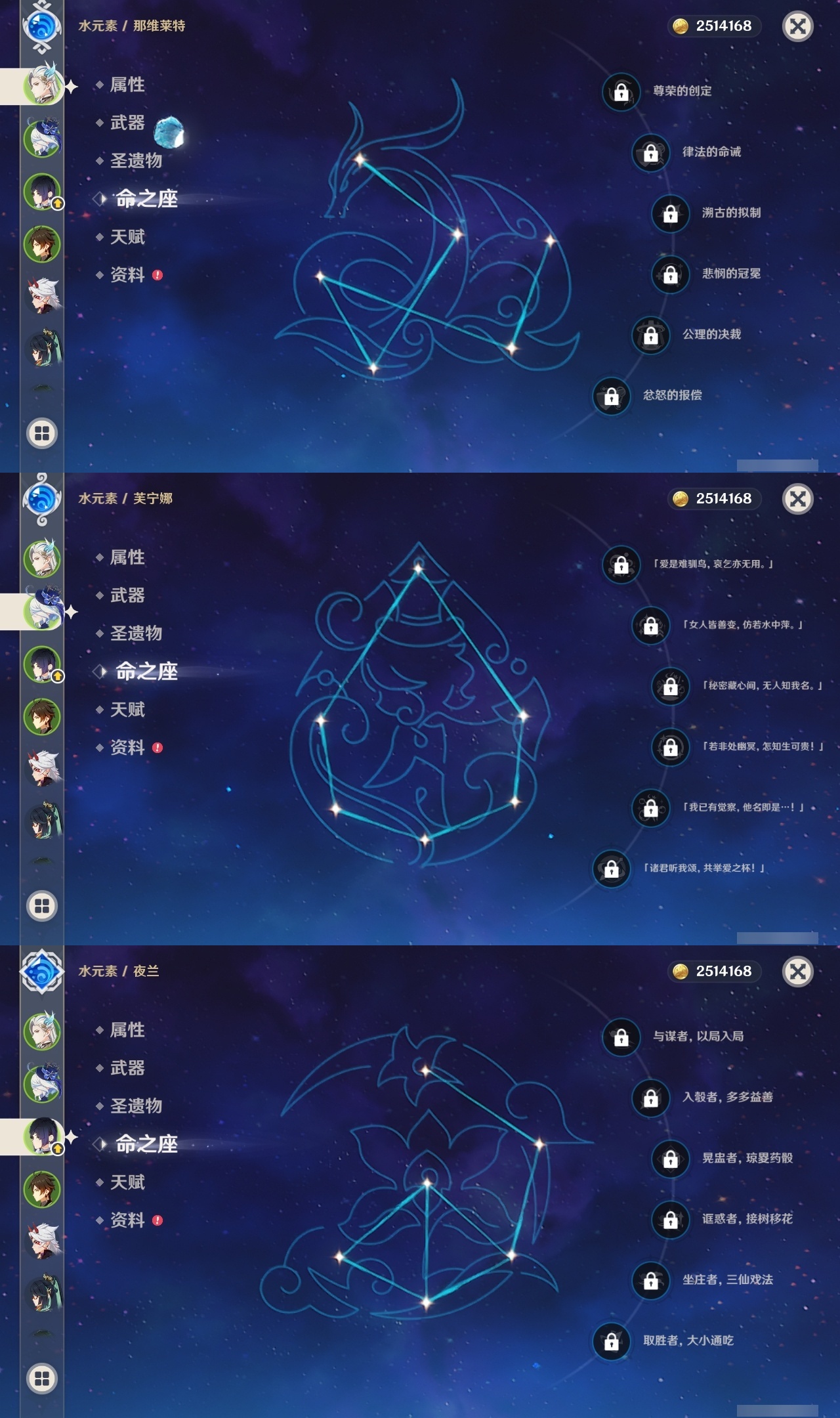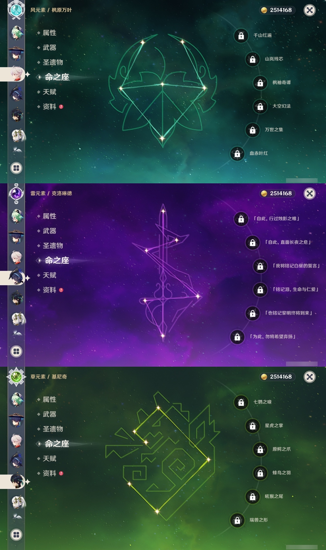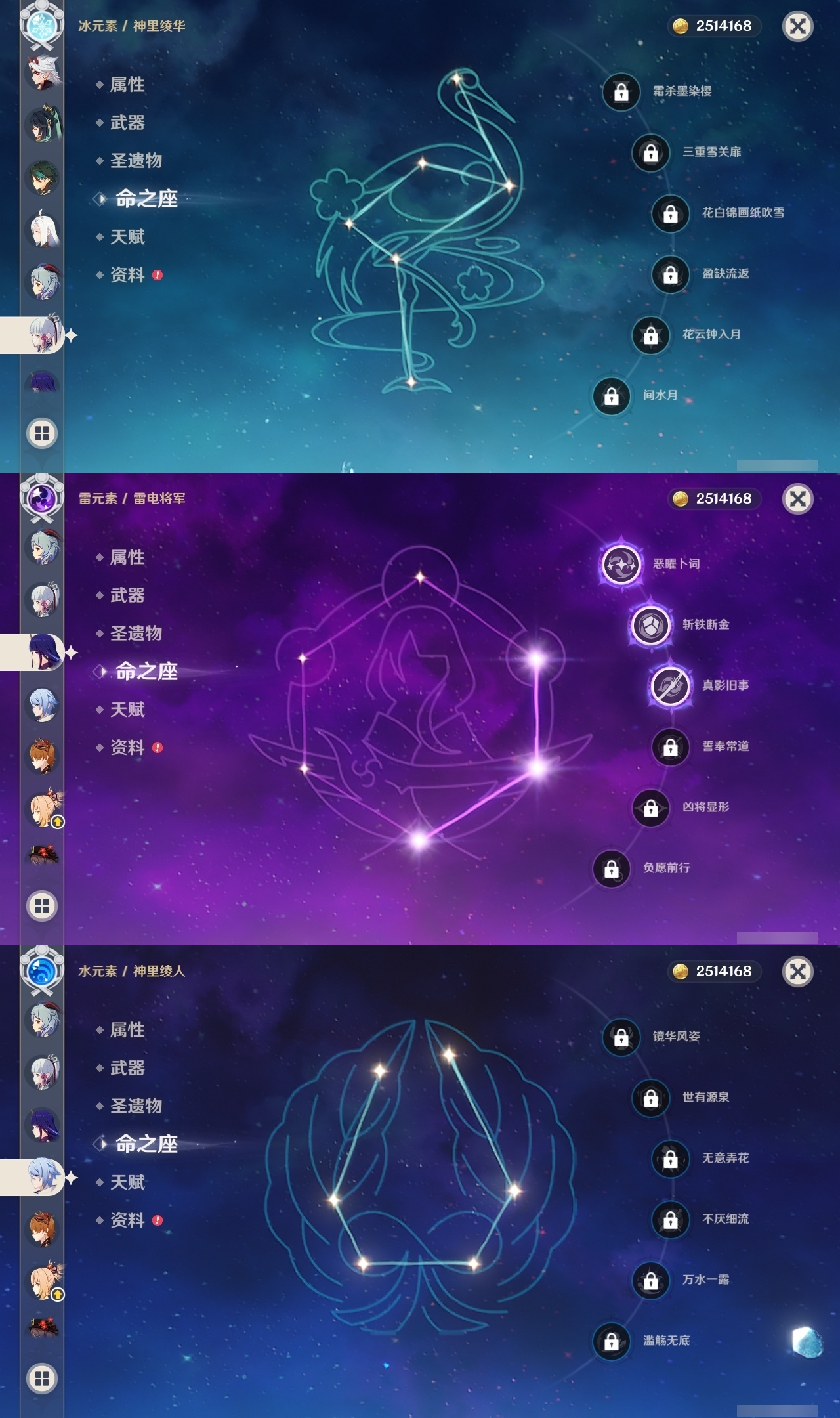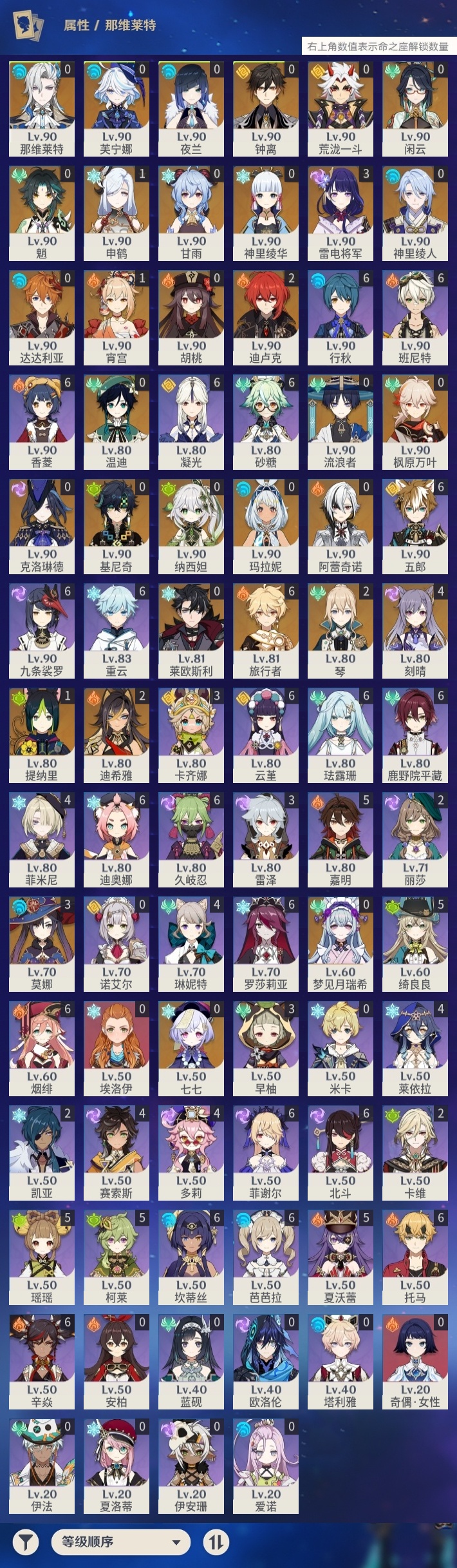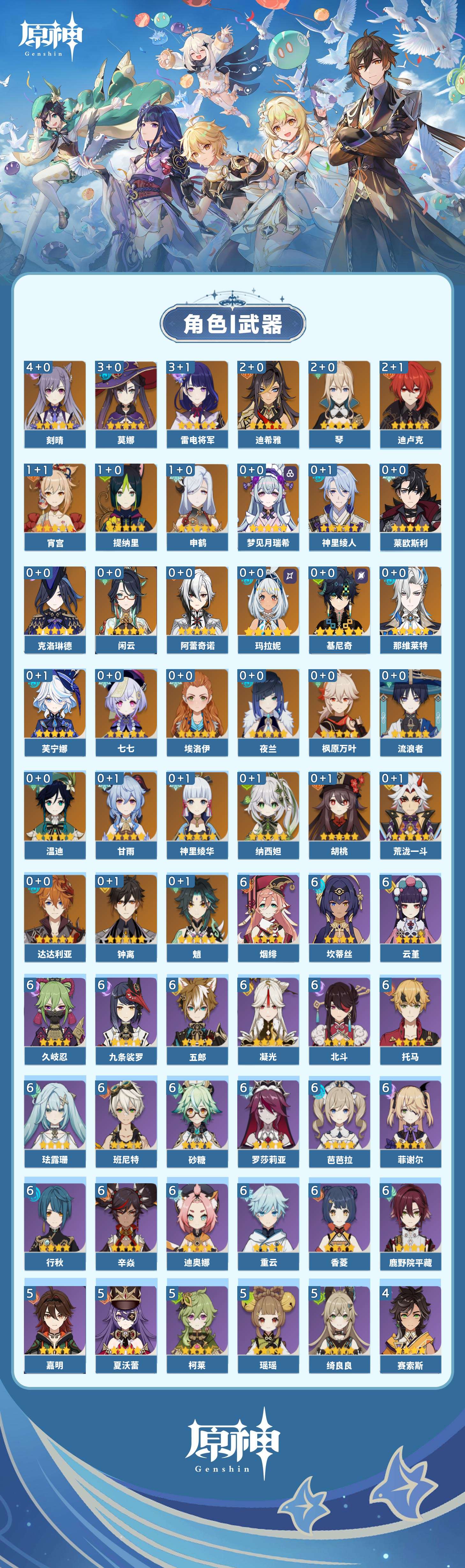 【原神】【lyys11489】冒险等级:60,五星数量:53,五星角色:刻晴 4命雷电将军 3命莫娜 3命迪希雅 2命迪卢克 2命琴 2命宵宫 1命申鹤 1命提纳里 1命七七玛拉妮基尼奇神里绫华温迪钟离荒泷一斗达达利亚梦见月瑞希神里绫人那维莱特莱欧斯利夜兰芙宁娜闲云阿蕾奇诺纳西妲流浪者枫原万叶甘雨魈胡桃克洛琳德__五星武器:天空之卷 2精静水流涌之辉香韵奏者裁叶萃光阿莫斯之弓飞雷之弦振风鹰剑和璞鸢护摩之杖狼的末路天空之傲雾切之回光薙草之稻光赤角石溃杵神乐之真意贯虹之槊波乱月白经津千夜浮梦白雨心弦__四星角色:班尼特 6命行秋 6命九条裟罗 6命香菱 6命久岐忍 6命鹿野院平藏 6命珐露珊 6命凝光 6命迪奥娜 6命砂糖 6命坎蒂丝 6命芭芭拉 6命云堇 6命托马 6命五郎 6命烟绯 6命重云 6命辛焱 6命罗莎莉亚 6命菲谢尔 6命北斗 6命绮良良 5命瑶瑶 5命柯莱 5命夏沃蕾 5命嘉明 5命莱依拉 4命多莉 4命菲米尼 4命琳妮特 4命赛索斯 4命卡齐娜 3命早柚 3命雷泽 3命卡维 2命埃洛伊奇偶·女性米卡欧洛伦蓝砚诺艾尔夏洛蒂伊法伊安珊塔利雅爱诺