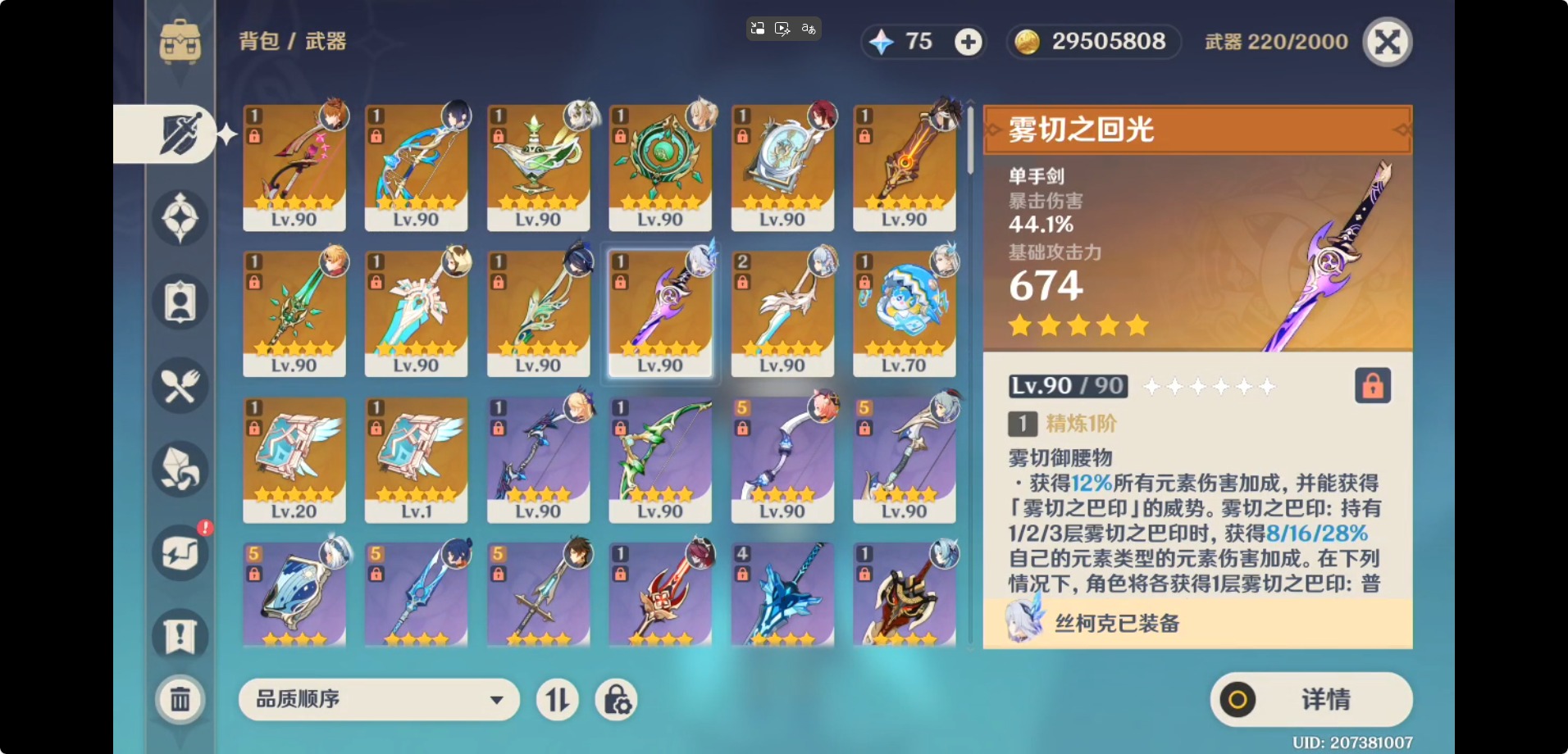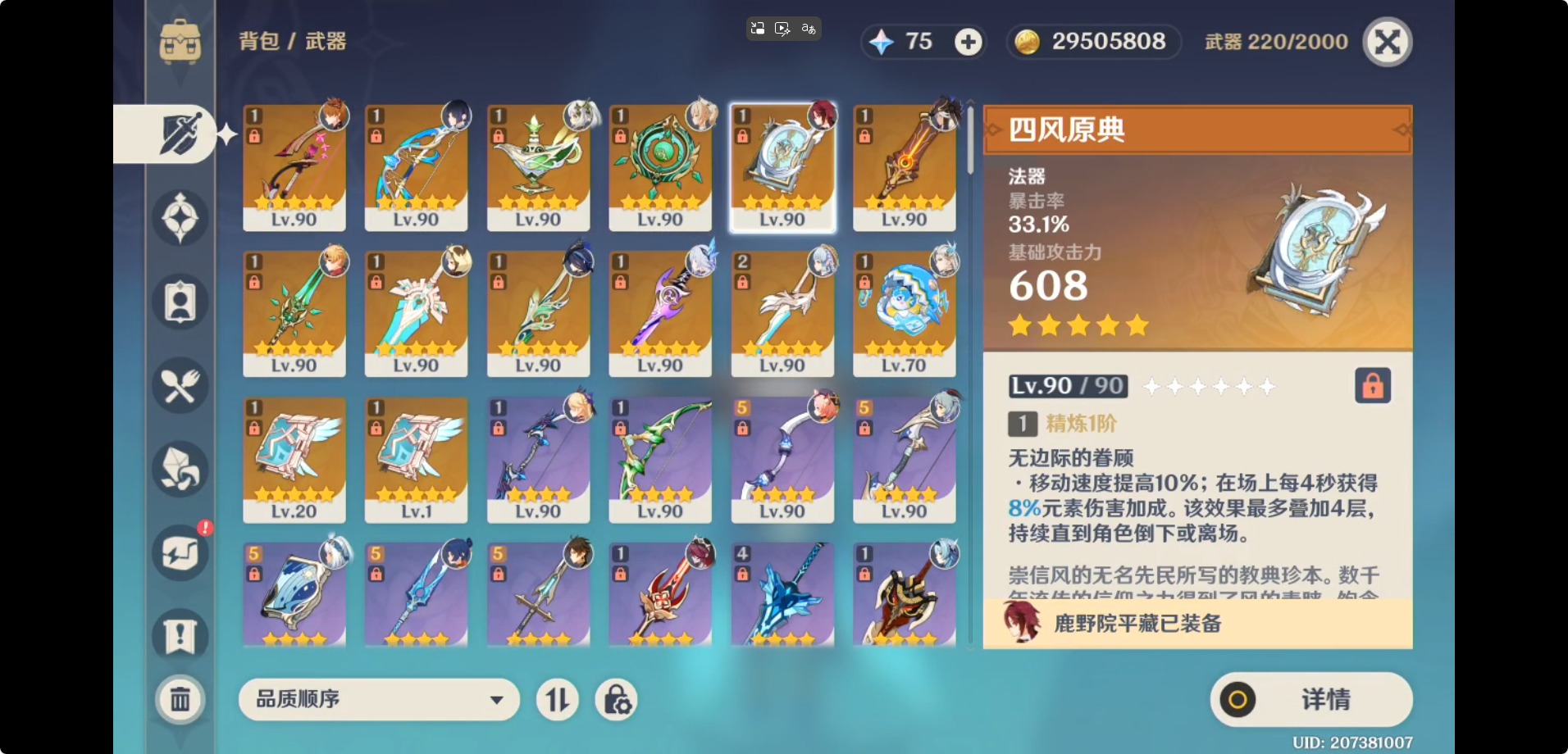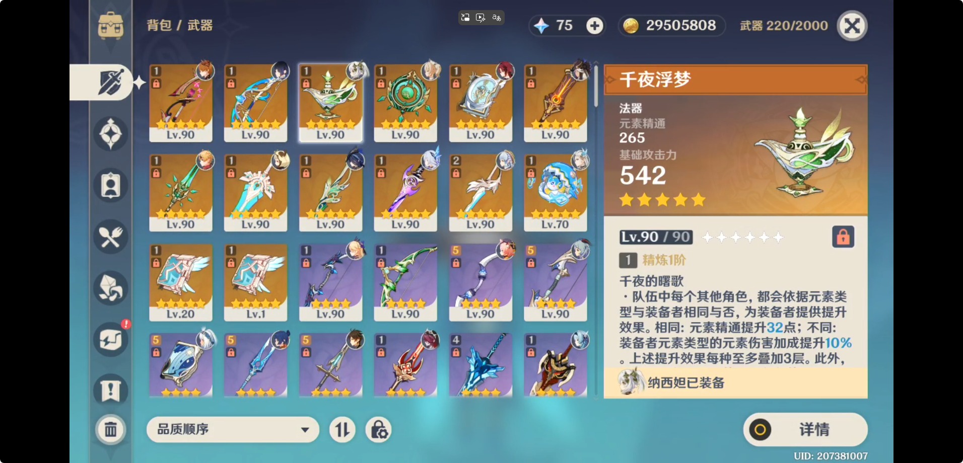[16449728]【邮箱】不送邮/死邮 【总黄数】43 【冒险等级】60 【3命金色角色】三命七七 【1命金色角色】一命艾尔海森一命夜兰一命提纳里一命刻晴 【0命金色角色】丝柯克玛拉妮克洛琳德芙宁娜那维莱特纳西妲赛诺神里绫华枫原万叶优菈甘雨钟离达达利亚迪卢克琴莫娜 【2精武器】风鹰剑 【1精武器】冲浪时光最初的大魔术碧落之珑裁叶萃光千夜浮梦赤沙之杖雾切之回光和璞鸢终末嗟叹之诗天空之傲天空之卷四风原典