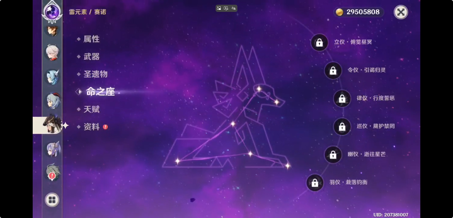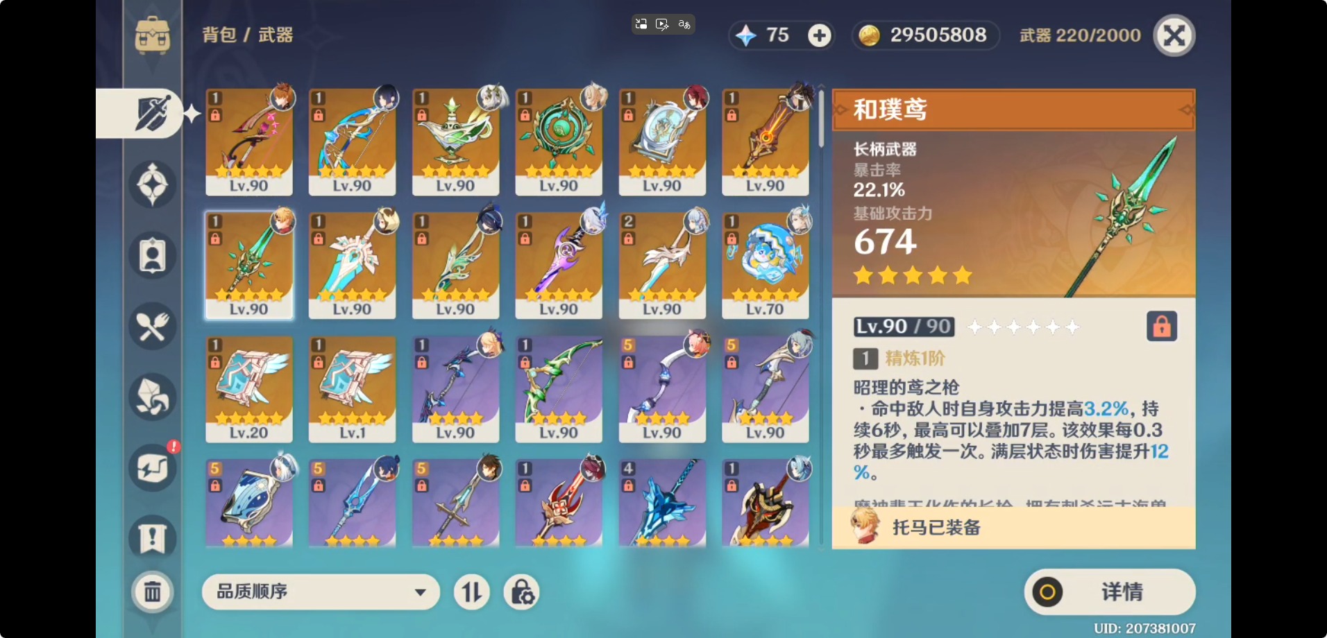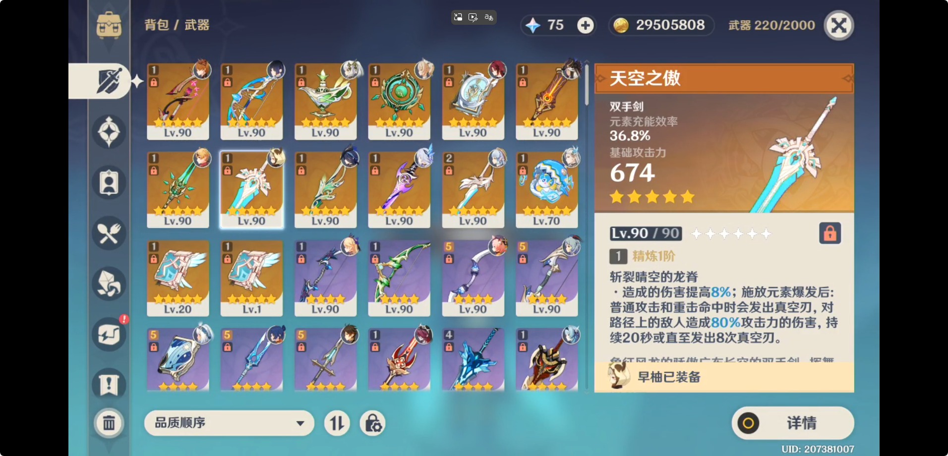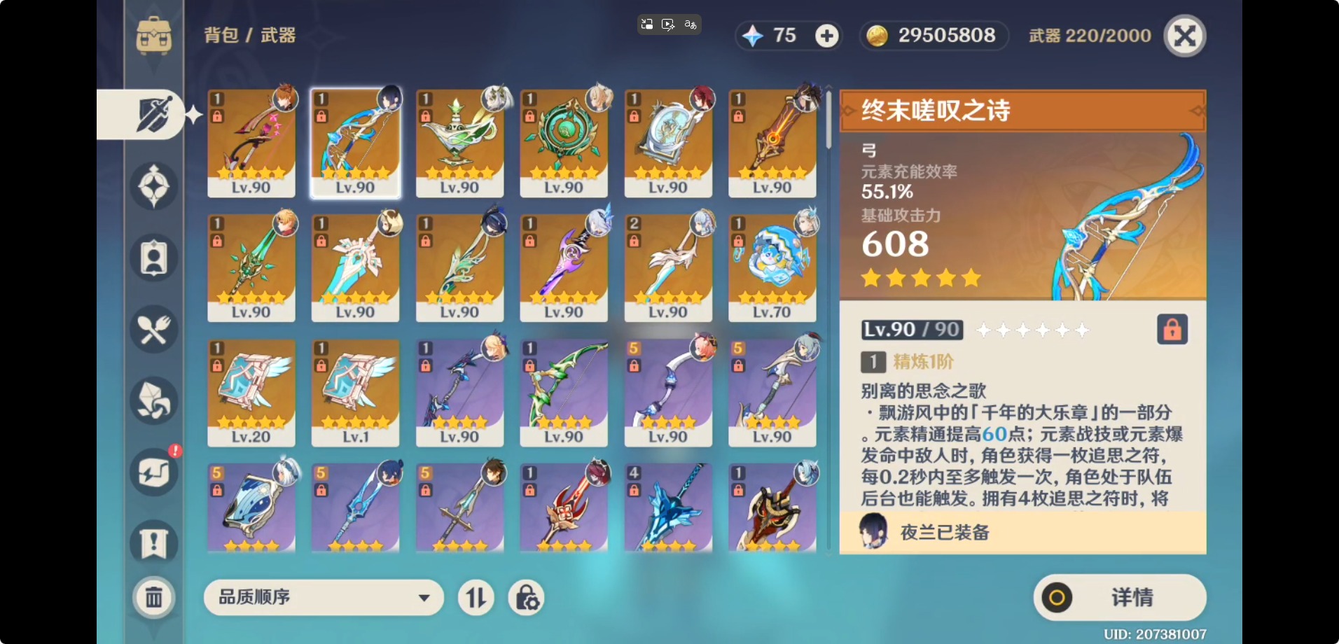 [16449728]【邮箱】不送邮/死邮 【总黄数】43 【冒险等级】60 【3命金色角色】三命七七 【1命金色角色】一命艾尔海森一命夜兰一命提纳里一命刻晴 【0命金色角色】丝柯克玛拉妮克洛琳德芙宁娜那维莱特纳西妲赛诺神里绫华枫原万叶优菈甘雨钟离达达利亚迪卢克琴莫娜 【2精武器】风鹰剑 【1精武器】冲浪时光最初的大魔术碧落之珑裁叶萃光千夜浮梦赤沙之杖雾切之回光和璞鸢终末嗟叹之诗天空之傲天空之卷四风原典
