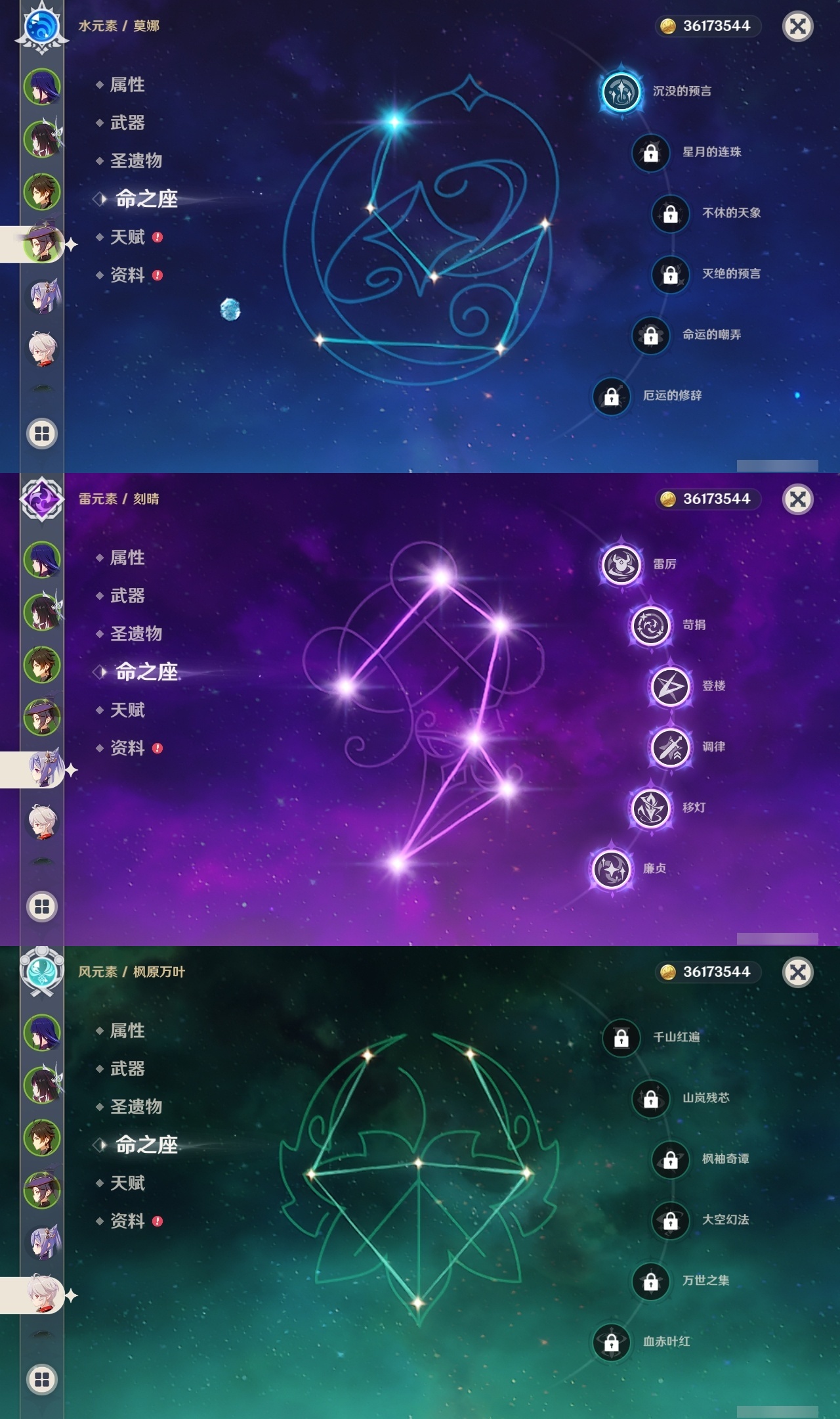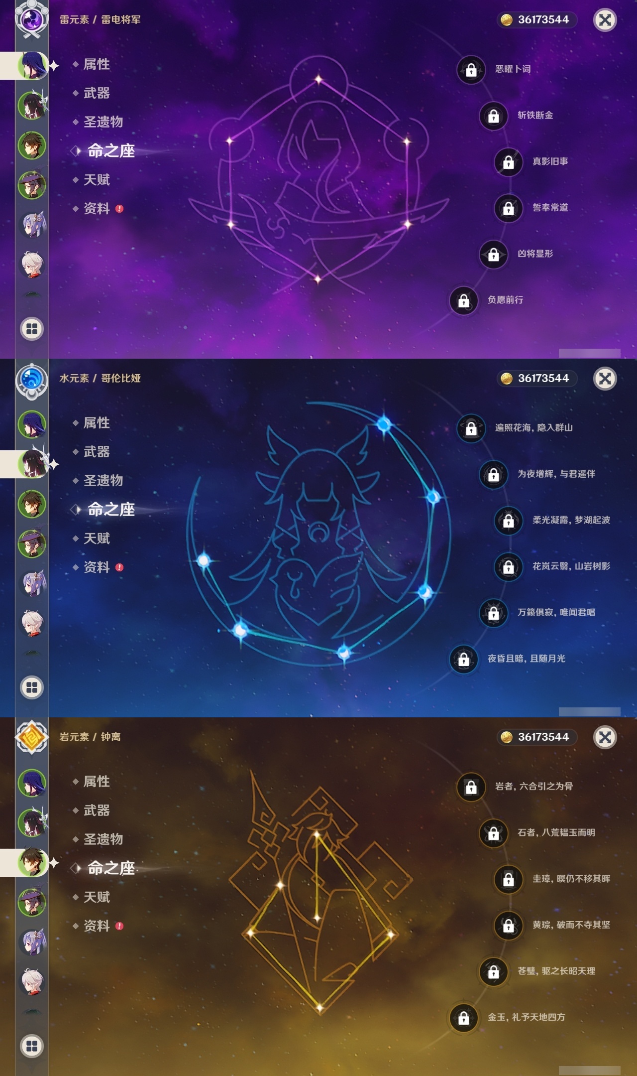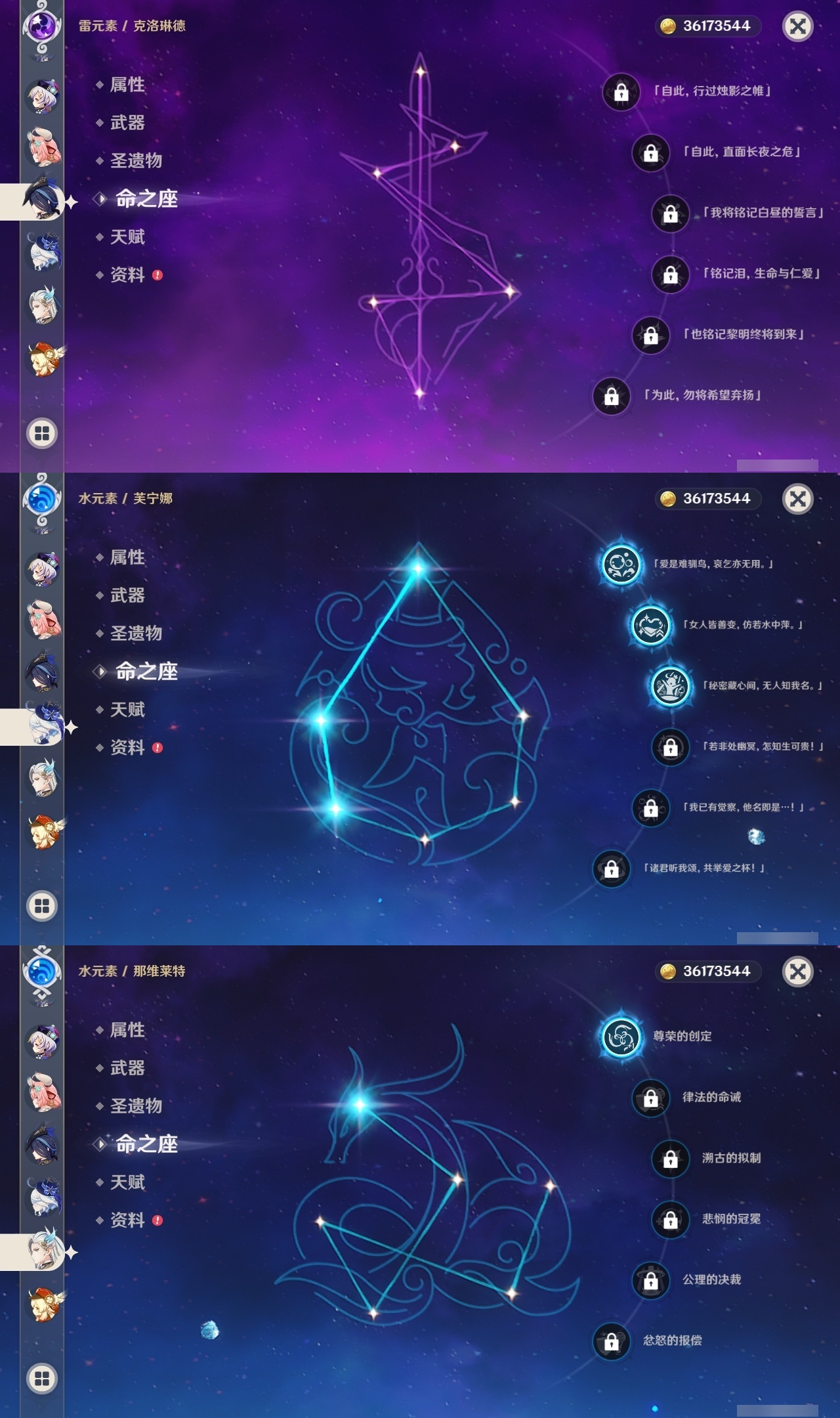 【原神】【lyys11521】冒险等级:60,五星数量:49,五星角色:刻晴 6命琴 5命芙宁娜 3命迪卢克 3命七七 3命神里绫华 3命申鹤 2命提纳里 2命纳西妲 2命希诺宁 1命那维莱特 1命胡桃 1命莫娜 1命温迪 1命夜兰 1命珊瑚宫心海迪希雅钟离荒泷一斗达达利亚梦见月瑞希瓦雷莎赛诺妮露流浪者哥伦比娅枫原万叶甘雨魈克洛琳德可莉雷电将军__五星武器:狼的末路 3精风鹰剑 2精和璞鸢 2精护摩之杖 2精支离轮光苍古自由之誓飞雷之弦振四风原典天空之傲天空之刃雾切之回光斫峰之刃若水赤沙之杖__四星角色:班尼特 6命行秋 6命九条裟罗 6命香菱 6命珐露珊 6命凝光 6命迪奥娜 6命砂糖 6命坎蒂丝 6命芭芭拉 6命云堇 6命早柚 6命烟绯 6命重云 6命辛焱 6命诺艾尔 6命罗莎莉亚 6命雷泽 6命菲谢尔 6命北斗 6命嘉明 6命赛索斯 6命莱依拉 5命多莉 5命夏洛蒂 5命夏沃蕾 5命五郎 4命久岐忍 3命鹿野院平藏 3命柯莱 3命托马 3命瑶瑶 2命伊安珊 2命米卡 1命菲米尼 1命琳妮特 1命伊法 1命埃洛伊奇偶·女性奇偶·男性卡齐娜卡维爱诺