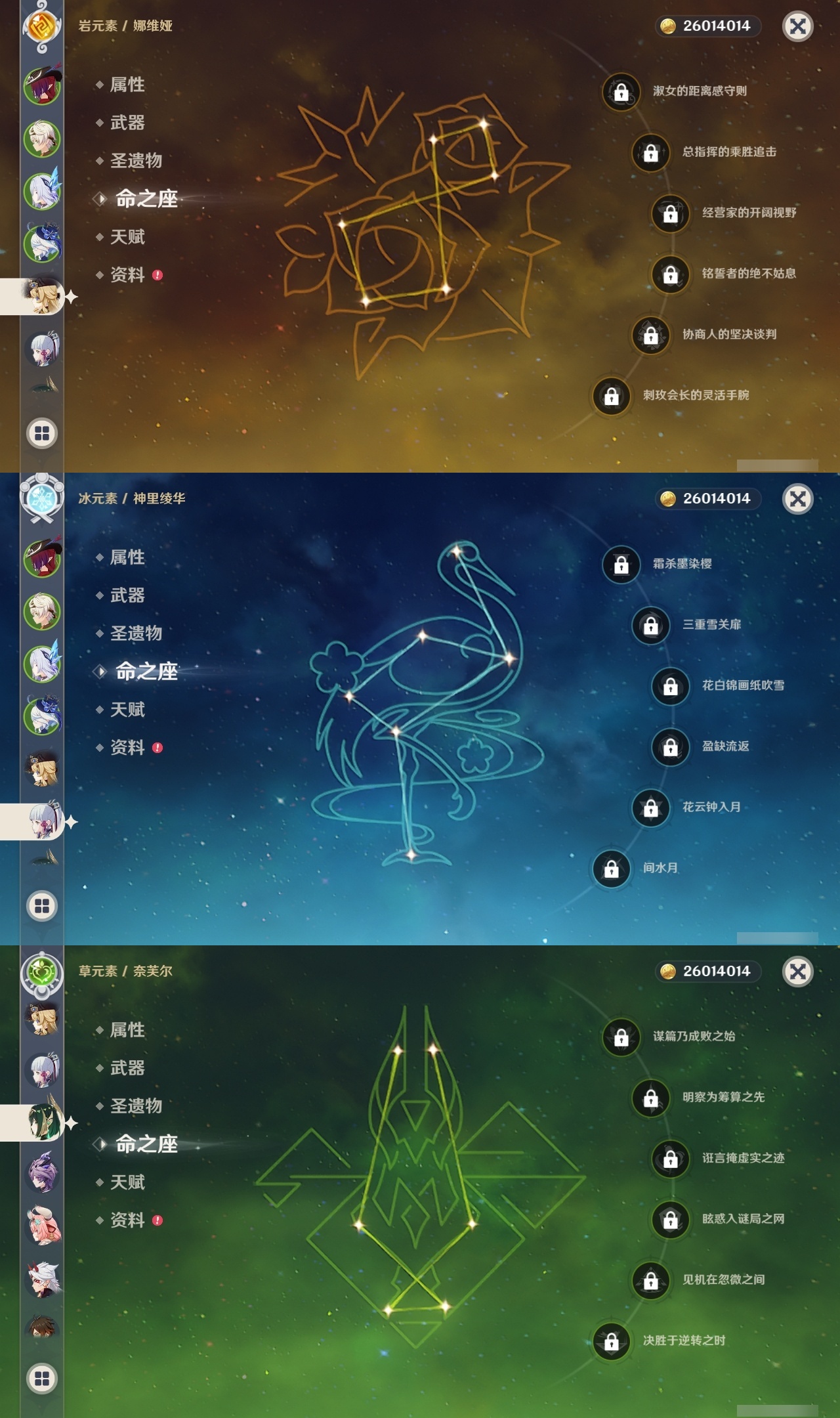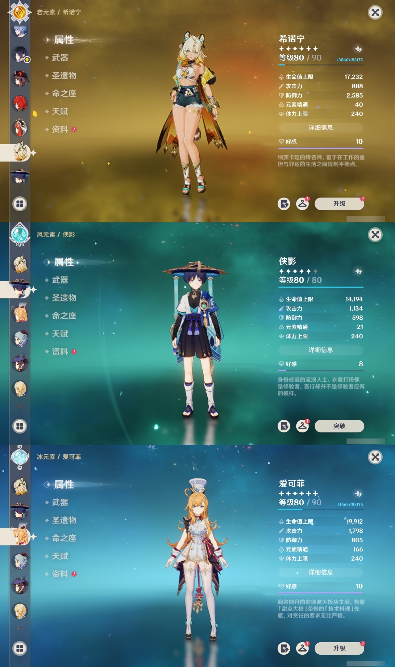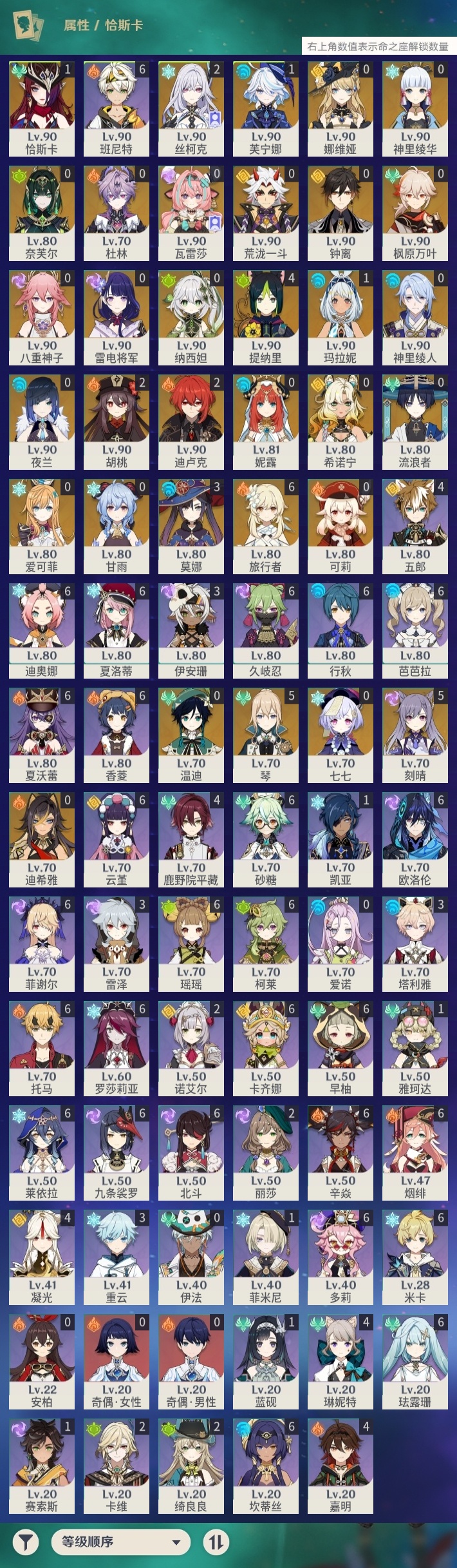 【原神】【lyys11511】冒险等级:60,五星数量:41,五星角色:刻晴 5命琴 5命提纳里 4命莫娜 3命丝柯克 2命迪卢克 2命胡桃 2命玛拉妮 1命恰斯卡 1命芙宁娜 1命七七希诺宁神里绫华温迪迪希雅钟离荒泷一斗瓦雷莎八重神子神里绫人夜兰娜维娅爱可菲妮露纳西妲奈芙尔流浪者杜林枫原万叶甘雨可莉雷电将军__五星武器:风鹰剑护摩之杖狼的末路四风原典天空之脊雾切之回光若水__四星角色:卡齐娜 6命班尼特 6命行秋 6命九条裟罗 6命香菱 6命久岐忍 6命珐露珊 6命迪奥娜 6命砂糖 6命瑶瑶 6命莱依拉 6命米卡 6命坎蒂丝 6命多莉 6命柯莱 6命芭芭拉 6命欧洛伦 6命云堇 6命早柚 6命托马 6命烟绯 6命辛焱 6命罗莎莉亚 6命菲谢尔 6命北斗 6命夏洛蒂 6命夏沃蕾 6命鹿野院平藏 4命凝光 4命五郎 4命琳妮特 4命嘉明 4命重云 3命雷泽 3命伊安珊 3命塔利雅 3命绮良良 2命卡维 2命诺艾尔 2命蓝砚 1命菲米尼 1命赛索斯 1命奇偶·女性奇偶·男性伊法爱诺