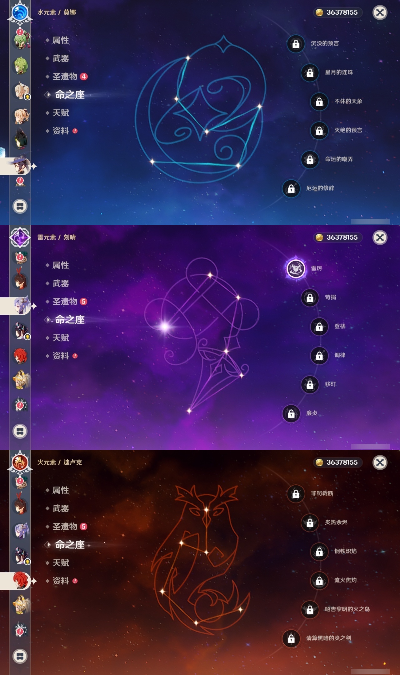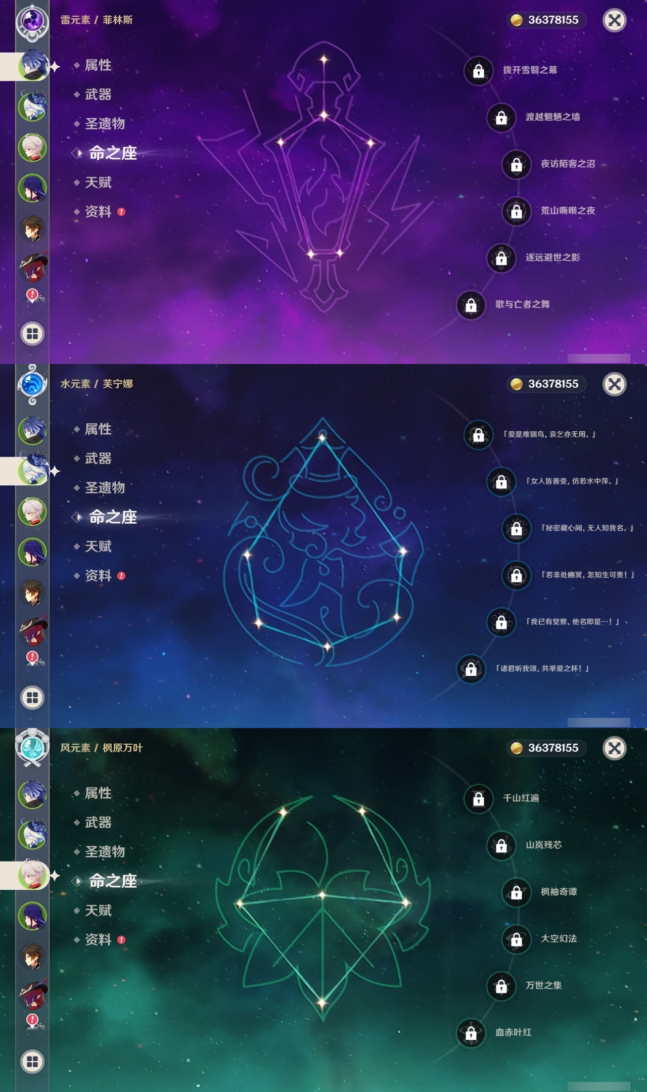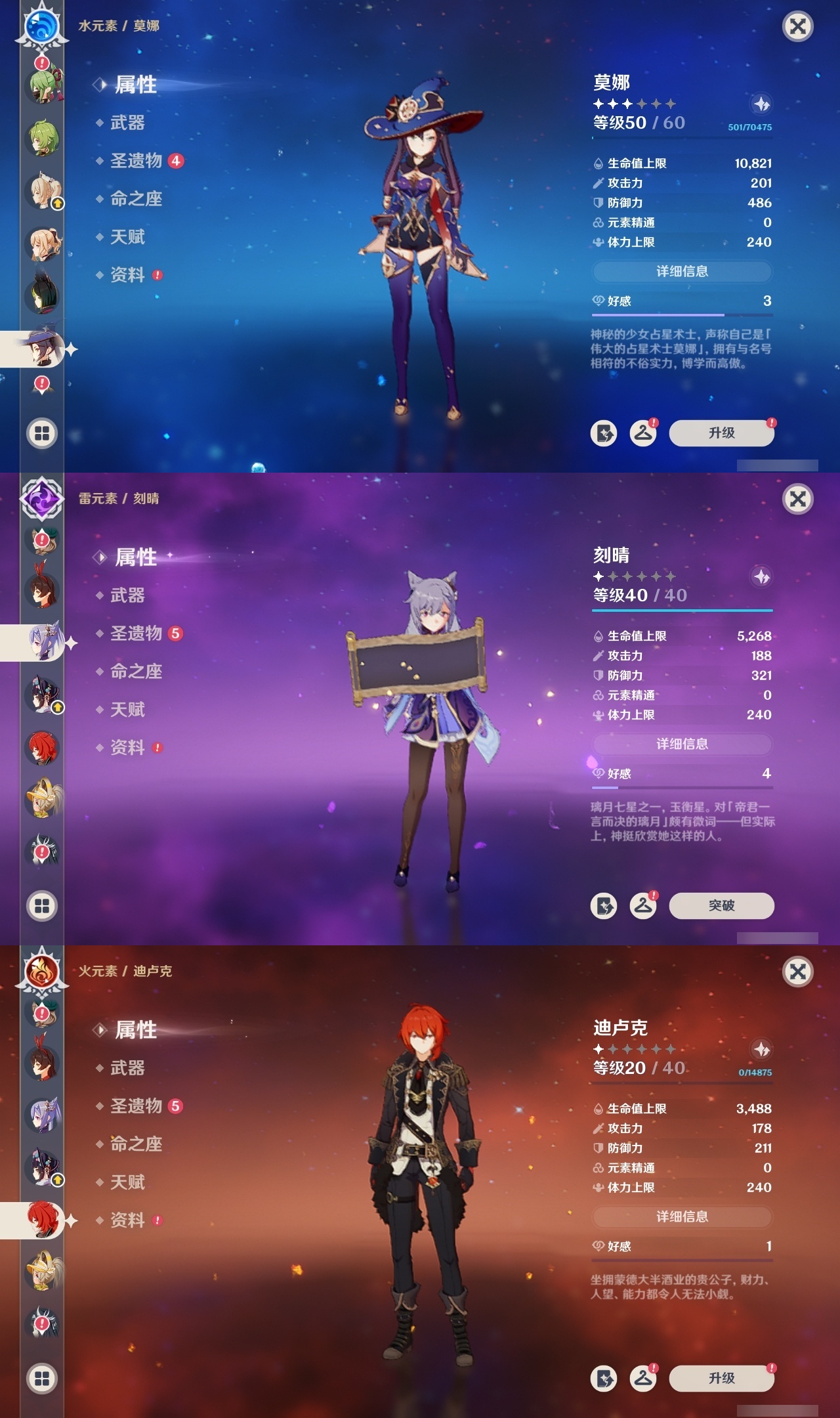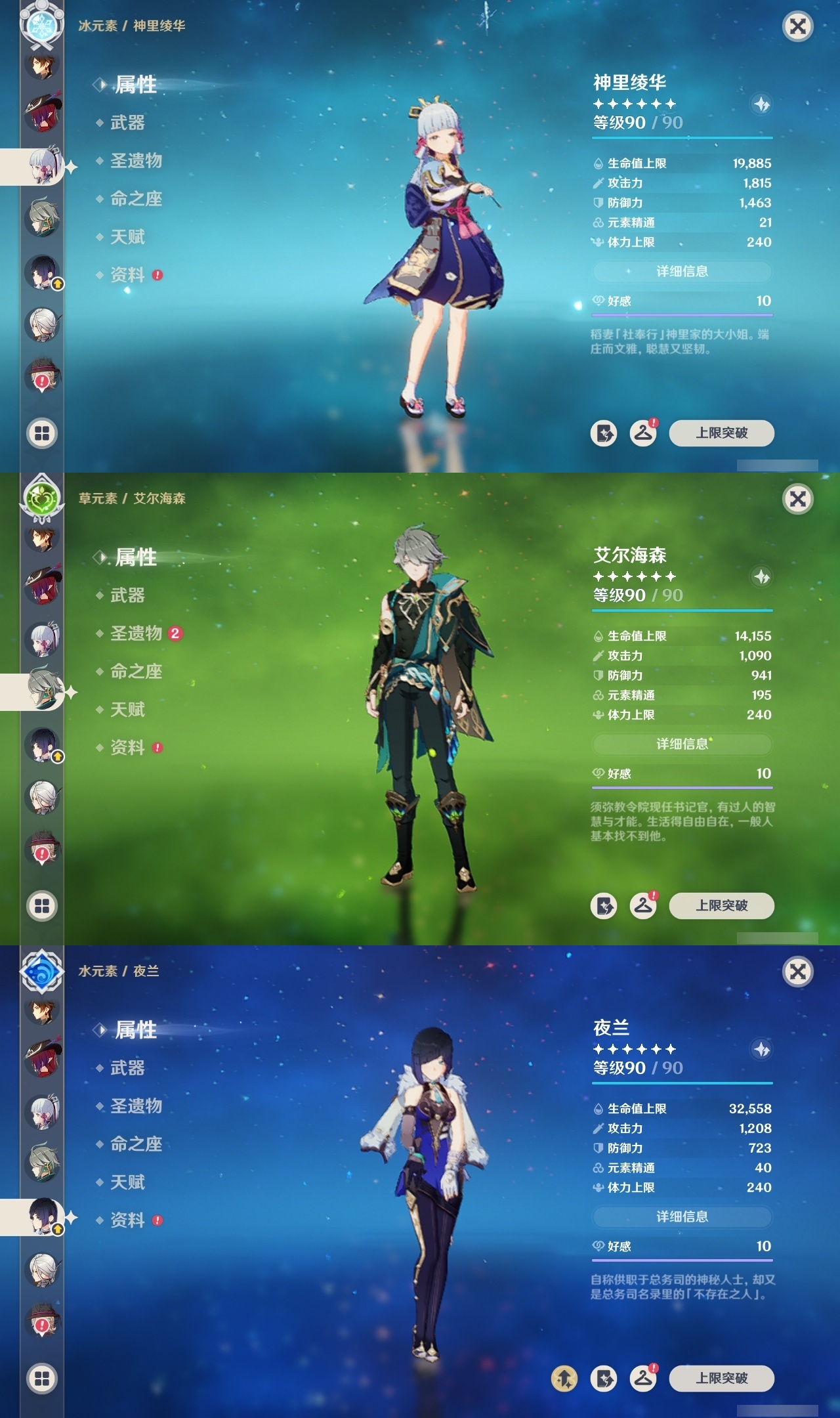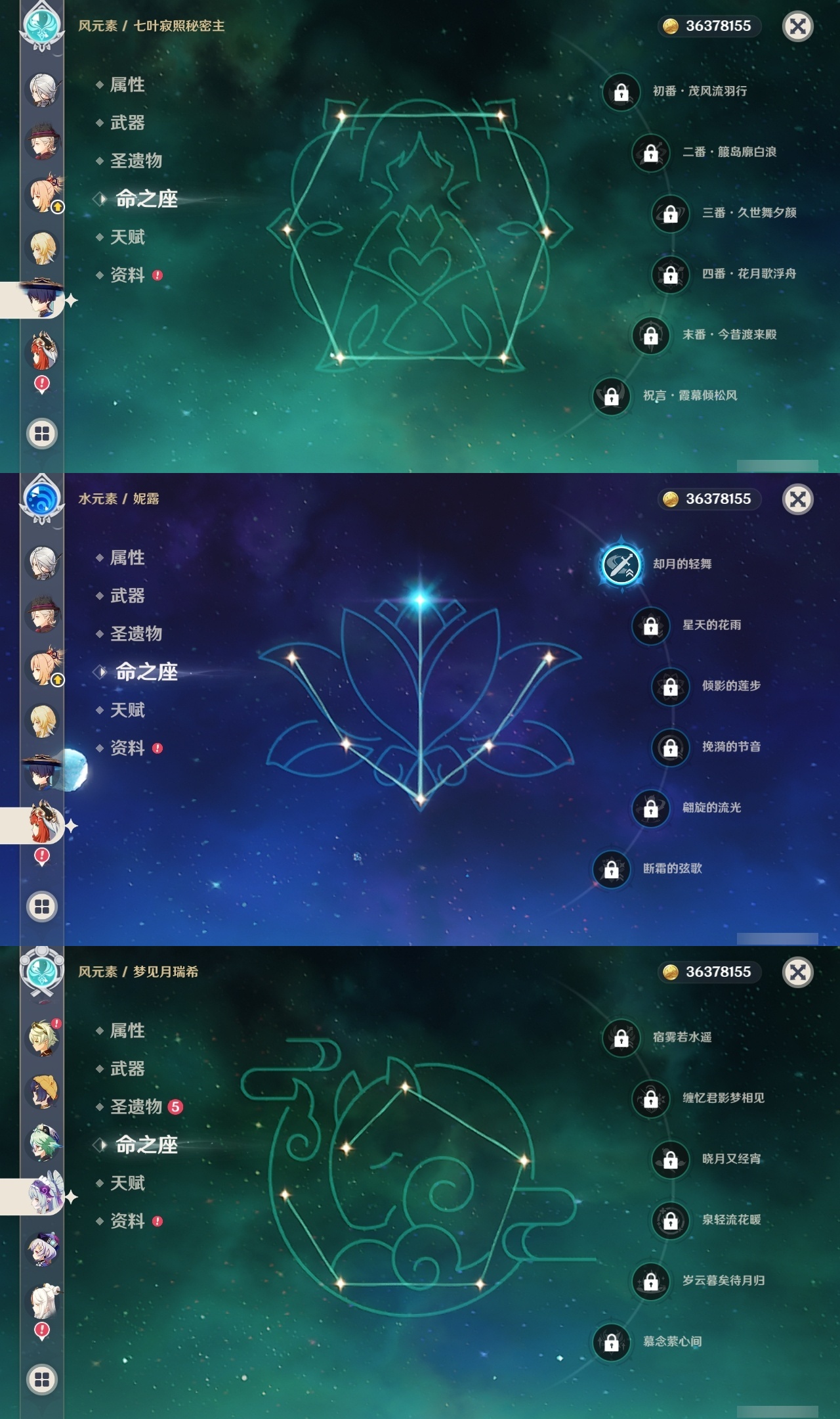 【原神】【lyys11518】冒险等级:59,五星数量:30,五星角色:刻晴 1命七七 1命提纳里 1命妮露 1命莫娜琴神里绫华恰斯卡宵宫钟离梦见月瑞希林尼夜兰芙宁娜阿蕾奇诺菲林斯艾尔海森流浪者迪卢克枫原万叶雷电将军__五星武器:静水流涌之辉赤月之形血染荒城飞雷之弦振狼的末路天空之傲天空之脊天空之翼若水__四星角色:香菱 6命迪奥娜 6命柯莱 6命芭芭拉 6命罗莎莉亚 6命夏洛蒂 6命珐露珊 5命烟绯 5命辛焱 5命诺艾尔 5命雷泽 5命北斗 5命班尼特 4命行秋 4命九条裟罗 4命久岐忍 4命凝光 4命云堇 4命菲谢尔 4命砂糖 3命多莉 3命早柚 3命鹿野院平藏 2命坎蒂丝 2命欧洛伦 2命托马 2命五郎 2命爱诺 2命卡齐娜 1命绮良良 1命瑶瑶 1命莱依拉 1命米卡 1命重云 1命夏沃蕾 1命蓝砚菲米尼琳妮特嘉明赛索斯