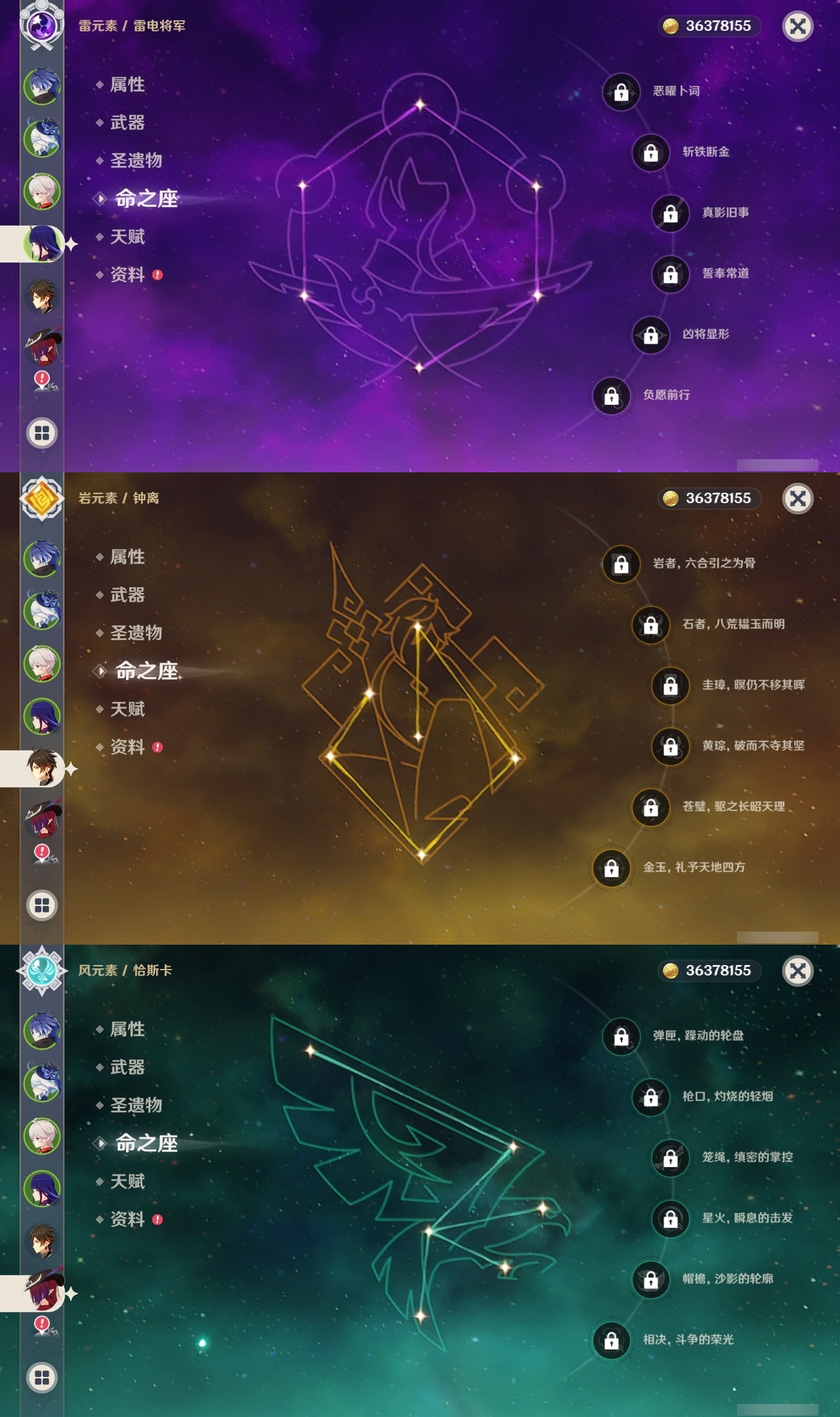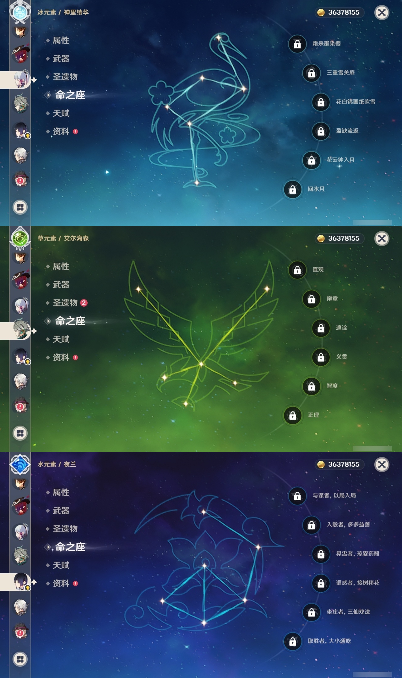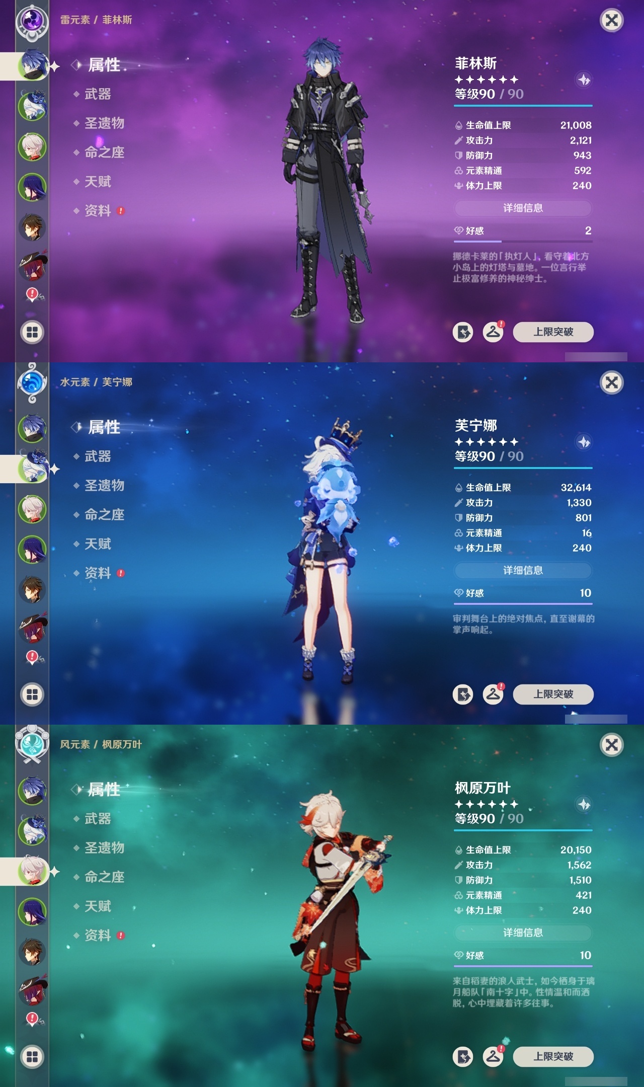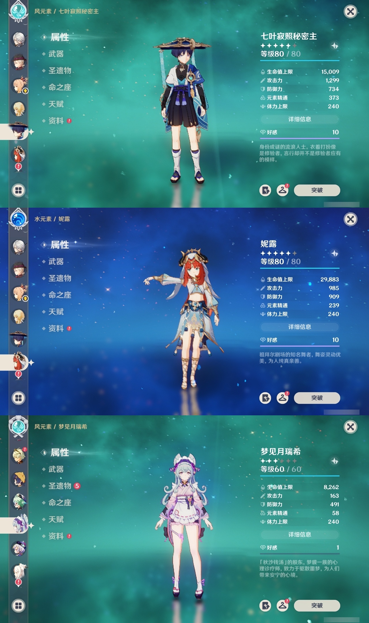 【原神】【lyys11518】冒险等级:59,五星数量:30,五星角色:刻晴 1命七七 1命提纳里 1命妮露 1命莫娜琴神里绫华恰斯卡宵宫钟离梦见月瑞希林尼夜兰芙宁娜阿蕾奇诺菲林斯艾尔海森流浪者迪卢克枫原万叶雷电将军__五星武器:静水流涌之辉赤月之形血染荒城飞雷之弦振狼的末路天空之傲天空之脊天空之翼若水__四星角色:香菱 6命迪奥娜 6命柯莱 6命芭芭拉 6命罗莎莉亚 6命夏洛蒂 6命珐露珊 5命烟绯 5命辛焱 5命诺艾尔 5命雷泽 5命北斗 5命班尼特 4命行秋 4命九条裟罗 4命久岐忍 4命凝光 4命云堇 4命菲谢尔 4命砂糖 3命多莉 3命早柚 3命鹿野院平藏 2命坎蒂丝 2命欧洛伦 2命托马 2命五郎 2命爱诺 2命卡齐娜 1命绮良良 1命瑶瑶 1命莱依拉 1命米卡 1命重云 1命夏沃蕾 1命蓝砚菲米尼琳妮特嘉明赛索斯