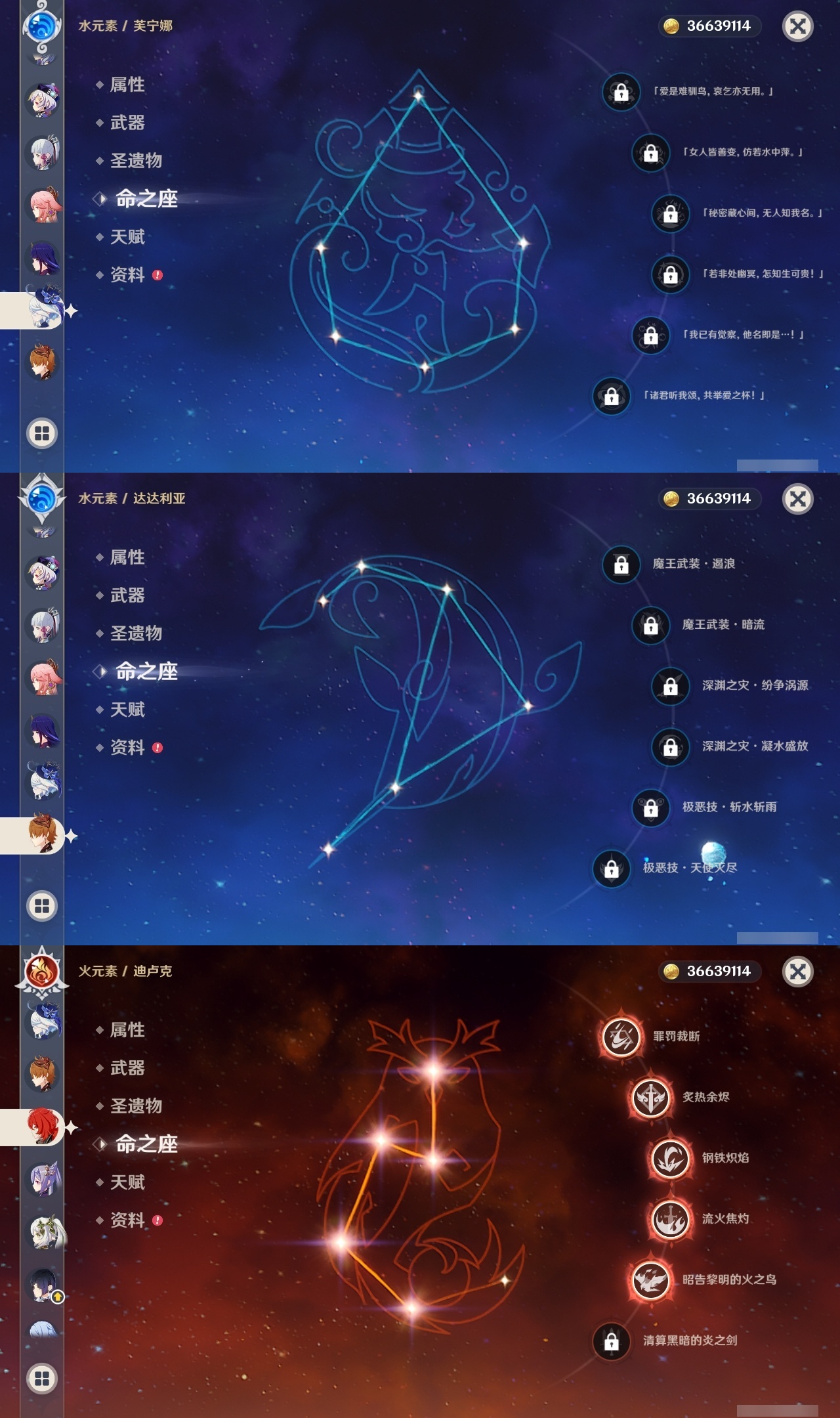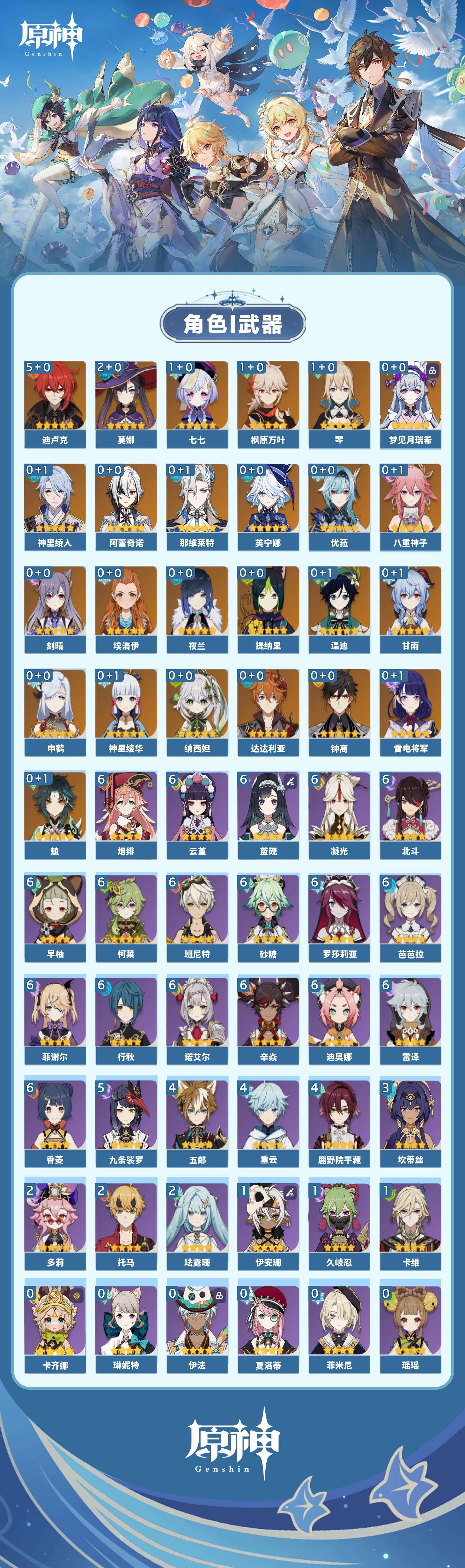 【原神】【lyys11532】冒险等级:60,五星数量:37,五星角色:迪卢克 5命莫娜 2命枫原万叶 1命七七 1命琴 1命神里绫华温迪优菈钟离达达利亚梦见月瑞希申鹤八重神子神里绫人那维莱特夜兰芙宁娜提纳里阿蕾奇诺纳西妲甘雨魈刻晴雷电将军__五星武器:天空之翼 2精万世流涌大典阿莫斯之弓和璞鸢四风原典天空之卷天空之刃雾切之回光薙草之稻光终末嗟叹之诗神乐之真意波乱月白经津__四星角色:班尼特 6命行秋 6命香菱 6命凝光 6命迪奥娜 6命砂糖 6命柯莱 6命芭芭拉 6命云堇 6命蓝砚 6命早柚 6命烟绯 6命辛焱 6命诺艾尔 6命罗莎莉亚 6命雷泽 6命菲谢尔 6命北斗 6命九条裟罗 5命鹿野院平藏 4命五郎 4命重云 4命坎蒂丝 3命珐露珊 2命多莉 2命托马 2命久岐忍 1命卡维 1命伊安珊 1命埃洛伊卡齐娜绮良良瑶瑶米卡菲米尼琳妮特夏洛蒂伊法