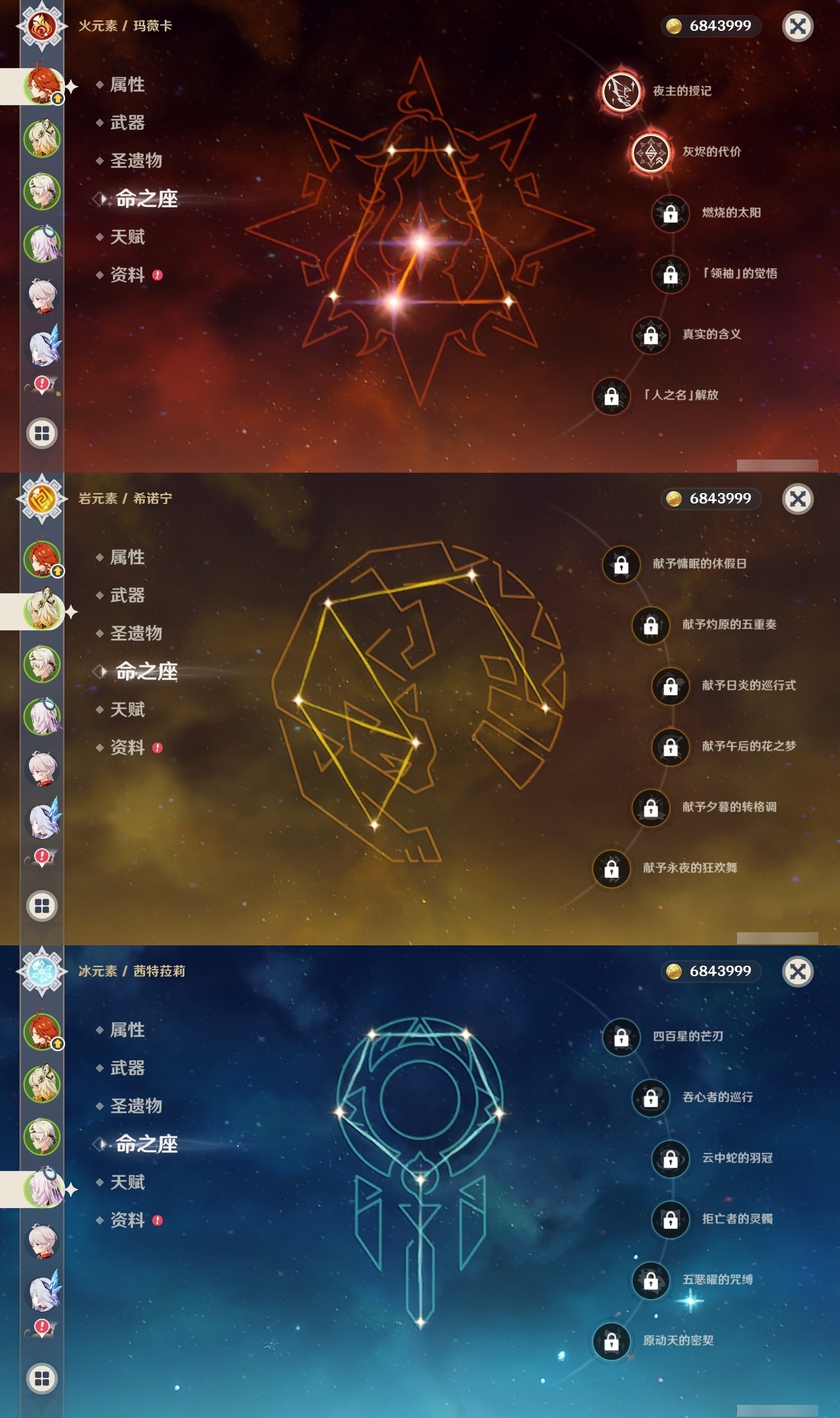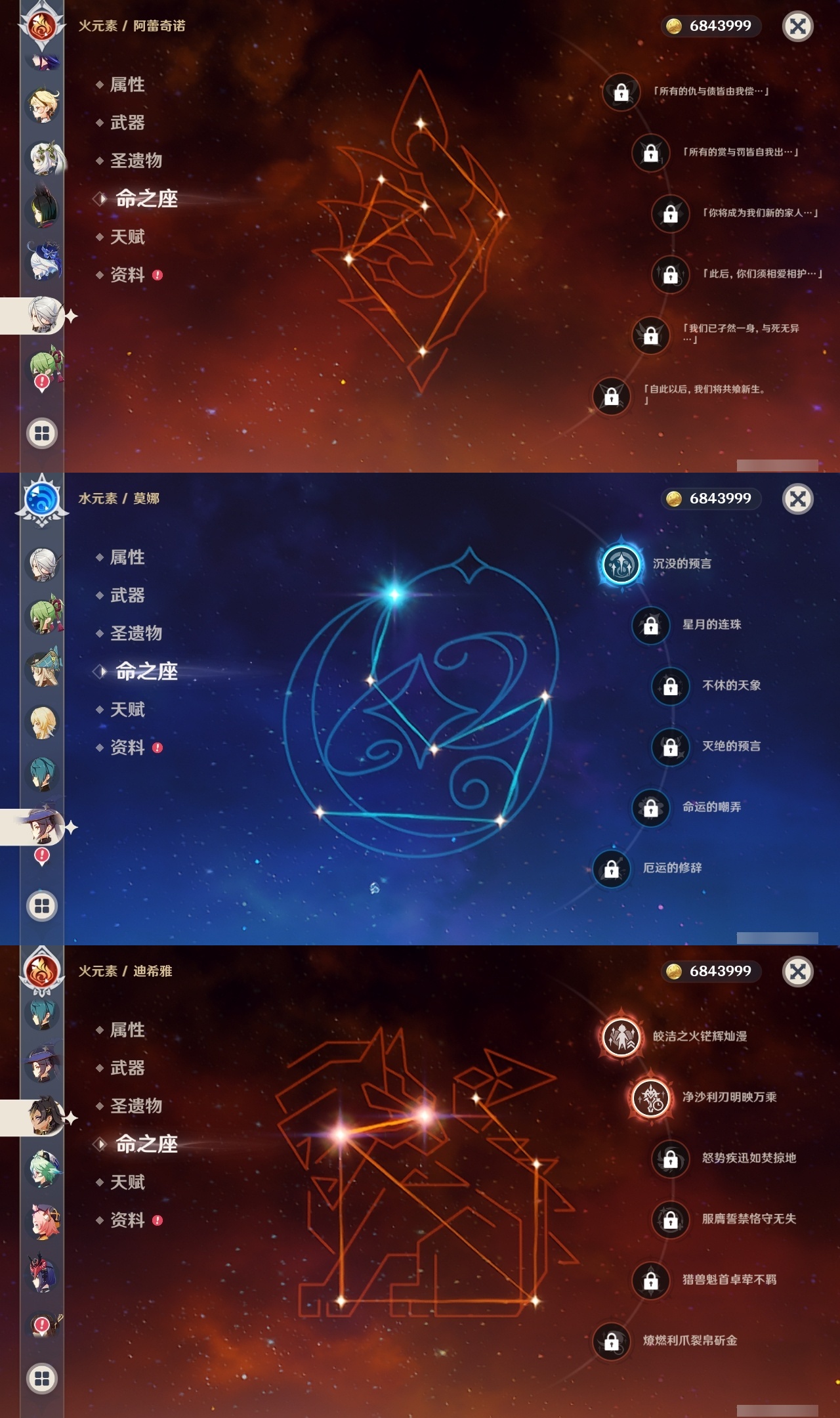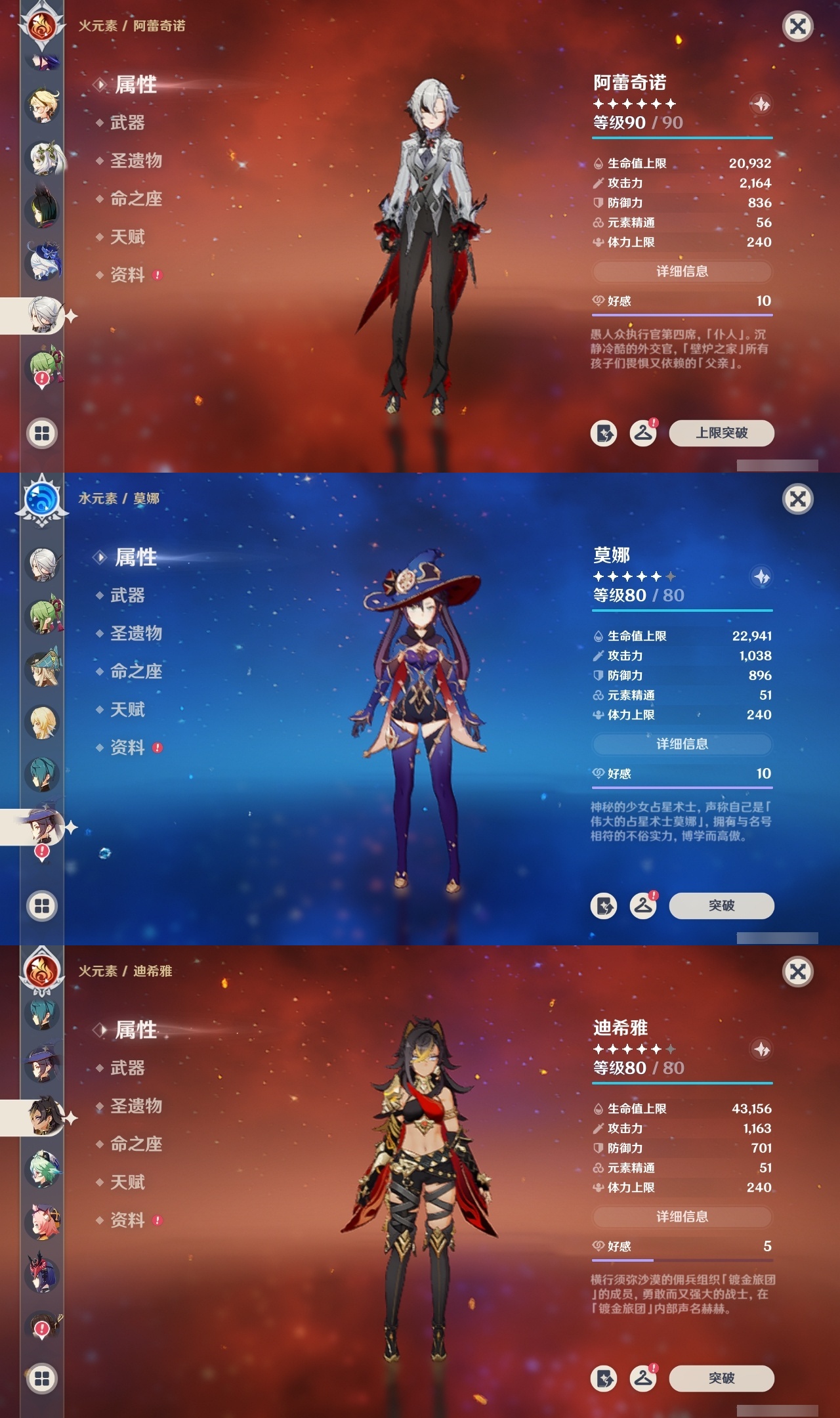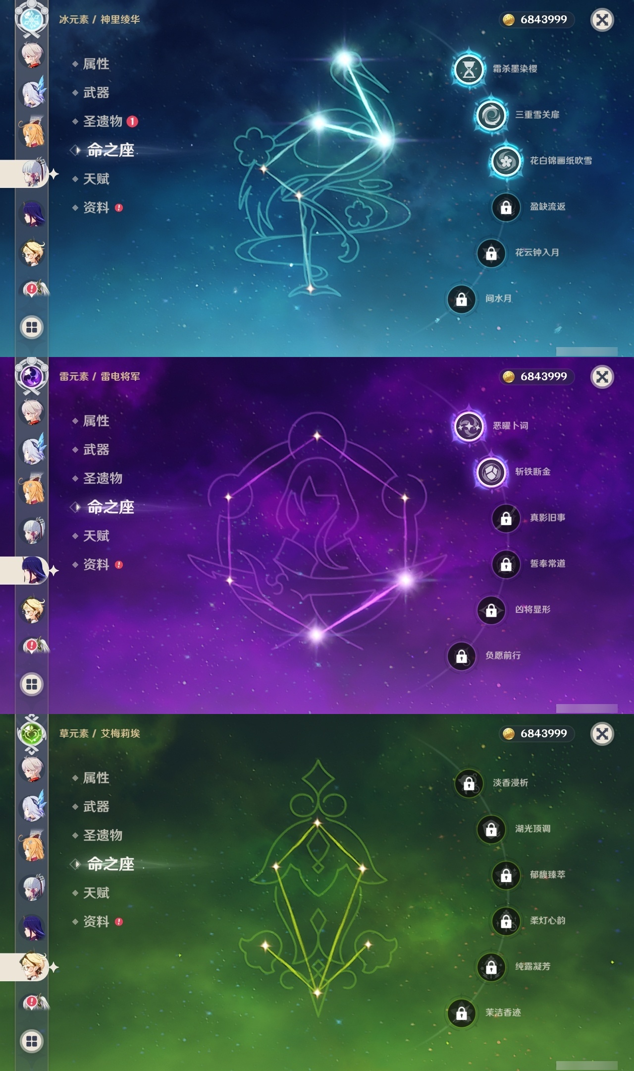 【原神】【lyys11133】冒险等级:60,五星数量:33,五星角色:丝柯克 6命迪卢克 3命琴 3命神里绫华 3命玛薇卡 2命迪希雅 2命刻晴 2命雷电将军 2命梦见月瑞希 1命莫娜 1命七七 1命艾梅莉埃希诺宁茜特菈莉芙宁娜提纳里爱可菲阿蕾奇诺纳西妲枫原万叶胡桃__五星武器:岩峰巡歌焚曜千阳有乐御簾切赤月之形苍耀阿莫斯之弓护摩之杖狼的末路天空之傲雾切之回光薙草之稻光息灾__四星角色:卡齐娜 6命行秋 6命九条裟罗 6命香菱 6命迪奥娜 6命米卡 6命坎蒂丝 6命早柚 6命辛焱 6命罗莎莉亚 6命塔利雅 6命凝光 5命柯莱 5命欧洛伦 5命雷泽 5命琳妮特 5命嘉明 5命班尼特 4命砂糖 4命瑶瑶 4命诺艾尔 4命鹿野院平藏 3命莱依拉 3命多莉 3命托马 3命五郎 3命北斗 3命赛索斯 3命久岐忍 2命卡维 2命芭芭拉 2命烟绯 2命菲谢尔 2命伊法 2命珐露珊 1命绮良良 1命重云 1命菲米尼 1命伊安珊 1命蓝砚云堇夏洛蒂夏沃蕾