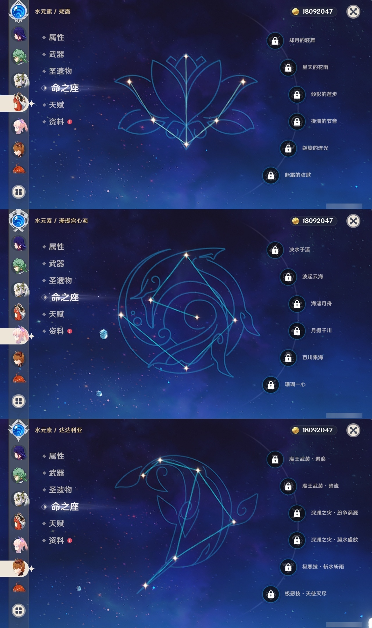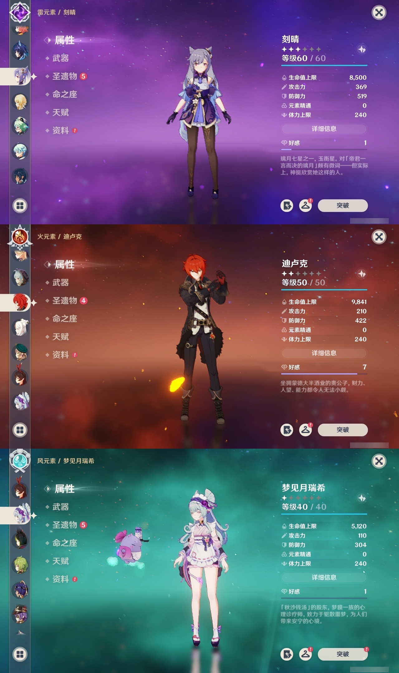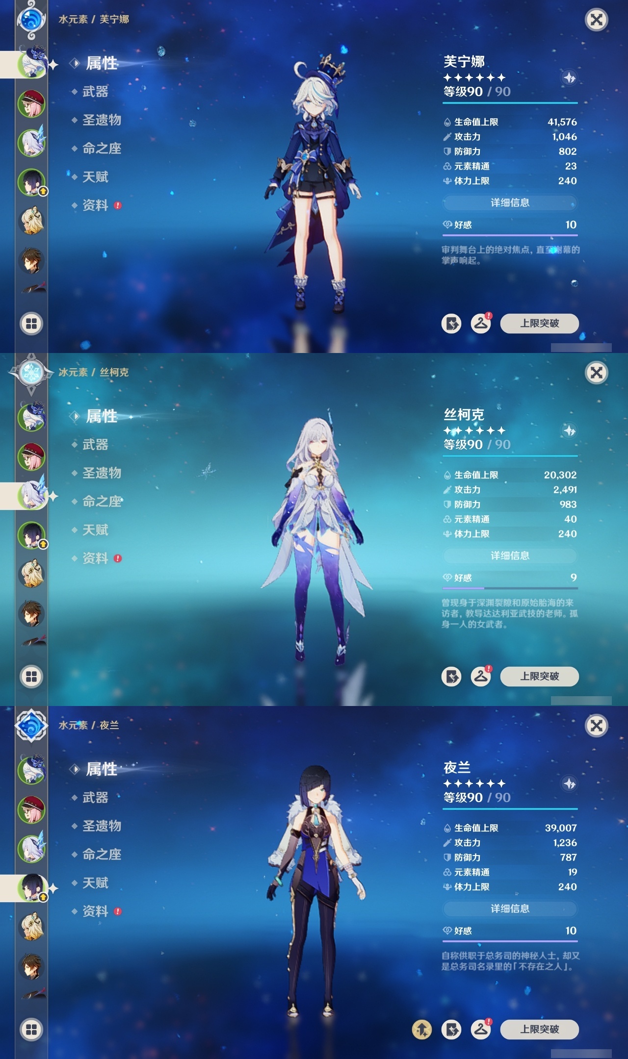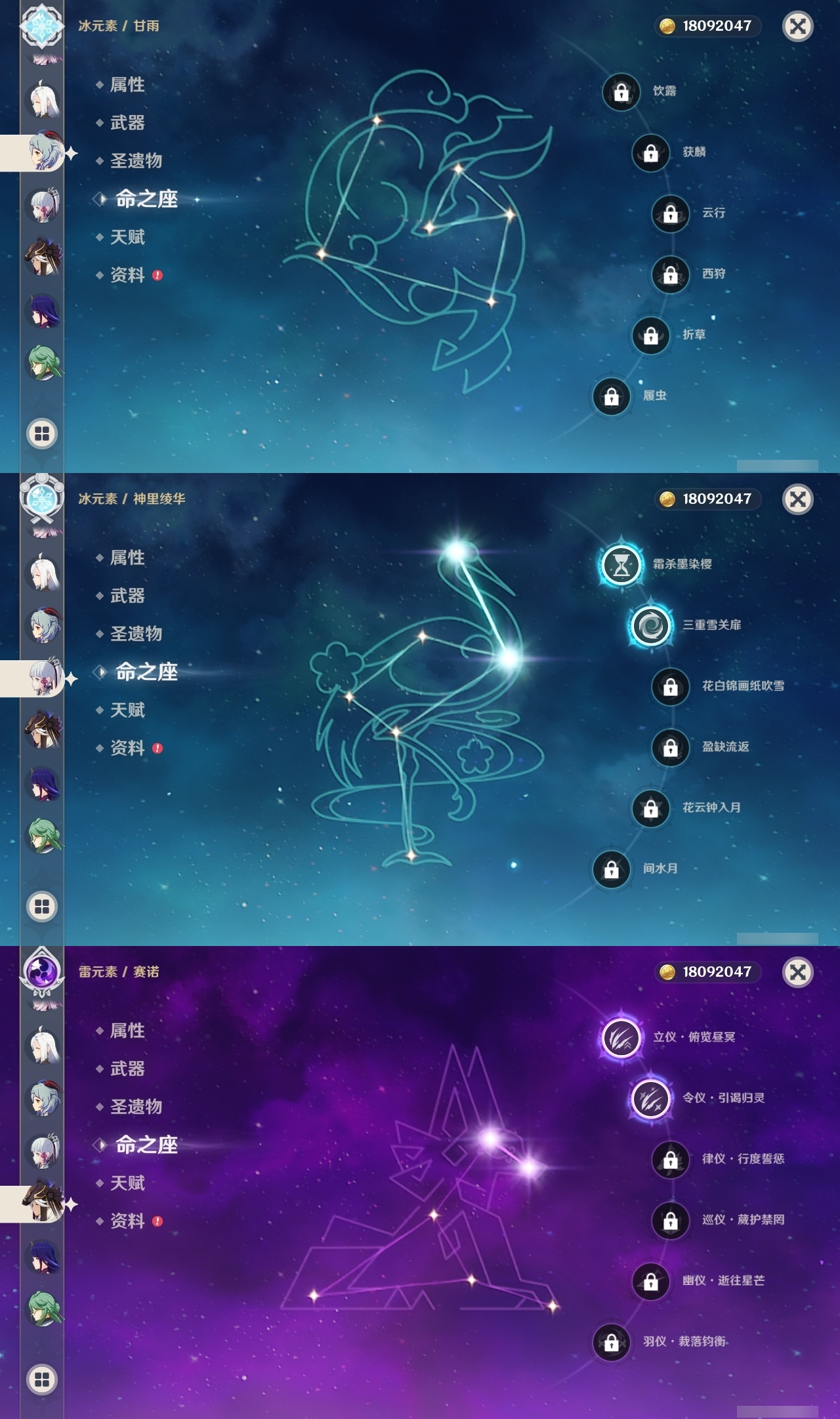 【原神】【lyys11509】冒险等级:60,五星数量:49,五星角色:莫娜 6命刻晴 2命神里绫华 2命夜兰 2命提纳里 2命赛诺 2命梦见月瑞希 1命琴 1命温迪 1命七七珊瑚宫心海希诺宁白术恰斯卡玛薇卡茜特菈莉宵宫迪希雅钟离达达利亚申鹤芙宁娜丝柯克妮露纳西妲奈芙尔迪卢克枫原万叶甘雨胡桃雷电将军__五星武器:狼的末路 2精碧落之珑金流监督静水流涌之辉裁断苍耀图莱杜拉的回忆风鹰剑护摩之杖四风原典天空之卷天空之刃雾切之回光终末嗟叹之诗息灾若水圣显之钥__四星角色:班尼特 6命行秋 6命香菱 6命久岐忍 6命珐露珊 6命凝光 6命迪奥娜 6命砂糖 6命坎蒂丝 6命多莉 6命柯莱 6命芭芭拉 6命早柚 6命托马 6命烟绯 6命重云 6命辛焱 6命诺艾尔 6命罗莎莉亚 6命雷泽 6命菲谢尔 6命北斗 6命云堇 5命九条裟罗 4命莱依拉 4命卡维 4命蓝砚 4命夏沃蕾 4命卡齐娜 3命鹿野院平藏 3命琳妮特 3命塔利雅 3命绮良良 2命瑶瑶 2命菲米尼 2命赛索斯 2命欧洛伦 1命嘉明 1命伊安珊 1命埃洛伊米卡五郎夏洛蒂伊法
