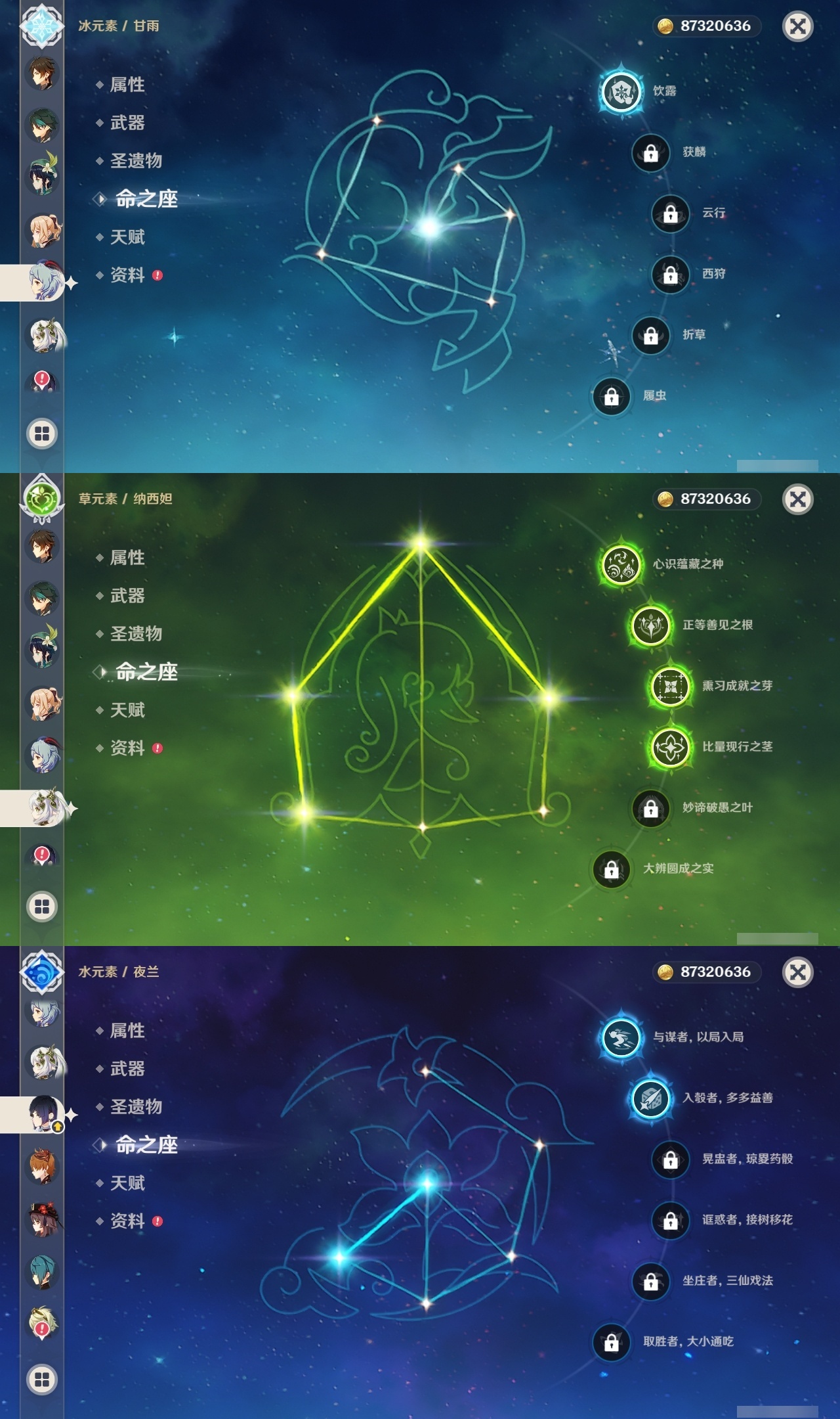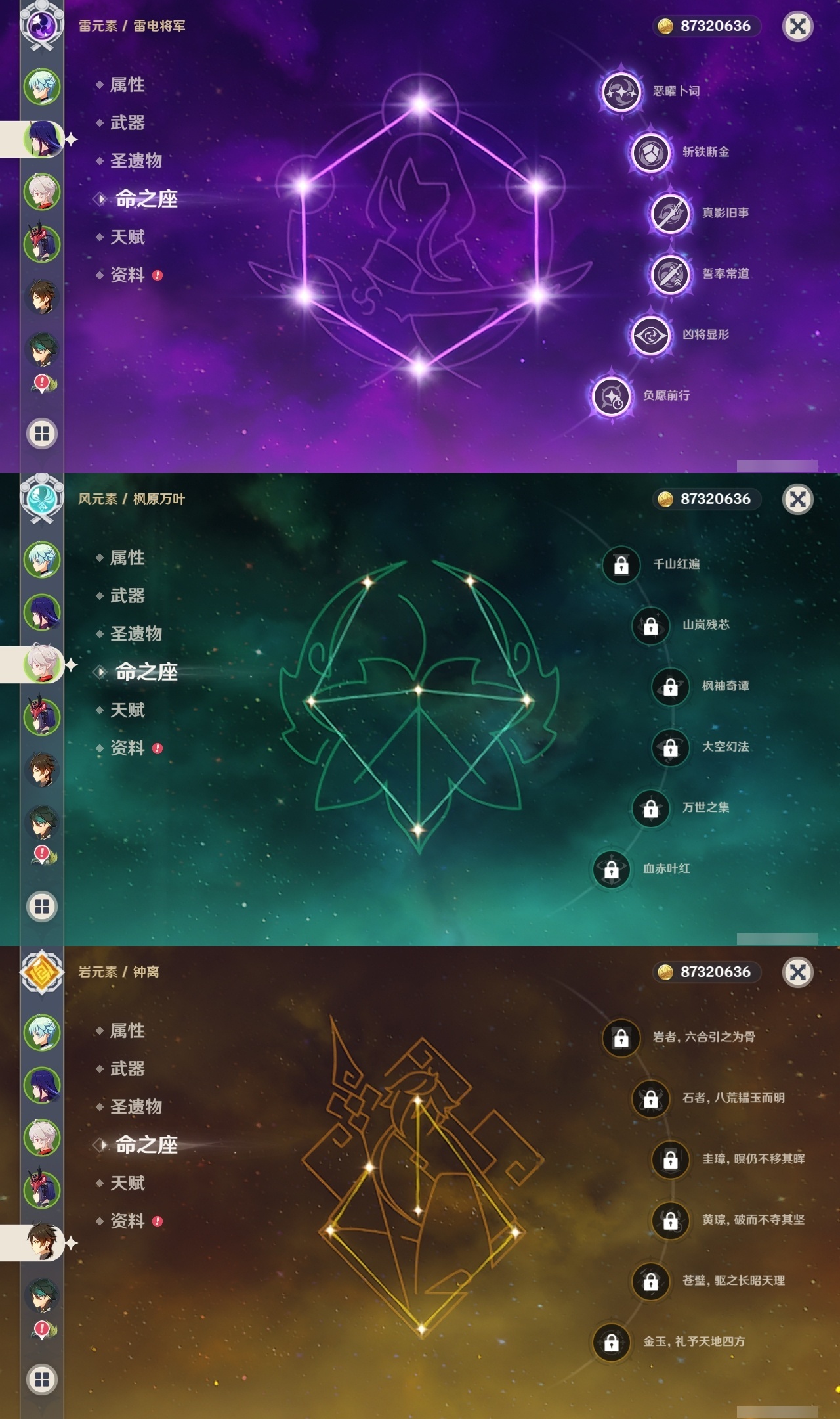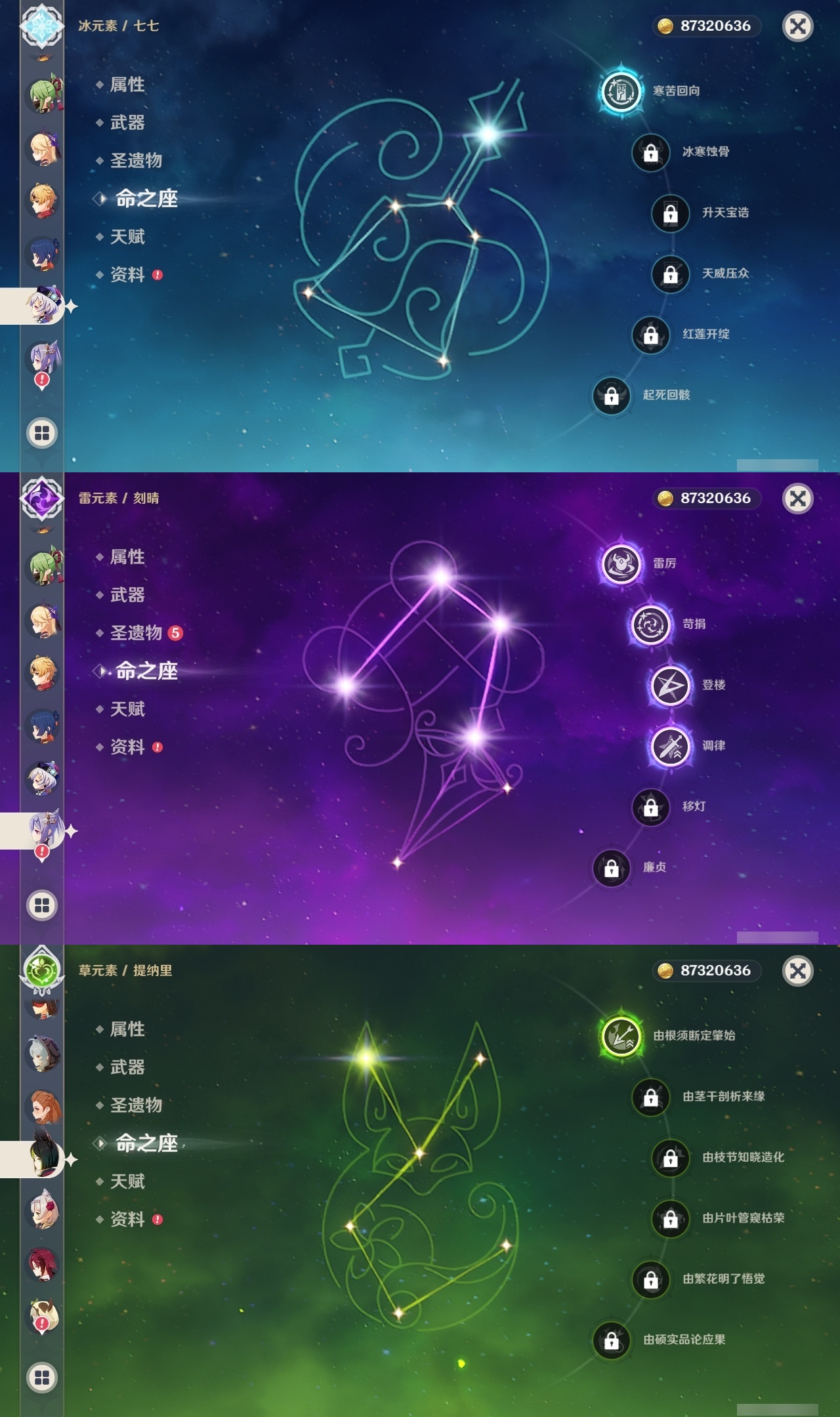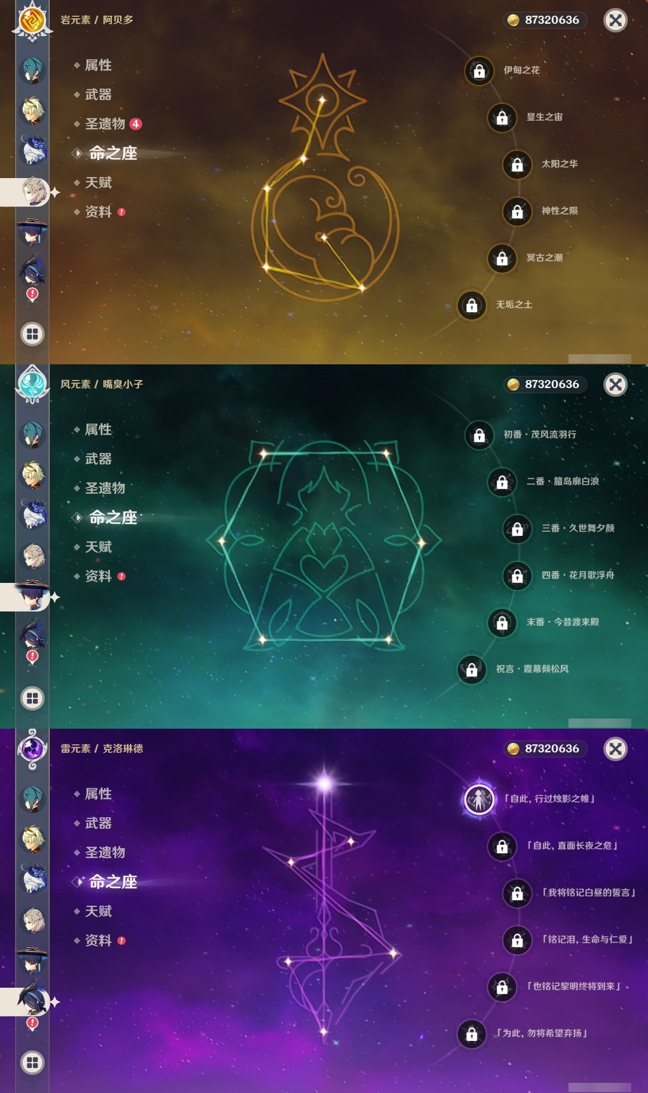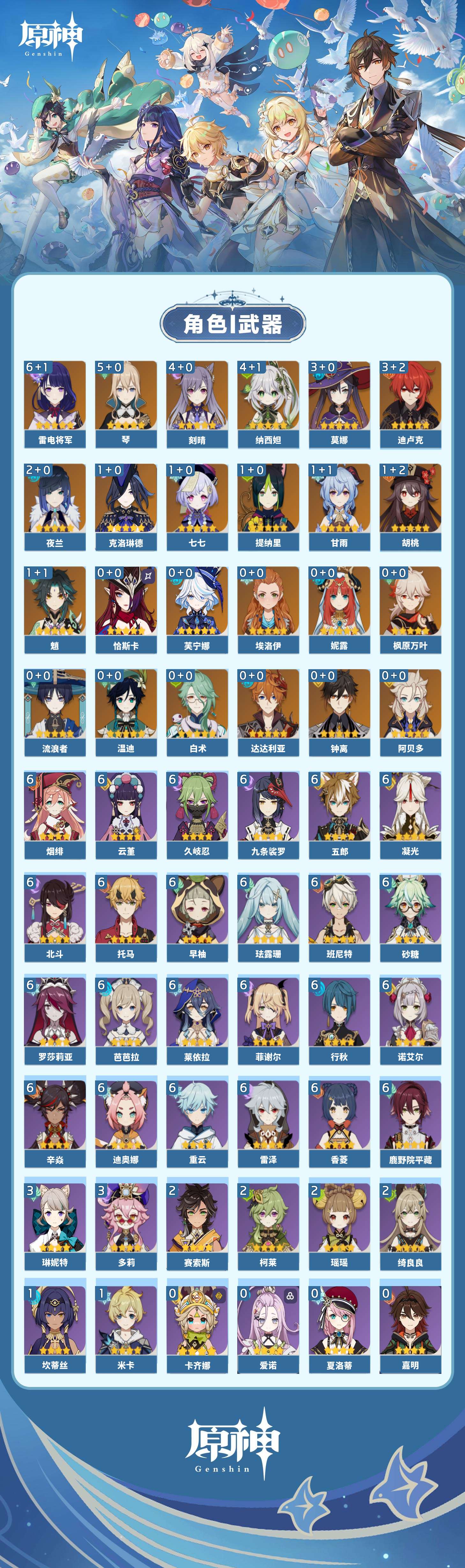 【原神】【lyys11567】冒险等级:60,五星数量:38,五星角色:雷电将军 6命琴 5命刻晴 4命纳西妲 4命迪卢克 3命莫娜 3命夜兰 2命甘雨 1命魈 1命胡桃 1命七七 1命提纳里 1命克洛琳德 1命白术温迪恰斯卡钟离达达利亚阿贝多芙宁娜妮露流浪者枫原万叶__五星武器:四风原典 3精护摩之杖 2精狼的末路 2精天空之卷 2精最初的大魔术阿莫斯之弓不灭月华风鹰剑和璞鸢天空之脊天空之翼薙草之稻光波乱月白经津千夜浮梦__四星角色:班尼特 6命行秋 6命九条裟罗 6命香菱 6命久岐忍 6命鹿野院平藏 6命珐露珊 6命凝光 6命迪奥娜 6命砂糖 6命莱依拉 6命芭芭拉 6命云堇 6命早柚 6命托马 6命五郎 6命烟绯 6命重云 6命辛焱 6命诺艾尔 6命罗莎莉亚 6命雷泽 6命菲谢尔 6命北斗 6命多莉 3命琳妮特 3命绮良良 2命瑶瑶 2命柯莱 2命赛索斯 2命米卡 1命坎蒂丝 1命埃洛伊卡齐娜卡维蓝砚夏洛蒂夏沃蕾嘉明爱诺