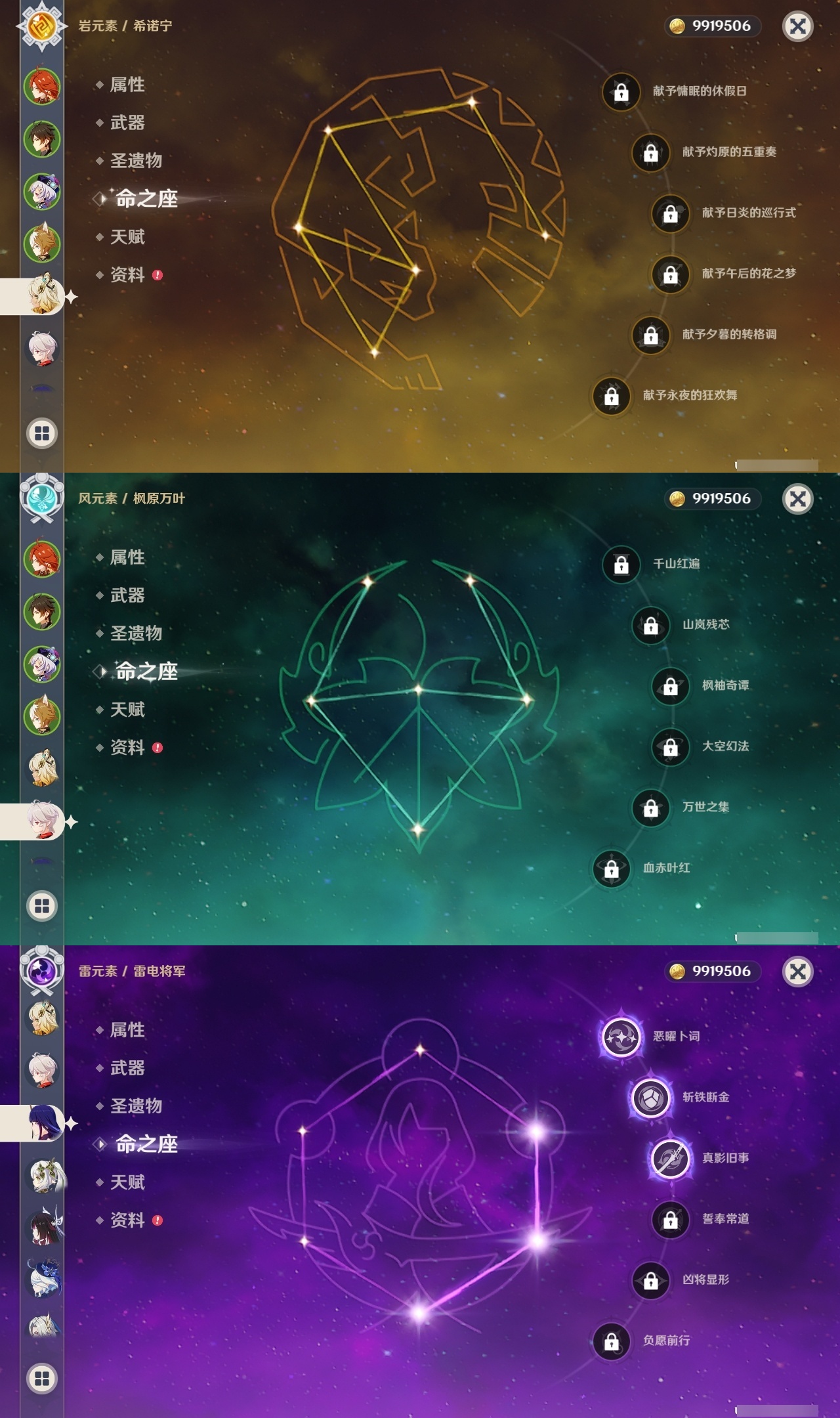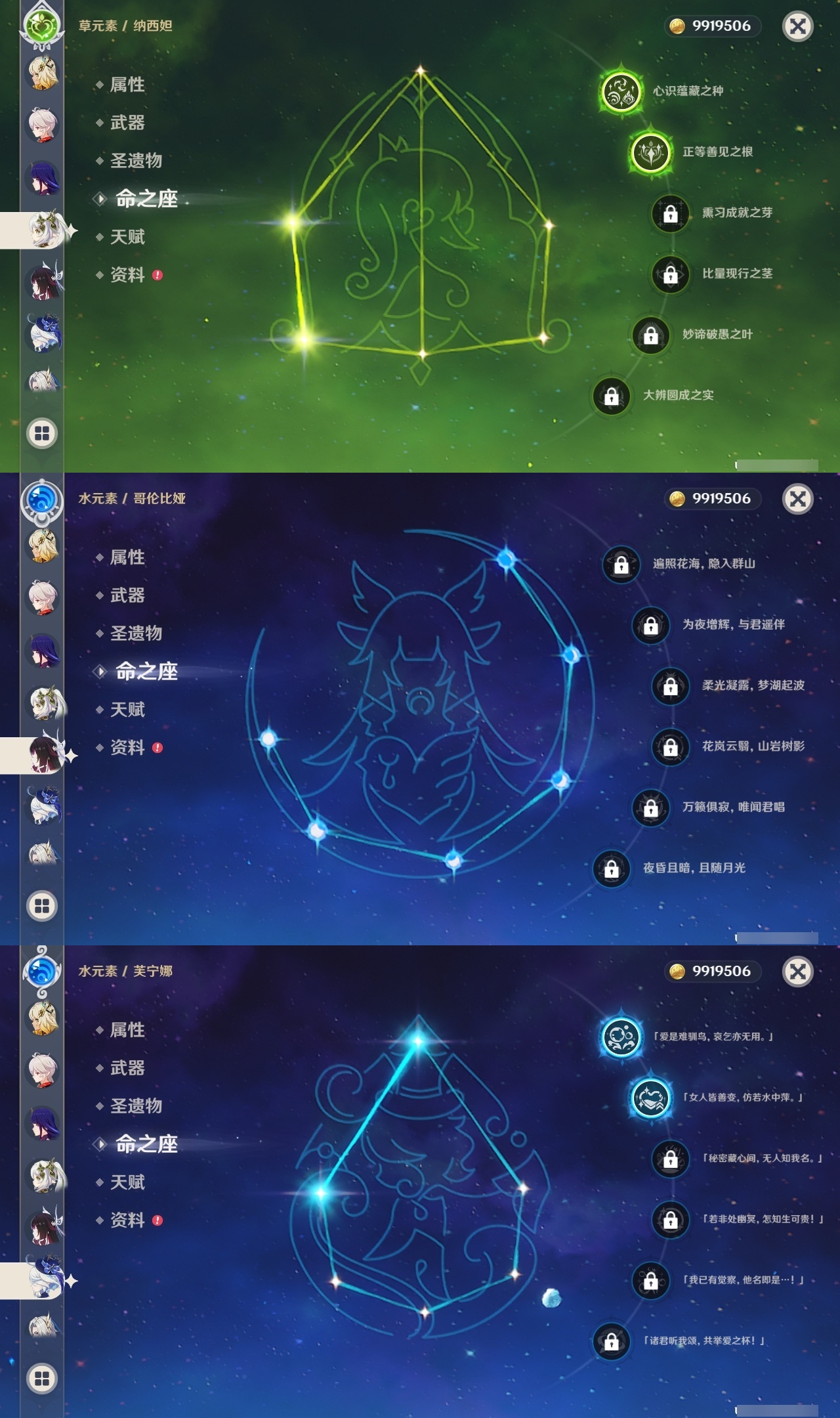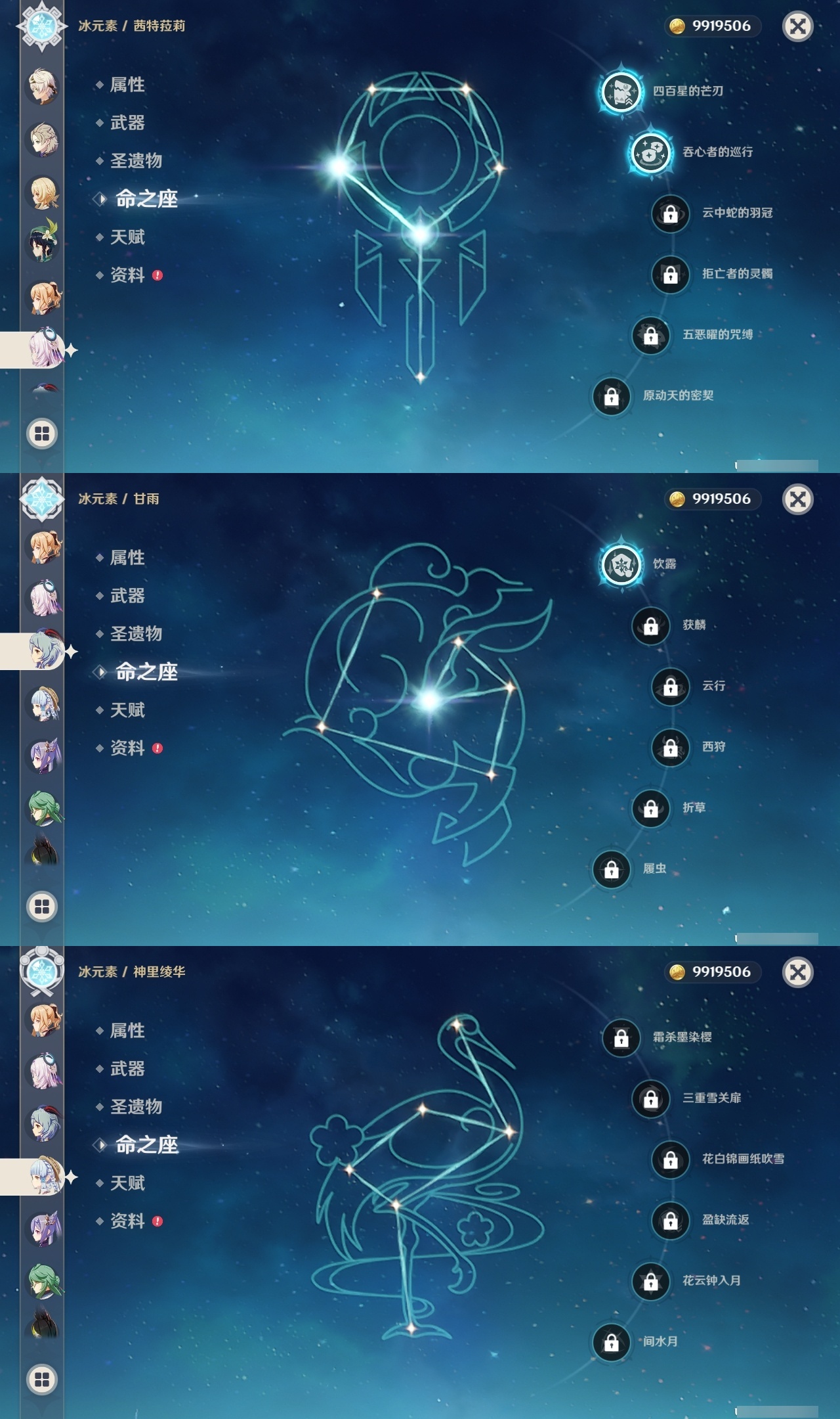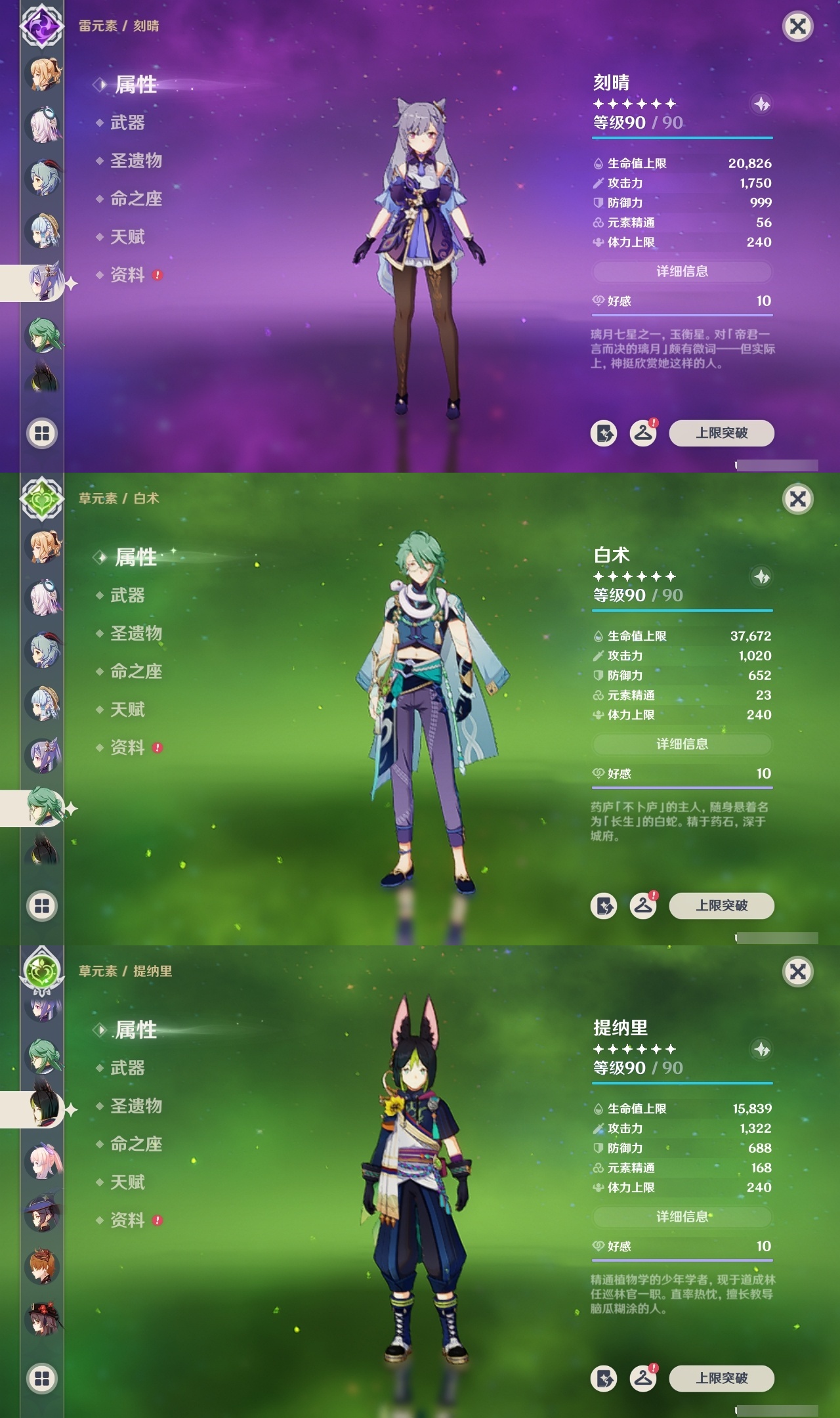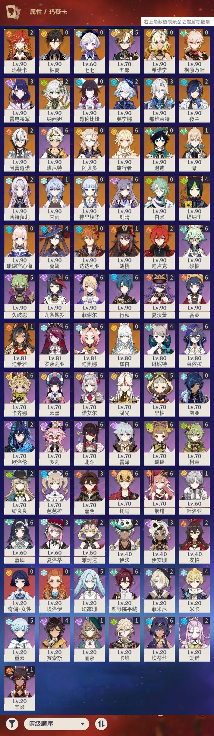 【原神】【lyys11563】冒险等级:60,五星数量:50,五星角色:刻晴 6命莫娜 4命提纳里 4命那维莱特 3命雷电将军 3命玛薇卡 2命茜特菈莉 2命芙宁娜 2命阿蕾奇诺 2命迪卢克 2命夜兰 2命纳西妲 2命迪希雅 1命甘雨 1命胡桃 1命琴 1命七七珊瑚宫心海希诺宁白术神里绫华温迪钟离达达利亚阿贝多哥伦比娅兹白枫原万叶__五星武器:阿莫斯之弓 3精和璞鸢 2精天空之卷 2精祭星者之望焚曜千阳万世流涌大典裁断鹤鸣余音赤月之形不灭月华苍古自由之誓飞雷之弦振护摩之杖狼的末路天空之脊天空之刃薙草之稻光终末嗟叹之诗若水千夜浮梦__四星角色:卡齐娜 6命班尼特 6命行秋 6命九条裟罗 6命香菱 6命鹿野院平藏 6命凝光 6命迪奥娜 6命砂糖 6命瑶瑶 6命莱依拉 6命坎蒂丝 6命多莉 6命柯莱 6命芭芭拉 6命云堇 6命蓝砚 6命托马 6命烟绯 6命诺艾尔 6命罗莎莉亚 6命雷泽 6命菲谢尔 6命北斗 6命久岐忍 5命珐露珊 5命早柚 5命五郎 5命重云 5命米卡 4命琳妮特 4命赛索斯 4命夏洛蒂 3命嘉明 3命伊安珊 3命绮良良 2命欧洛伦 2命菲米尼 2命夏沃蕾 2命伊法 2命爱诺 2命卡维 1命辛焱 1命埃洛伊奇偶·女性