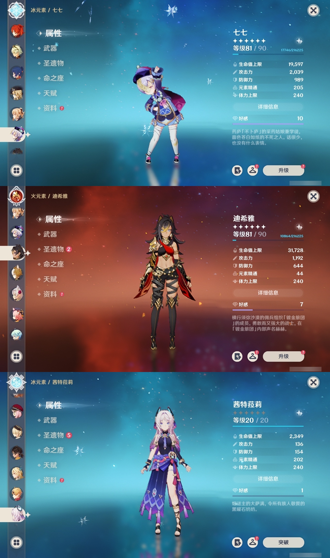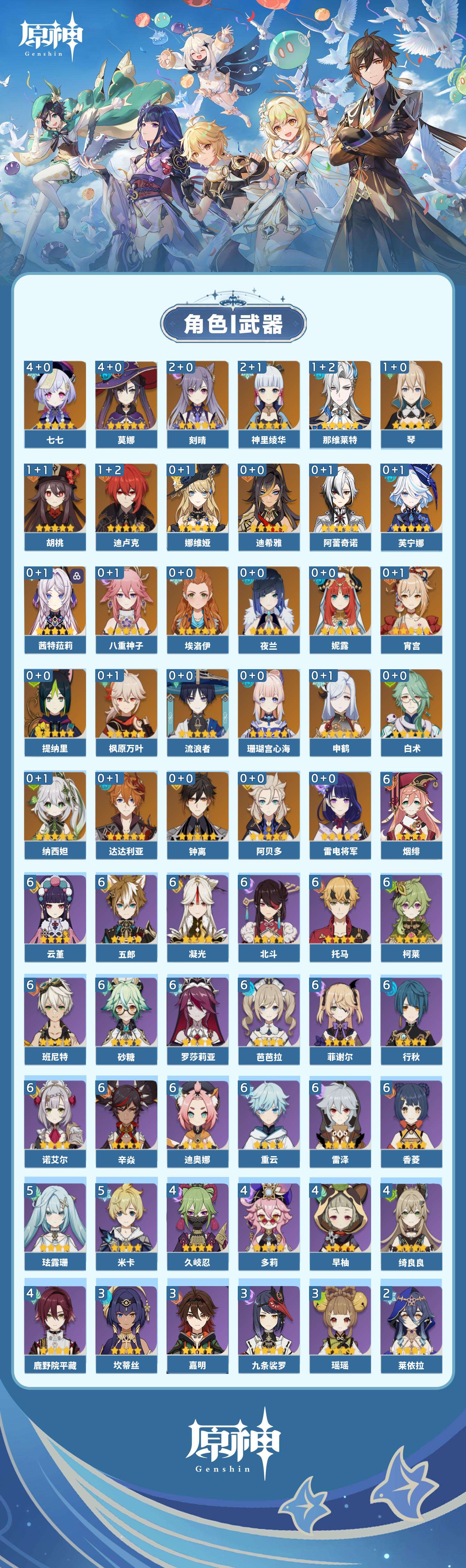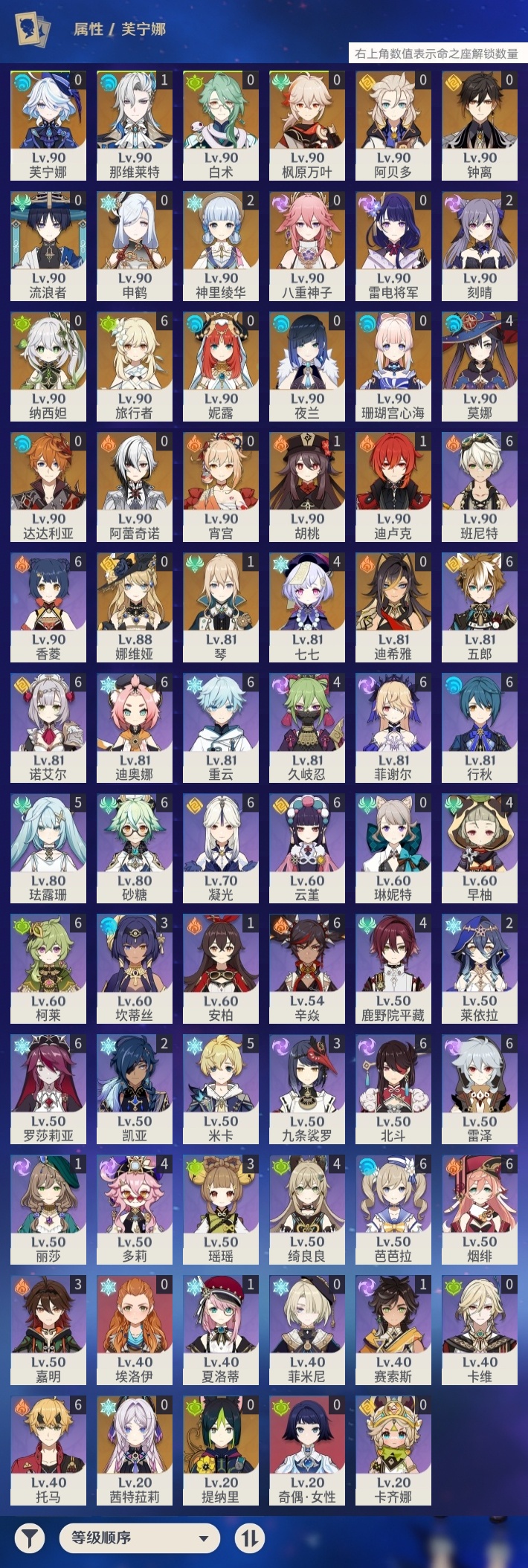 【原神】【lyys11557】冒险等级:60,五星数量:51,五星角色:莫娜 4命七七 4命刻晴 2命神里绫华 2命那维莱特 1命迪卢克 1命胡桃 1命琴 1命珊瑚宫心海白术茜特菈莉宵宫迪希雅钟离达达利亚申鹤八重神子阿贝多夜兰芙宁娜娜维娅提纳里阿蕾奇诺妮露纳西妲流浪者枫原万叶雷电将军__五星武器:万世流涌大典 2精风鹰剑 2精狼的末路 2精祭星者之望静水流涌之辉裁断赤月之形阿莫斯之弓苍古自由之誓飞雷之弦振护摩之杖四风原典天空之傲天空之脊天空之刃天空之翼雾切之回光冬极白星息灾神乐之真意千夜浮梦__四星角色:班尼特 6命行秋 6命香菱 6命凝光 6命迪奥娜 6命砂糖 6命柯莱 6命芭芭拉 6命云堇 6命托马 6命五郎 6命烟绯 6命重云 6命辛焱 6命诺艾尔 6命罗莎莉亚 6命雷泽 6命菲谢尔 6命北斗 6命珐露珊 5命米卡 5命久岐忍 4命鹿野院平藏 4命绮良良 4命多莉 4命早柚 4命九条裟罗 3命瑶瑶 3命坎蒂丝 3命嘉明 3命莱依拉 2命夏洛蒂 1命赛索斯 1命埃洛伊奇偶·女性卡齐娜卡维菲米尼琳妮特