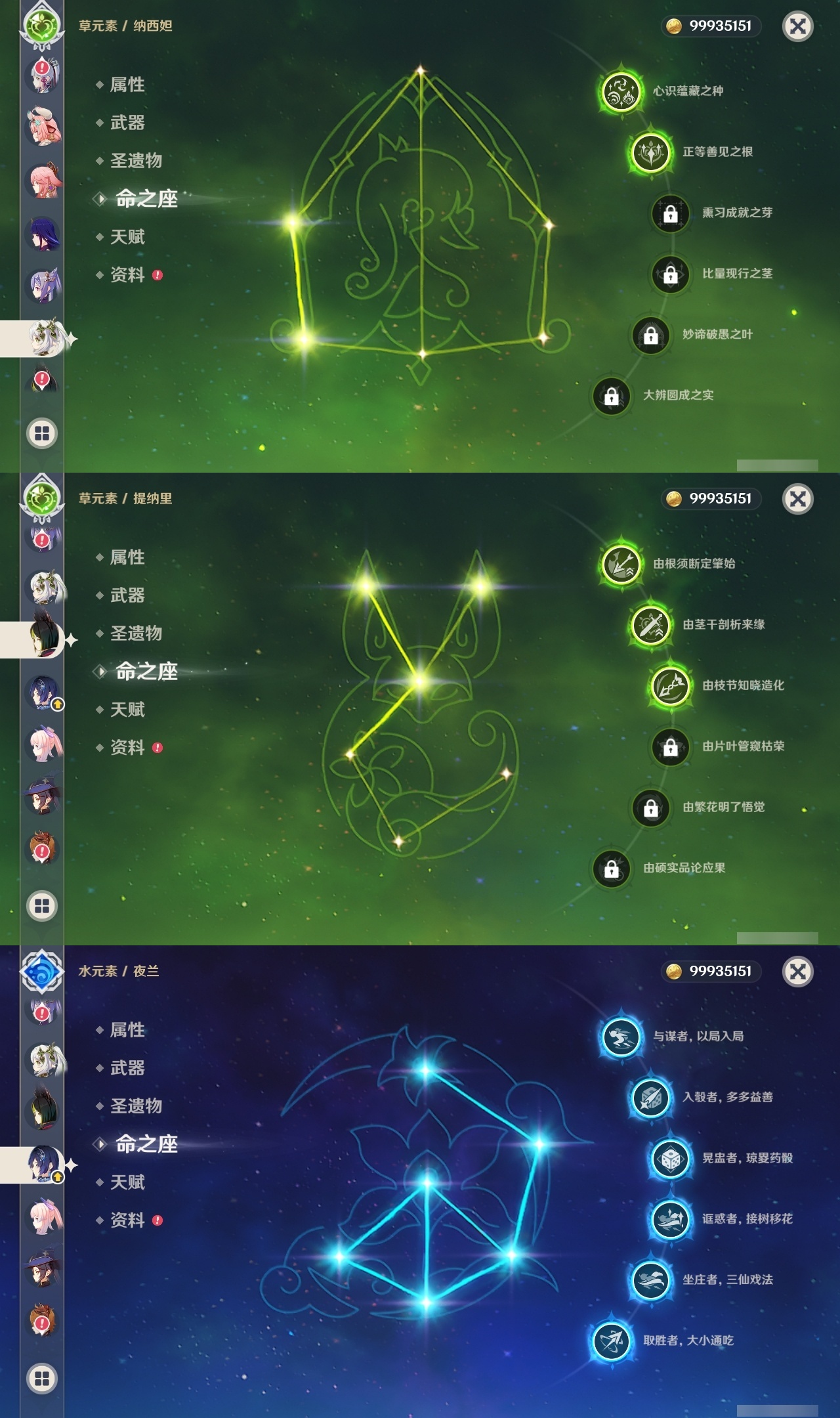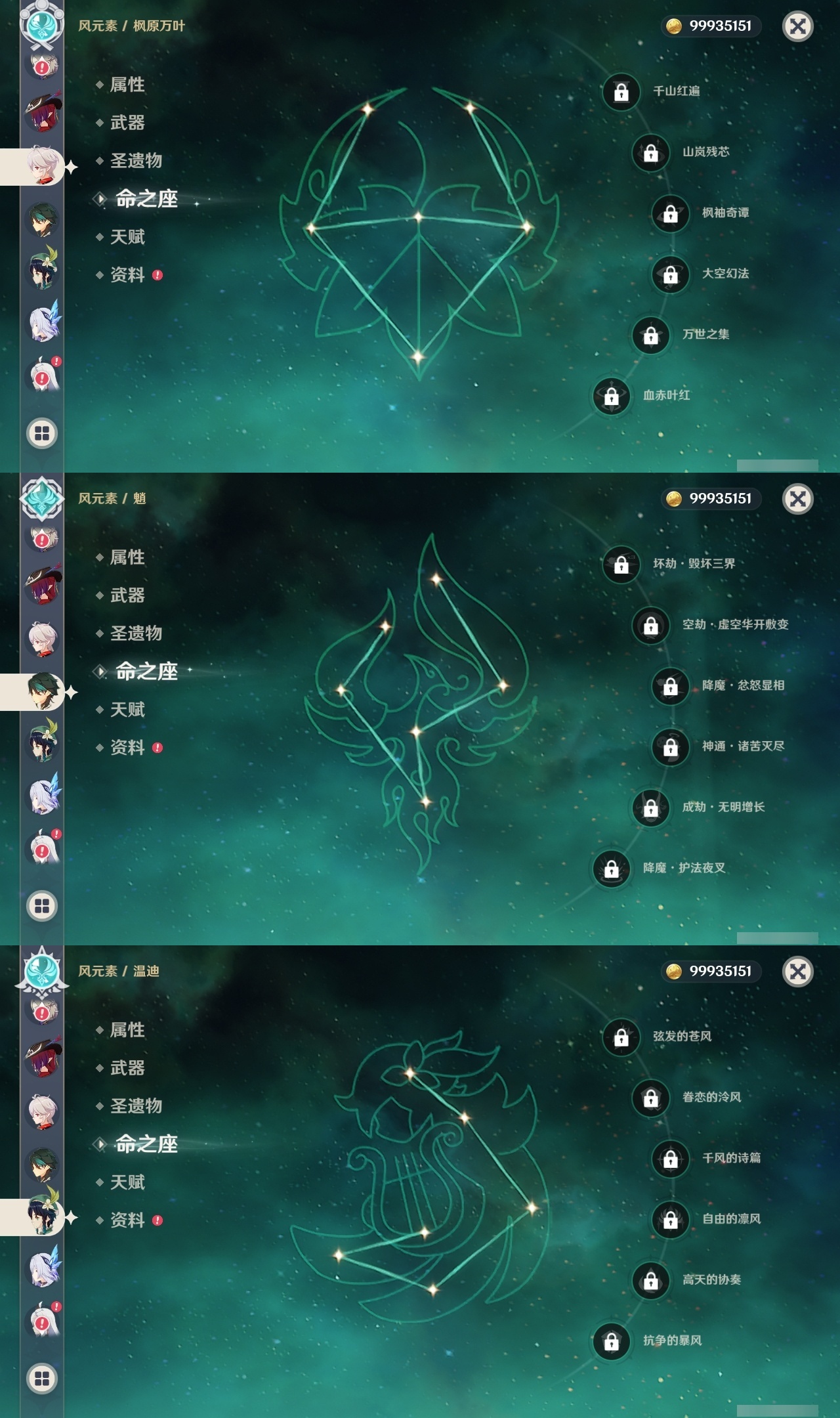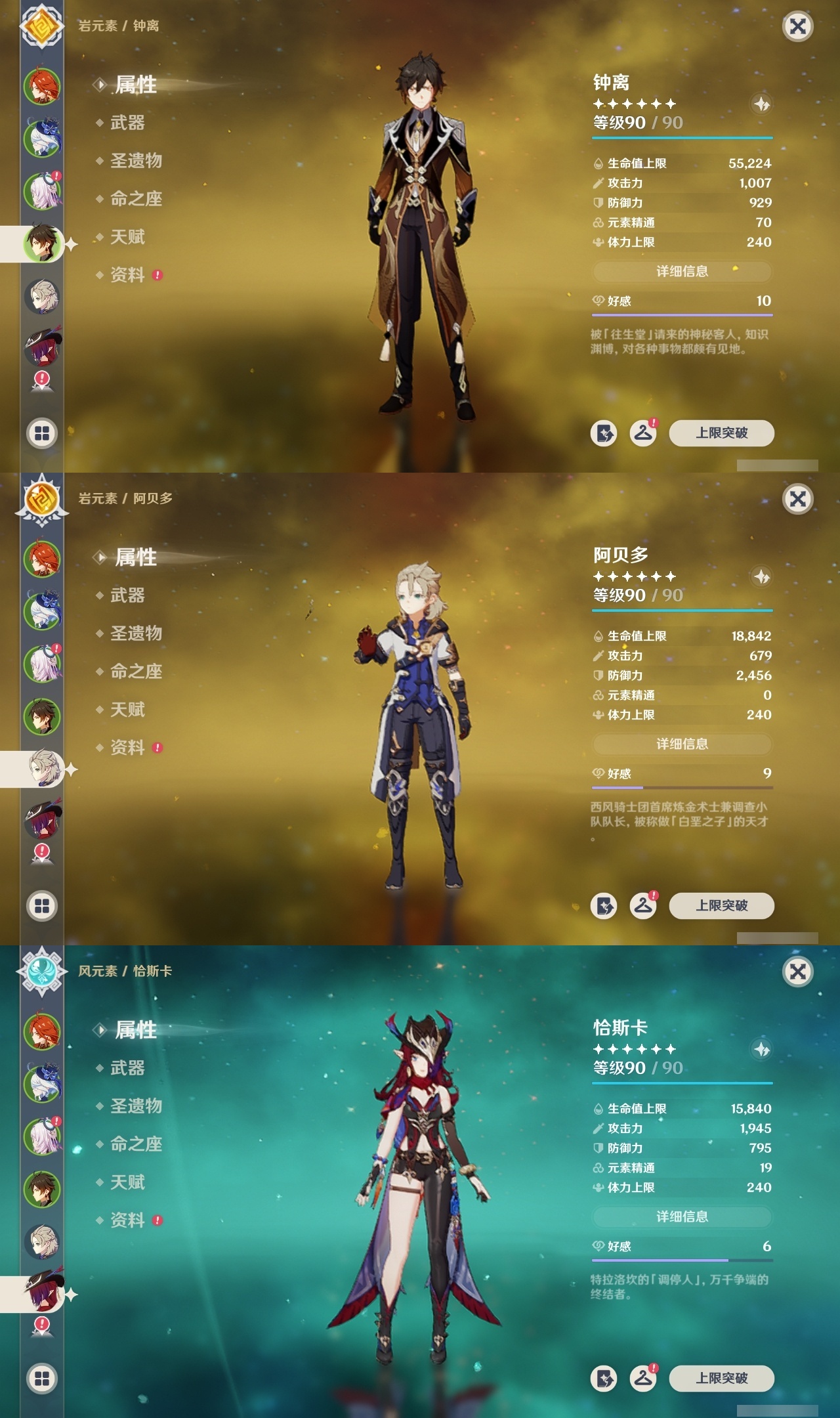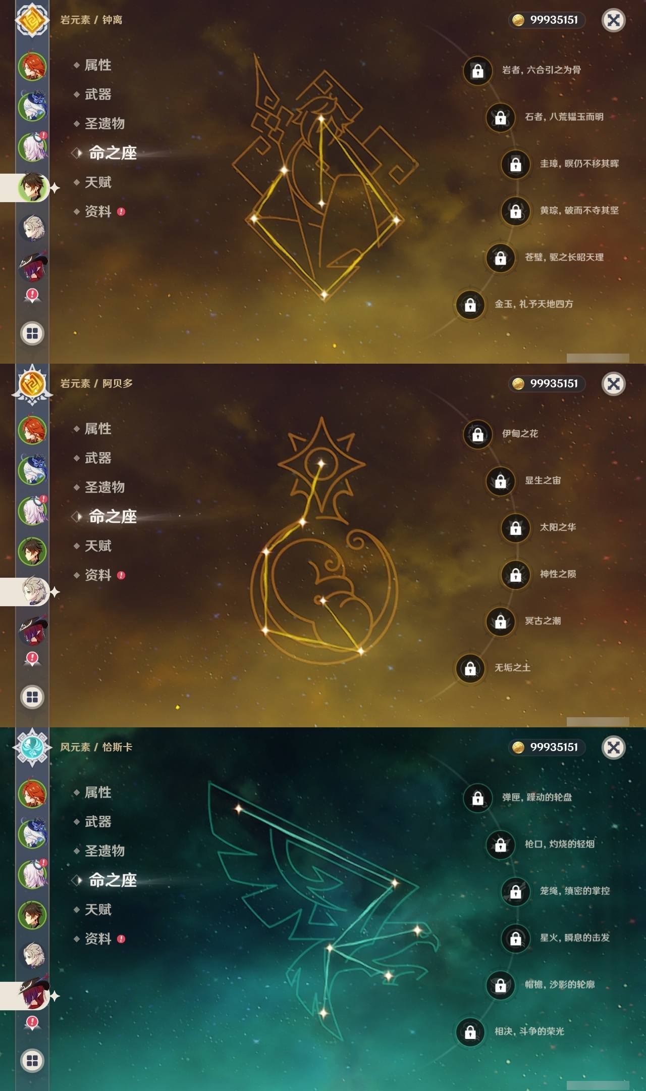 【原神】满命,冒险等级:60,五星数量:49,五星角色:玛薇卡 6命七七 6命夜兰 6命迪卢克 5命刻晴 4命莫娜 3命提纳里 3命芙宁娜 2命雷电将军 2命纳西妲 2命胡桃 1命琴 1命珊瑚宫心海神里绫华温迪恰斯卡茜特菈莉优菈迪希雅钟离荒泷一斗达达利亚申鹤瓦雷莎八重神子阿贝多丝柯克哥伦比娅枫原万叶甘雨魈__五星武器:焚曜千阳金流监督真语秘匣阿莫斯之弓不灭月华风鹰剑护摩之杖狼的末路磐岩结绿四风原典天空之傲天空之脊天空之卷天空之翼雾切之回光若水千夜浮梦__四星角色:卡齐娜 6命班尼特 6命行秋 6命九条裟罗 6命香菱 6命凝光 6命迪奥娜 6命砂糖 6命柯莱 6命芭芭拉 6命早柚 6命托马 6命烟绯 6命重云 6命辛焱 6命诺艾尔 6命罗莎莉亚 6命雷泽 6命菲谢尔 6命北斗 6命琳妮特 6命米卡 5命莱依拉 4命坎蒂丝 4命五郎 4命鹿野院平藏 3命瑶瑶 3命夏洛蒂 3命夏沃蕾 3命嘉明 3命赛索斯 3命多莉 2命欧洛伦 2命云堇 2命久岐忍 1命珐露珊 1命蓝砚 1命菲米尼 1命埃洛伊绮良良卡维伊法伊安珊爱诺
