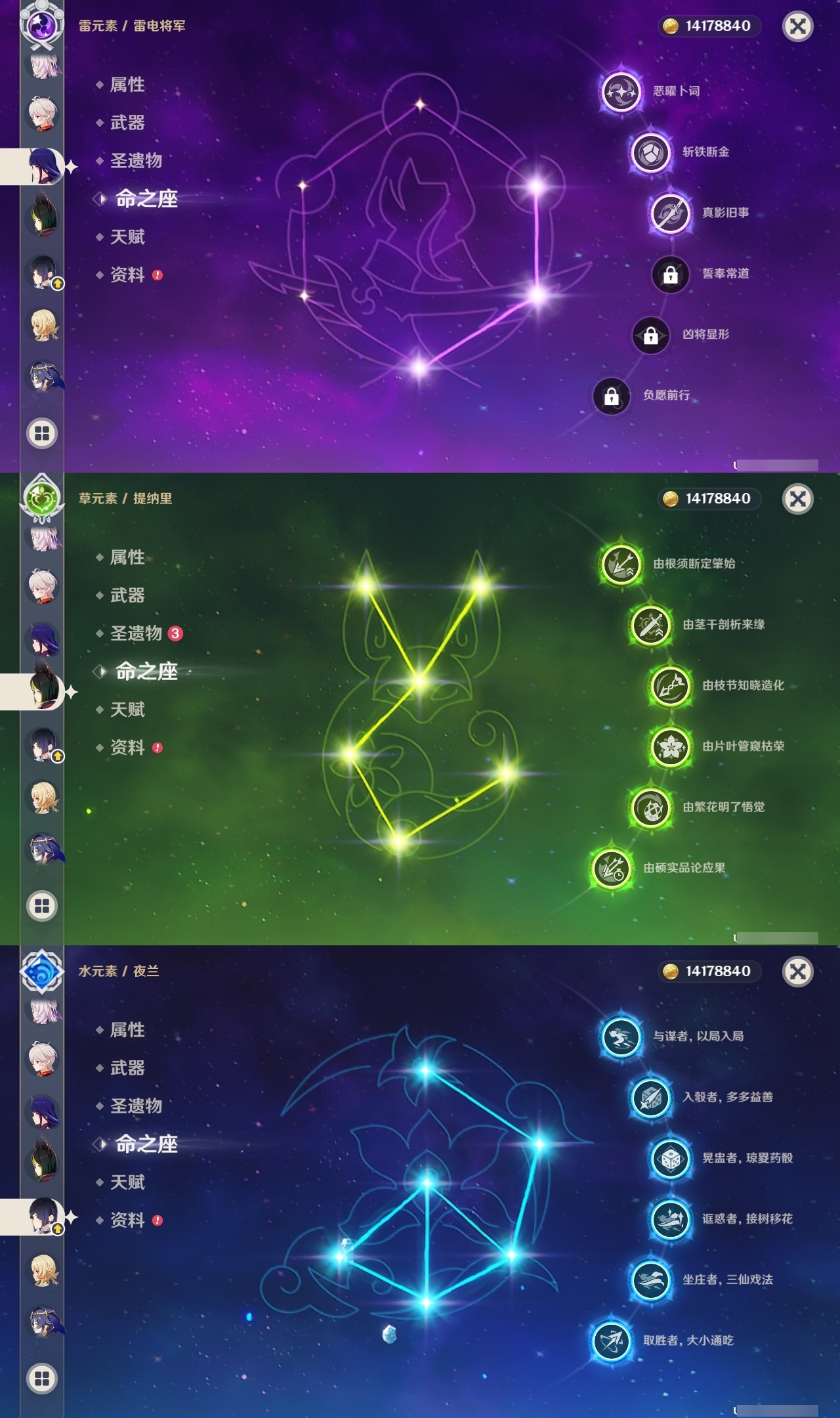 【原神】【lyys11549】冒险等级:60,五星数量:34,五星角色:夜兰 6命提纳里 6命琴 5命雷电将军 3命芙宁娜 2命哥伦比娅 2命莫娜 2命纳西妲 2命那维莱特 1命爱可菲 1命迪卢克 1命七七 1命八重神子 1命希诺宁温迪玛薇卡茜特菈莉迪希雅钟离丝柯克伊涅芙流浪者枫原万叶__五星武器:四风原典 3精天空之翼 2精万世流涌大典风鹰剑护摩之杖天空之刃薙草之稻光息灾波乱月白经津若水猎人之径__四星角色:班尼特 6命行秋 6命九条裟罗 6命香菱 6命久岐忍 6命鹿野院平藏 6命珐露珊 6命迪奥娜 6命砂糖 6命莱依拉 6命坎蒂丝 6命多莉 6命柯莱 6命芭芭拉 6命早柚 6命托马 6命烟绯 6命诺艾尔 6命罗莎莉亚 6命菲谢尔 6命北斗 6命夏洛蒂 6命嘉明 6命伊法 6命爱诺 6命赛索斯 6命五郎 5命塔利雅 5命卡齐娜 4命凝光 4命绮良良 4命瑶瑶 4命琳妮特 4命欧洛伦 3命云堇 3命重云 3命菲米尼 3命米卡 2命雷泽 2命卡维 1命辛焱 1命蓝砚夏沃蕾伊安珊