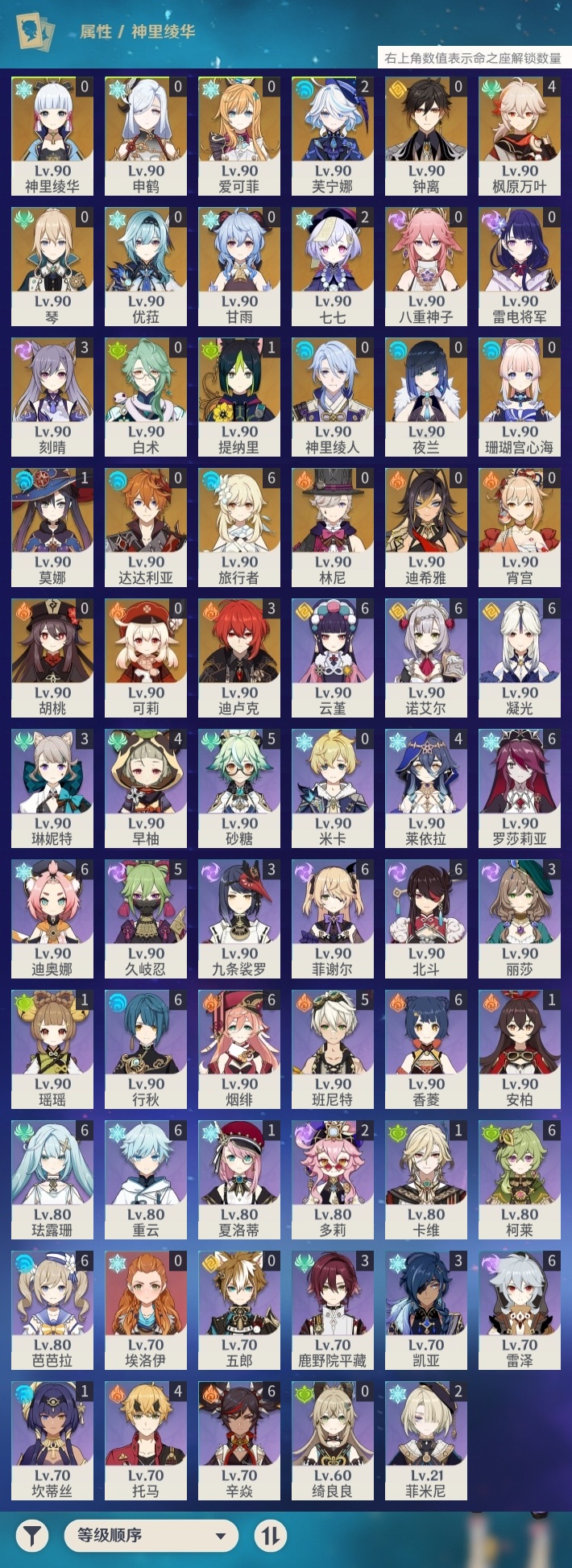 【原神】【lyys11541】冒险等级:60,五星数量:37,五星角色:枫原万叶 4命迪卢克 3命刻晴 3命芙宁娜 2命七七 2命莫娜 1命提纳里 1命琴珊瑚宫心海白术神里绫华宵宫优菈迪希雅钟离达达利亚申鹤八重神子神里绫人林尼夜兰爱可菲甘雨胡桃可莉雷电将军__五星武器:和璞鸢 2精静水流涌之辉阿莫斯之弓风鹰剑护摩之杖狼的末路四风原典天空之刃无工之剑雾切之回光__四星角色:行秋 6命香菱 6命珐露珊 6命凝光 6命迪奥娜 6命柯莱 6命芭芭拉 6命云堇 6命烟绯 6命重云 6命辛焱 6命诺艾尔 6命罗莎莉亚 6命雷泽 6命菲谢尔 6命北斗 6命班尼特 5命久岐忍 5命砂糖 5命莱依拉 4命早柚 4命托马 4命九条裟罗 3命鹿野院平藏 3命琳妮特 3命多莉 2命菲米尼 2命瑶瑶 1命坎蒂丝 1命卡维 1命夏洛蒂 1命埃洛伊绮良良米卡五郎