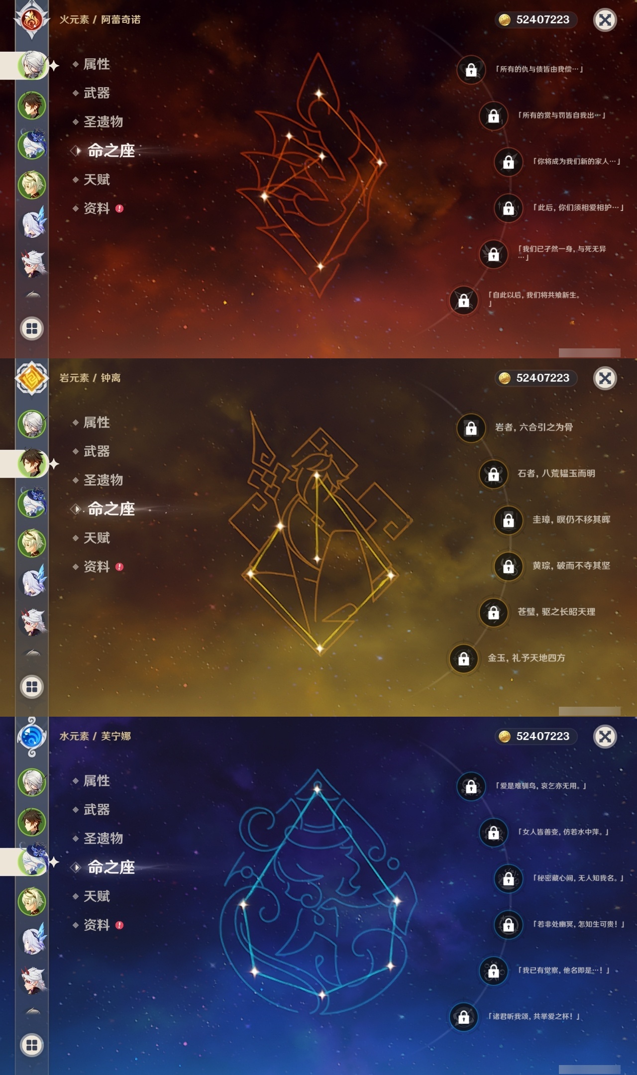 【原神】【lyys11540】冒险等级:60,五星数量:68,五星角色:七七 6命神里绫华 5命迪卢克 4命琴 4命刻晴 3命莫娜 3命迪希雅 2命胡桃 2命提纳里 1命艾梅莉埃珊瑚宫心海温迪玛薇卡宵宫优菈钟离荒泷一斗达达利亚梦见月瑞希申鹤八重神子神里绫人阿贝多夜兰芙宁娜闲云赛诺阿蕾奇诺丝柯克妮露纳西妲菲林斯流浪者哥伦比娅枫原万叶甘雨魈可莉雷电将军__五星武器:阿莫斯之弓 4精飞雷之弦振 2精狼的末路 2精磐岩结绿 2精天空之傲 2精天空之脊 2精祭星者之望赤月之形苍耀血染荒城不灭月华帷间夜曲苍古自由之誓风鹰剑和璞鸢护摩之杖松籁响起之时天空之卷天空之刃雾切之回光终末嗟叹之诗赤角石溃杵神乐之真意贯虹之槊若水赤沙之杖圣显之钥千夜浮梦__四星角色:卡齐娜 6命班尼特 6命行秋 6命九条裟罗 6命香菱 6命久岐忍 6命鹿野院平藏 6命珐露珊 6命凝光 6命迪奥娜 6命砂糖 6命莱依拉 6命坎蒂丝 6命柯莱 6命芭芭拉 6命云堇 6命早柚 6命托马 6命烟绯 6命重云 6命辛焱 6命诺艾尔 6命罗莎莉亚 6命雷泽 6命菲谢尔 6命北斗 6命琳妮特 6命绮良良 5命五郎 5命多莉 4命赛索斯 3命米卡 2命菲米尼 2命卡维 1命蓝砚 1命夏洛蒂 1命嘉明 1命爱诺 1命埃洛伊瑶瑶伊法塔利雅