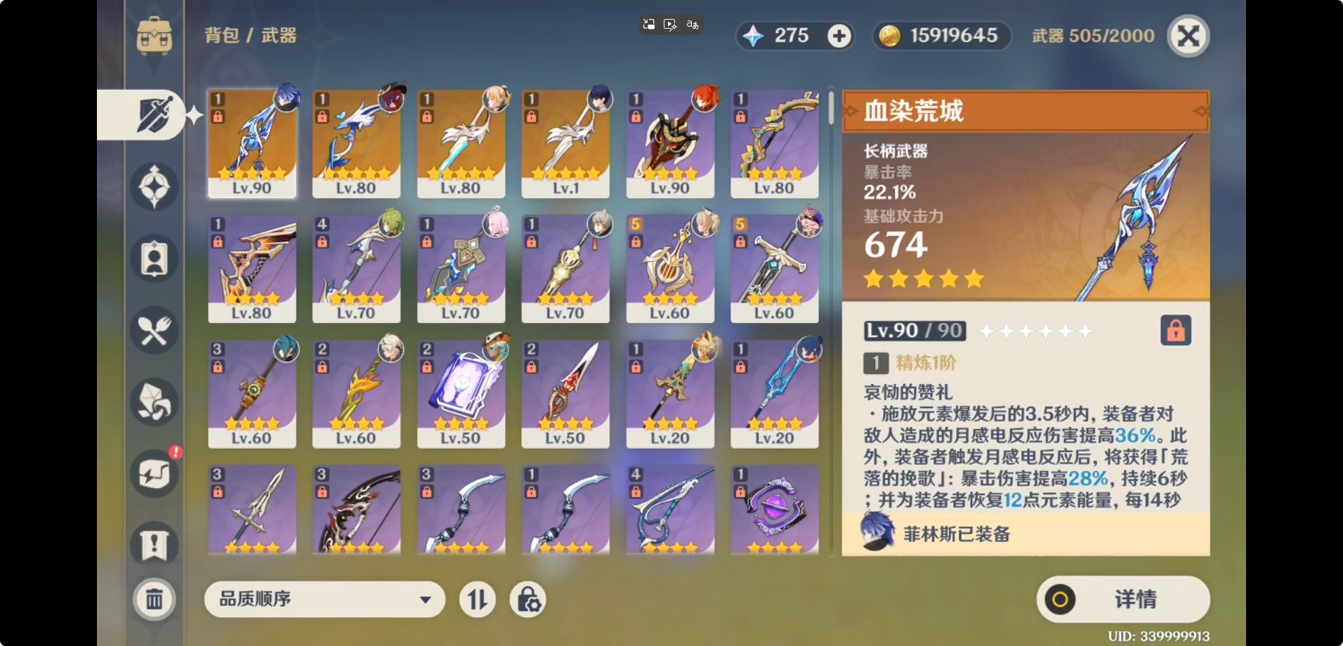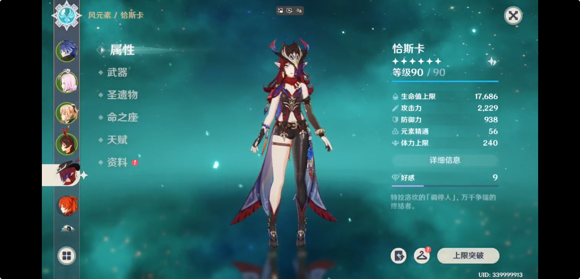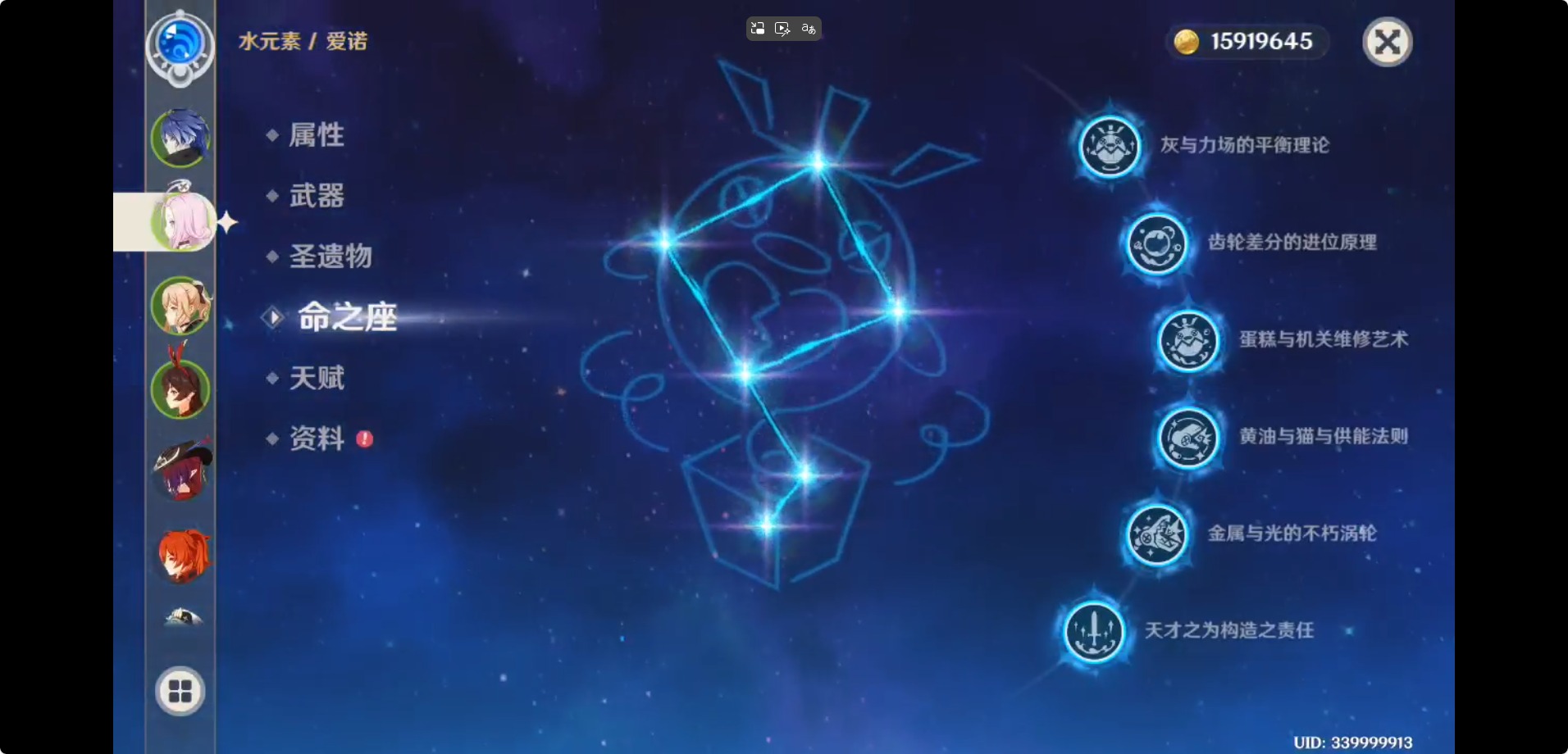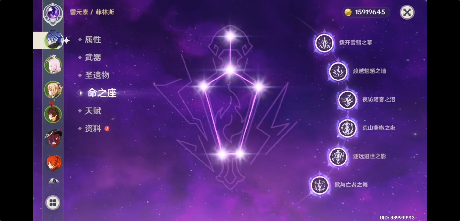 [16509417]【邮箱】未绑定 【总黄数】18 【冒险等级】56 【6命金色角色】满命菲林斯 【1命金色角色】一命迪希雅一命迪卢克一命琴 【0命金色角色】恰斯卡