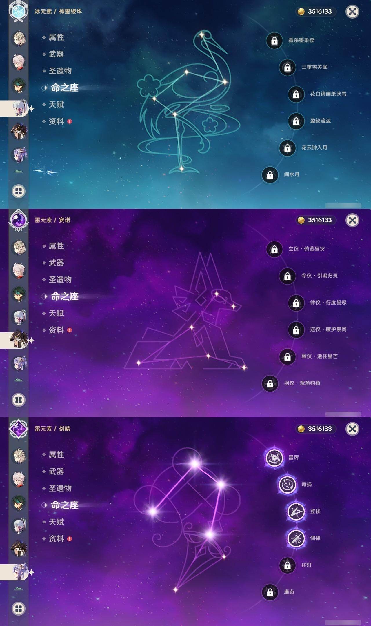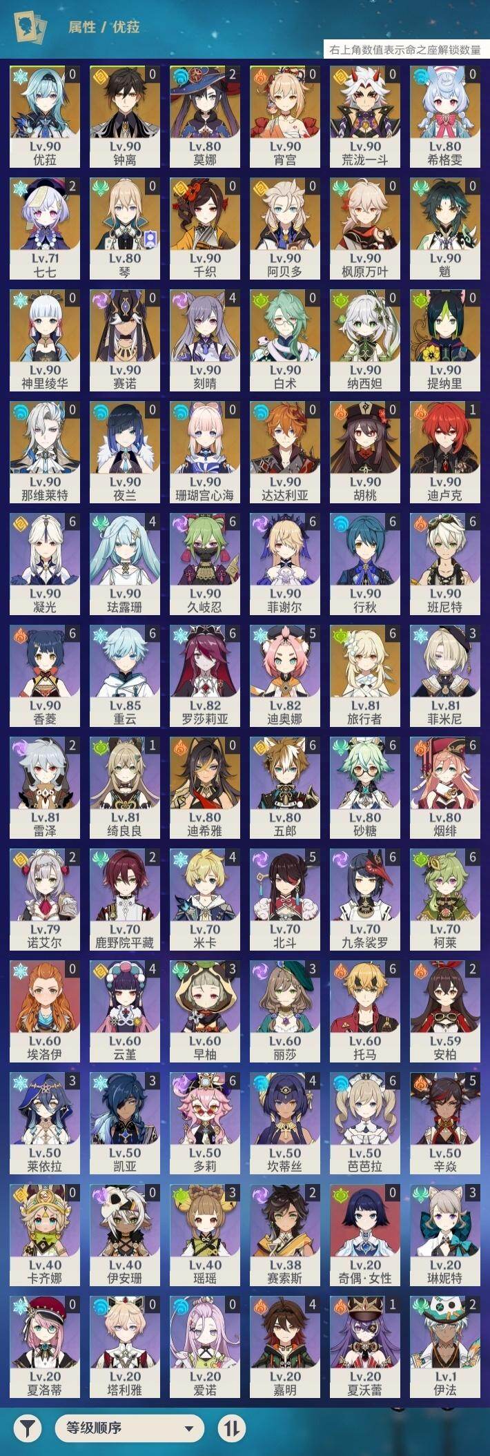 [16517215]60级/51黄/女主/25个五星角色/15个五星武器 0命希格雯0命千织0命那维莱特0命白术0命迪希雅0命纳西妲0命赛诺0命提纳里0命夜兰0命荒泷一斗0命优菈0命枫原万叶0命神里绫华0命钟离0命胡桃0命魈0命宵宫0命达达利亚0命阿贝多0命珊瑚宫心海4命刻晴2命七七0命琴2命莫娜1命迪卢克精1万世流涌大典精1苇海信标精1图莱杜拉的回忆精1若水精1神乐之真意精1松籁响起之时精1磐岩结绿精2四风原典精1和璞鸢精1天空之脊精1阿莫斯之弓精1天空之刃精1狼的末路精2天空之傲精1柔灯挽歌