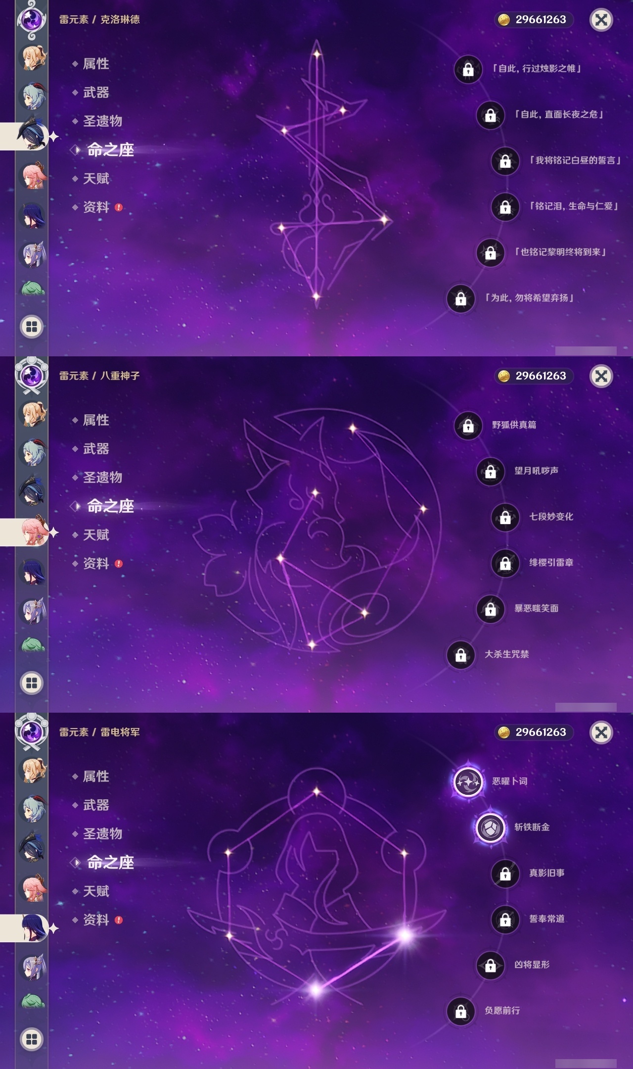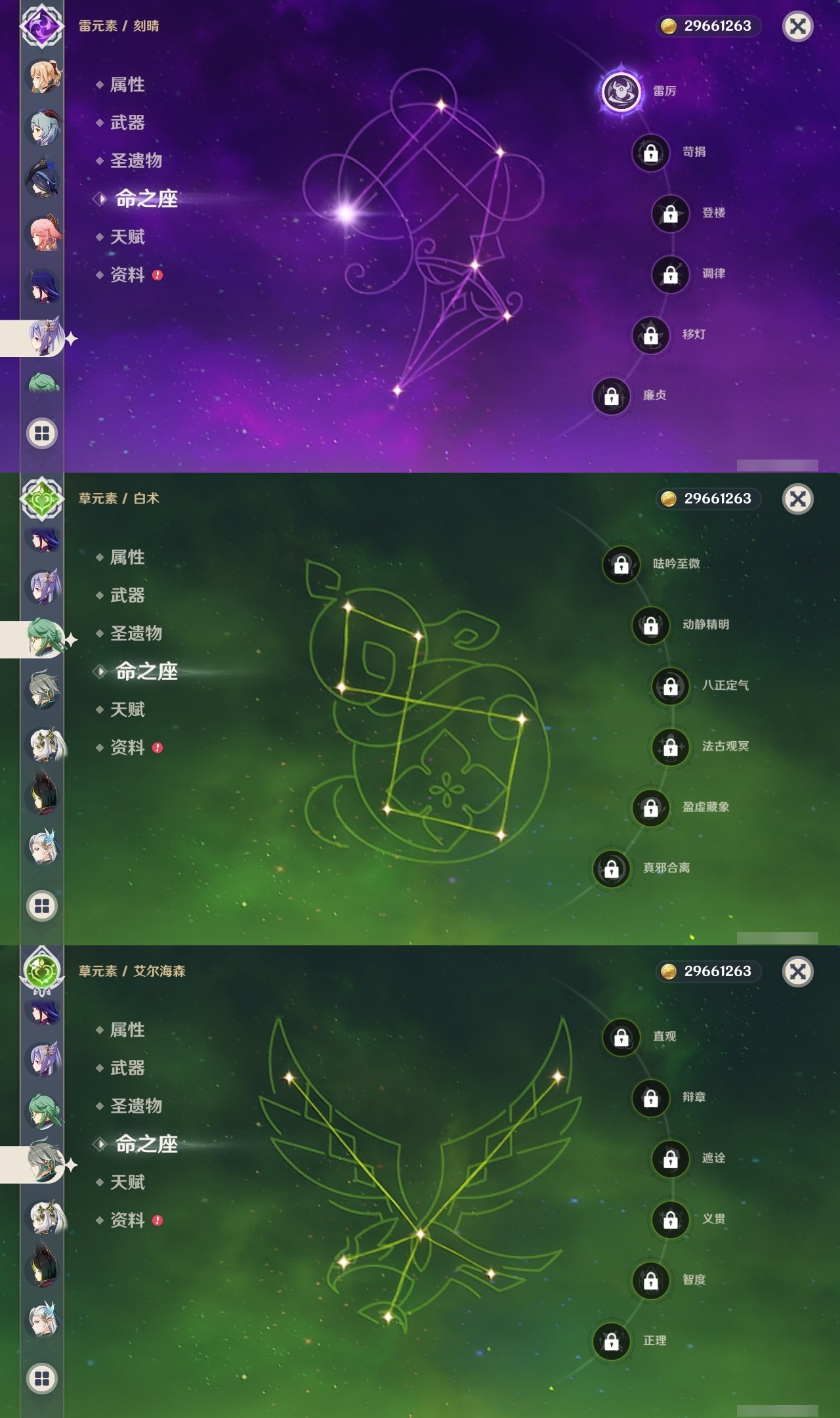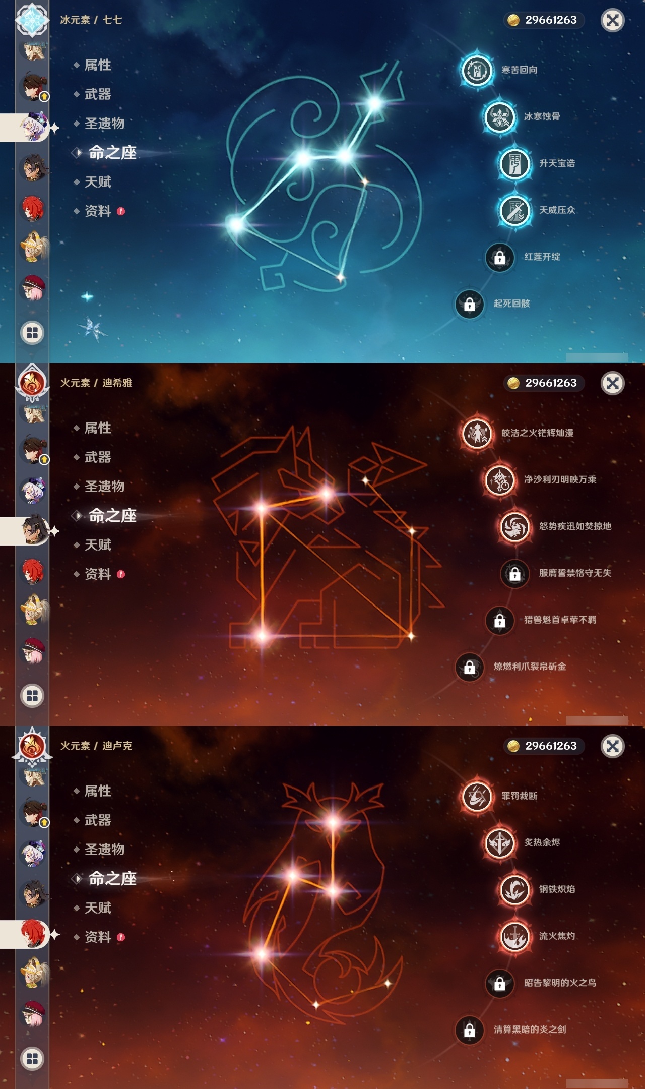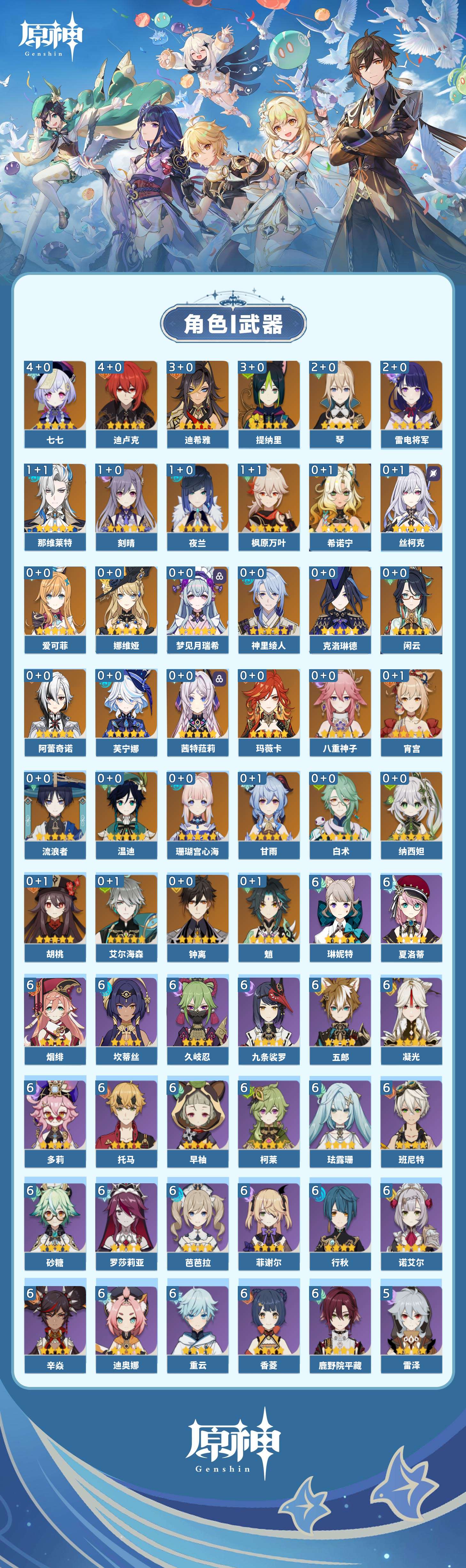 【原神】【lyys11593】冒险等级:60,五星数量:48,五星角色:迪卢克 4命七七 4命迪希雅 3命提纳里 3命雷电将军 2命琴 2命那维莱特 1命枫原万叶 1命刻晴 1命夜兰 1命珊瑚宫心海希诺宁白术温迪玛薇卡茜特菈莉宵宫钟离梦见月瑞希八重神子神里绫人芙宁娜娜维娅闲云爱可菲阿蕾奇诺丝柯克纳西妲艾尔海森流浪者甘雨魈胡桃克洛琳德__五星武器:四风原典 3精岩峰巡歌最初的大魔术万世流涌大典苍耀裁叶萃光阿莫斯之弓苍古自由之誓飞雷之弦振和璞鸢护摩之杖天空之脊天空之刃赤沙之杖__四星角色:班尼特 6命行秋 6命九条裟罗 6命香菱 6命久岐忍 6命鹿野院平藏 6命珐露珊 6命凝光 6命迪奥娜 6命砂糖 6命坎蒂丝 6命多莉 6命柯莱 6命芭芭拉 6命早柚 6命托马 6命五郎 6命烟绯 6命重云 6命辛焱 6命诺艾尔 6命罗莎莉亚 6命菲谢尔 6命琳妮特 6命夏洛蒂 6命雷泽 5命卡齐娜 4命绮良良 4命伊法 4命米卡 3命欧洛伦 3命菲米尼 3命夏沃蕾 3命赛索斯 3命瑶瑶 2命莱依拉 2命卡维 2命蓝砚 2命云堇 2命北斗 2命嘉明 2命塔利雅 1命爱诺