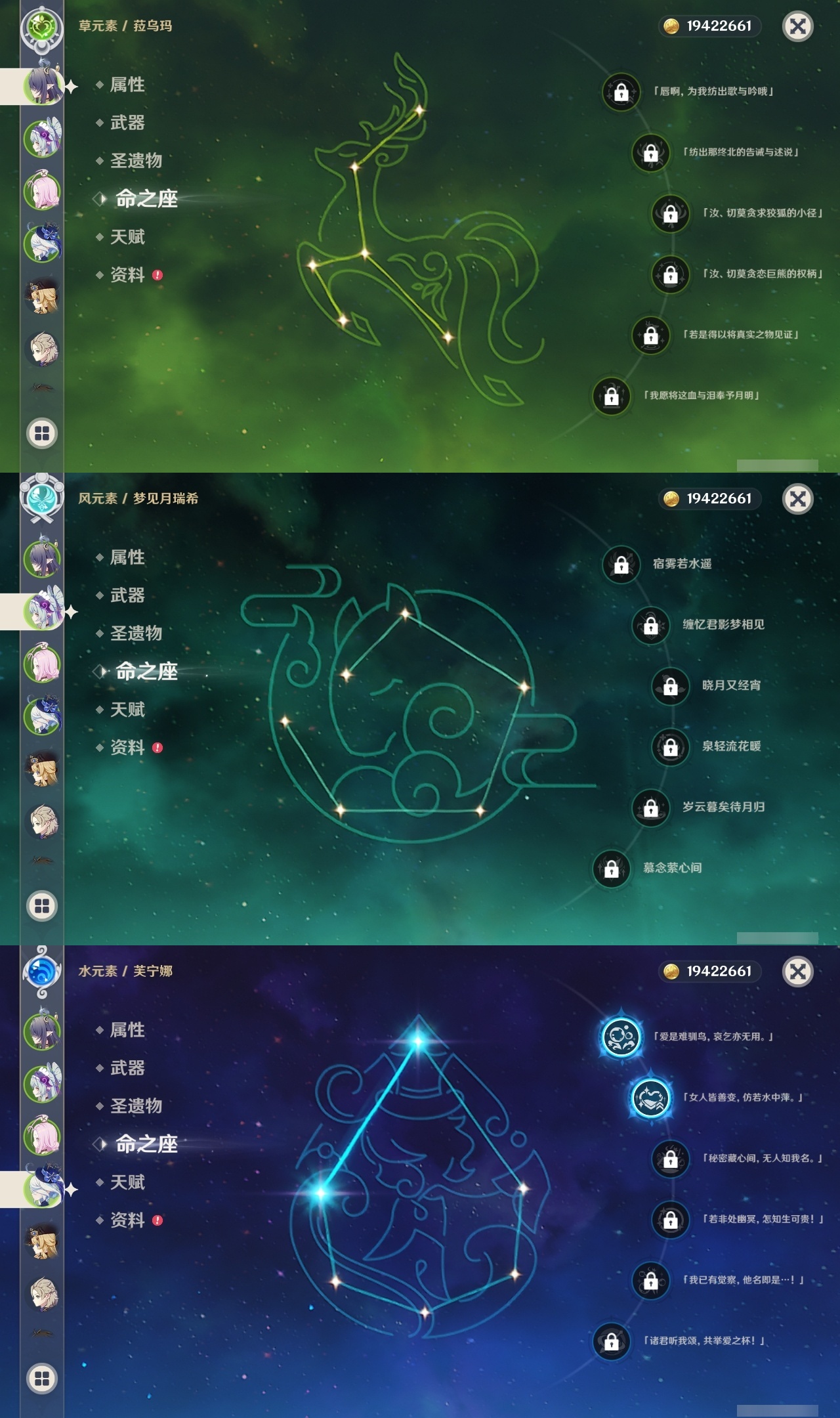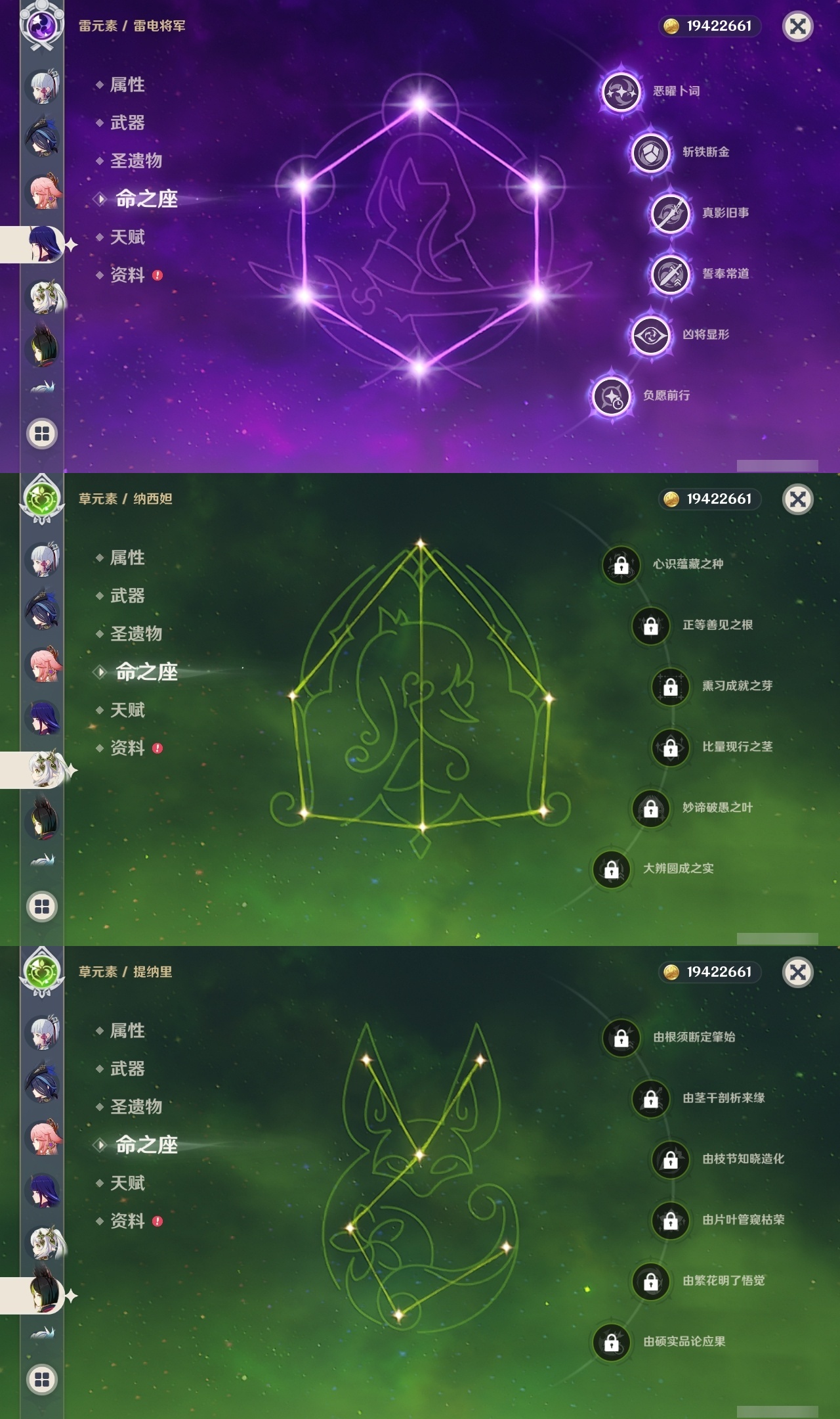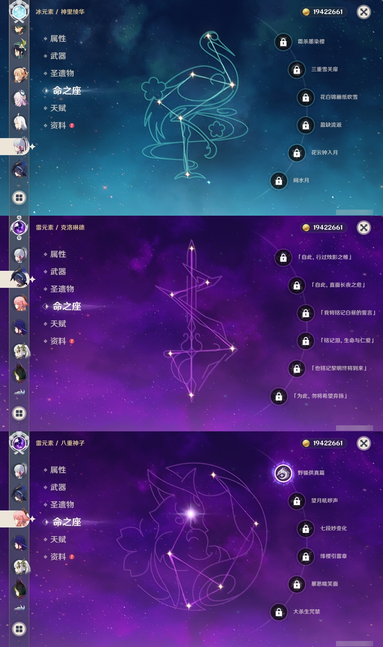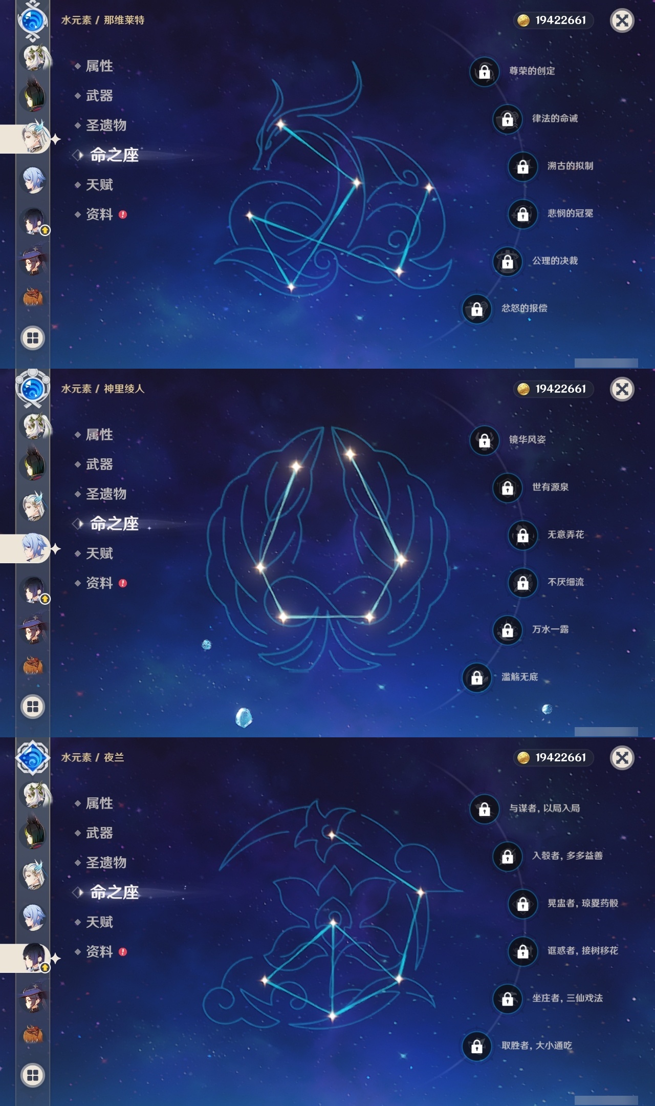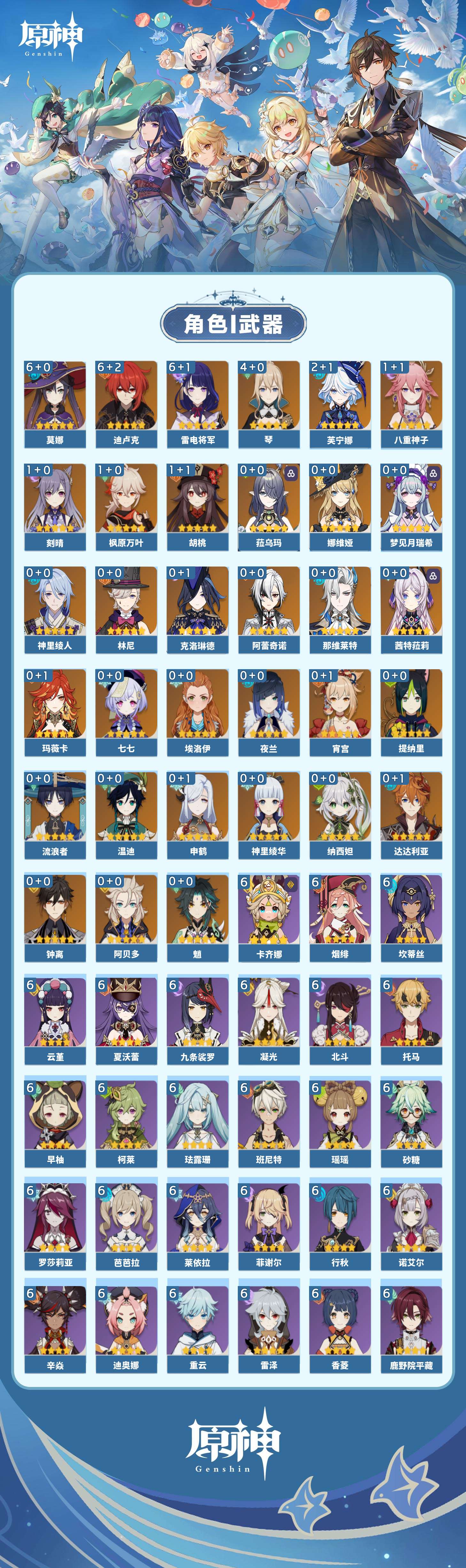 【原神】满命,冒险等级:60,五星数量:52,五星角色:迪卢克 6命雷电将军 6命莫娜 6命琴 4命芙宁娜 2命枫原万叶 1命胡桃 1命刻晴 1命八重神子 1命七七神里绫华温迪玛薇卡茜特菈莉宵宫钟离达达利亚梦见月瑞希申鹤神里绫人林尼阿贝多那维莱特夜兰娜维娅提纳里阿蕾奇诺纳西妲菈乌玛流浪者魈克洛琳德__五星武器:碧落之珑 2精狼的末路 2精天空之刃 2精焚曜千阳静水流涌之辉阿莫斯之弓飞雷之弦振风鹰剑护摩之杖四风原典天空之傲天空之卷天空之翼薙草之稻光斫峰之刃冬极白星息灾神乐之真意赦罪__四星角色:卡齐娜 6命班尼特 6命行秋 6命九条裟罗 6命香菱 6命鹿野院平藏 6命珐露珊 6命凝光 6命迪奥娜 6命砂糖 6命瑶瑶 6命莱依拉 6命坎蒂丝 6命柯莱 6命芭芭拉 6命云堇 6命早柚 6命托马 6命烟绯 6命重云 6命辛焱 6命诺艾尔 6命罗莎莉亚 6命雷泽 6命菲谢尔 6命北斗 6命夏沃蕾 6命米卡 5命多莉 5命五郎 5命琳妮特 5命久岐忍 4命嘉明 4命夏洛蒂 3命绮良良 2命伊安珊 2命赛索斯 2命卡维 1命欧洛伦 1命菲米尼 1命埃洛伊蓝砚伊法塔利雅爱诺
