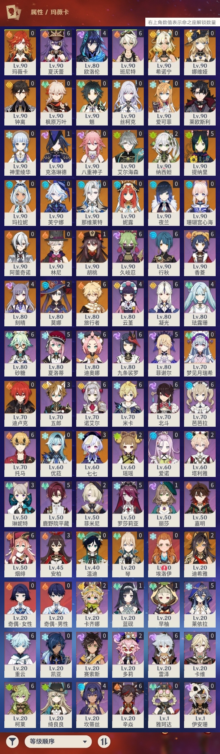 【原神】【lyys11585】冒险等级:60,五星数量:51,五星角色:提纳里 5命刻晴 4命七七 3命迪希雅 2命莫娜 2命纳西妲 2命胡桃 1命克洛琳德 1命玛拉妮琴珊瑚宫心海希诺宁神里绫华温迪玛薇卡优菈钟离梦见月瑞希八重神子林尼那维莱特莱欧斯利夜兰芙宁娜娜维娅爱可菲阿蕾奇诺丝柯克妮露艾尔海森迪卢克枫原万叶魈__五星武器:最初的大魔术裁断赤月之形黎明破晓之史裁叶萃光图莱杜拉的回忆阿莫斯之弓不灭月华风鹰剑和璞鸢护摩之杖狼的末路四风原典天空之翼若水__四星角色:班尼特 6命行秋 6命九条裟罗 6命香菱 6命久岐忍 6命凝光 6命迪奥娜 6命砂糖 6命绮良良 6命米卡 6命柯莱 6命芭芭拉 6命托马 6命烟绯 6命重云 6命辛焱 6命诺艾尔 6命雷泽 6命北斗 6命夏沃蕾 6命嘉明 6命鹿野院平藏 5命莱依拉 5命罗莎莉亚 5命菲谢尔 5命夏洛蒂 5命珐露珊 4命坎蒂丝 4命欧洛伦 4命云堇 4命五郎 3命琳妮特 3命卡齐娜 2命瑶瑶 2命多莉 2命菲米尼 2命塔利雅 2命蓝砚 1命早柚 1命埃洛伊奇偶·女性奇偶·男性卡维伊安珊爱诺赛索斯