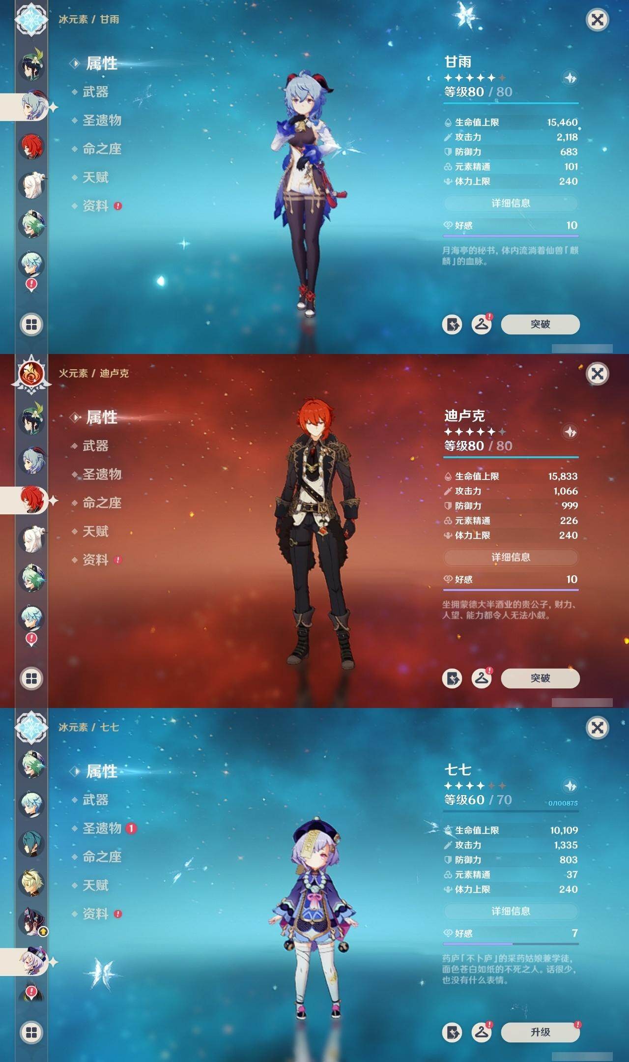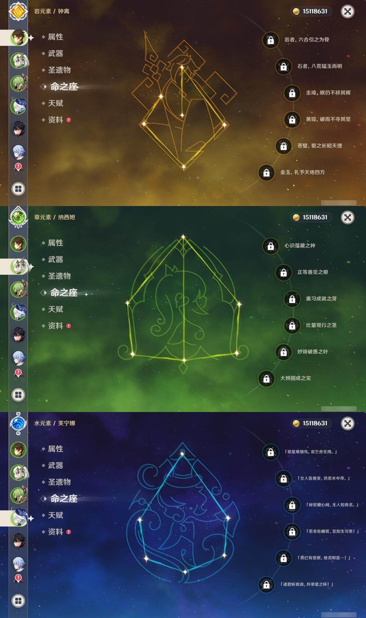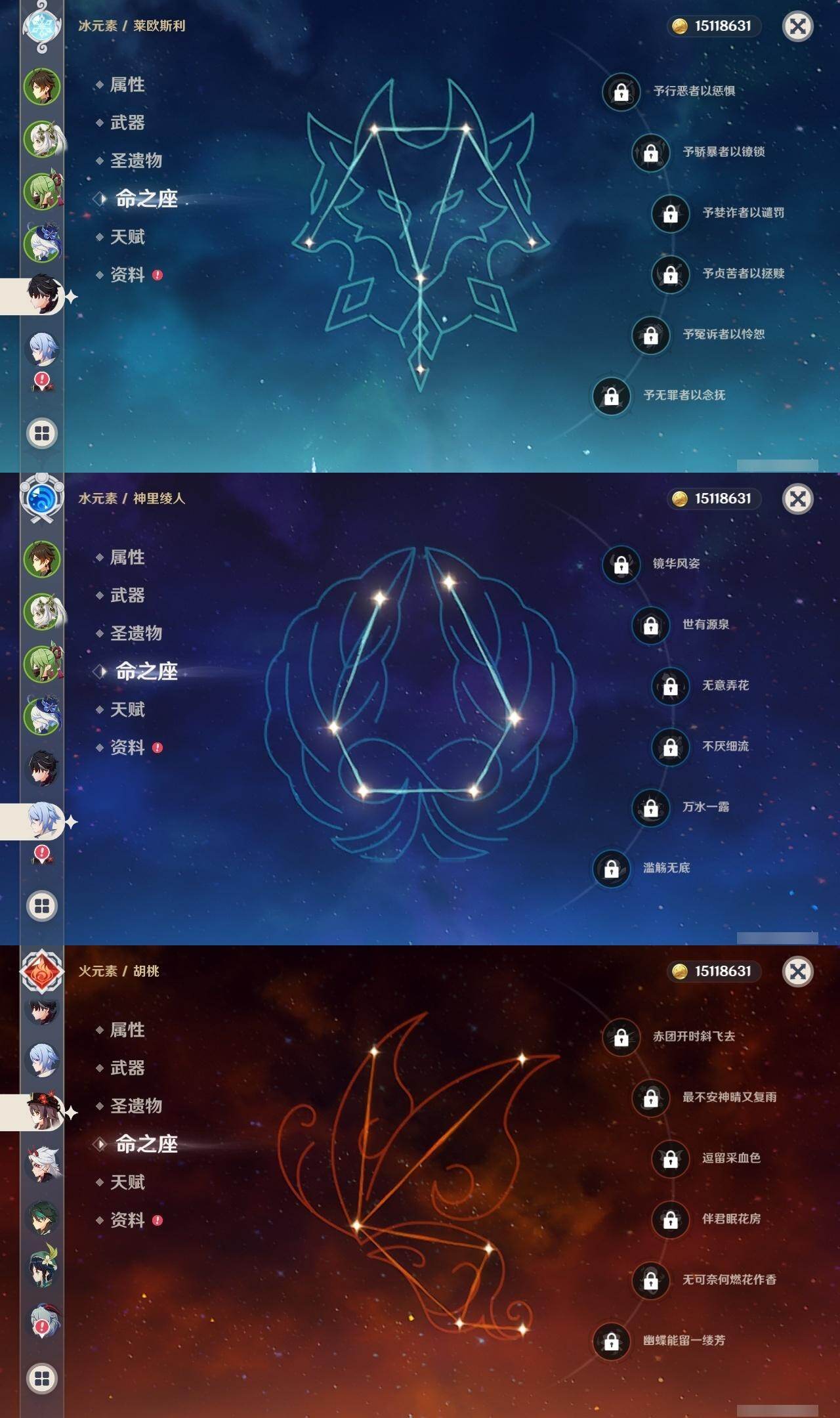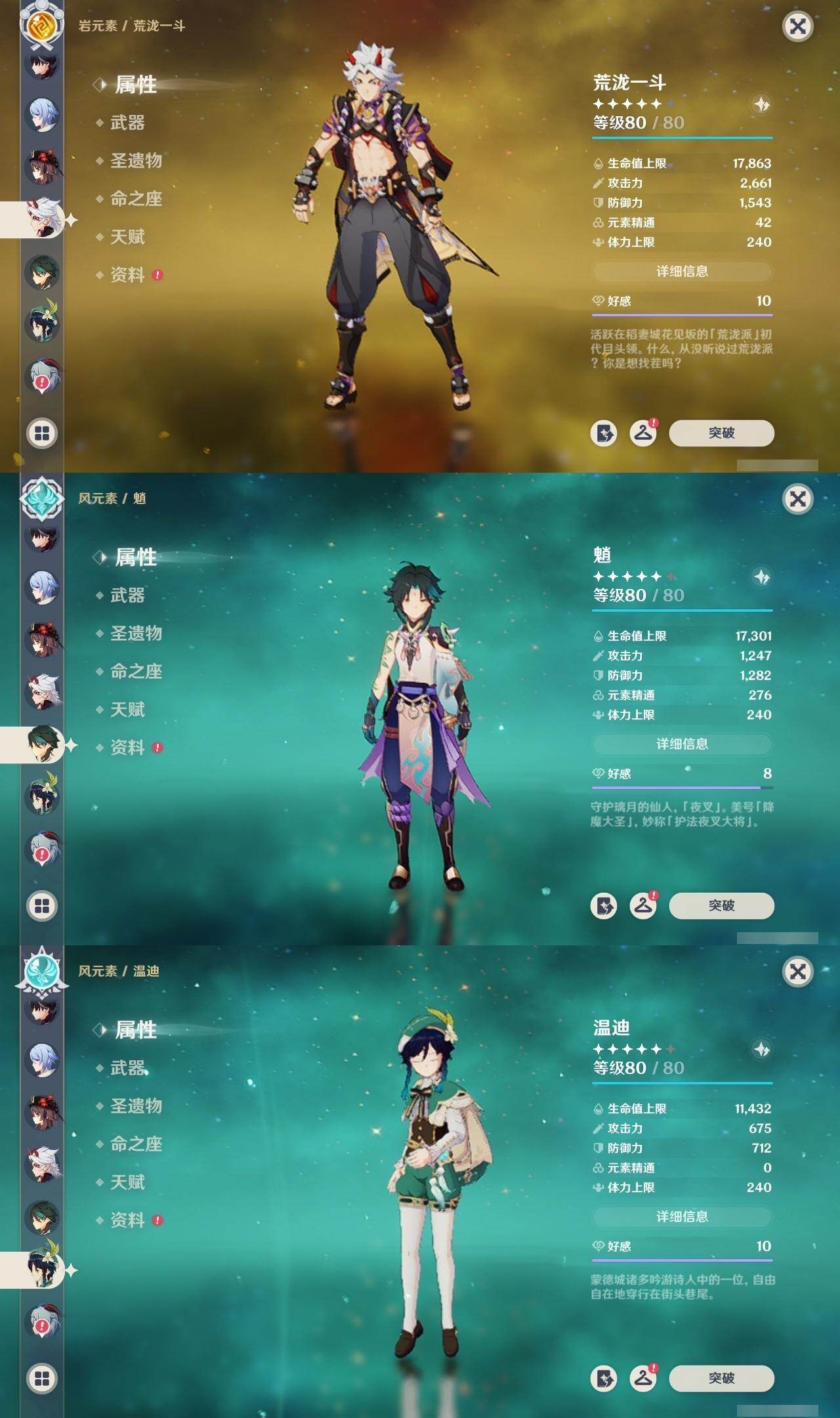[16524082]57级/22黄/男主/16个五星角色/4个五星武器 0命芙宁娜0命莱欧斯利0命迪希雅0命纳西妲0命妮露0命提纳里0命神里绫人0命荒泷一斗0命钟离0命胡桃0命甘雨0命魈0命温迪1命七七0命莫娜1命迪卢克精1和璞鸢精1狼的末路精1天空之傲