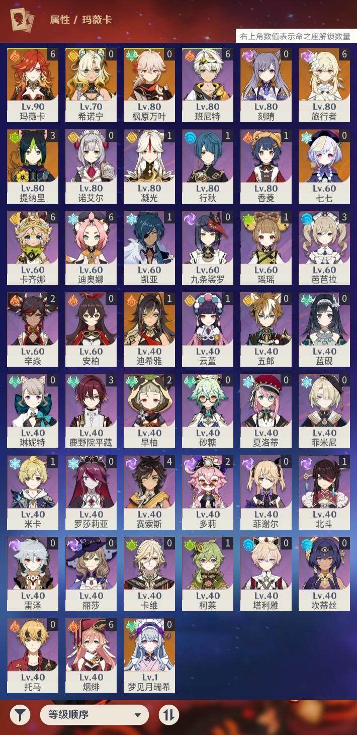 [16525617]56级/22黄/女主/8个五星角色/4个五星武器 1命迪希雅3命提纳里0命枫原万叶0命刻晴0命七七0命希诺宁满命玛薇卡0命梦见月瑞希精1天空之翼精1风鹰剑精1祭星者之望精1焚曜千阳