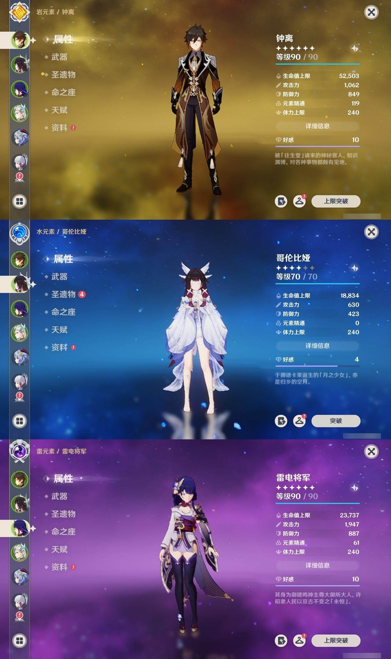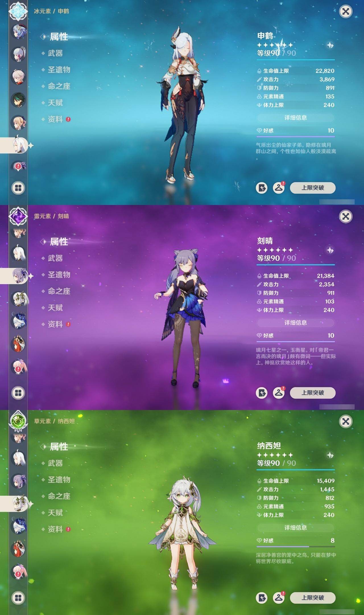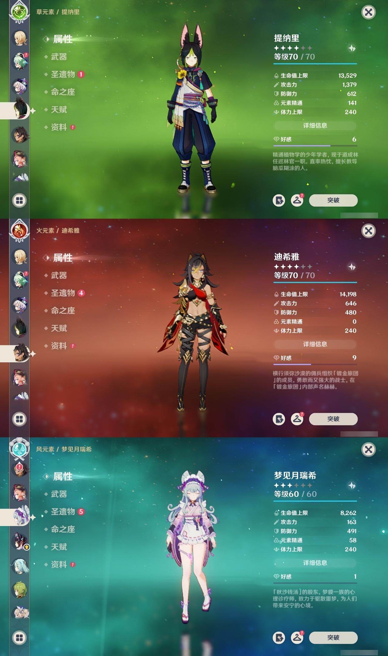 60级/49黄/女主/27个五星角色/10个五星武器 1命芙宁娜1命那维莱特0命迪希雅0命流浪者0命纳西妲0命妮露1命提纳里0命申鹤0命荒泷一斗0命雷电将军0命枫原万叶1命神里绫华0命钟离0命胡桃1命甘雨0命魈0命宵宫0命达达利亚0命珊瑚宫心海0命刻晴1命七七满命琴0命莫娜0命迪卢克0命希诺宁0命梦见月瑞希0命哥伦比娅精1万世流涌大典精1千夜浮梦精1冬极白星精1四风原典精1天空之脊精1贯虹之槊精1天空之傲