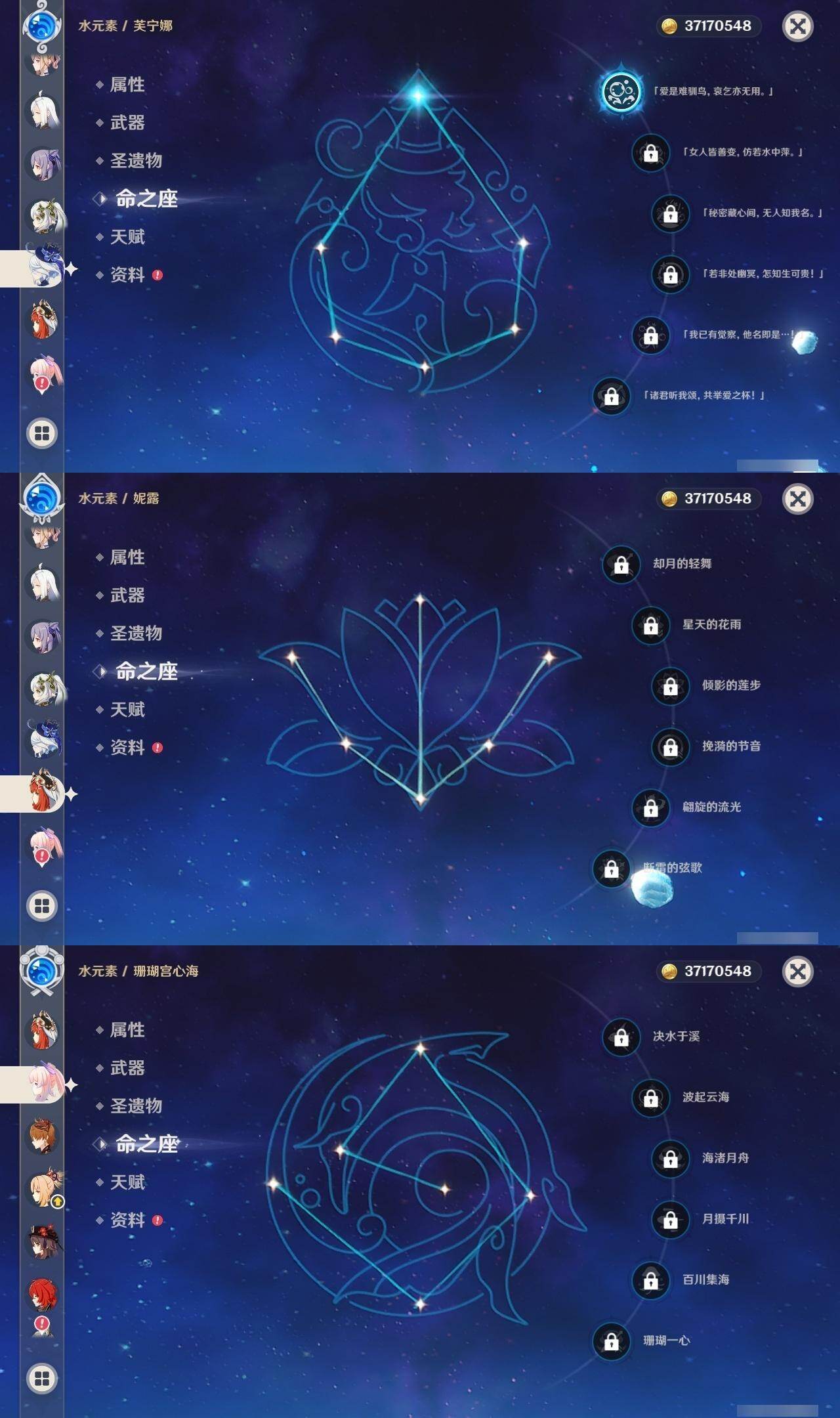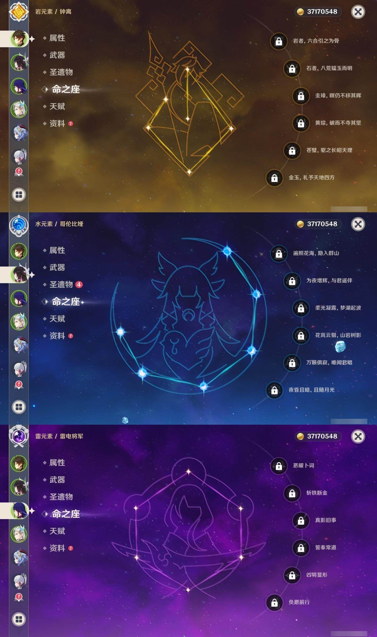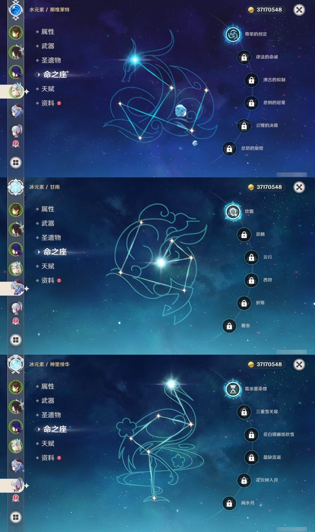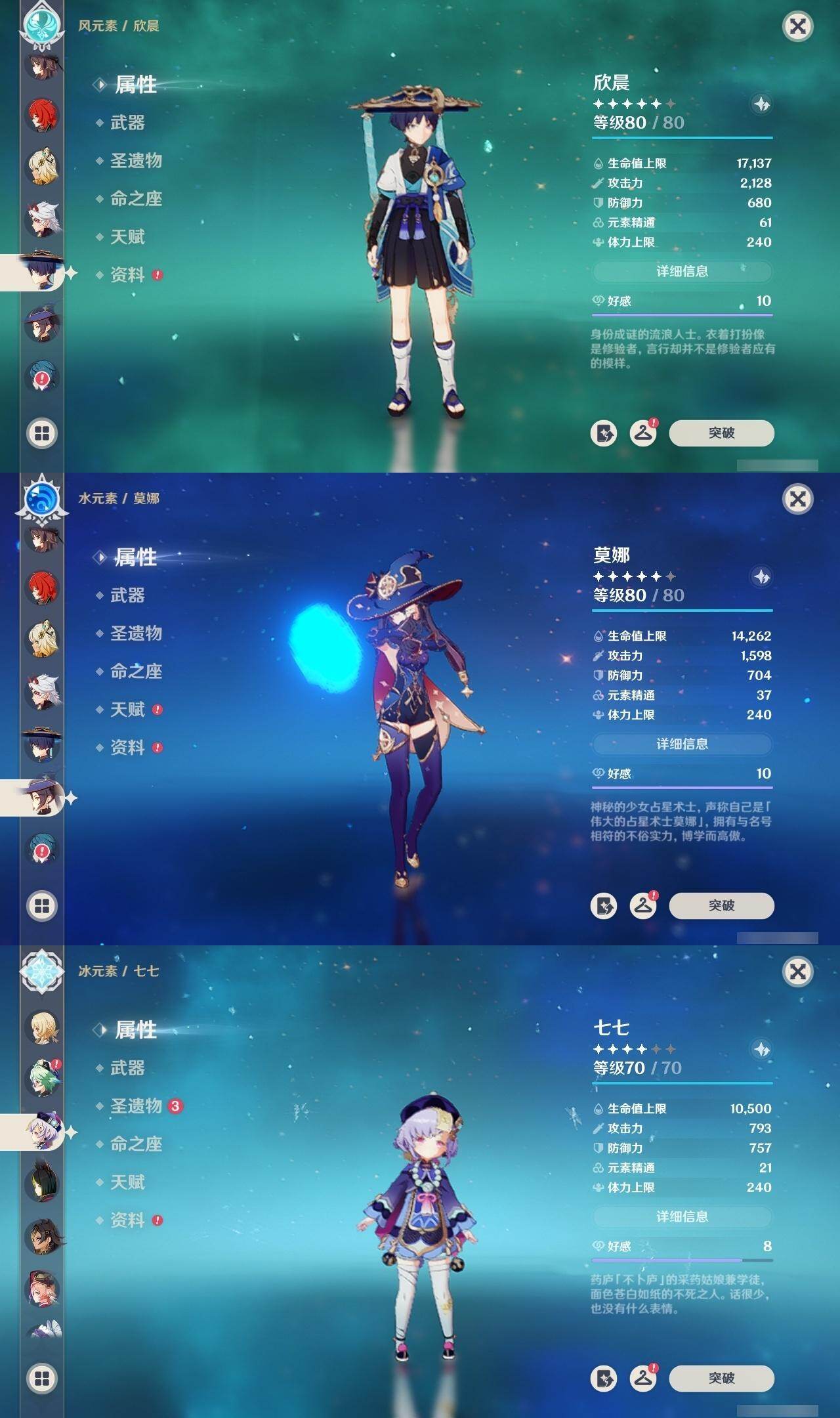60级/49黄/女主/27个五星角色/10个五星武器 1命芙宁娜1命那维莱特0命迪希雅0命流浪者0命纳西妲0命妮露1命提纳里0命申鹤0命荒泷一斗0命雷电将军0命枫原万叶1命神里绫华0命钟离0命胡桃1命甘雨0命魈0命宵宫0命达达利亚0命珊瑚宫心海0命刻晴1命七七满命琴0命莫娜0命迪卢克0命希诺宁0命梦见月瑞希0命哥伦比娅精1万世流涌大典精1千夜浮梦精1冬极白星精1四风原典精1天空之脊精1贯虹之槊精1天空之傲