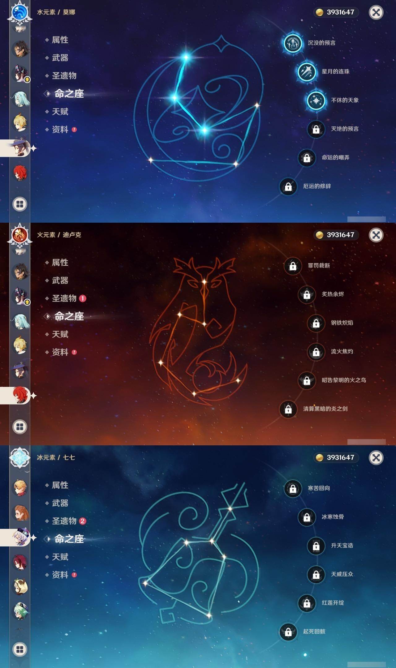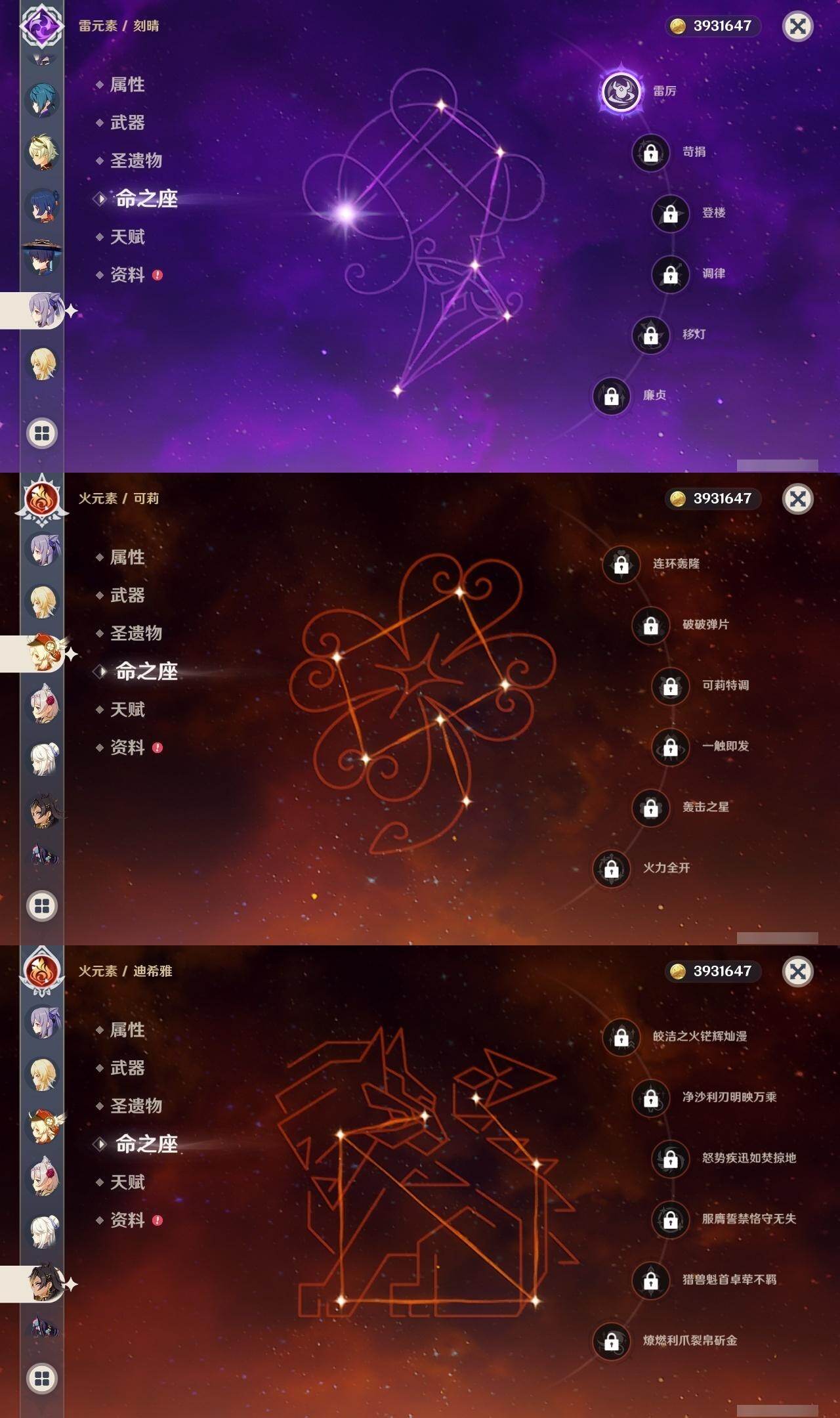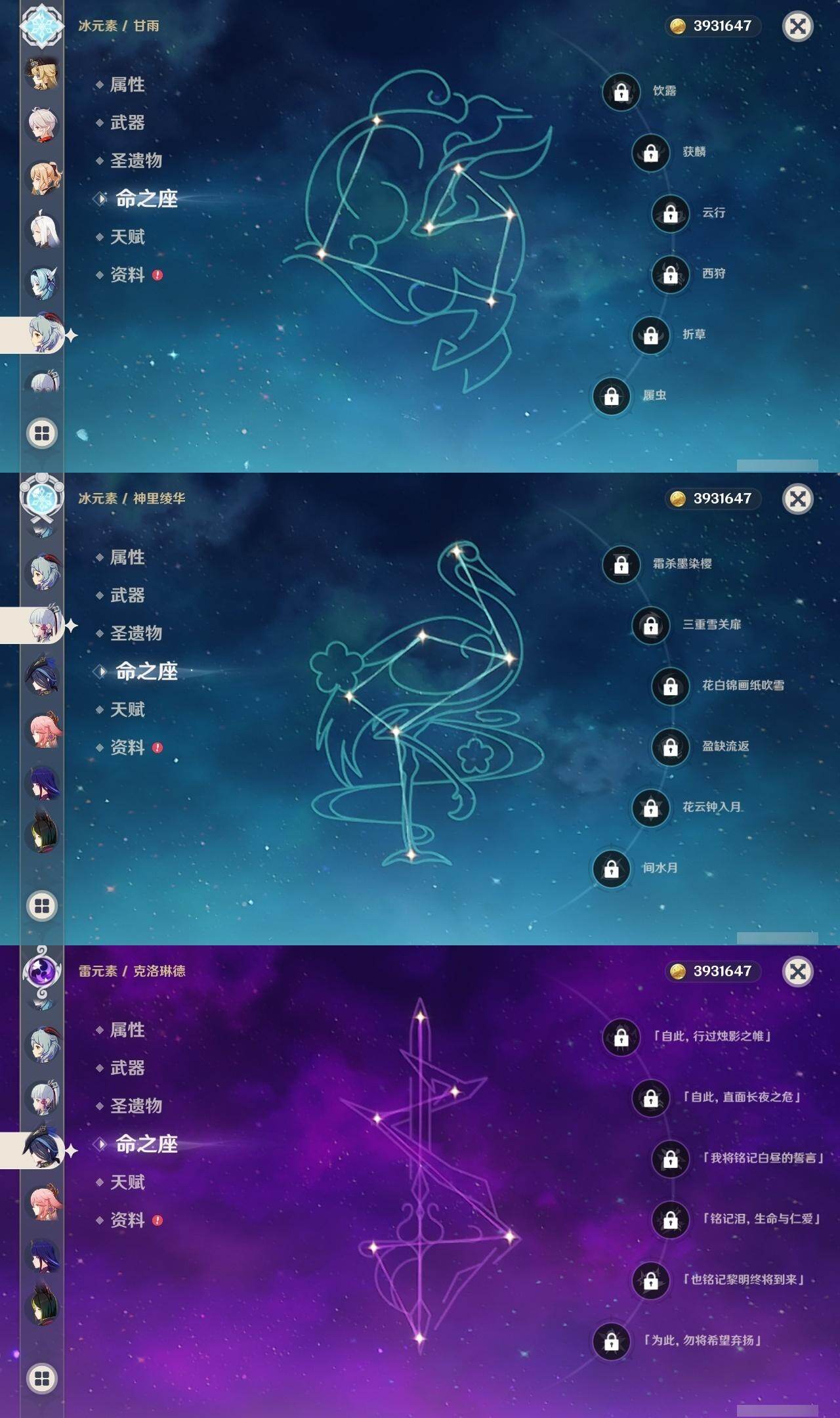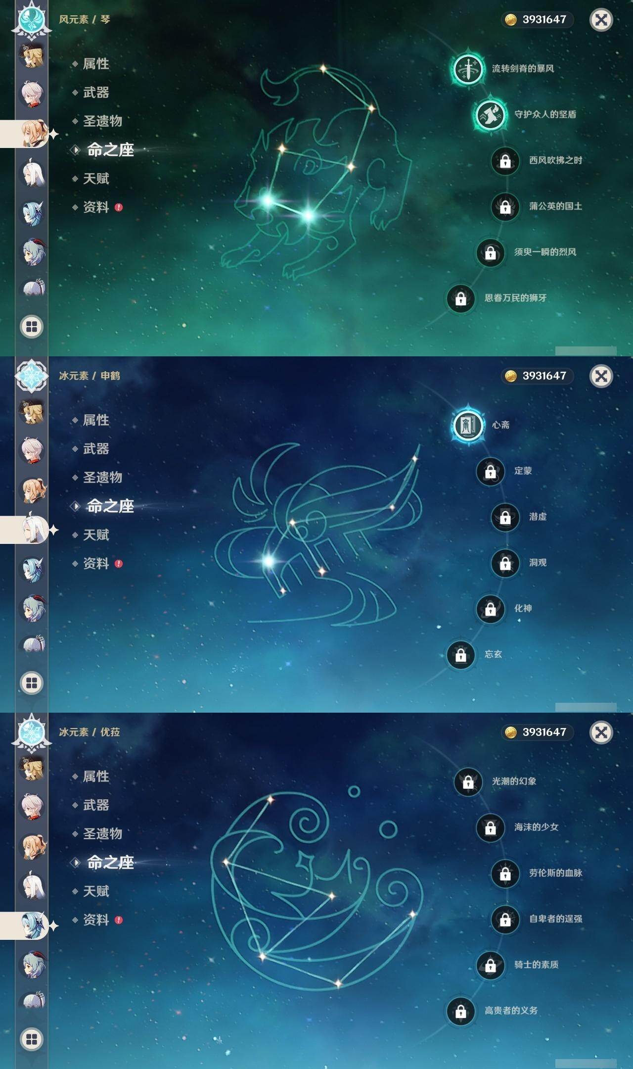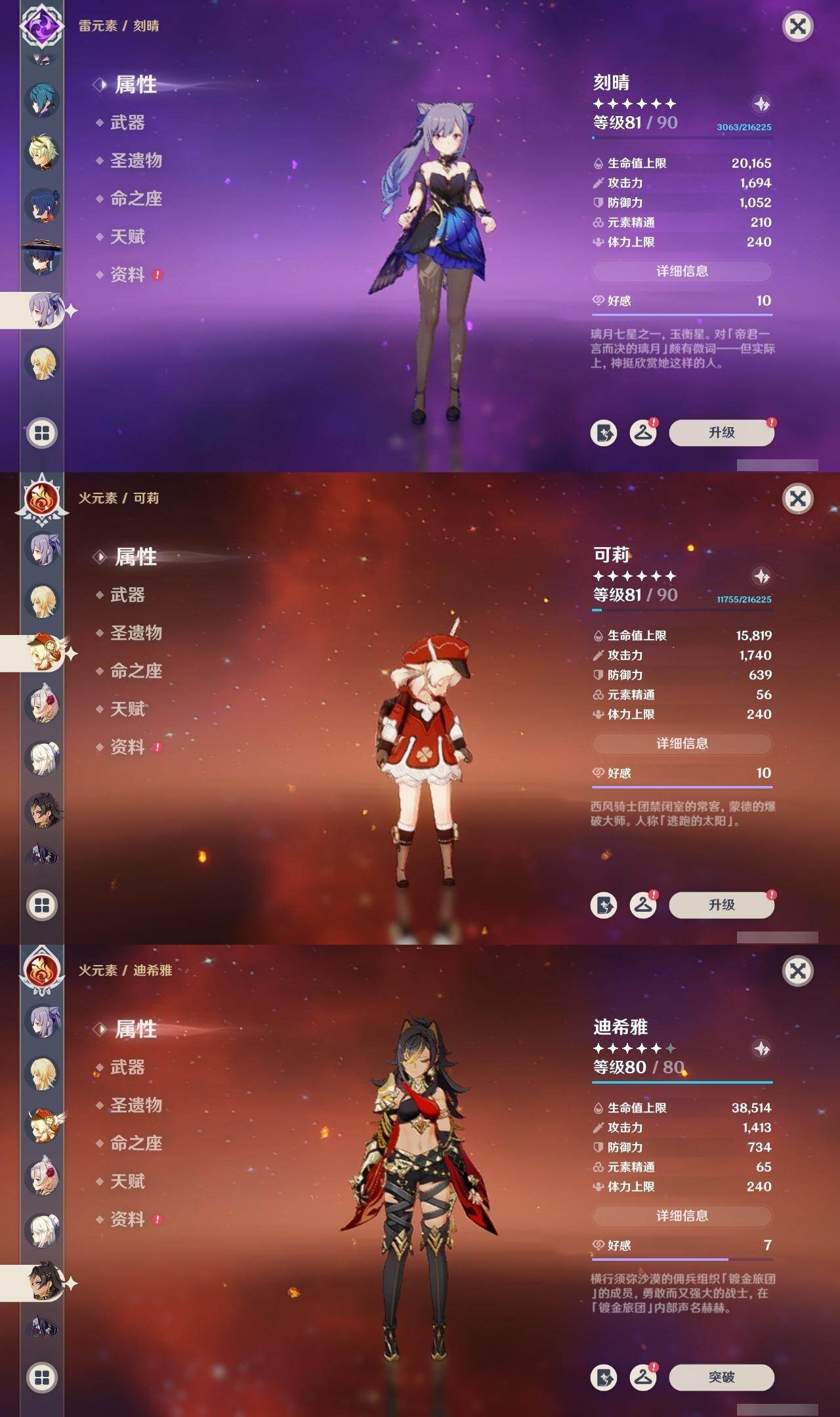 60级/60黄/女主/27个五星角色/21个五星武器 0命克洛琳德0命娜维娅0命芙宁娜0命那维莱特0命迪希雅0命流浪者0命纳西妲2命提纳里2命夜兰0命八重神子1命申鹤0命优菈0命雷电将军0命枫原万叶0命神里绫华0命钟离1命胡桃0命甘雨0命可莉0命达达利亚0命珊瑚宫心海1命刻晴0命七七2命琴3命莫娜0命迪卢克0命玛拉妮精1赦罪精1最初的大魔术精1碧落之珑精1裁叶萃光精1猎人之径精1赤角石溃杵精1冬极白星精1雾切之回光精1苍古自由之誓精1四风原典精1天空之脊精1天空之翼精1阿莫斯之弓精1天空之刃精1风鹰剑精1狼的末路精1天空之傲精1冲浪时光