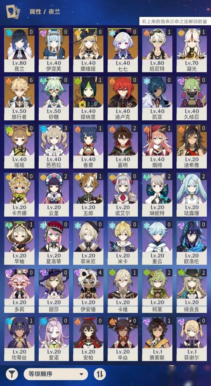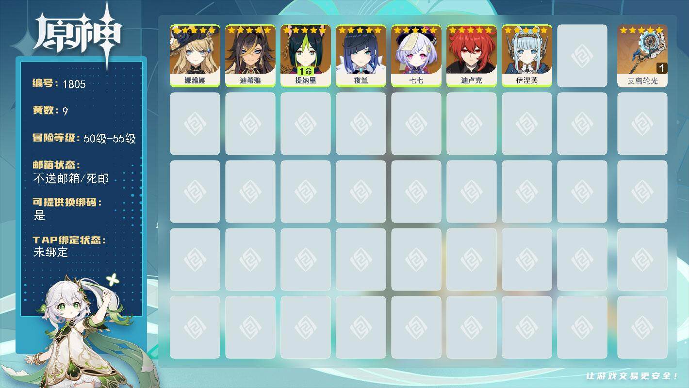 [16536205]55级/9黄/男主/7个五星角色/1个五星武器 0命娜维娅0命迪希雅1命提纳里0命夜兰0命七七0命迪卢克0命伊涅芙精1支离轮光