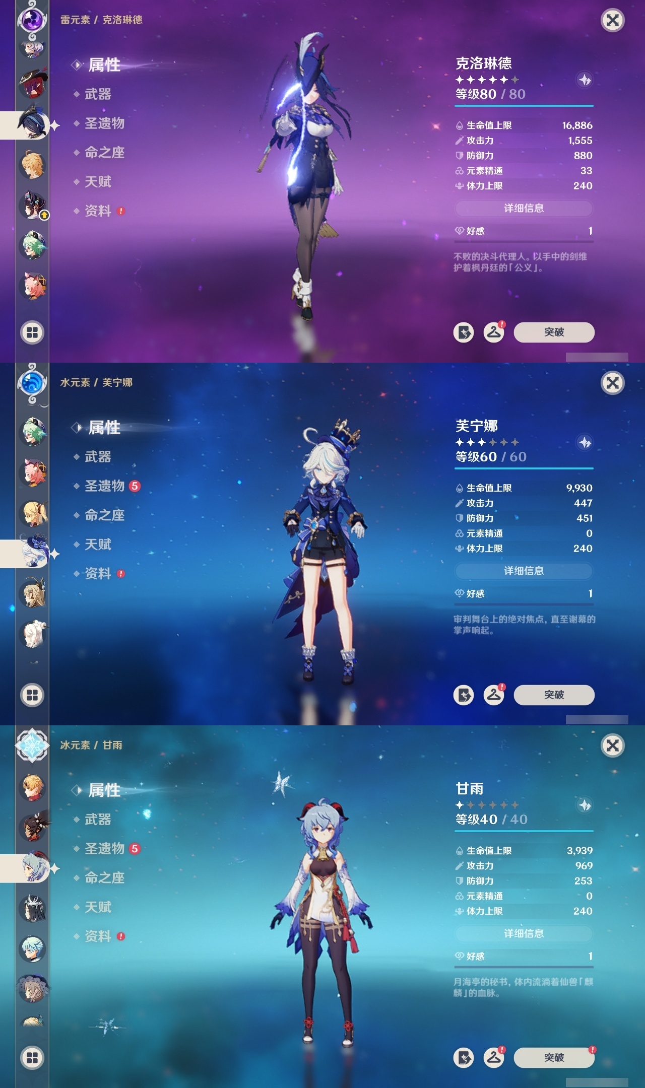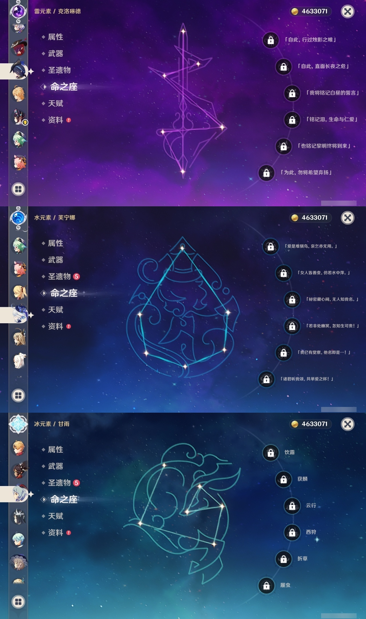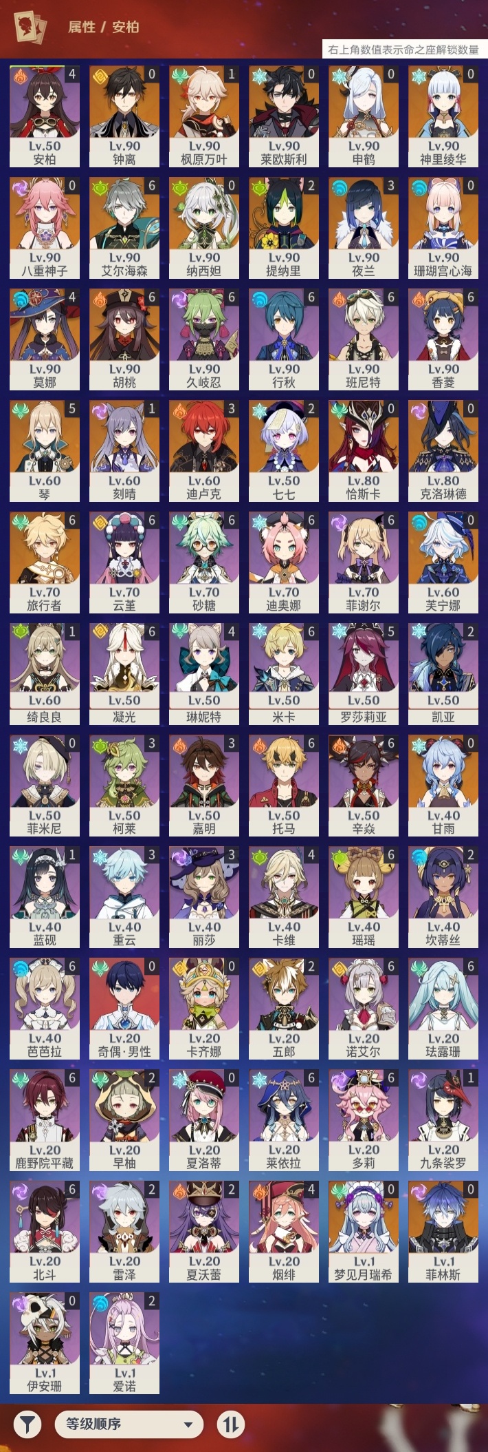 【原神】【lyys11601】冒险等级:59,五星数量:38,五星角色:胡桃 6命艾尔海森 6命琴 5命莫娜 4命迪卢克 3命夜兰 3命七七 2命提纳里 2命枫原万叶 1命刻晴 1命珊瑚宫心海神里绫华恰斯卡钟离梦见月瑞希申鹤八重神子莱欧斯利芙宁娜纳西妲菲林斯甘雨克洛琳德__五星武器:裁叶萃光 3精护摩之杖 2精天空之脊 2精若水 2精最初的大魔术血染荒城阿莫斯之弓苍古自由之誓飞雷之弦振天空之卷天空之刃雾切之回光息灾神乐之真意__四星角色:班尼特 6命行秋 6命香菱 6命久岐忍 6命鹿野院平藏 6命珐露珊 6命凝光 6命迪奥娜 6命砂糖 6命瑶瑶 6命莱依拉 6命米卡 6命多莉 6命芭芭拉 6命云堇 6命托马 6命辛焱 6命诺艾尔 6命菲谢尔 6命北斗 6命罗莎莉亚 5命卡维 4命烟绯 4命琳妮特 4命柯莱 3命重云 3命嘉明 3命坎蒂丝 2命早柚 2命五郎 2命雷泽 2命夏沃蕾 2命爱诺 2命九条裟罗 1命绮良良 1命蓝砚 1命奇偶·男性卡齐娜菲米尼夏洛蒂伊安珊