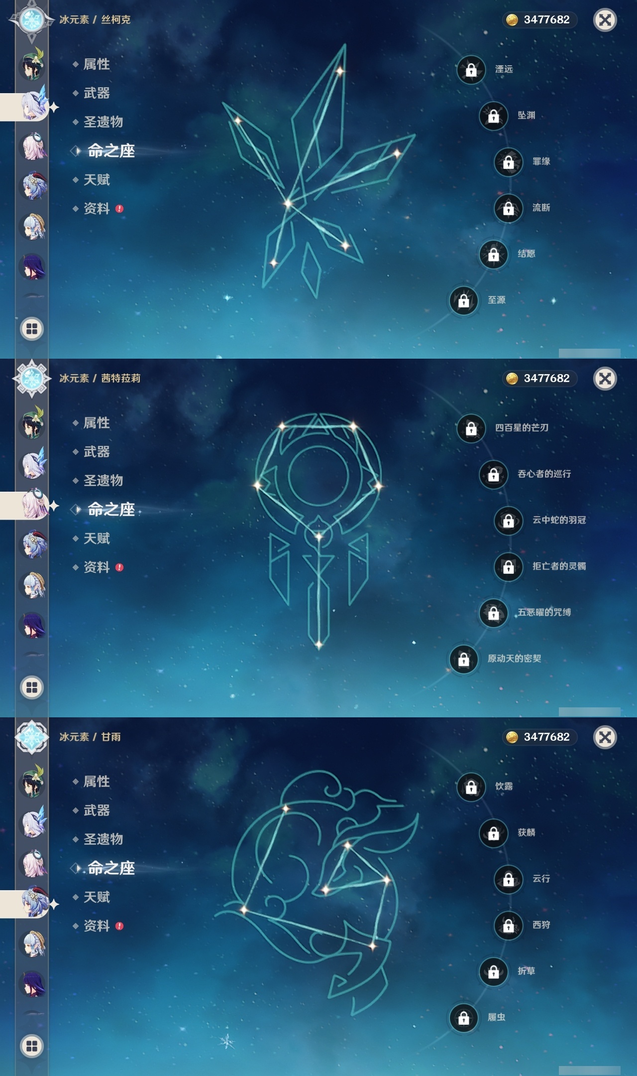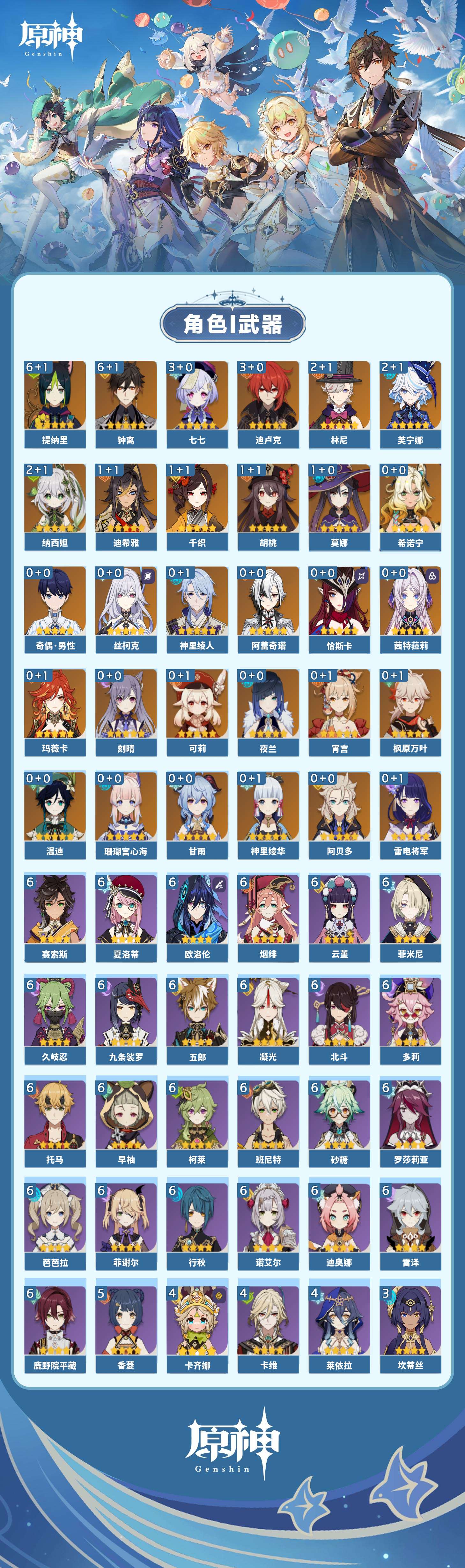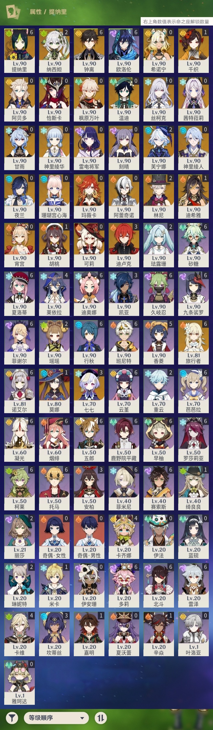 【原神】【lyys11610】冒险等级:60,五星数量:55,五星角色:钟离 6命提纳里 6命迪卢克 3命七七 3命林尼 2命芙宁娜 2命纳西妲 2命迪希雅 1命千织 1命胡桃 1命莫娜 1命珊瑚宫心海希诺宁神里绫华温迪恰斯卡玛薇卡茜特菈莉宵宫神里绫人阿贝多夜兰阿蕾奇诺丝柯克枫原万叶甘雨可莉刻晴雷电将军__五星武器:柔灯挽歌碧落之珑焚曜千阳苇海信标寝正月初晴最初的大魔术静水流涌之辉鹤鸣余音有乐御簾切苍古自由之誓飞雷之弦振护摩之杖四风原典天空之脊天空之卷天空之刃天空之翼雾切之回光薙草之稻光神乐之真意贯虹之槊波乱月白经津猎人之径千夜浮梦__四星角色:班尼特 6命行秋 6命九条裟罗 6命久岐忍 6命鹿野院平藏 6命凝光 6命迪奥娜 6命砂糖 6命多莉 6命柯莱 6命芭芭拉 6命欧洛伦 6命云堇 6命早柚 6命托马 6命五郎 6命烟绯 6命诺艾尔 6命罗莎莉亚 6命雷泽 6命菲谢尔 6命北斗 6命菲米尼 6命夏洛蒂 6命赛索斯 6命香菱 5命卡齐娜 4命莱依拉 4命卡维 4命坎蒂丝 3命珐露珊 2命瑶瑶 2命重云 2命琳妮特 2命绮良良 1命米卡 1命辛焱 1命嘉明 1命奇偶·女性奇偶·男性蓝砚夏沃蕾伊法伊安珊