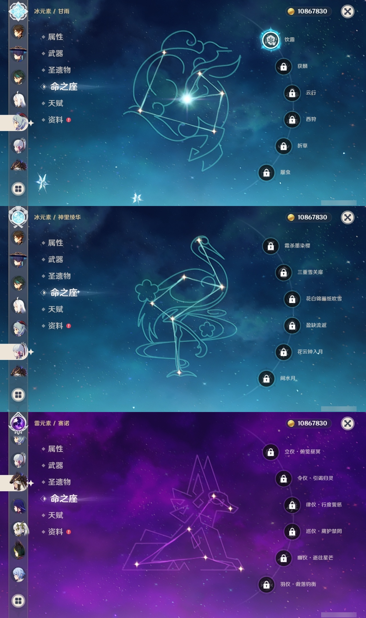 【原神】【lyys11613】冒险等级:60,五星数量:42,五星角色:魈 6命神里绫人 6命迪卢克 4命莫娜 4命琴 3命达达利亚 2命钟离 2命甘雨 1命刻晴 1命宵宫 1命申鹤 1命提纳里 1命纳西妲 1命珊瑚宫心海希诺宁神里绫华温迪玛薇卡梦见月瑞希赛诺流浪者枫原万叶可莉雷电将军__五星武器:波乱月白经津 3精苍古自由之誓 2精风鹰剑 2精和璞鸢 2精终末嗟叹之诗 2精裁叶萃光图莱杜拉的回忆阿莫斯之弓飞雷之弦振狼的末路四风原典天空之脊天空之刃雾切之回光薙草之稻光息灾贯虹之槊圣显之钥__四星角色:班尼特 6命行秋 6命九条裟罗 6命香菱 6命久岐忍 6命珐露珊 6命凝光 6命迪奥娜 6命砂糖 6命莱依拉 6命多莉 6命柯莱 6命芭芭拉 6命云堇 6命早柚 6命托马 6命烟绯 6命辛焱 6命诺艾尔 6命罗莎莉亚 6命雷泽 6命菲谢尔 6命重云 5命鹿野院平藏 4命绮良良 4命卡齐娜 3命米卡 3命坎蒂丝 3命五郎 3命北斗 2命赛索斯 2命瑶瑶 1命菲米尼 1命嘉明 1命卡维琳妮特