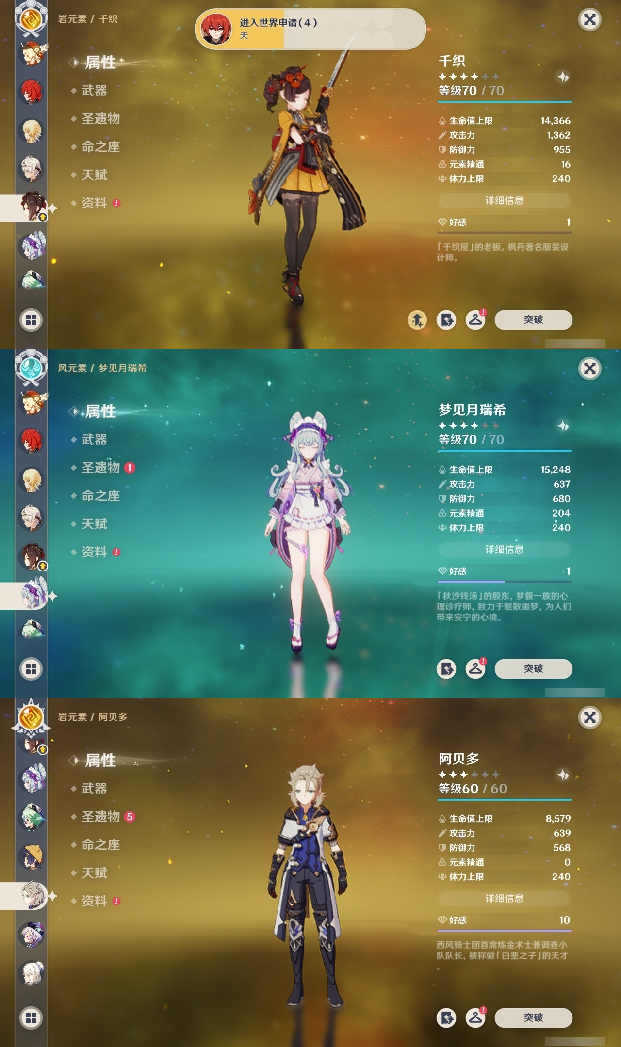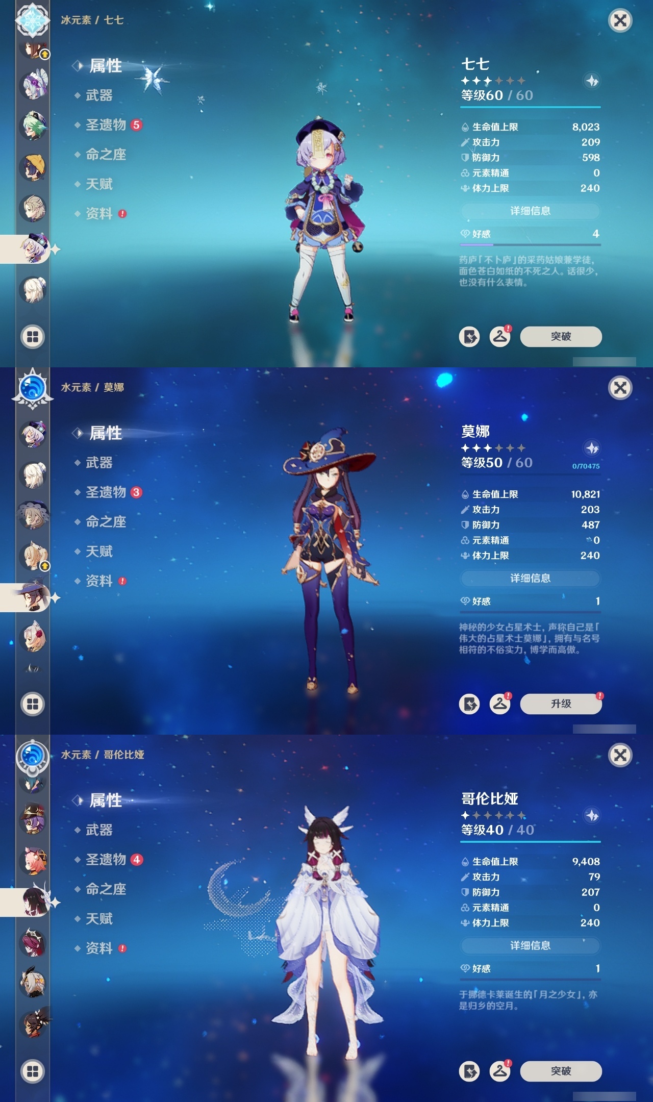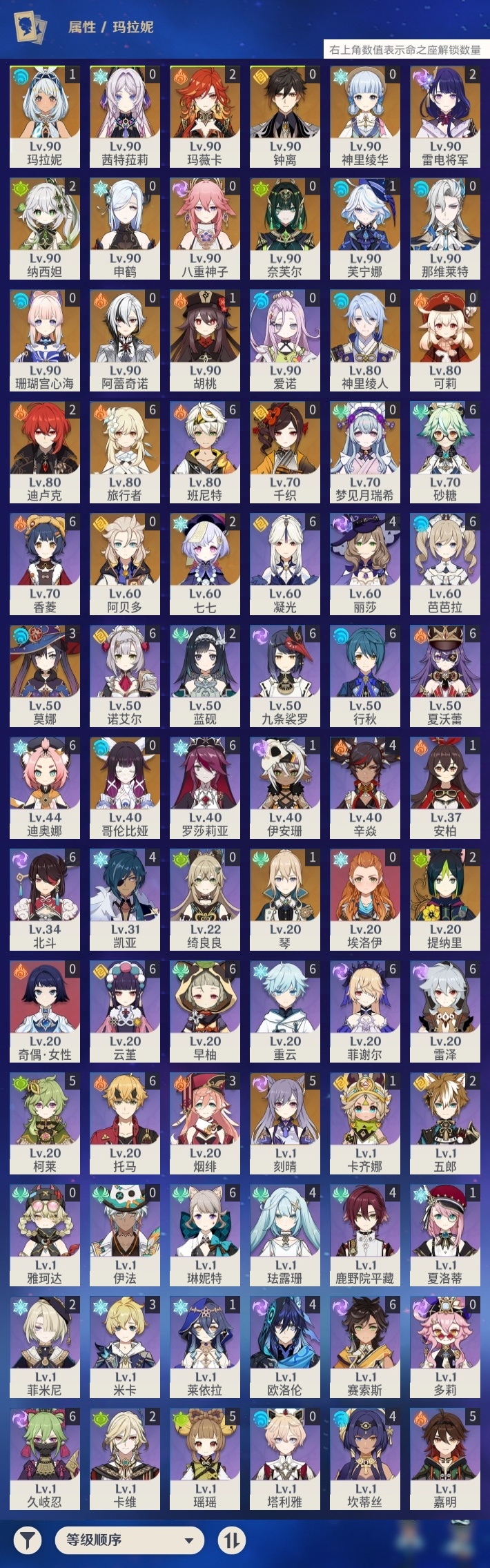 【原神】【lyys11614】冒险等级:60,五星数量:48,五星角色:刻晴 5命莫娜 3命玛薇卡 2命迪卢克 2命雷电将军 2命七七 2命提纳里 2命纳西妲 2命玛拉妮 1命芙宁娜 1命胡桃 1命琴 1命珊瑚宫心海神里绫华茜特菈莉钟离梦见月瑞希申鹤八重神子神里绫人阿贝多那维莱特千织阿蕾奇诺奈芙尔哥伦比娅可莉__五星武器:护摩之杖 2精四风原典 2精无工之剑 2精冲浪时光祭星者之望焚曜千阳静水流涌之辉赤月之形真语秘匣阿莫斯之弓苍古自由之誓狼的末路天空之脊天空之卷雾切之回光薙草之稻光神乐之真意贯虹之槊千夜浮梦__四星角色:班尼特 6命行秋 6命九条裟罗 6命香菱 6命久岐忍 6命凝光 6命迪奥娜 6命砂糖 6命芭芭拉 6命云堇 6命早柚 6命托马 6命重云 6命诺艾尔 6命罗莎莉亚 6命雷泽 6命菲谢尔 6命北斗 6命琳妮特 6命夏沃蕾 6命赛索斯 6命瑶瑶 5命柯莱 5命嘉明 5命鹿野院平藏 4命珐露珊 4命坎蒂丝 4命欧洛伦 4命辛焱 4命米卡 3命烟绯 3命卡维 2命蓝砚 2命五郎 2命菲米尼 2命卡齐娜 1命莱依拉 1命夏洛蒂 1命伊安珊 1命埃洛伊奇偶·女性绮良良多莉伊法塔利雅爱诺