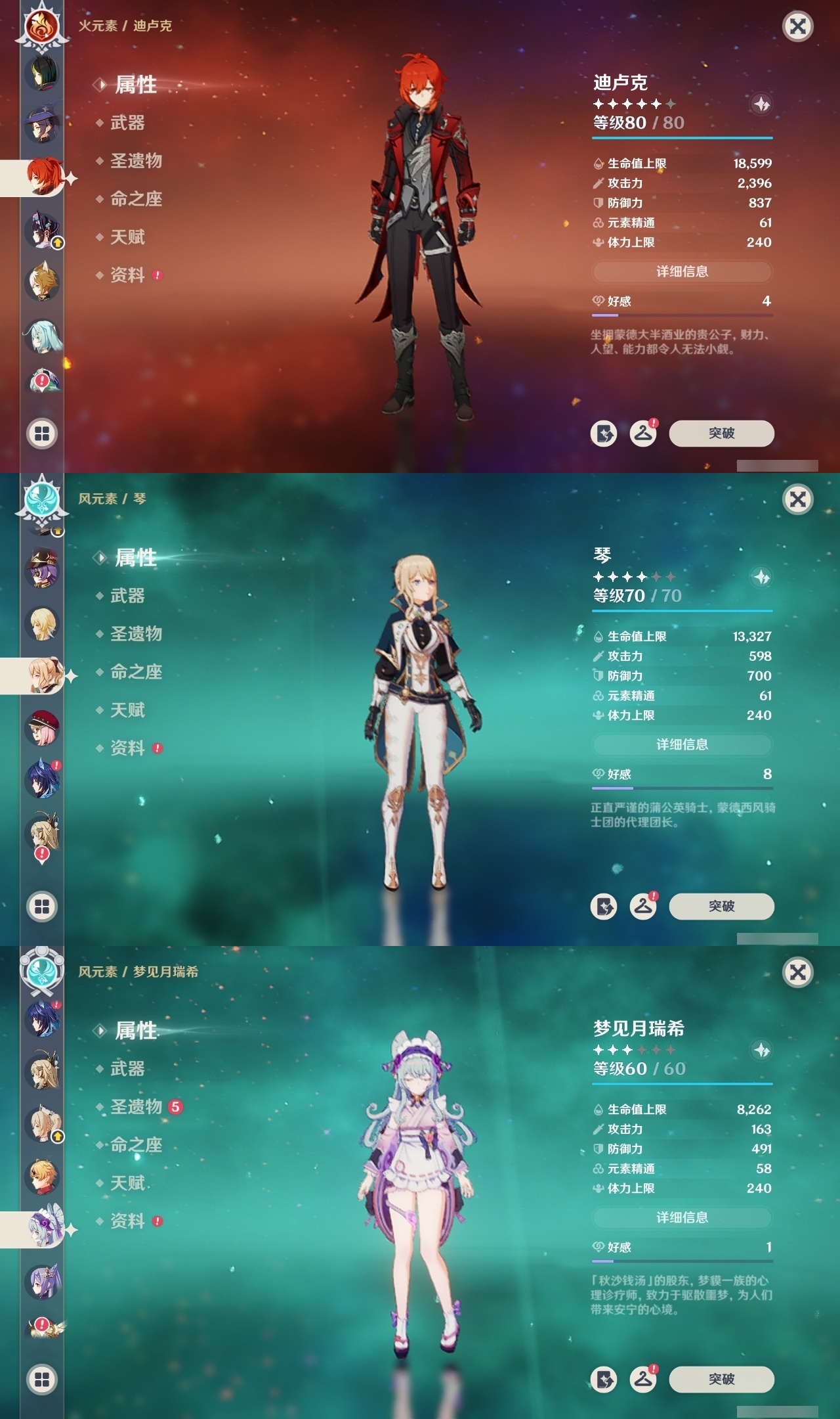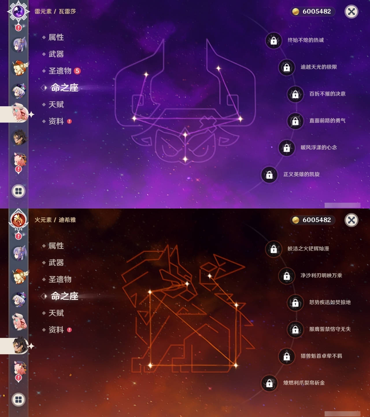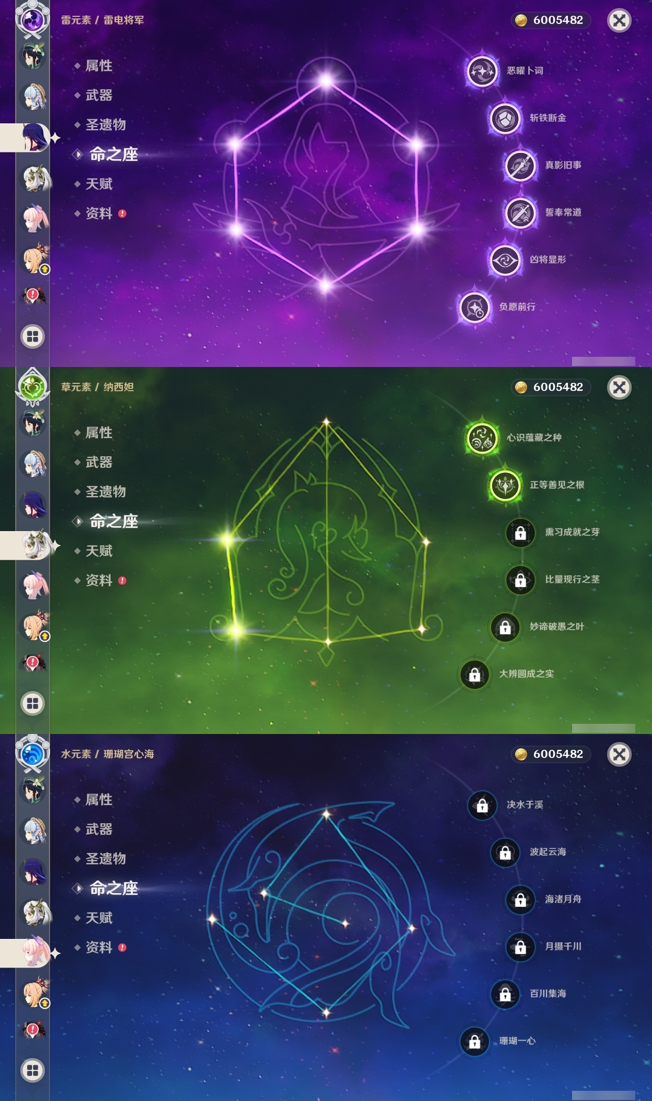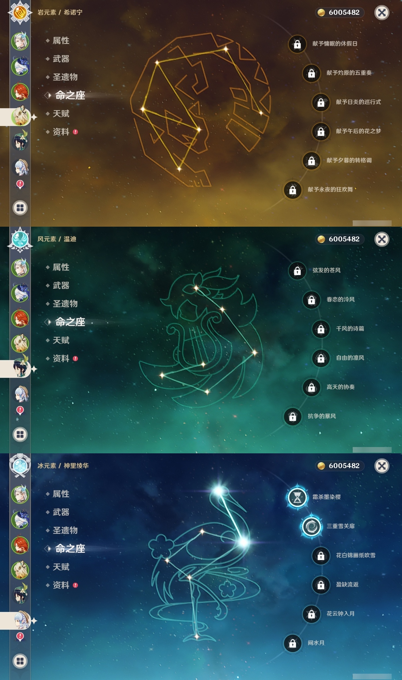 【原神】满命,冒险等级:60,五星数量:59,五星角色:迪卢克 6命刻晴 6命雷电将军 6命七七 6命莫娜 4命那维莱特 3命琴 3命八重神子 3命芙宁娜 2命神里绫华 2命神里绫人 2命夜兰 2命纳西妲 2命娜维娅 1命胡桃 1命荒泷一斗 1命申鹤 1命提纳里 1命玛拉妮基尼奇珊瑚宫心海希诺宁温迪玛薇卡宵宫迪希雅钟离梦见月瑞希瓦雷莎闲云阿蕾奇诺枫原万叶甘雨魈可莉__五星武器:天空之翼 3精风鹰剑 2精万世流涌大典裁断阿莫斯之弓不灭月华苍古自由之誓飞雷之弦振和璞鸢护摩之杖狼的末路天空之傲天空之脊天空之刃无工之剑雾切之回光薙草之稻光终末嗟叹之诗斫峰之刃赤角石溃杵神乐之真意波乱月白经津若水千夜浮梦__四星角色:卡齐娜 6命班尼特 6命行秋 6命九条裟罗 6命香菱 6命鹿野院平藏 6命珐露珊 6命凝光 6命迪奥娜 6命砂糖 6命瑶瑶 6命莱依拉 6命坎蒂丝 6命柯莱 6命卡维 6命芭芭拉 6命云堇 6命早柚 6命托马 6命五郎 6命烟绯 6命辛焱 6命诺艾尔 6命罗莎莉亚 6命雷泽 6命菲谢尔 6命北斗 6命夏沃蕾 6命嘉明 6命重云 5命琳妮特 5命多莉 4命久岐忍 3命绮良良 3命米卡 3命菲米尼 3命欧洛伦 2命伊安珊 1命夏洛蒂伊法塔利雅爱诺赛索斯