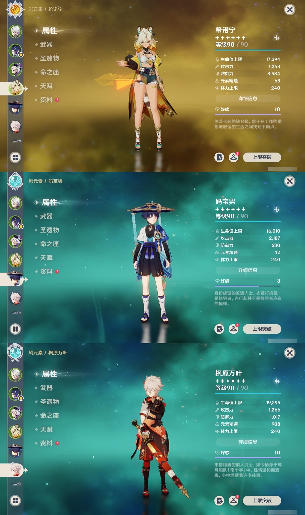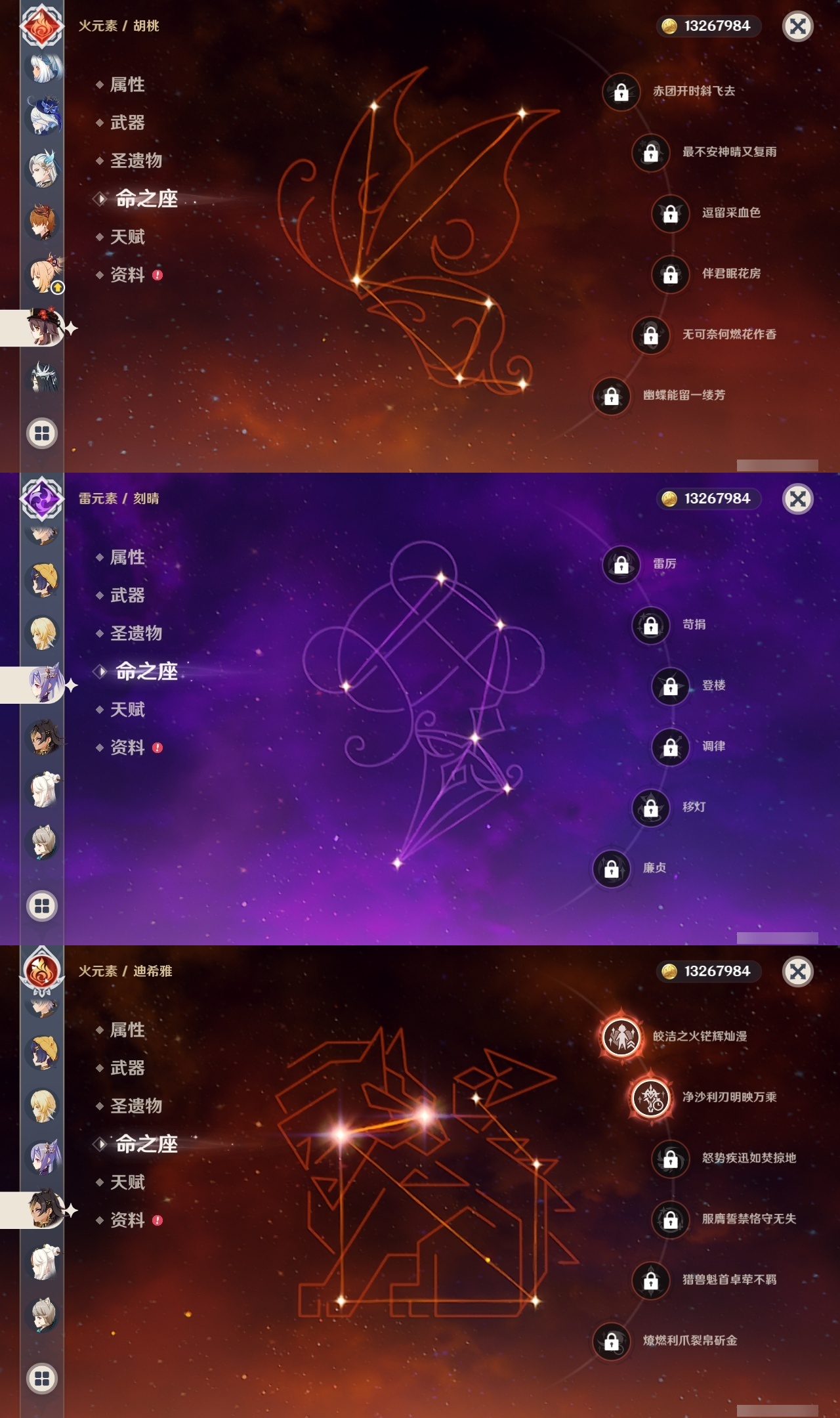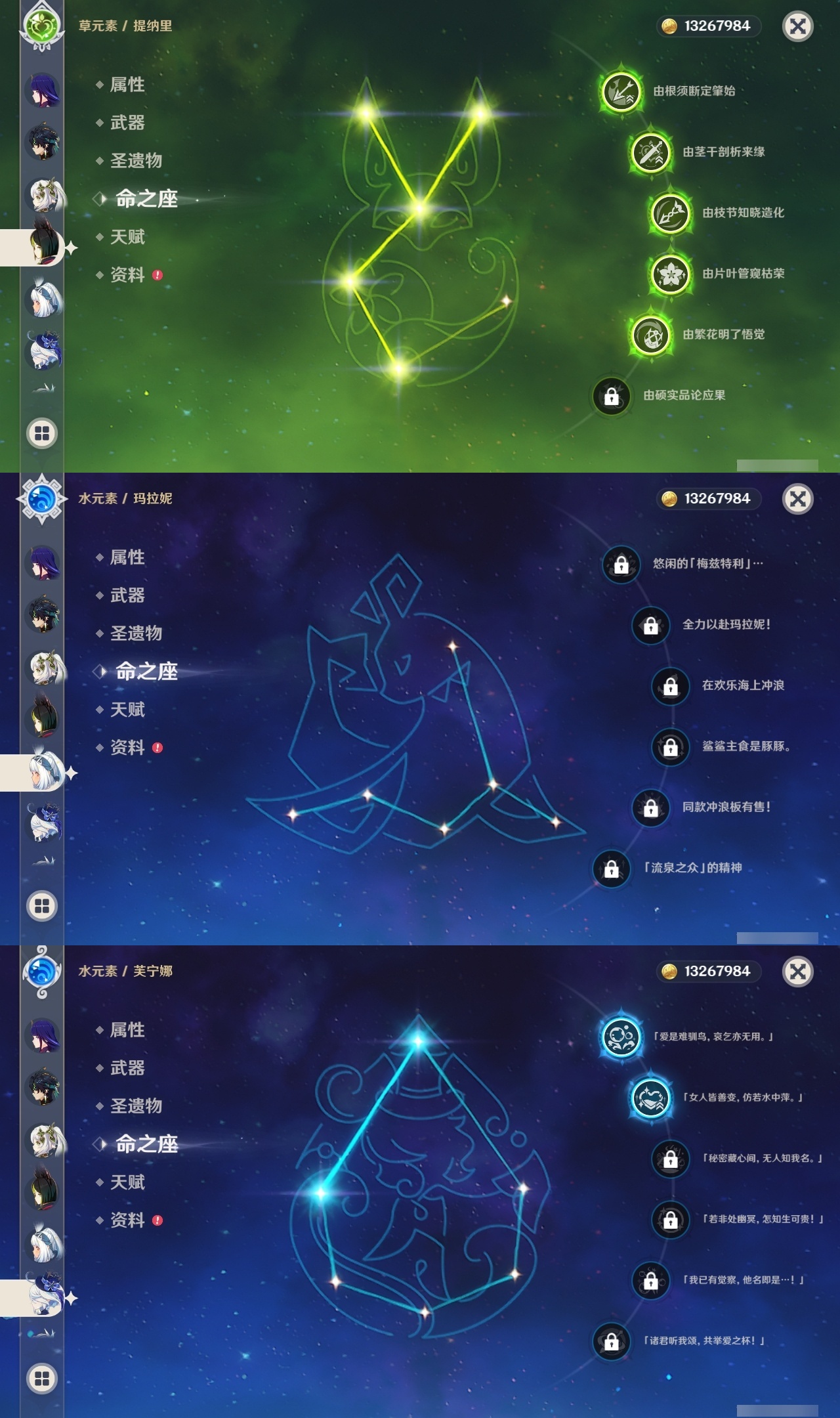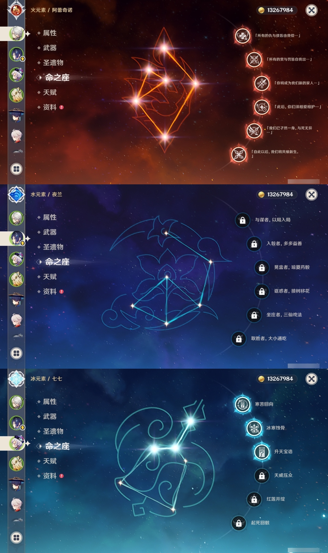 【原神】【lyys11624】冒险等级:60,五星数量:36,五星角色:阿蕾奇诺 6命提纳里 5命七七 3命迪希雅 2命芙宁娜 2命迪卢克 2命莫娜 2命基尼奇 1命那维莱特 1命枫原万叶 1命琴 1命玛拉妮希诺宁神里绫华宵宫达达利亚夜兰赛诺纳西妲流浪者胡桃克洛琳德刻晴雷电将军__五星武器:天空之翼 2精冲浪时光金流监督静水流涌之辉赤月之形阿莫斯之弓风鹰剑天空之傲天空之刃赤沙之杖赦罪__四星角色:班尼特 6命香菱 6命鹿野院平藏 6命珐露珊 6命迪奥娜 6命绮良良 6命瑶瑶 6命莱依拉 6命柯莱 6命芭芭拉 6命云堇 6命蓝砚 6命托马 6命烟绯 6命重云 6命辛焱 6命罗莎莉亚 6命雷泽 6命菲谢尔 6命北斗 6命夏洛蒂 6命赛索斯 6命卡齐娜 5命行秋 5命砂糖 5命坎蒂丝 5命早柚 5命伊安珊 5命久岐忍 4命凝光 4命九条裟罗 3命多莉 3命夏沃蕾 3命米卡 2命欧洛伦 2命诺艾尔 2命菲米尼 2命卡维 1命五郎 1命琳妮特 1命奇偶·女性爱诺