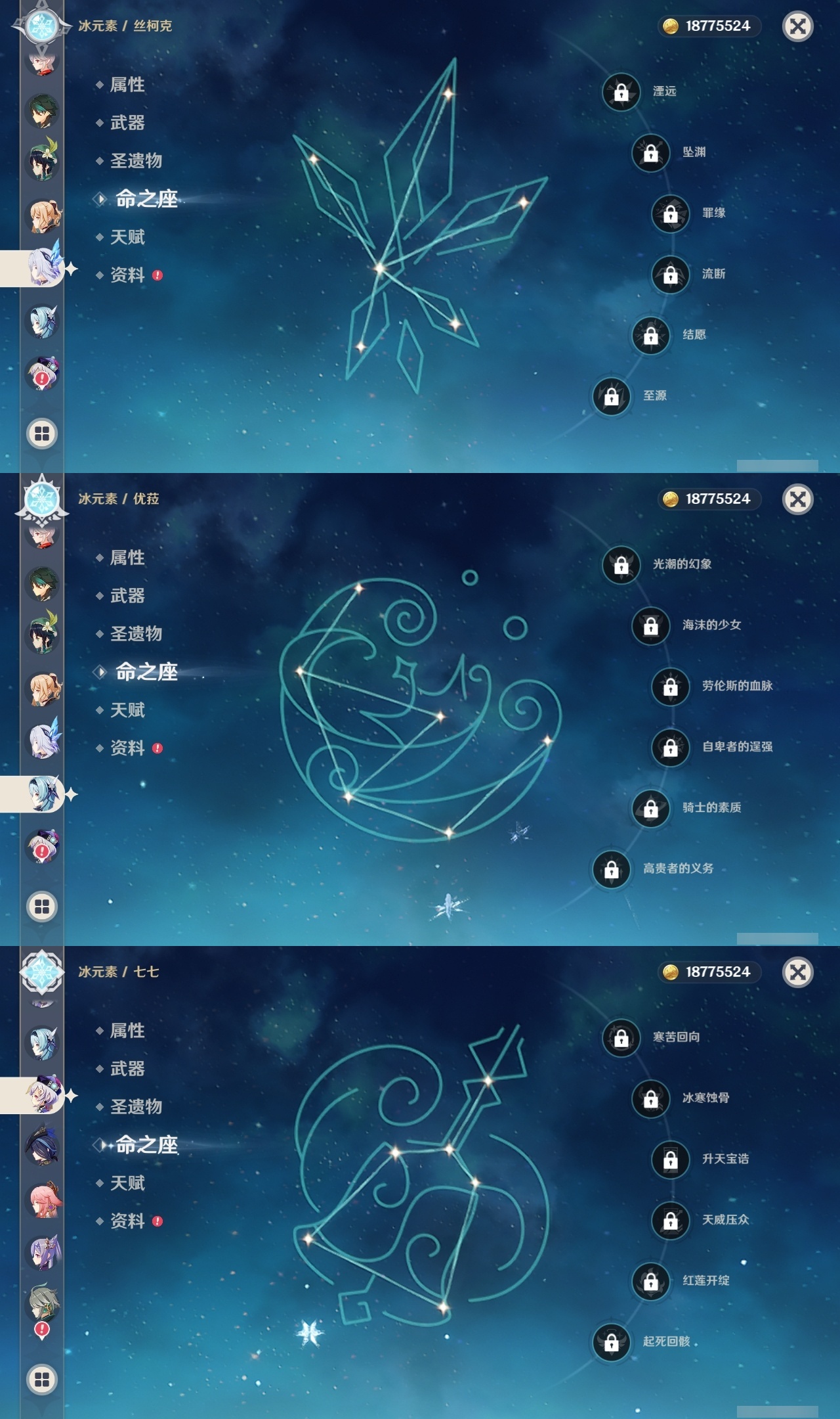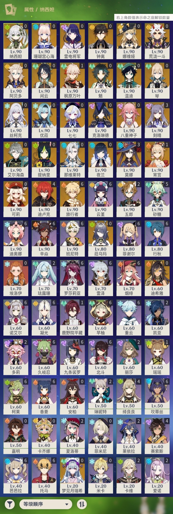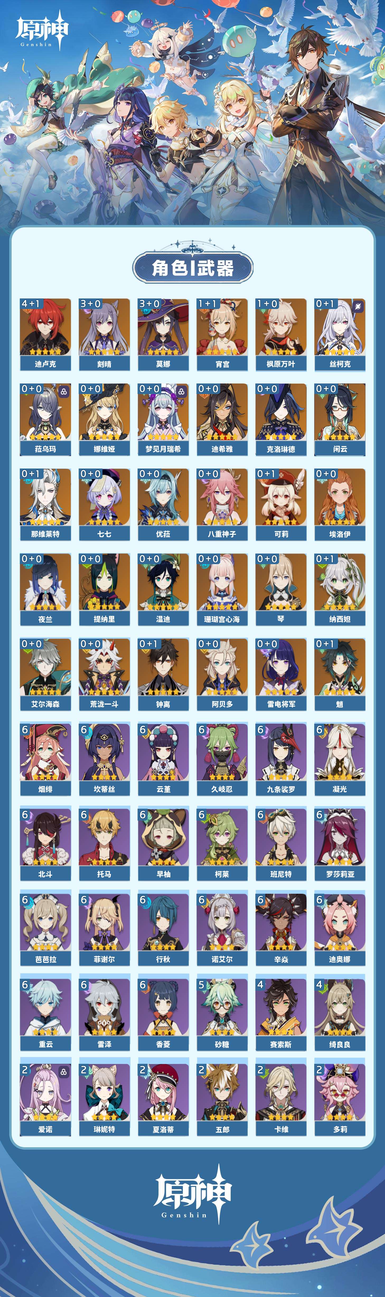 【原神】【lyys11631】冒险等级:60,五星数量:42,五星角色:迪卢克 4命刻晴 3命莫娜 3命枫原万叶 1命宵宫 1命七七琴珊瑚宫心海温迪优菈迪希雅钟离荒泷一斗梦见月瑞希八重神子阿贝多那维莱特夜兰娜维娅提纳里闲云丝柯克纳西妲菈乌玛艾尔海森魈克洛琳德可莉雷电将军__五星武器:风鹰剑 2精息灾 2精万世流涌大典苍耀飞雷之弦振和璞鸢狼的末路磐岩结绿四风原典贯虹之槊圣显之钥千夜浮梦__四星角色:班尼特 6命行秋 6命九条裟罗 6命香菱 6命久岐忍 6命凝光 6命迪奥娜 6命坎蒂丝 6命柯莱 6命芭芭拉 6命云堇 6命早柚 6命托马 6命烟绯 6命重云 6命辛焱 6命诺艾尔 6命罗莎莉亚 6命雷泽 6命菲谢尔 6命北斗 6命砂糖 5命绮良良 4命赛索斯 4命珐露珊 2命莱依拉 2命多莉 2命卡维 2命五郎 2命琳妮特 2命夏洛蒂 2命爱诺 2命鹿野院平藏 1命瑶瑶 1命埃洛伊卡齐娜米卡菲米尼嘉明