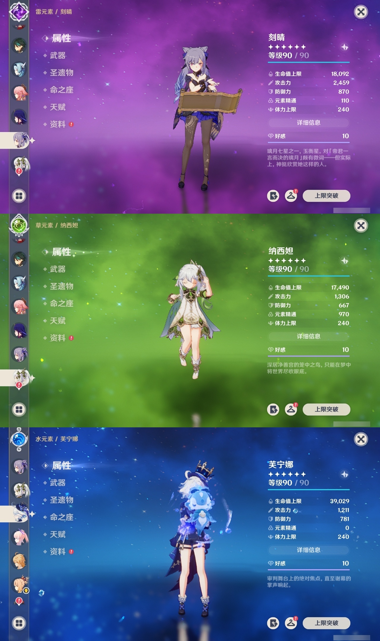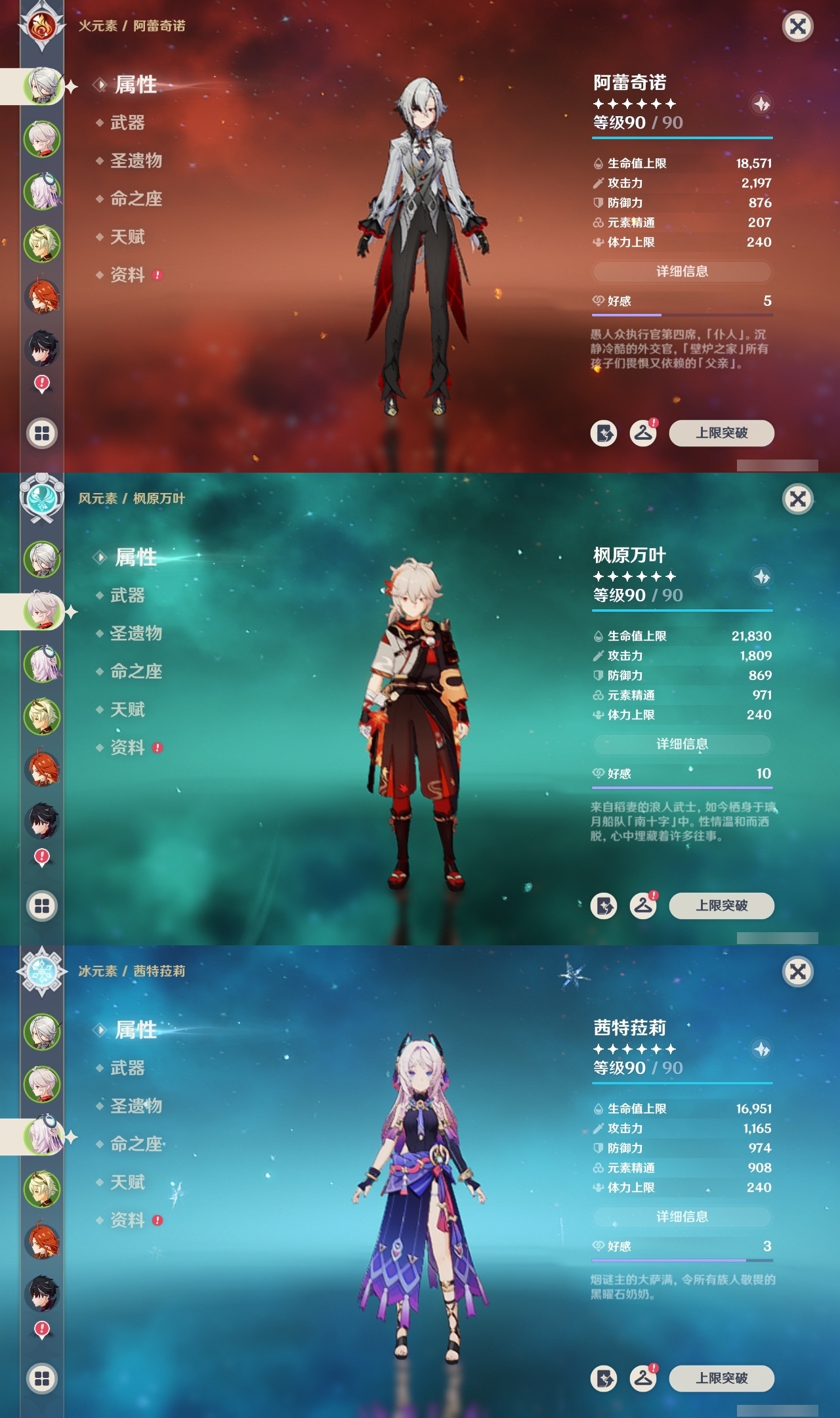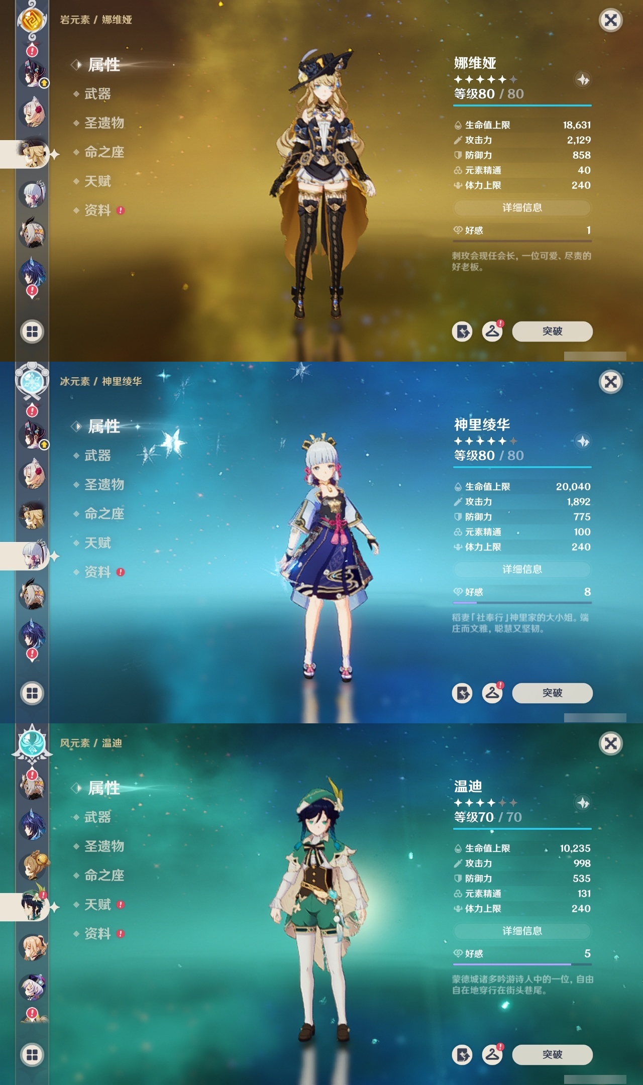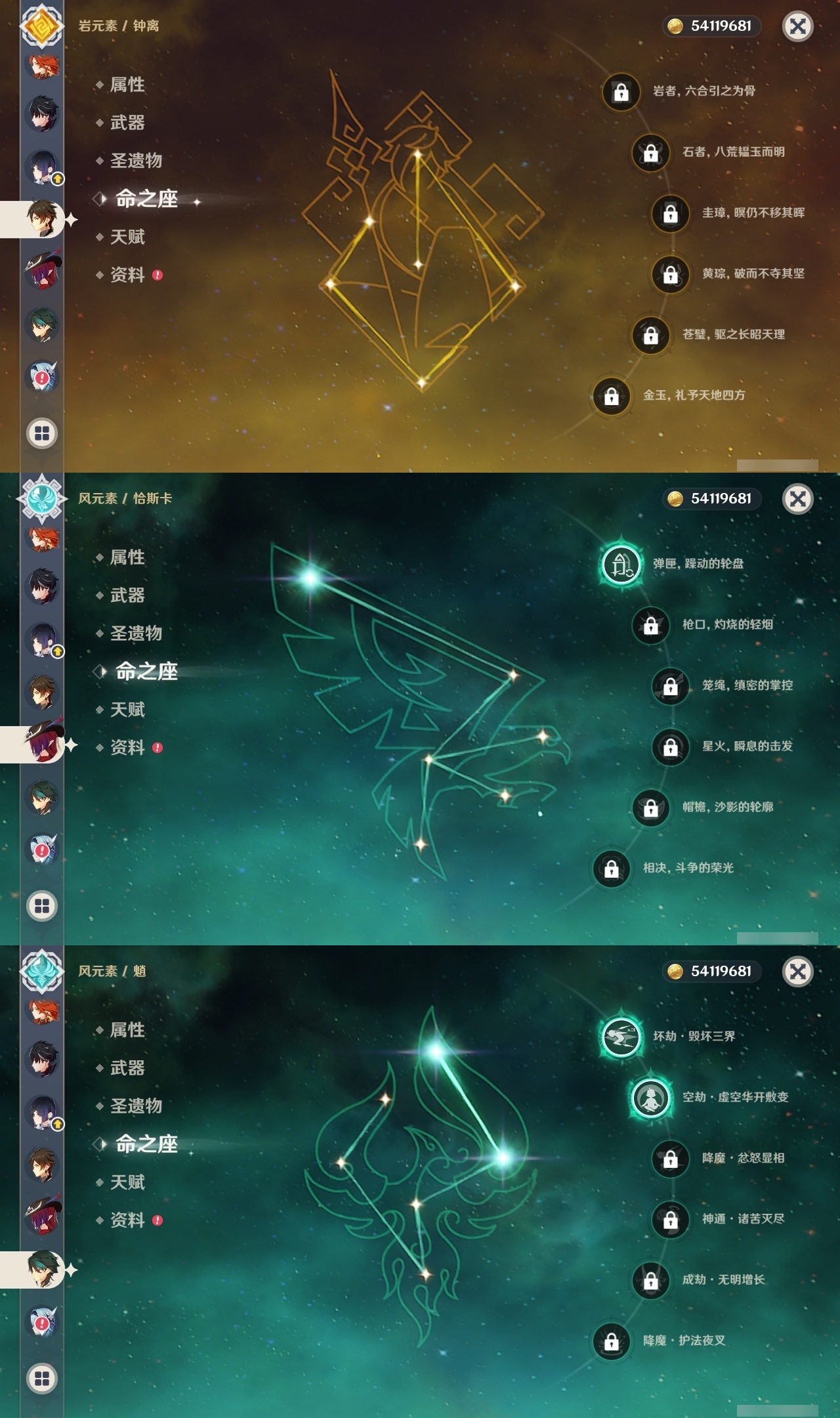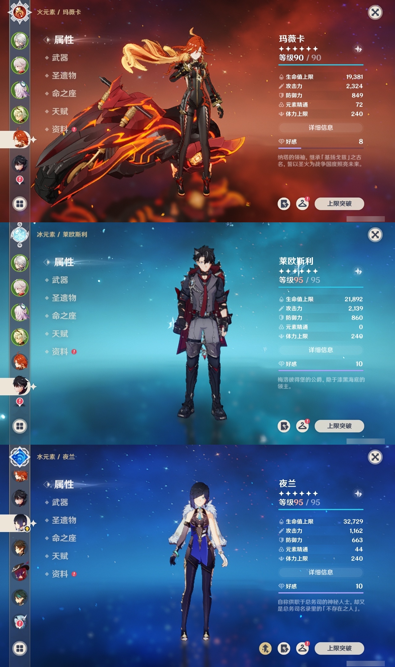 【原神】满命,冒险等级:60,五星数量:53,五星角色:莱欧斯利 6命琴 6命夜兰 6命七七 5命刻晴 4命迪希雅 3命雷电将军 3命玛薇卡 2命魈 2命纳西妲 2命恰斯卡 1命阿蕾奇诺 1命枫原万叶 1命胡桃 1命温迪 1命提纳里 1命珊瑚宫心海神里绫华茜特菈莉宵宫优菈钟离梦见月瑞希八重神子芙宁娜娜维娅迪卢克__五星武器:无工之剑 2精星鹫赤羽焚曜千阳金流监督静水流涌之辉阿莫斯之弓不灭月华苍古自由之誓飞雷之弦振风鹰剑护摩之杖天空之傲天空之卷天空之刃天空之翼雾切之回光薙草之稻光终末嗟叹之诗息灾贯虹之槊若水赤沙之杖千夜浮梦__四星角色:班尼特 6命行秋 6命九条裟罗 6命香菱 6命凝光 6命迪奥娜 6命砂糖 6命瑶瑶 6命坎蒂丝 6命多莉 6命柯莱 6命芭芭拉 6命欧洛伦 6命云堇 6命早柚 6命托马 6命烟绯 6命重云 6命辛焱 6命诺艾尔 6命罗莎莉亚 6命菲谢尔 6命北斗 6命久岐忍 5命鹿野院平藏 5命雷泽 5命莱依拉 4命珐露珊 3命五郎 3命嘉明 3命米卡 2命蓝砚 2命琳妮特 2命夏洛蒂 2命伊法 2命伊安珊 2命卡齐娜 1命绮良良 1命菲米尼 1命爱诺 1命赛索斯 1命埃洛伊奇偶·女性奇偶·男性夏沃蕾塔利雅