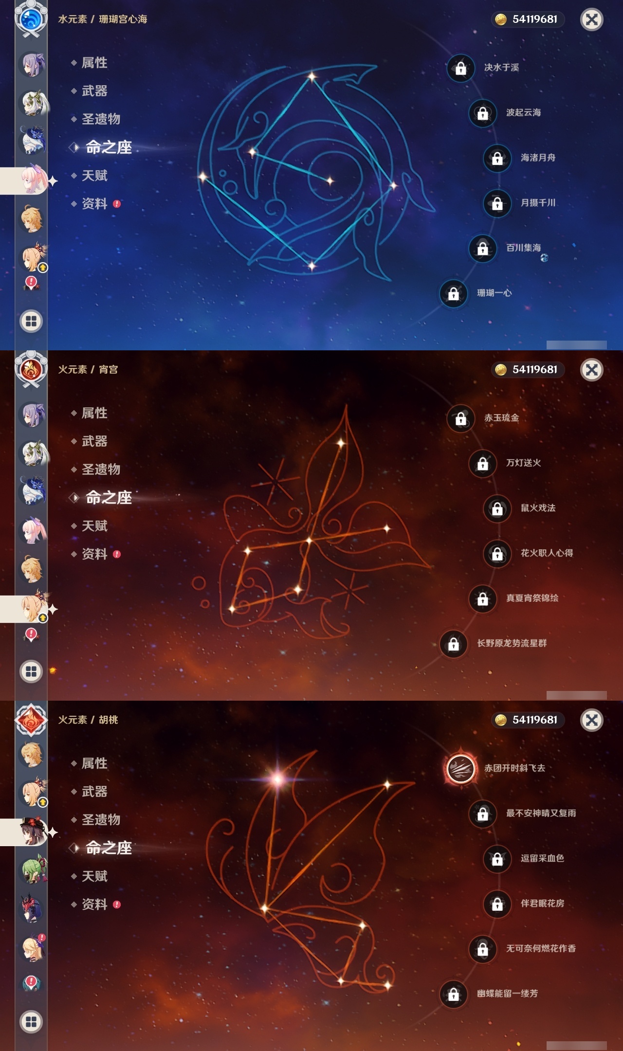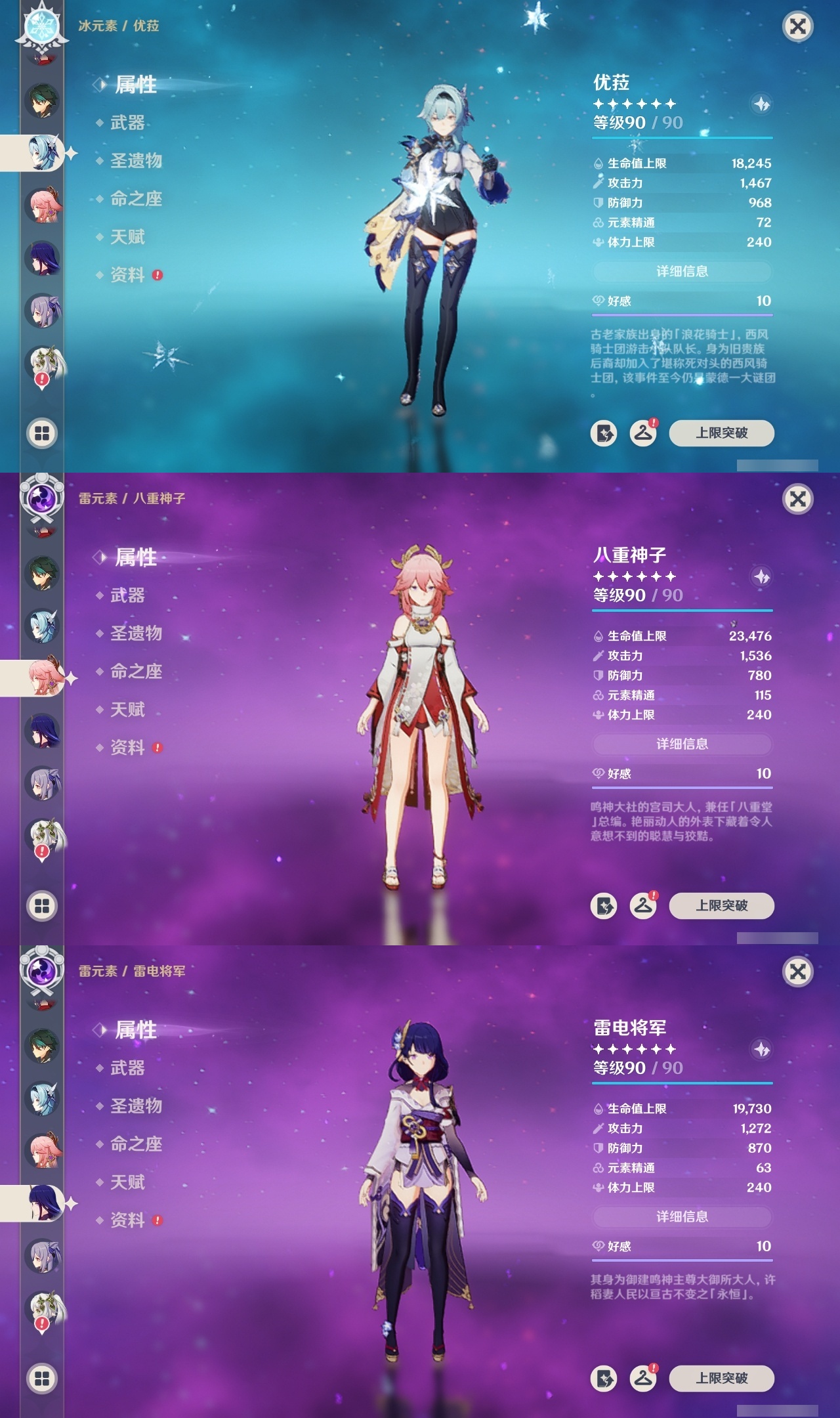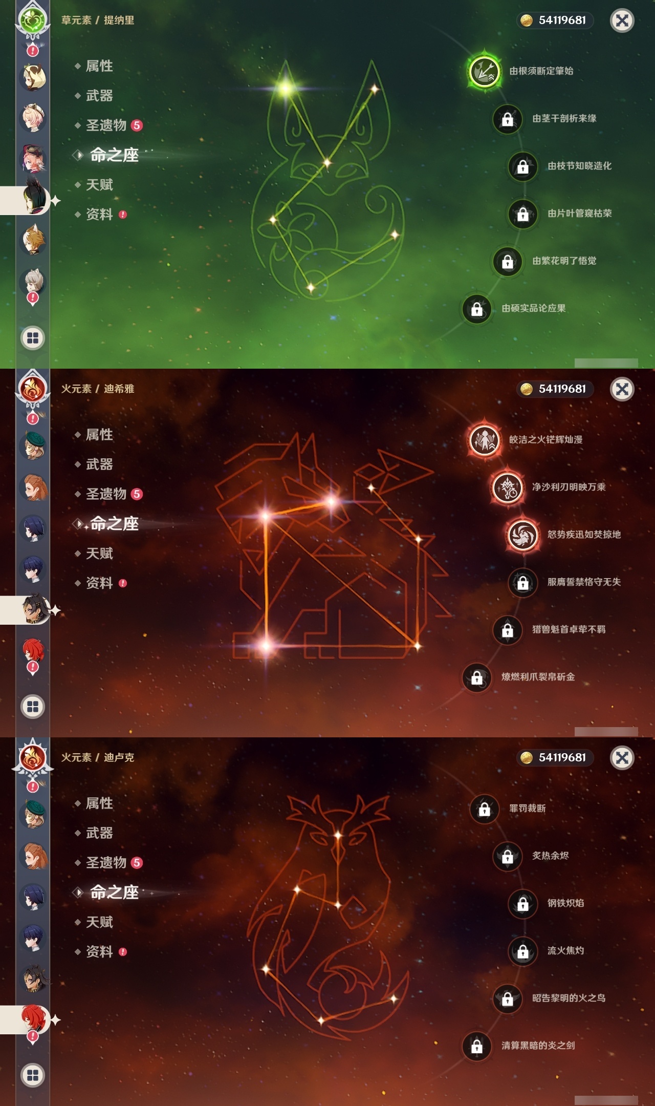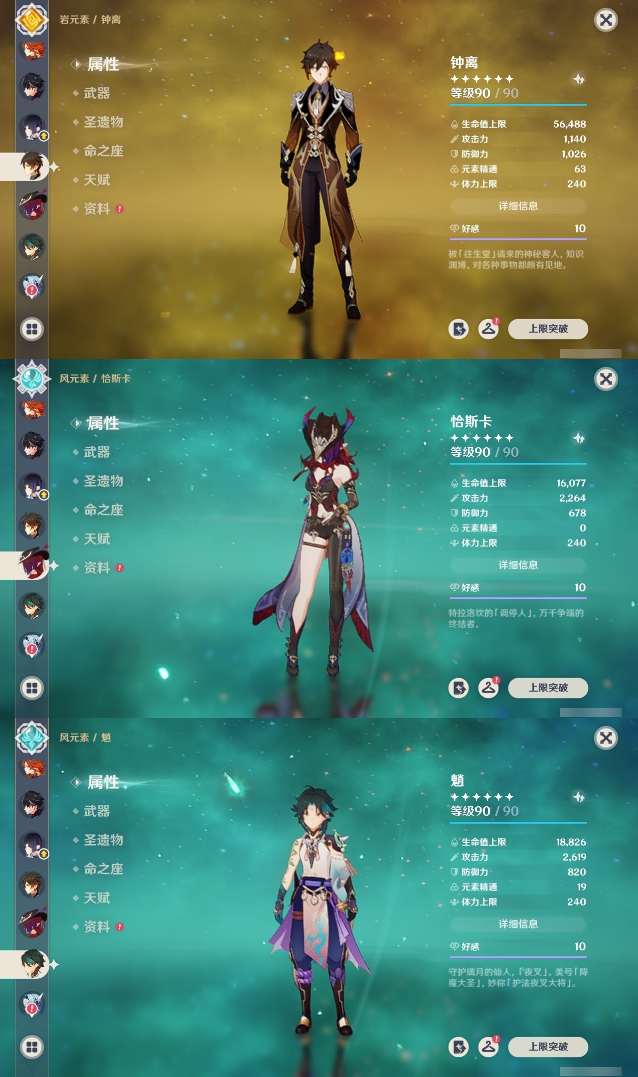 【原神】满命,冒险等级:60,五星数量:53,五星角色:莱欧斯利 6命琴 6命夜兰 6命七七 5命刻晴 4命迪希雅 3命雷电将军 3命玛薇卡 2命魈 2命纳西妲 2命恰斯卡 1命阿蕾奇诺 1命枫原万叶 1命胡桃 1命温迪 1命提纳里 1命珊瑚宫心海神里绫华茜特菈莉宵宫优菈钟离梦见月瑞希八重神子芙宁娜娜维娅迪卢克__五星武器:无工之剑 2精星鹫赤羽焚曜千阳金流监督静水流涌之辉阿莫斯之弓不灭月华苍古自由之誓飞雷之弦振风鹰剑护摩之杖天空之傲天空之卷天空之刃天空之翼雾切之回光薙草之稻光终末嗟叹之诗息灾贯虹之槊若水赤沙之杖千夜浮梦__四星角色:班尼特 6命行秋 6命九条裟罗 6命香菱 6命凝光 6命迪奥娜 6命砂糖 6命瑶瑶 6命坎蒂丝 6命多莉 6命柯莱 6命芭芭拉 6命欧洛伦 6命云堇 6命早柚 6命托马 6命烟绯 6命重云 6命辛焱 6命诺艾尔 6命罗莎莉亚 6命菲谢尔 6命北斗 6命久岐忍 5命鹿野院平藏 5命雷泽 5命莱依拉 4命珐露珊 3命五郎 3命嘉明 3命米卡 2命蓝砚 2命琳妮特 2命夏洛蒂 2命伊法 2命伊安珊 2命卡齐娜 1命绮良良 1命菲米尼 1命爱诺 1命赛索斯 1命埃洛伊奇偶·女性奇偶·男性夏沃蕾塔利雅