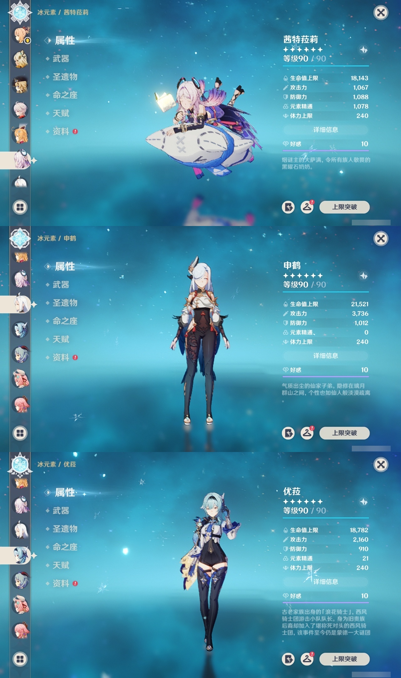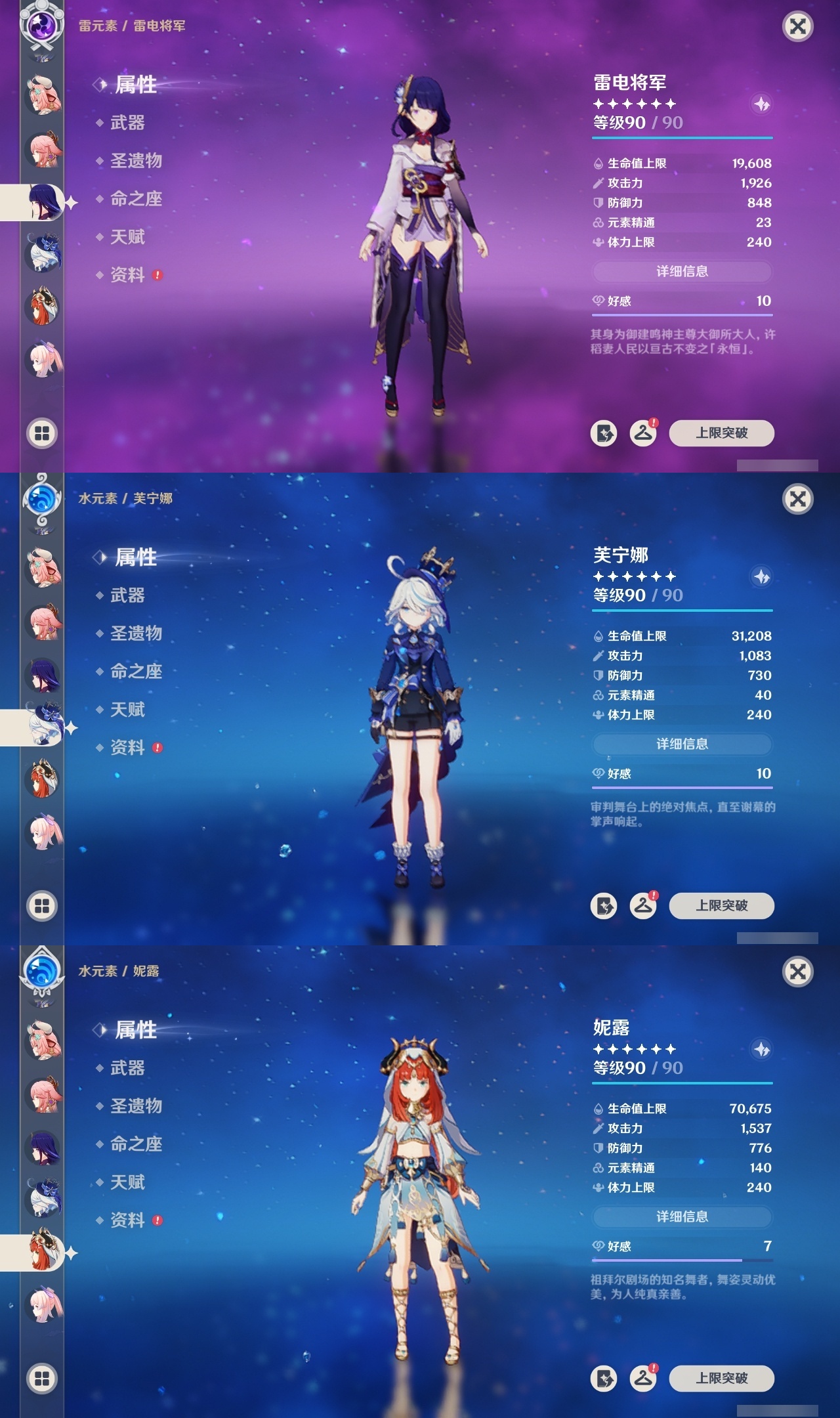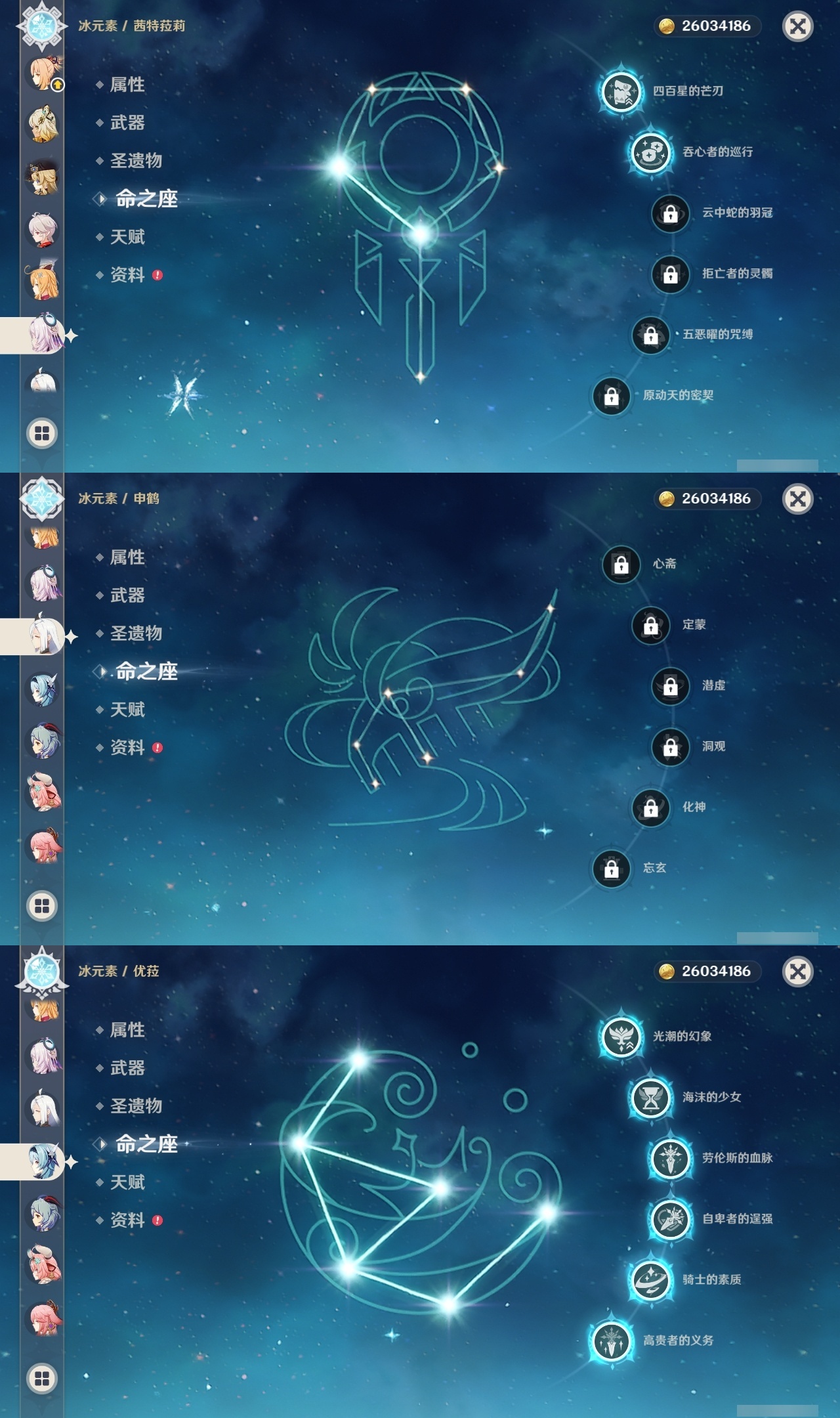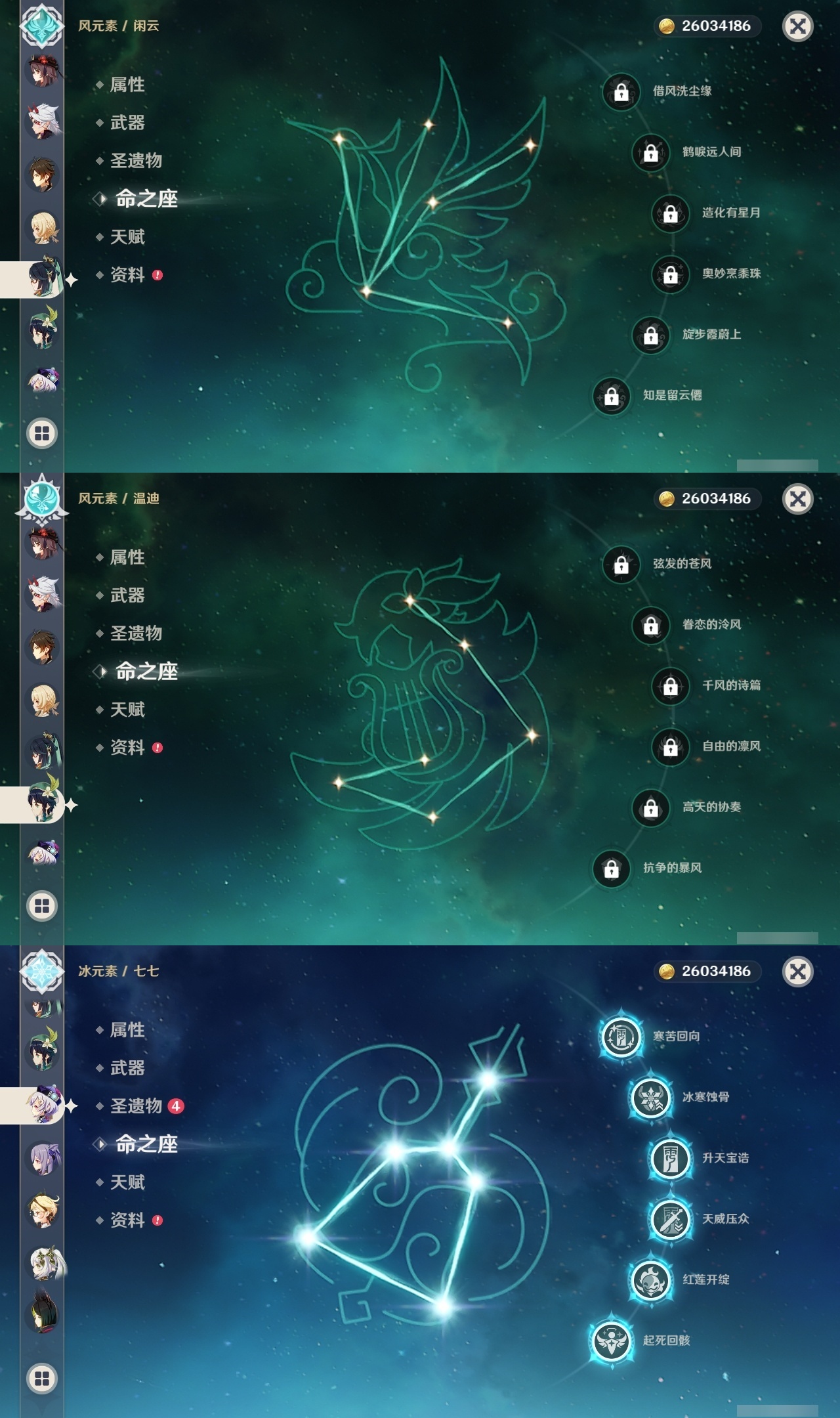 【原神】满命,冒险等级:60,五星数量:72,五星角色:刻晴 6命七七 6命琴 6命宵宫 6命优菈 6命夜兰 6命迪卢克 5命莫娜 4命梦见月瑞希 3命雷电将军 3命希诺宁 2命玛薇卡 2命茜特菈莉 2命瓦雷莎 2命芙宁娜 2命奈芙尔 2命哥伦比娅 2命枫原万叶 2命钟离 2命八重神子 2命提纳里 2命迪希雅 1命菈乌玛 1命胡桃 1命妮露 1命艾梅莉埃珊瑚宫心海温迪荒泷一斗达达利亚申鹤娜维娅闲云爱可菲纳西妲甘雨__五星武器:飞雷之弦振 5精薙草之稻光 4精和璞鸢 3精狼的末路 3精天空之翼 3精祭星者之望 2精磐岩结绿 2精四风原典 2精岩峰巡歌焚曜千阳溢彩心念静水流涌之辉裁断香韵奏者纺夜天镜真语秘匣阿莫斯之弓帷间夜曲苍古自由之誓风鹰剑护摩之杖松籁响起之时天空之傲天空之脊天空之卷天空之刃无工之剑终末嗟叹之诗息灾神乐之真意若水圣显之钥千夜浮梦__四星角色:卡齐娜 6命班尼特 6命行秋 6命九条裟罗 6命香菱 6命凝光 6命迪奥娜 6命砂糖 6命瑶瑶 6命莱依拉 6命坎蒂丝 6命多莉 6命柯莱 6命芭芭拉 6命欧洛伦 6命云堇 6命早柚 6命托马 6命五郎 6命烟绯 6命重云 6命辛焱 6命诺艾尔 6命罗莎莉亚 6命雷泽 6命菲谢尔 6命北斗 6命夏洛蒂 6命夏沃蕾 6命嘉明 6命伊法 6命伊安珊 6命赛索斯 6命鹿野院平藏 5命卡维 5命珐露珊 4命菲米尼 4命久岐忍 3命琳妮特 3命塔利雅 3命绮良良 2命蓝砚 2命米卡 1命埃洛伊奇偶·女性奇偶·男性爱诺