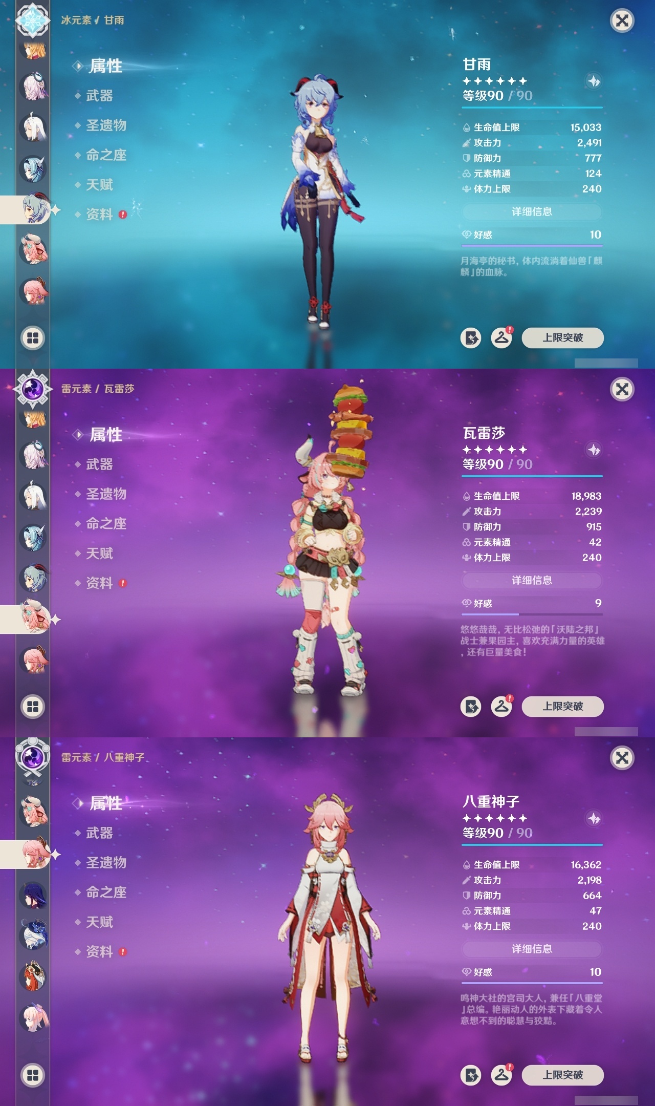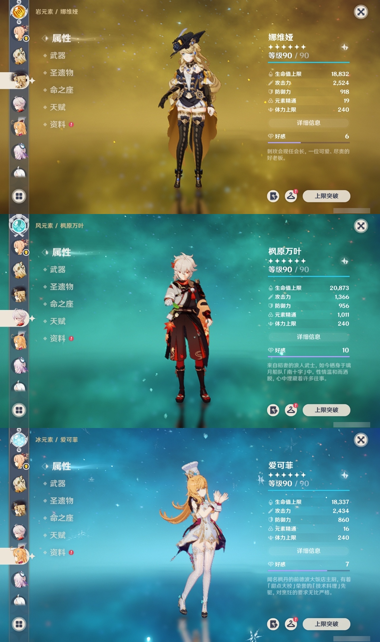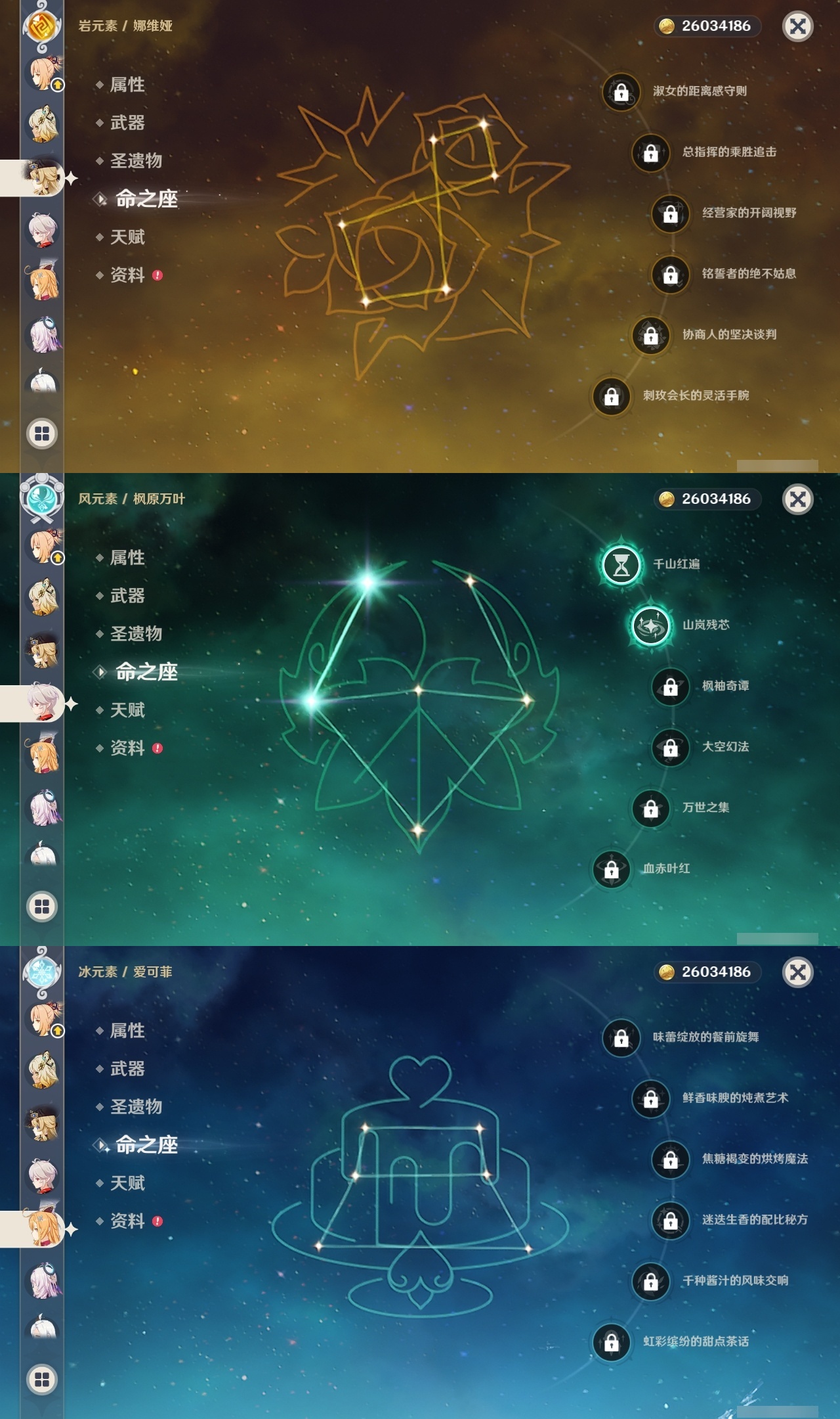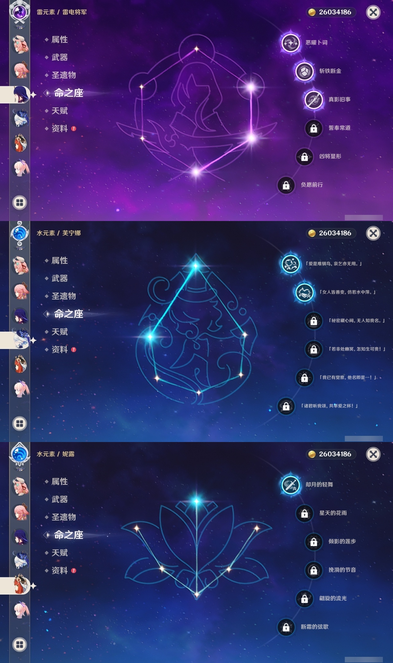 【原神】满命,冒险等级:60,五星数量:72,五星角色:刻晴 6命七七 6命琴 6命宵宫 6命优菈 6命夜兰 6命迪卢克 5命莫娜 4命梦见月瑞希 3命雷电将军 3命希诺宁 2命玛薇卡 2命茜特菈莉 2命瓦雷莎 2命芙宁娜 2命奈芙尔 2命哥伦比娅 2命枫原万叶 2命钟离 2命八重神子 2命提纳里 2命迪希雅 1命菈乌玛 1命胡桃 1命妮露 1命艾梅莉埃珊瑚宫心海温迪荒泷一斗达达利亚申鹤娜维娅闲云爱可菲纳西妲甘雨__五星武器:飞雷之弦振 5精薙草之稻光 4精和璞鸢 3精狼的末路 3精天空之翼 3精祭星者之望 2精磐岩结绿 2精四风原典 2精岩峰巡歌焚曜千阳溢彩心念静水流涌之辉裁断香韵奏者纺夜天镜真语秘匣阿莫斯之弓帷间夜曲苍古自由之誓风鹰剑护摩之杖松籁响起之时天空之傲天空之脊天空之卷天空之刃无工之剑终末嗟叹之诗息灾神乐之真意若水圣显之钥千夜浮梦__四星角色:卡齐娜 6命班尼特 6命行秋 6命九条裟罗 6命香菱 6命凝光 6命迪奥娜 6命砂糖 6命瑶瑶 6命莱依拉 6命坎蒂丝 6命多莉 6命柯莱 6命芭芭拉 6命欧洛伦 6命云堇 6命早柚 6命托马 6命五郎 6命烟绯 6命重云 6命辛焱 6命诺艾尔 6命罗莎莉亚 6命雷泽 6命菲谢尔 6命北斗 6命夏洛蒂 6命夏沃蕾 6命嘉明 6命伊法 6命伊安珊 6命赛索斯 6命鹿野院平藏 5命卡维 5命珐露珊 4命菲米尼 4命久岐忍 3命琳妮特 3命塔利雅 3命绮良良 2命蓝砚 2命米卡 1命埃洛伊奇偶·女性奇偶·男性爱诺